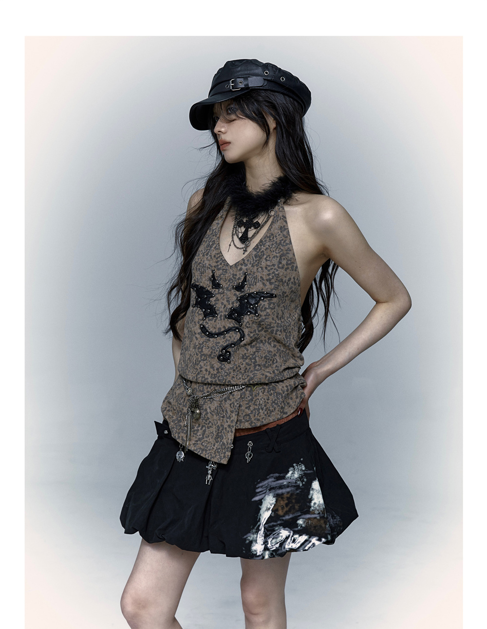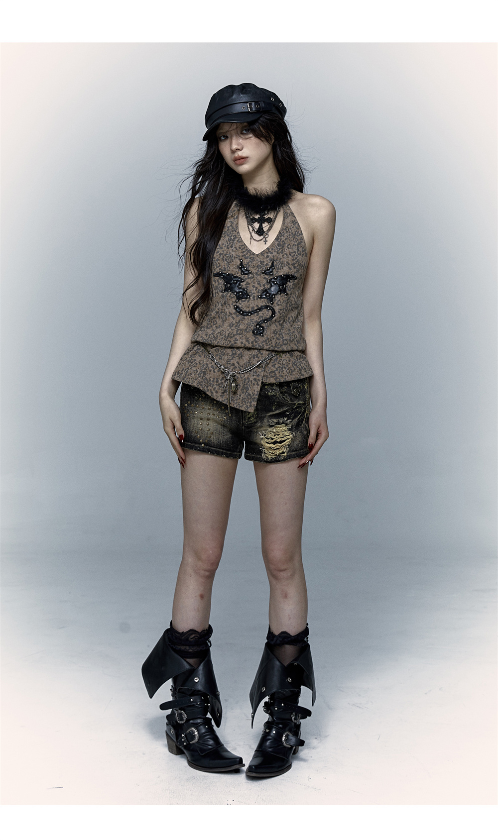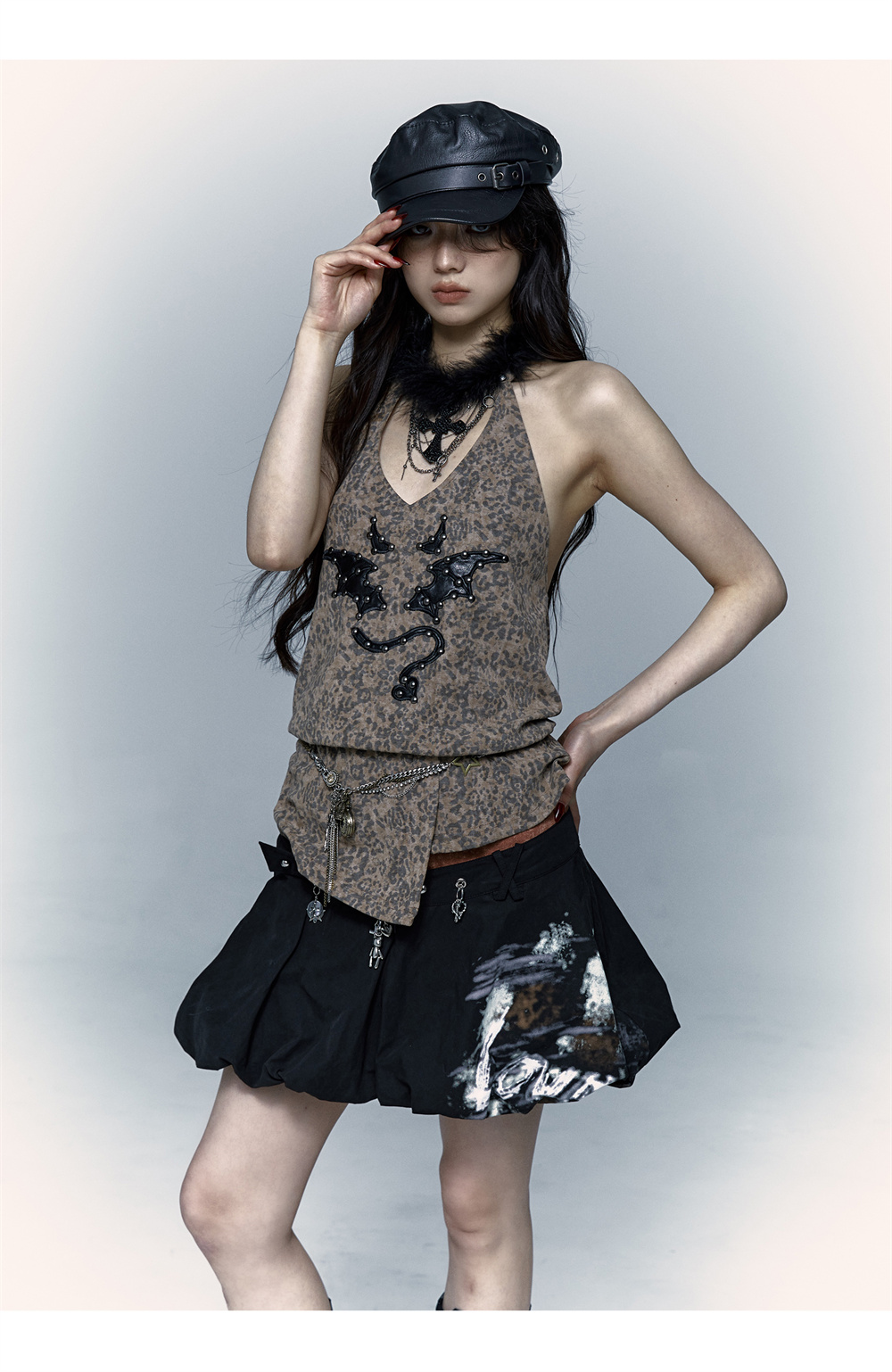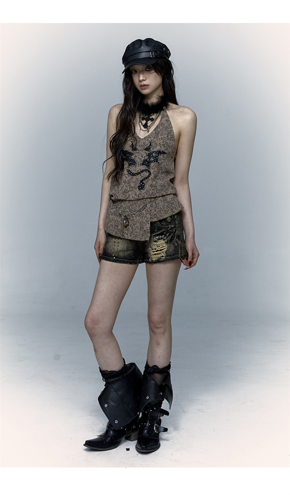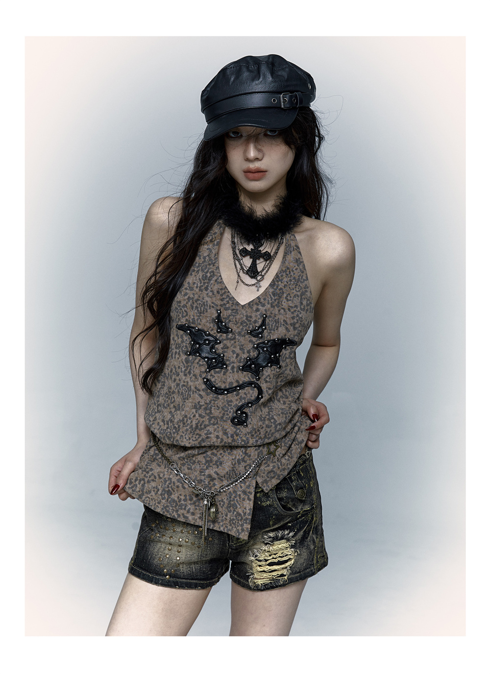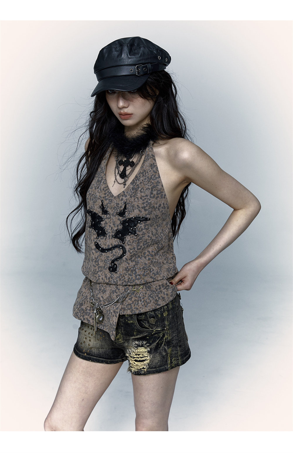 Leopard Print Rivet Halter Vest | রেট্রো পাঙ্ক ডেভিল এমব্রয়ডারি ডিজাইন