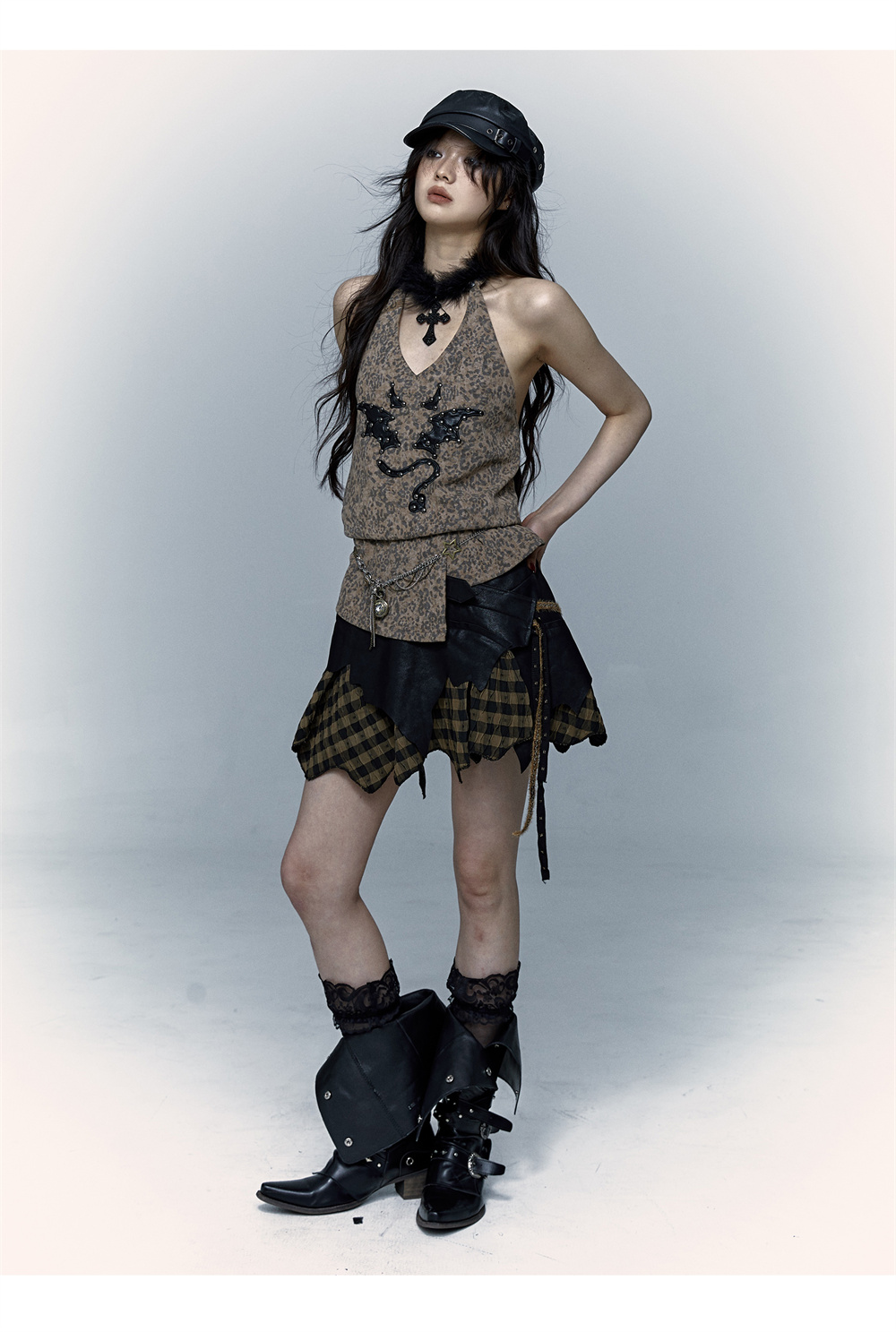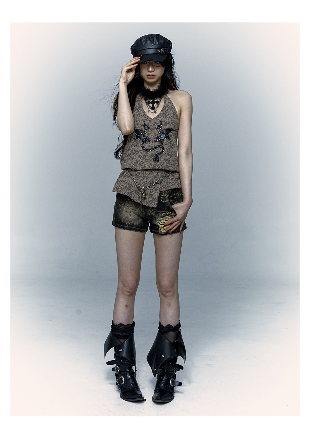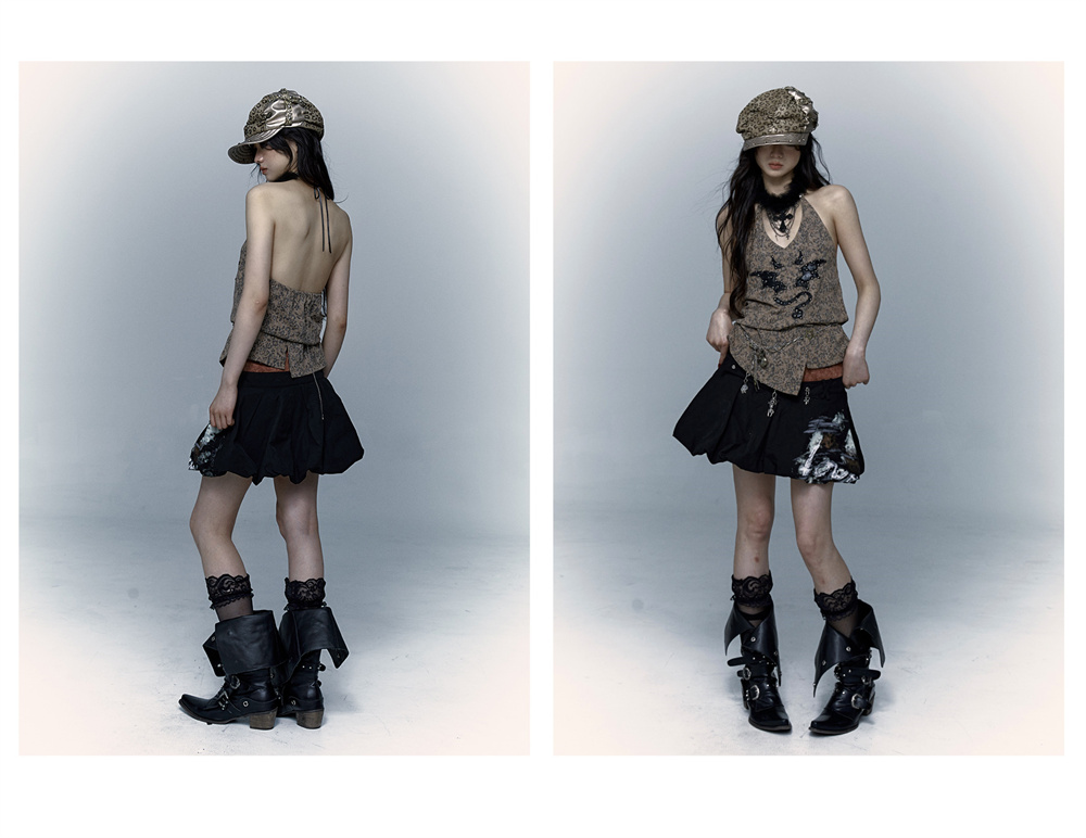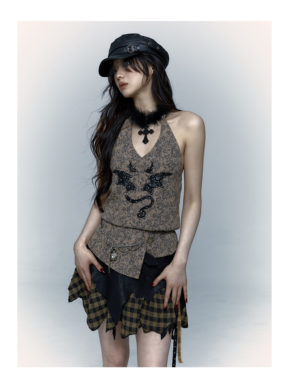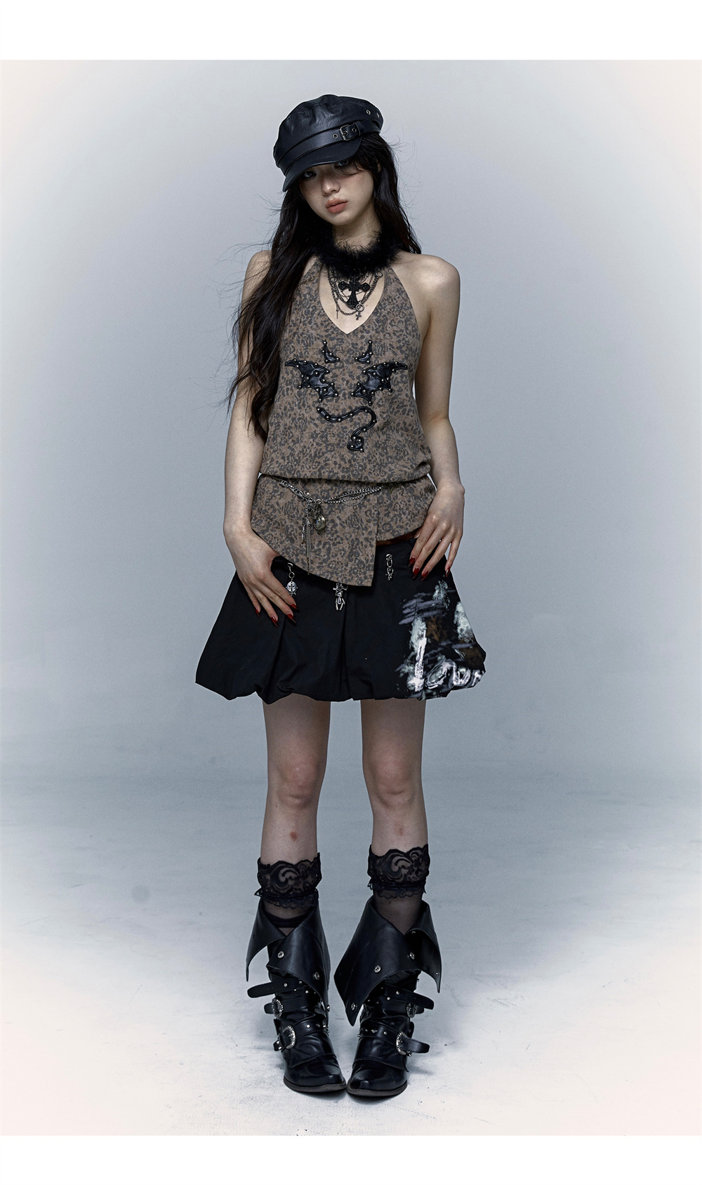 Leopard Print Rivet Halter Vest | রেট্রো পাঙ্ক ডেভিল এমব্রয়ডারি ডিজাইন