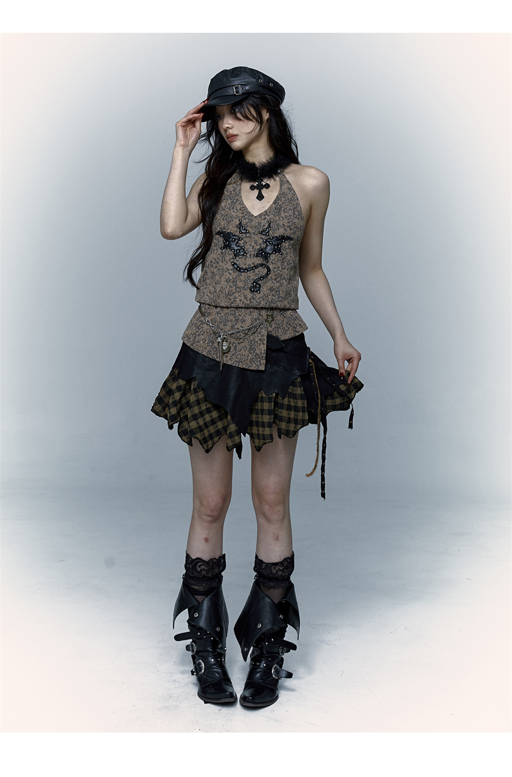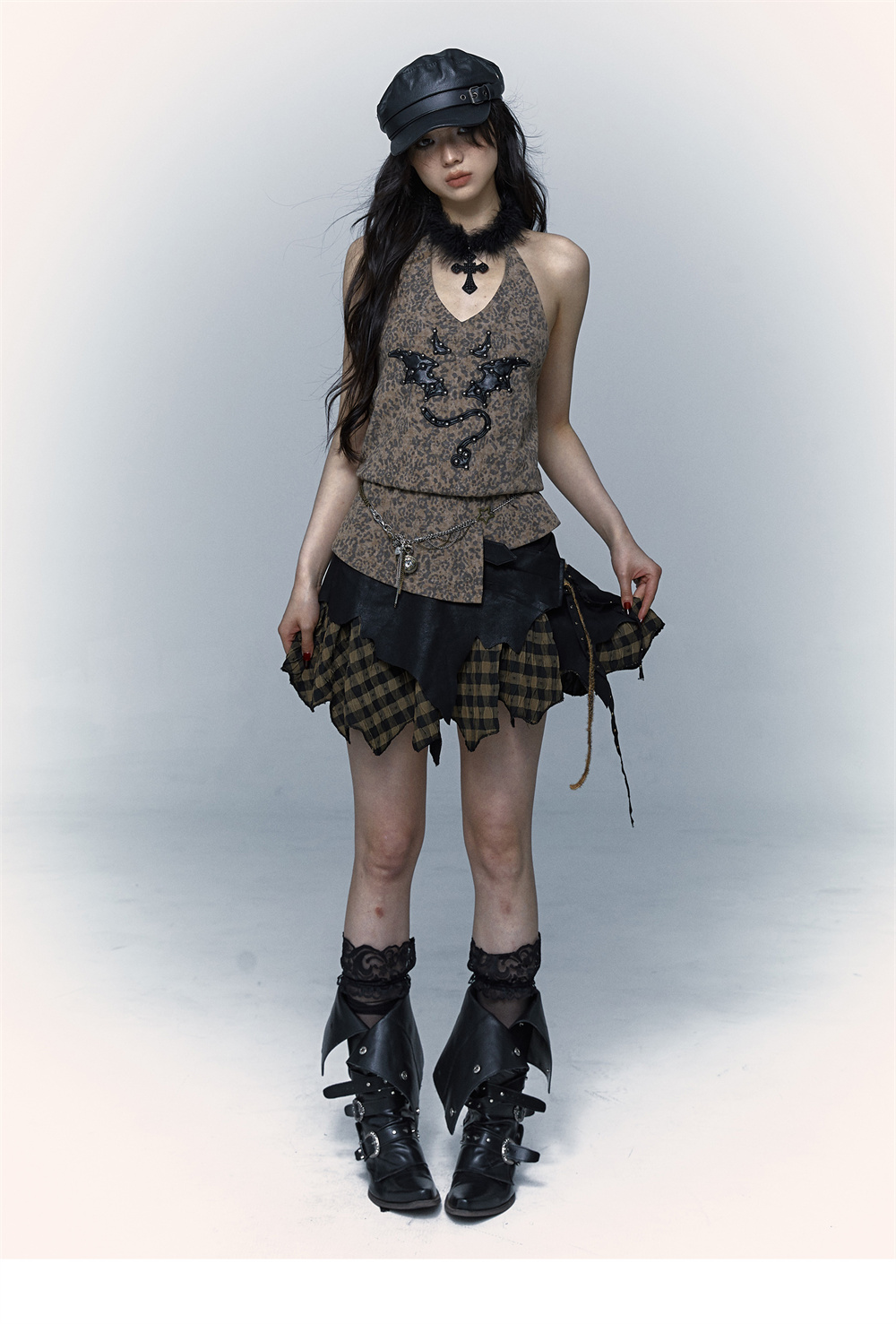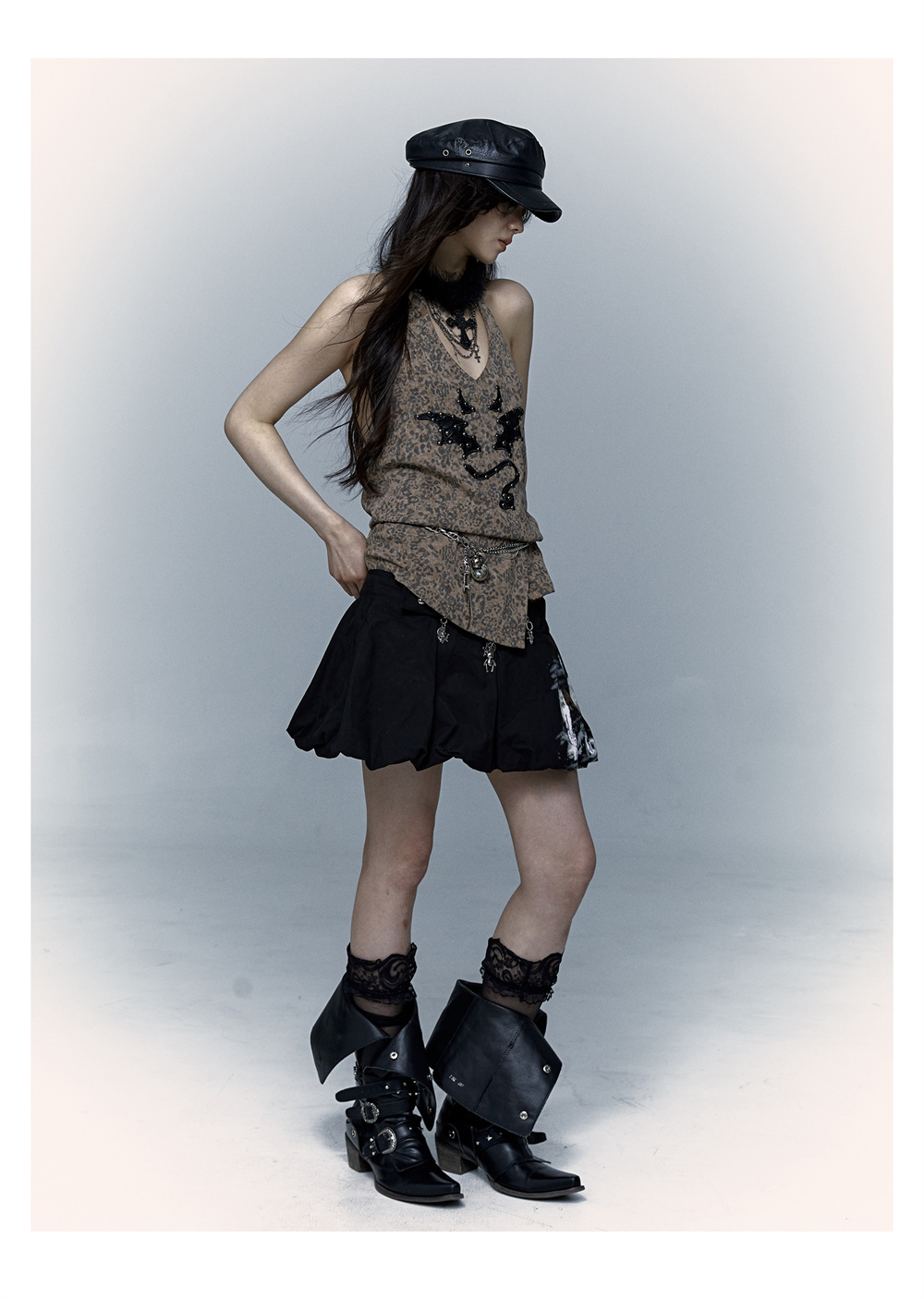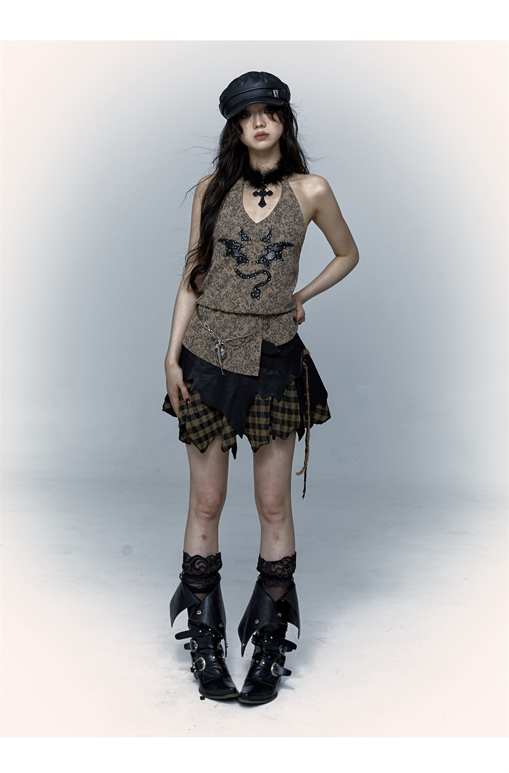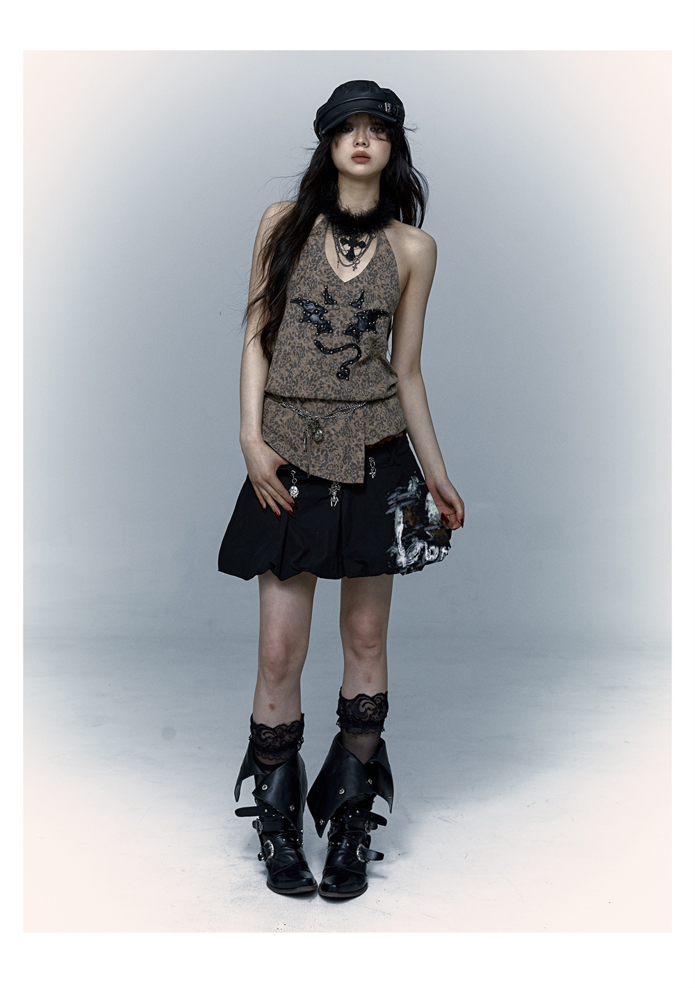 Leopard Print Rivet Halter Vest | রেট্রো পাঙ্ক ডেভিল এমব্রয়ডারি ডিজাইন
