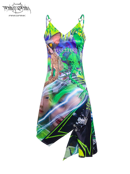 Fluorescent Green Rock Dress – SPHYNX CAT Yooki Portrait Slim Fit Design