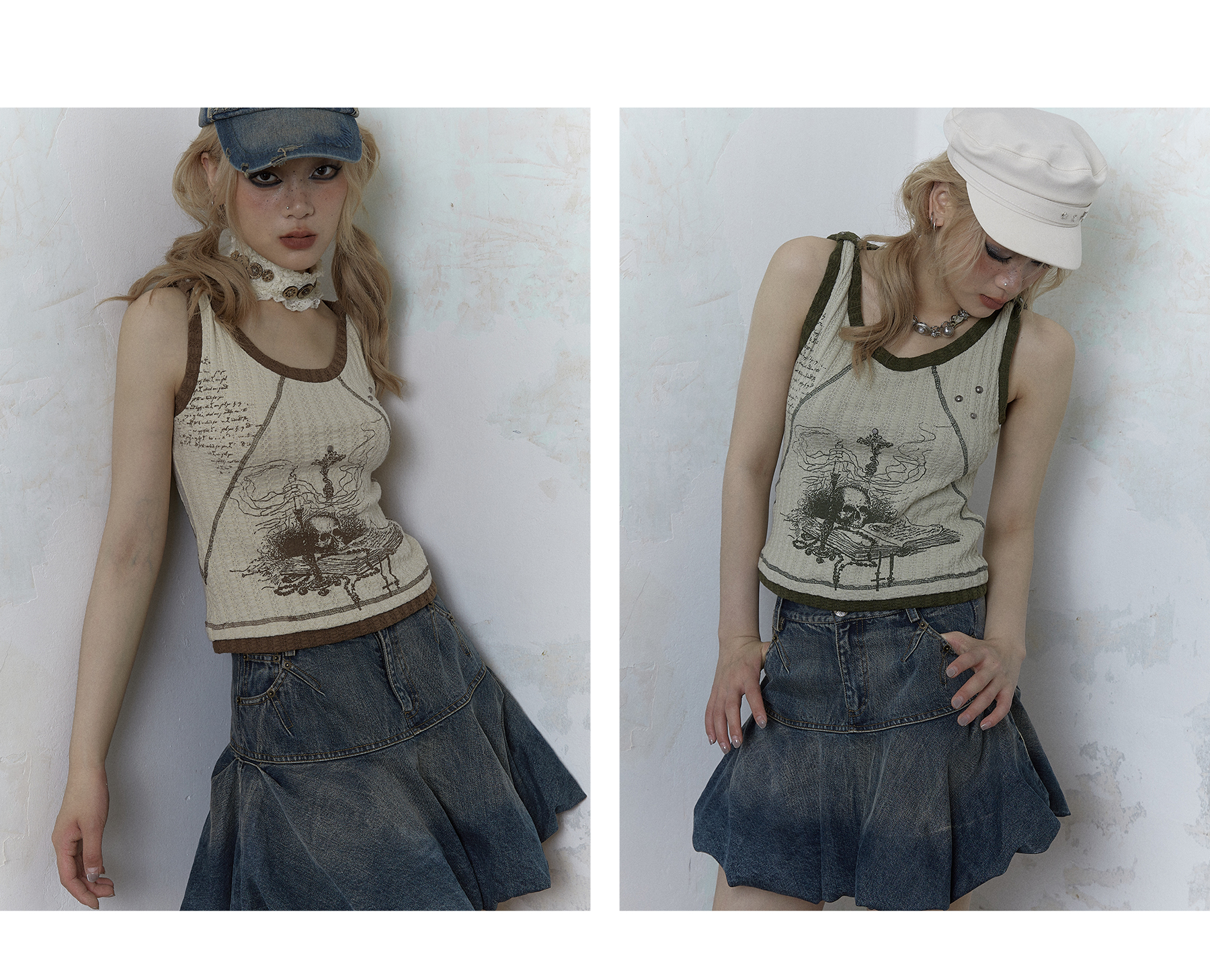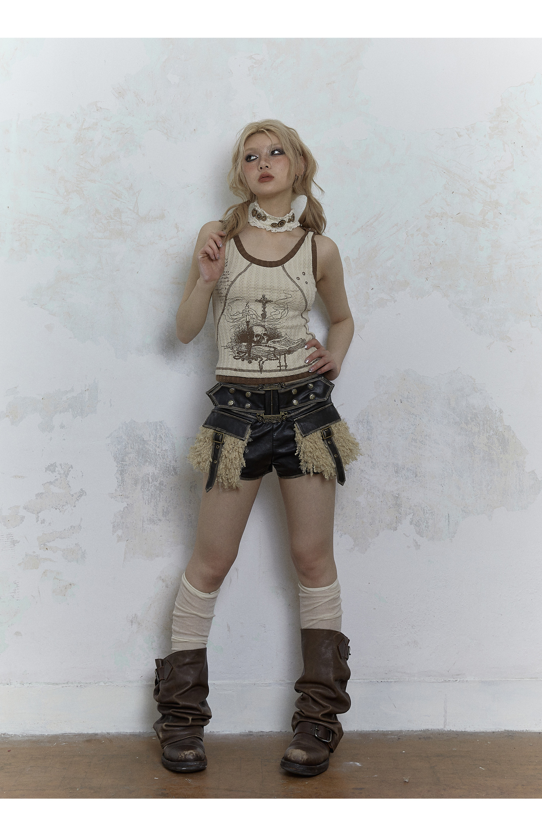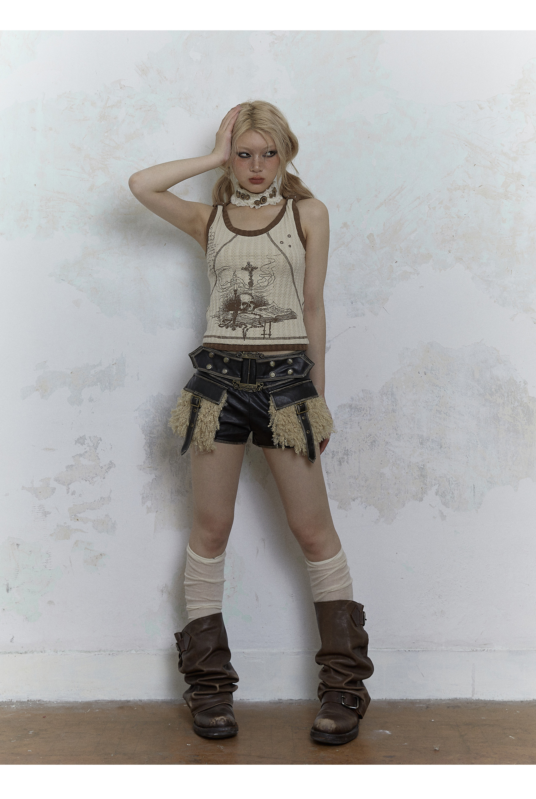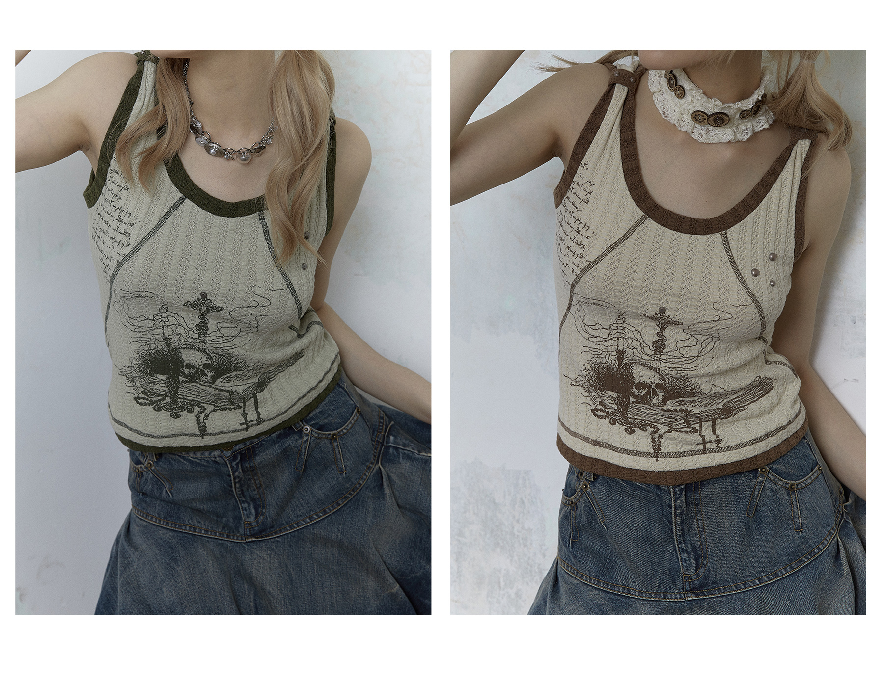 নকল টু-পিস কনট্রাস্ট ট্যাঙ্ক টপ | রেট্রো পাঙ্ক লেস-আপ ডিজাইন