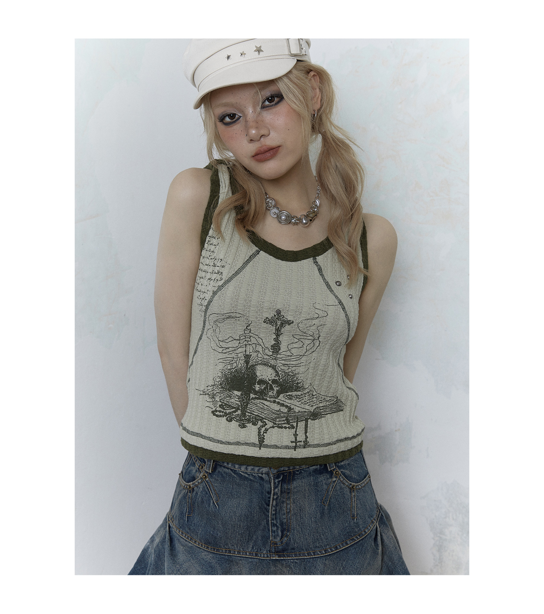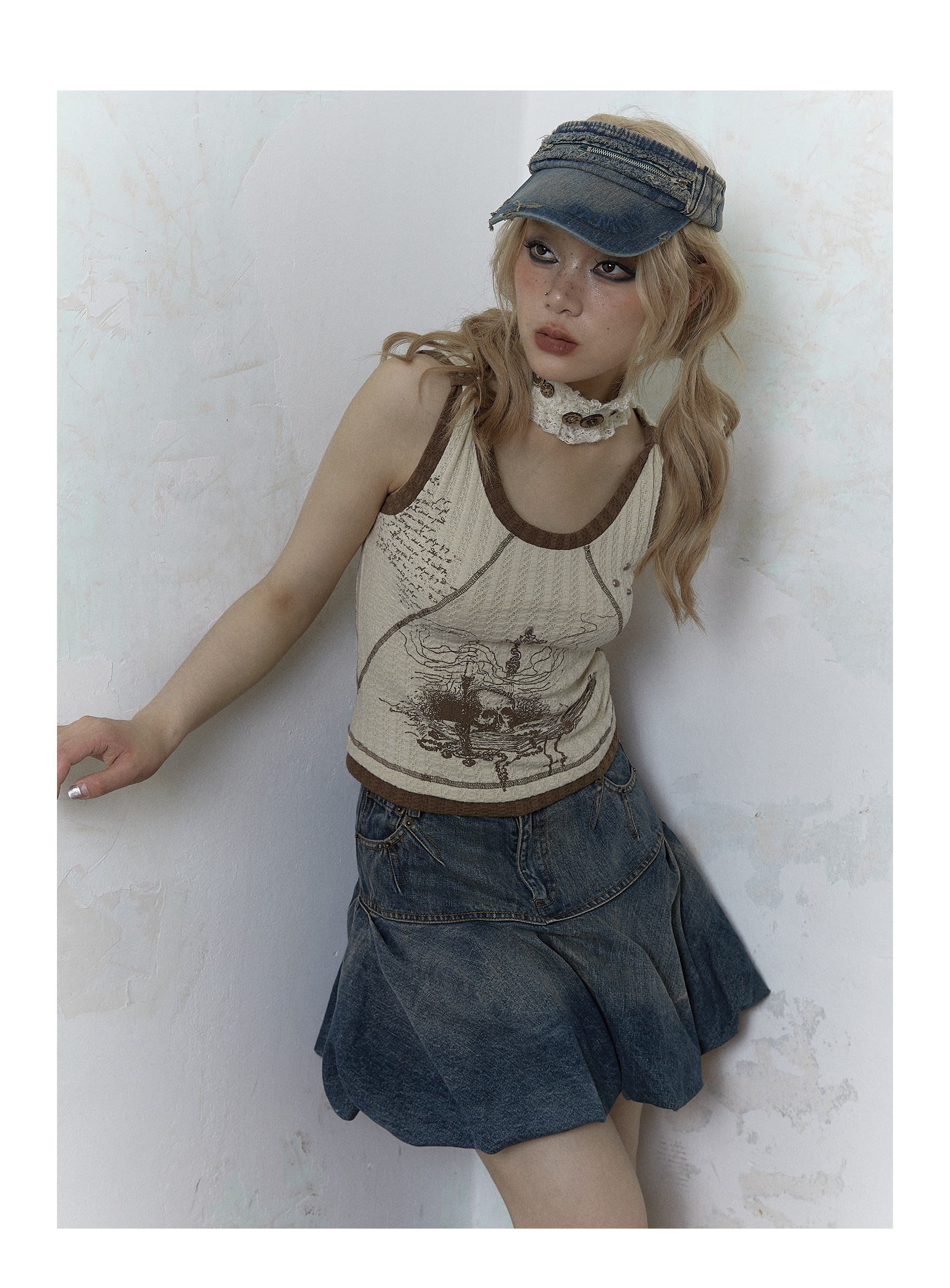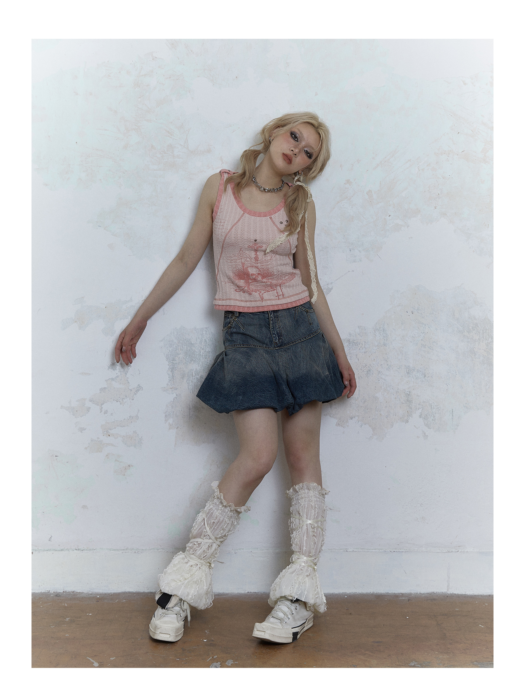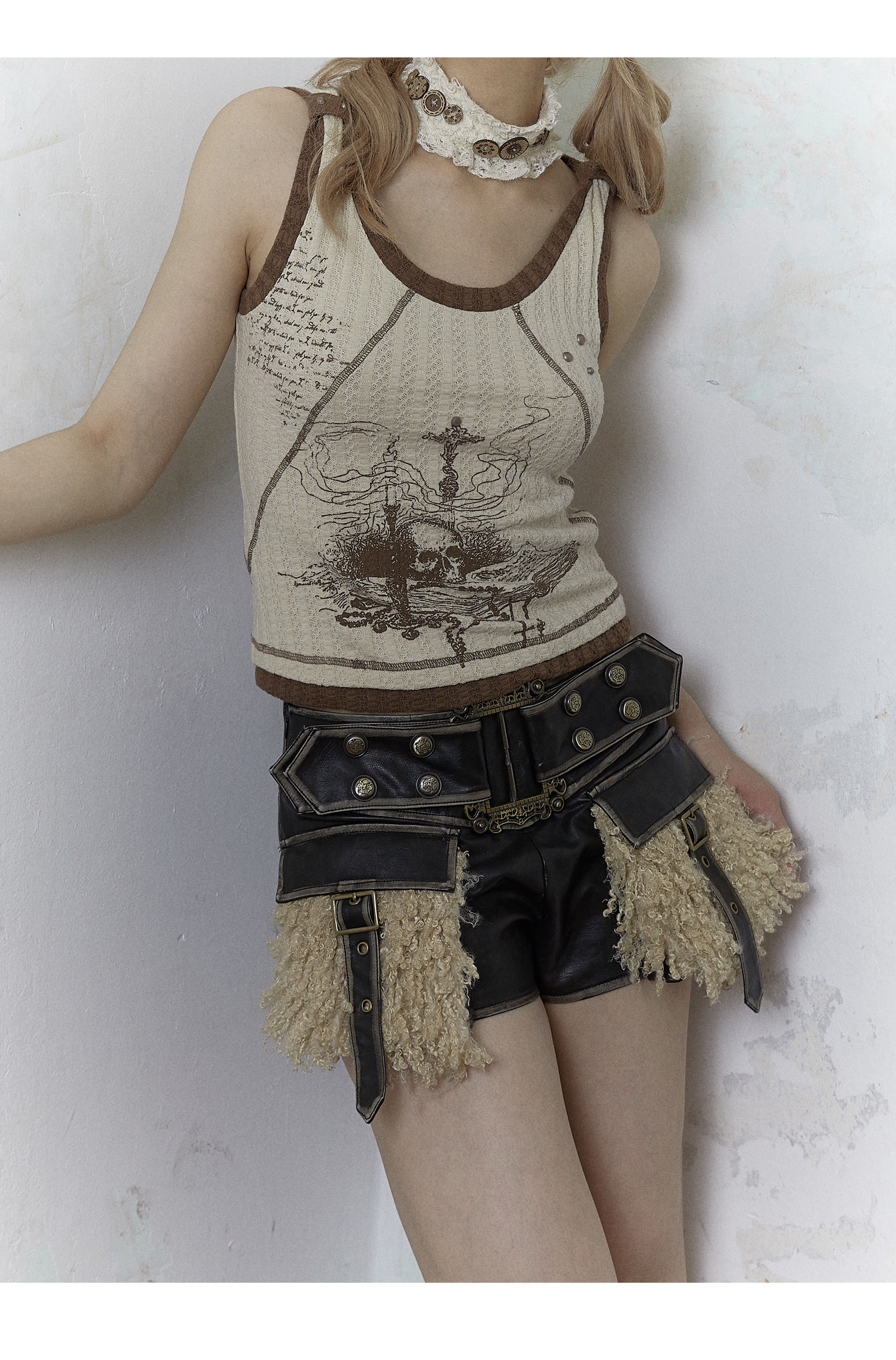 নকল টু-পিস কনট্রাস্ট ট্যাঙ্ক টপ | রেট্রো পাঙ্ক লেস-আপ ডিজাইন