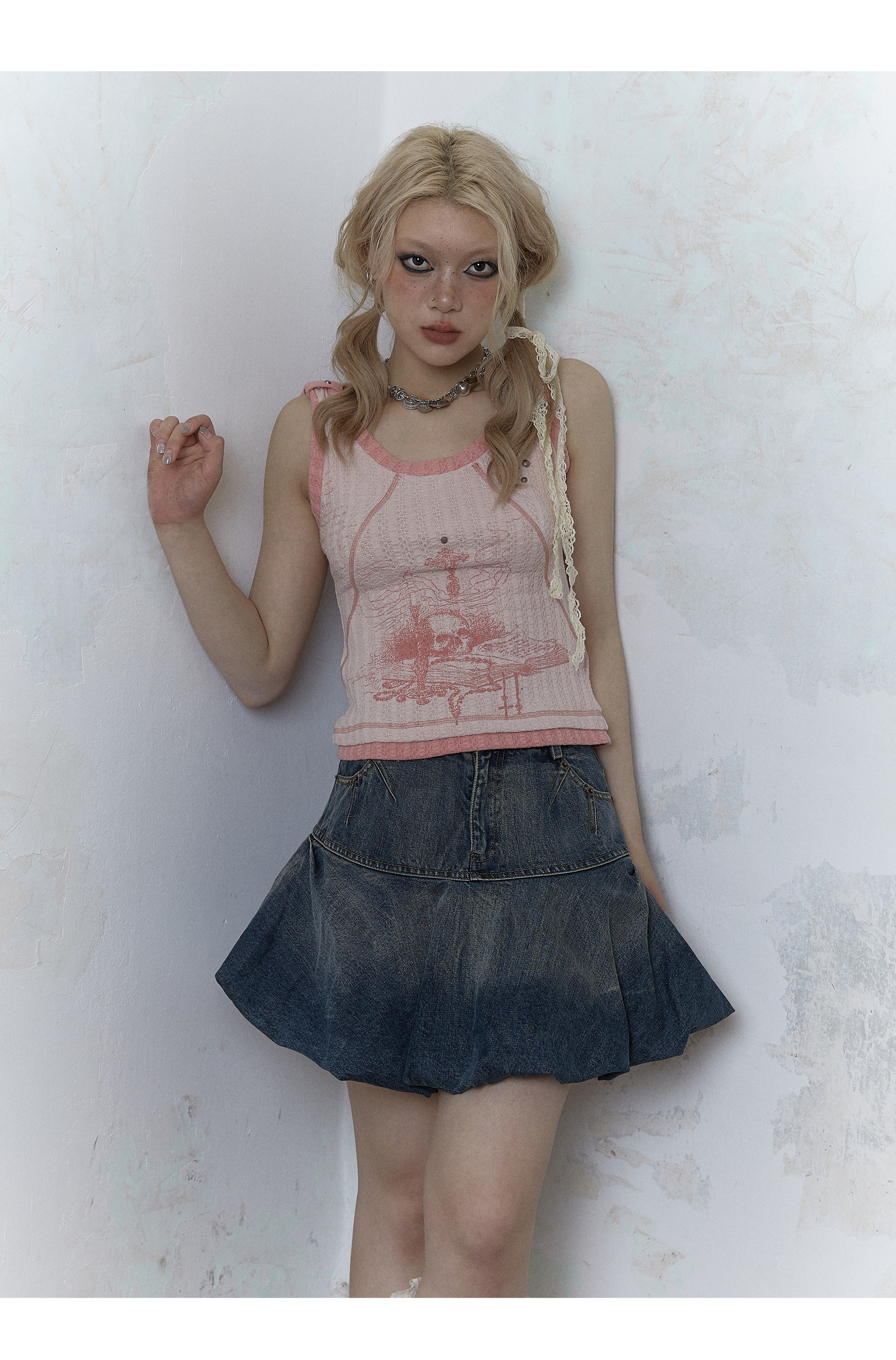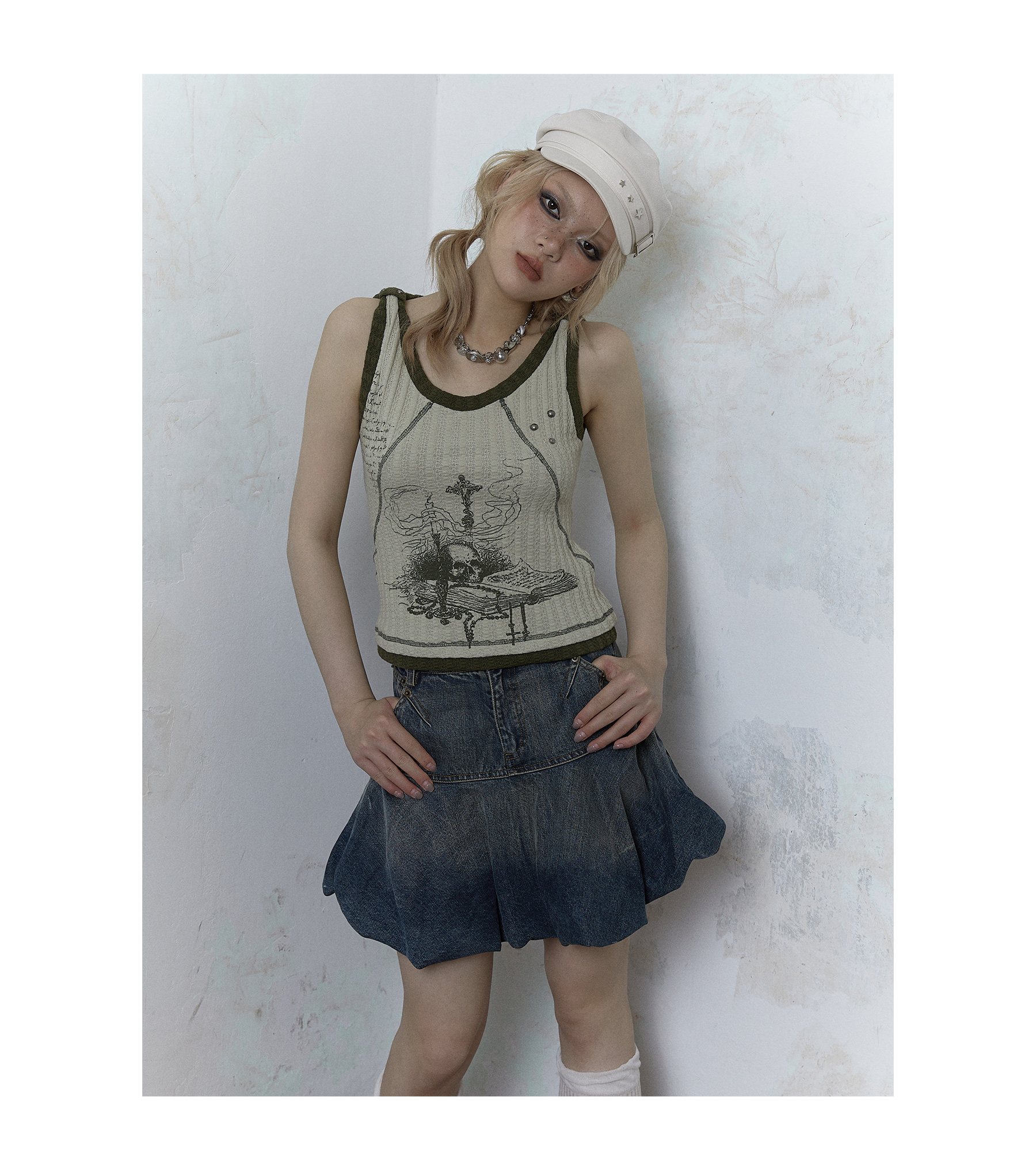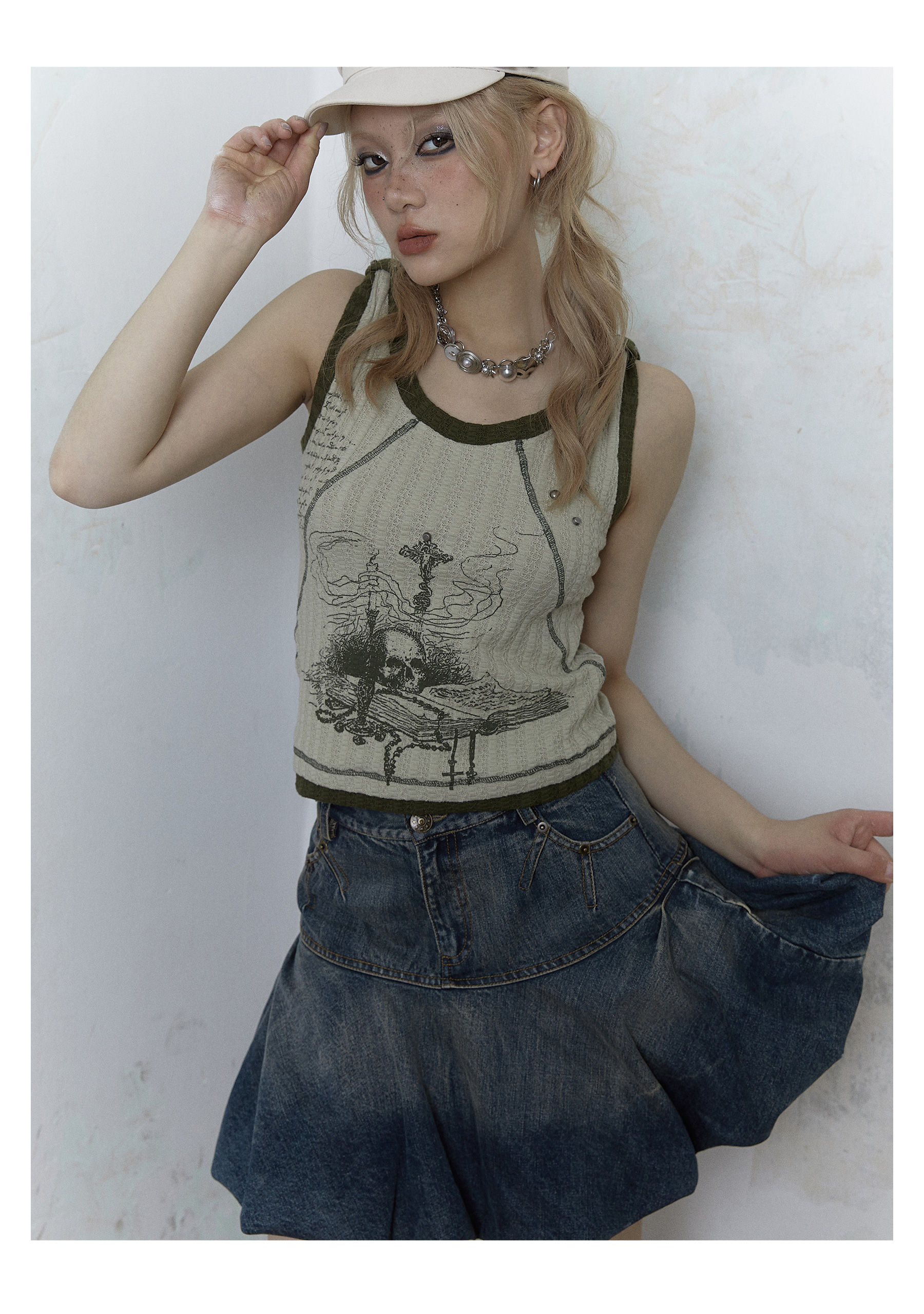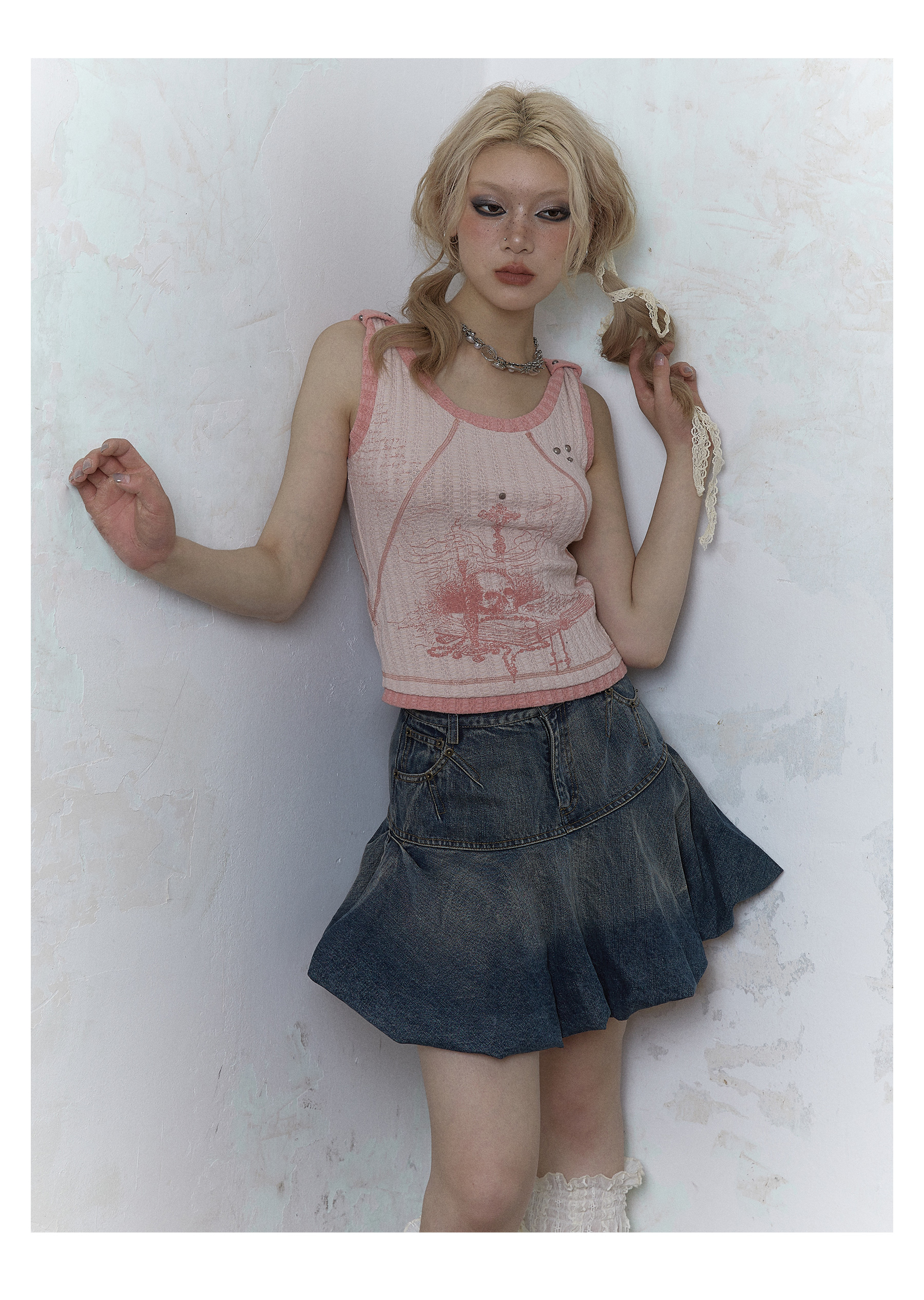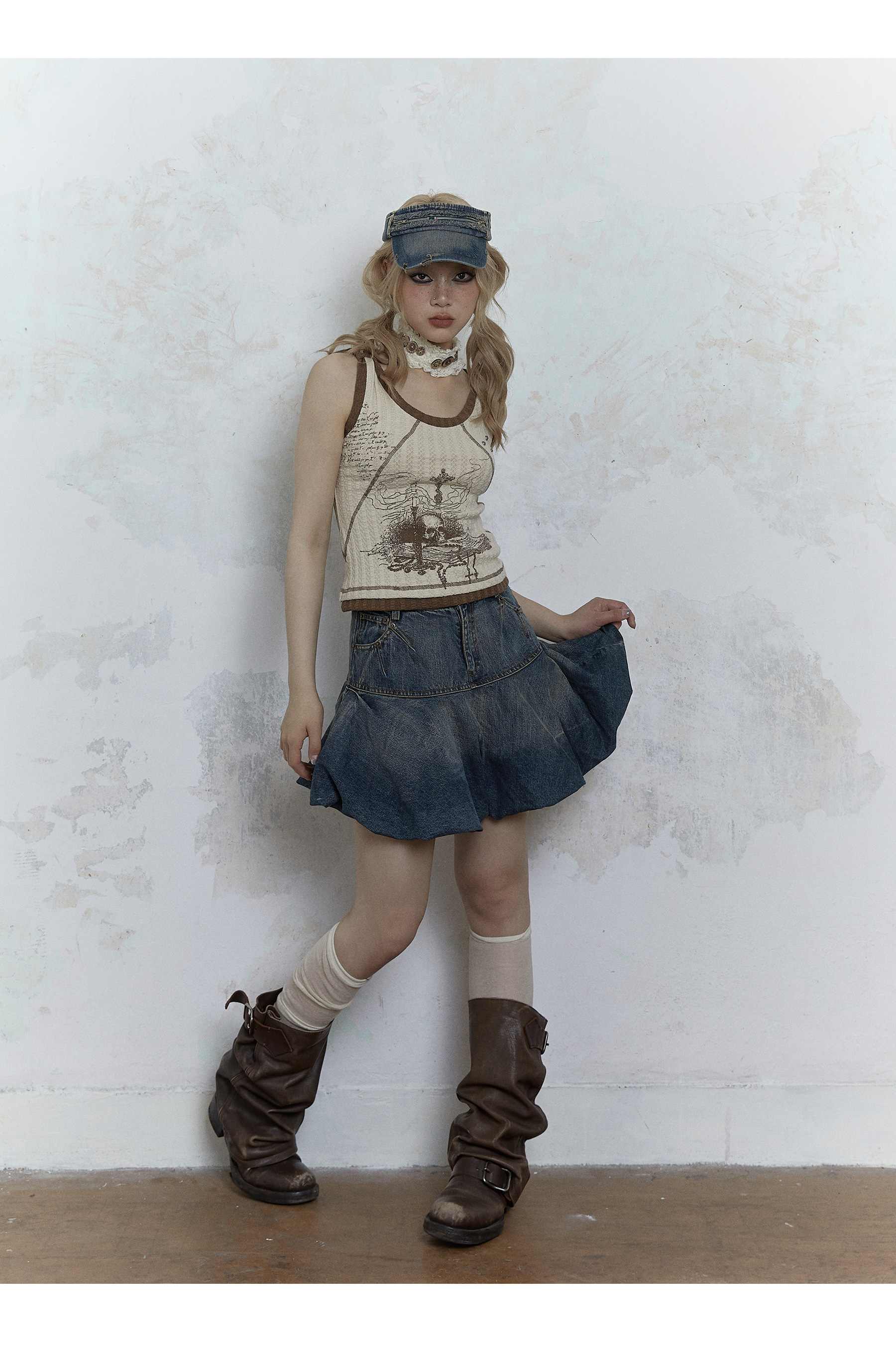 নকল টু-পিস কনট্রাস্ট ট্যাঙ্ক টপ | রেট্রো পাঙ্ক লেস-আপ ডিজাইন