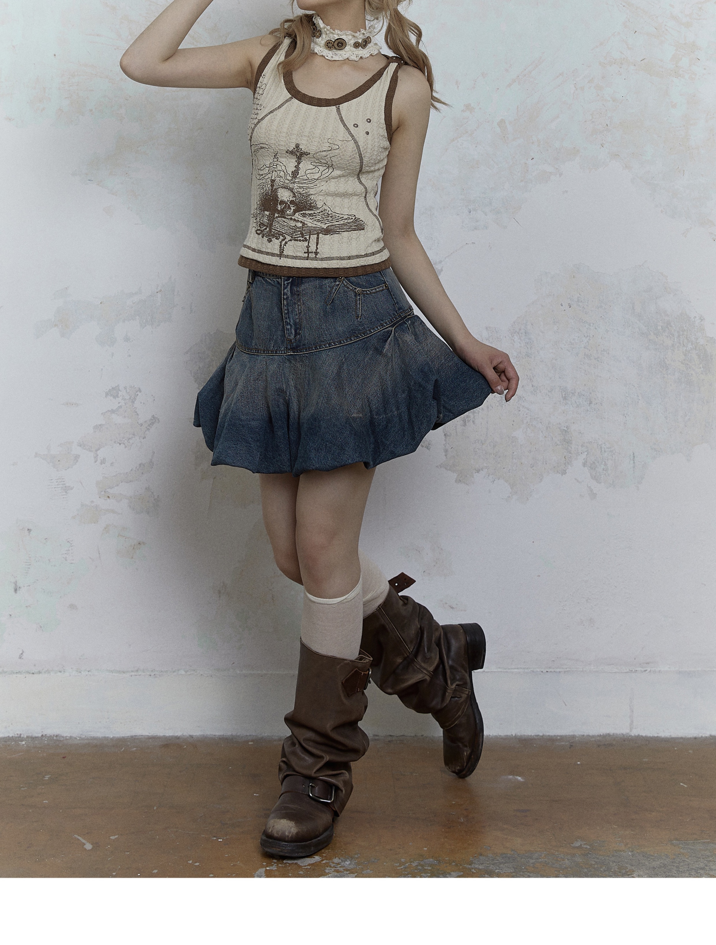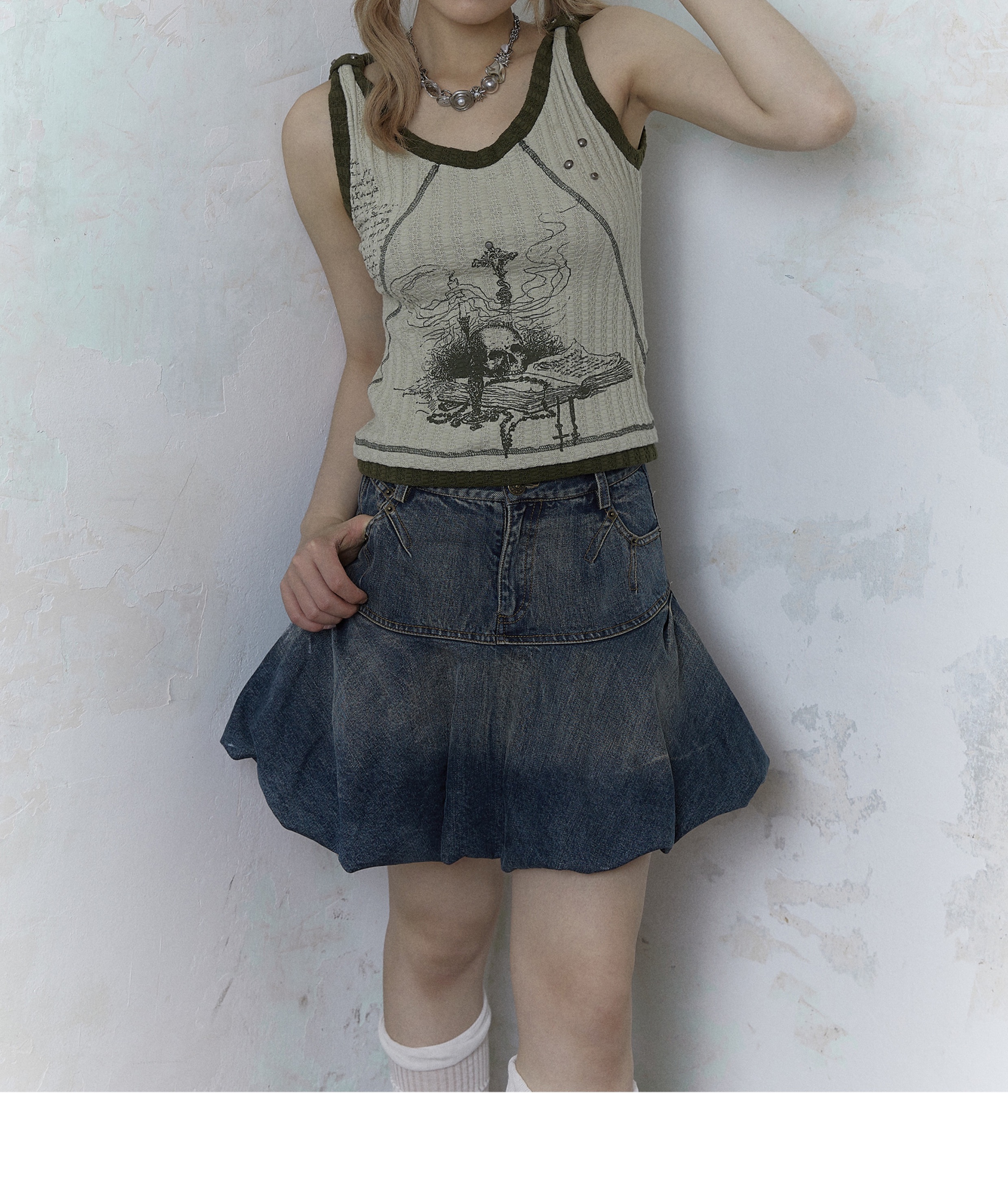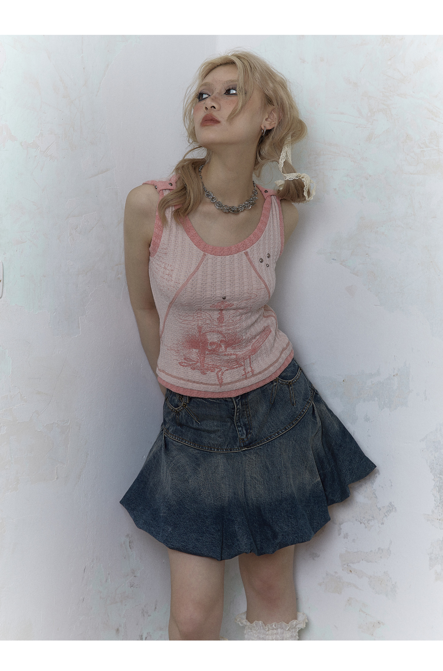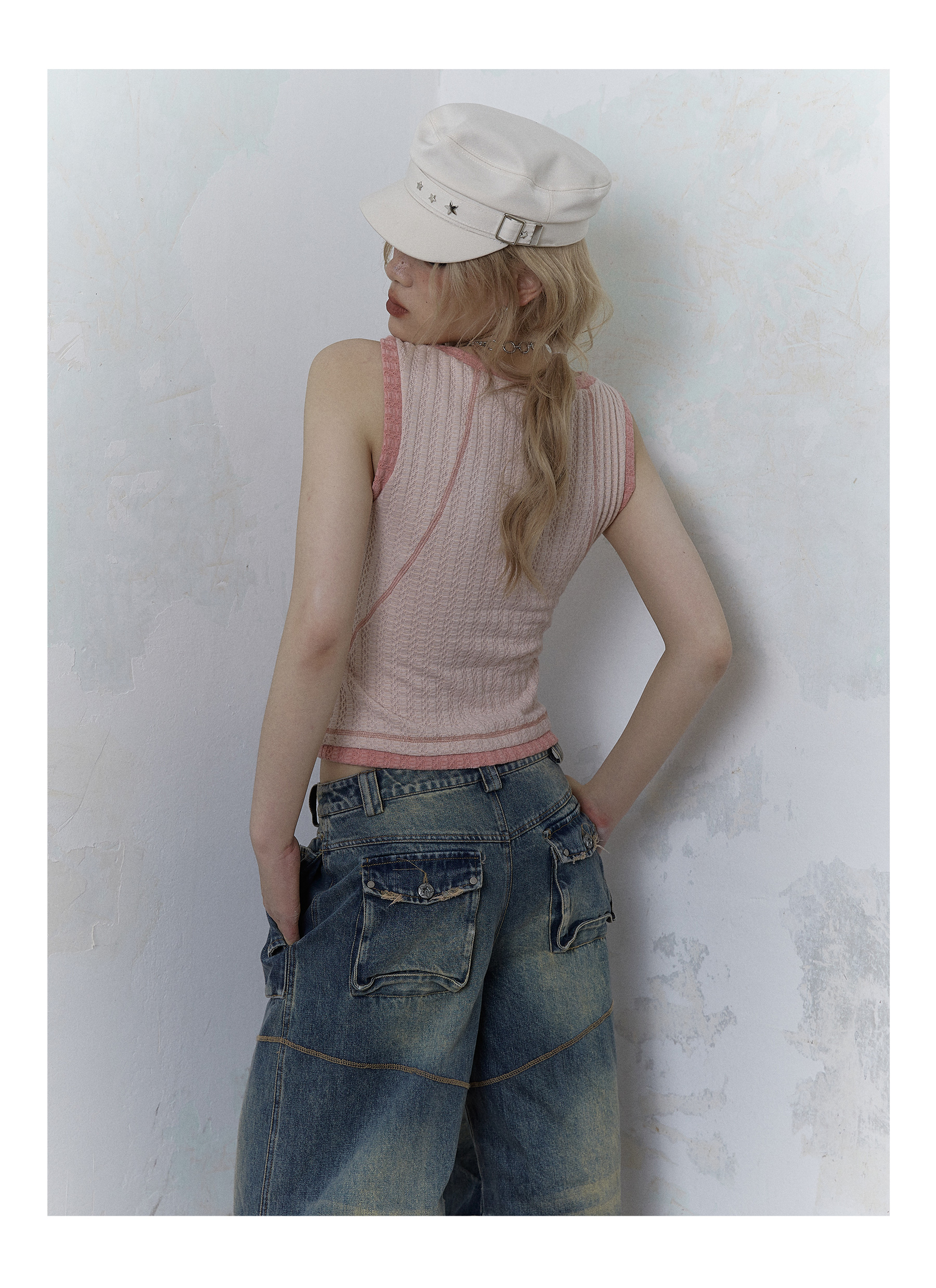 নকল টু-পিস কনট্রাস্ট ট্যাঙ্ক টপ | রেট্রো পাঙ্ক লেস-আপ ডিজাইন