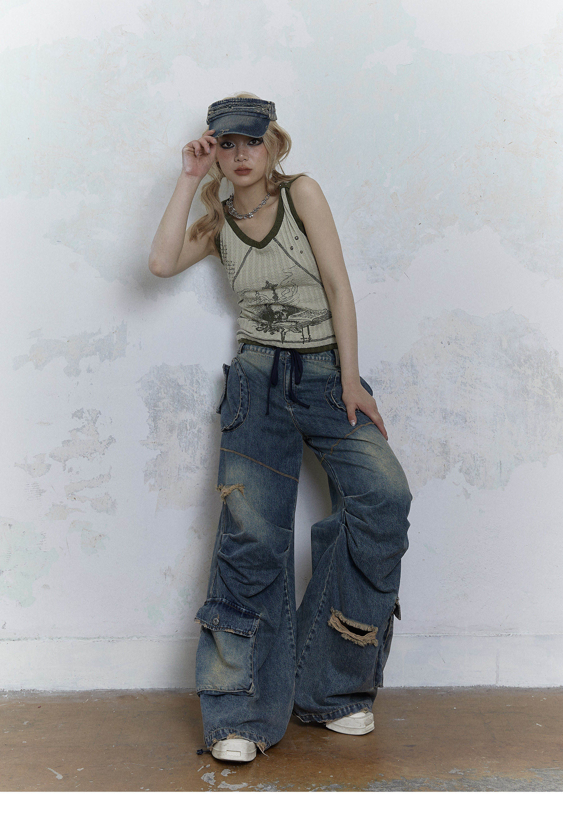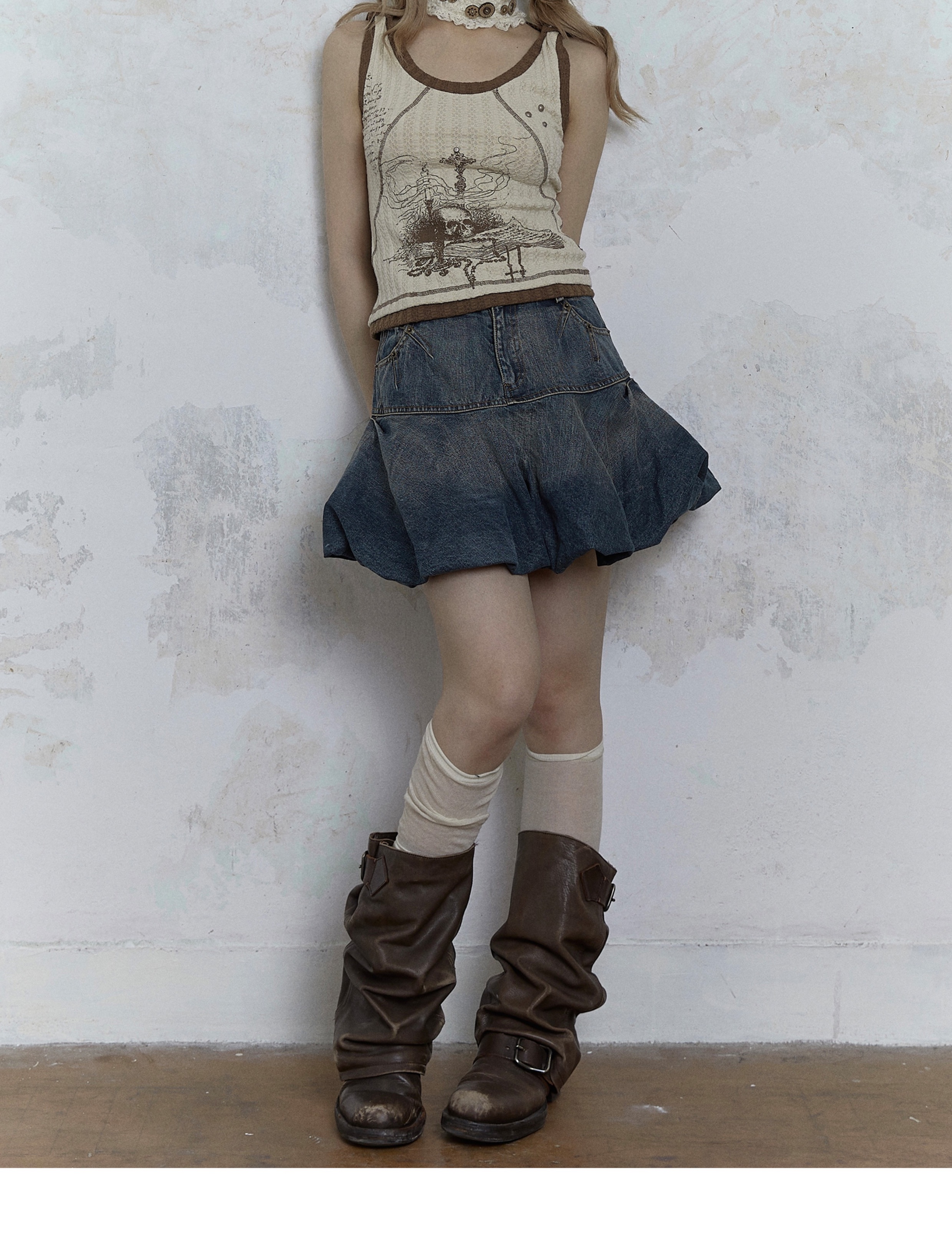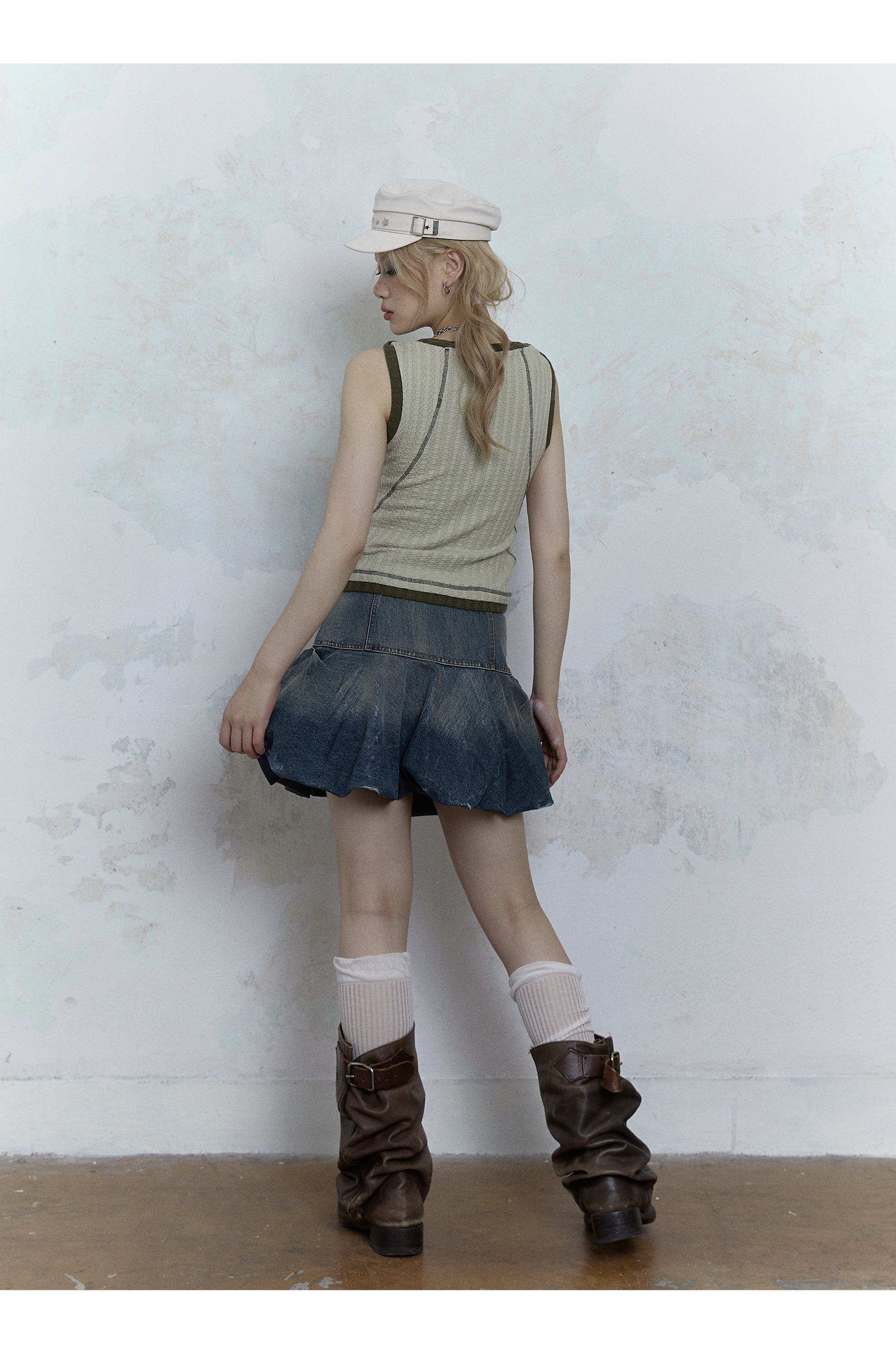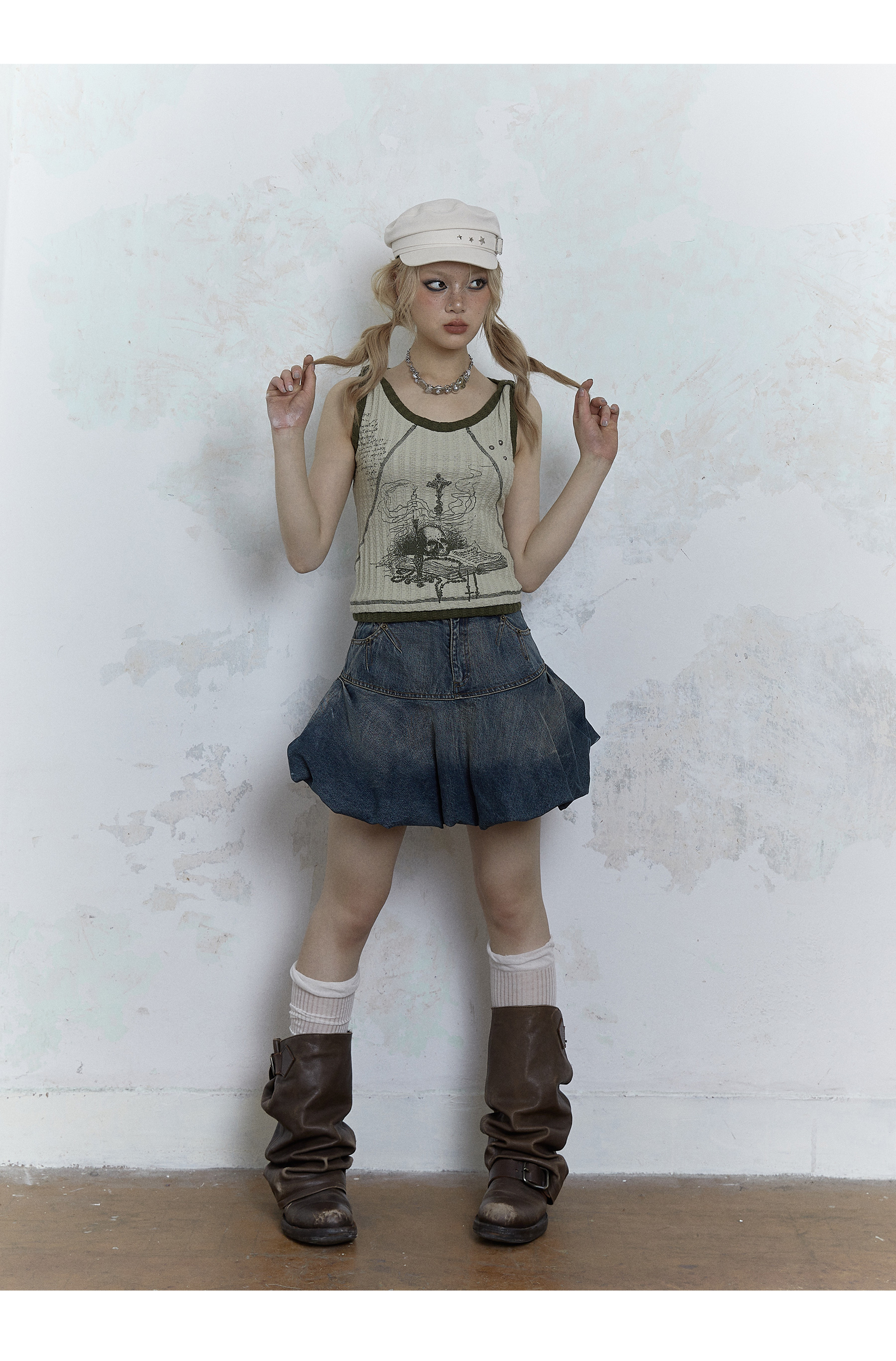 নকল টু-পিস কনট্রাস্ট ট্যাঙ্ক টপ | রেট্রো পাঙ্ক লেস-আপ ডিজাইন