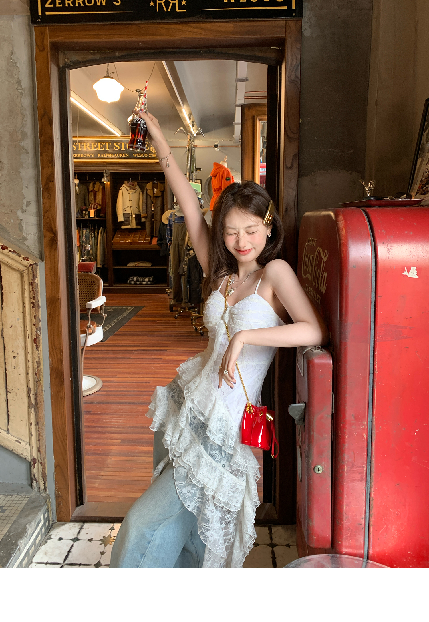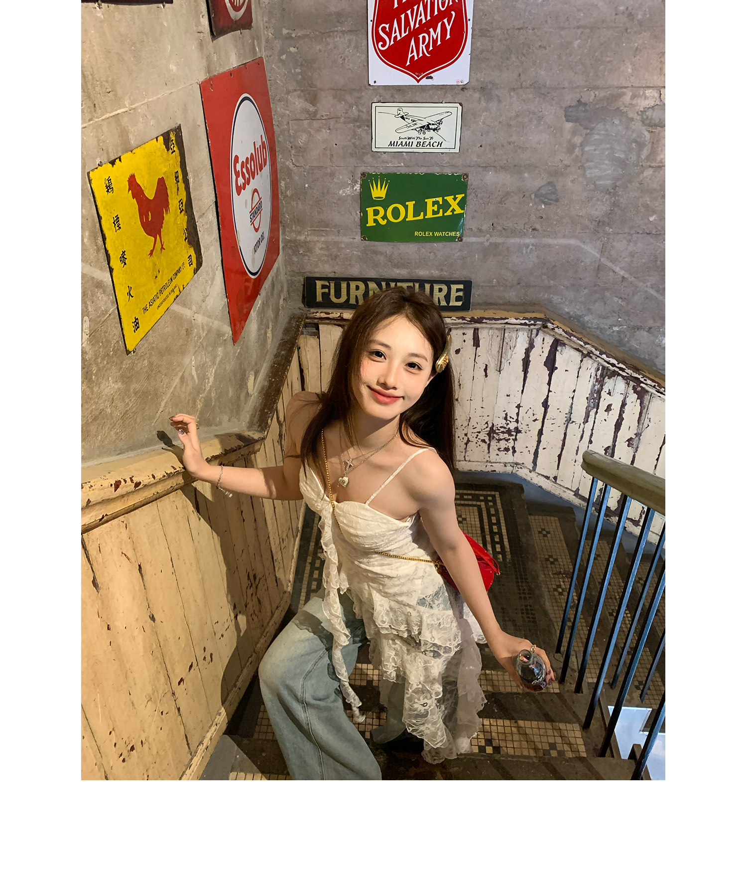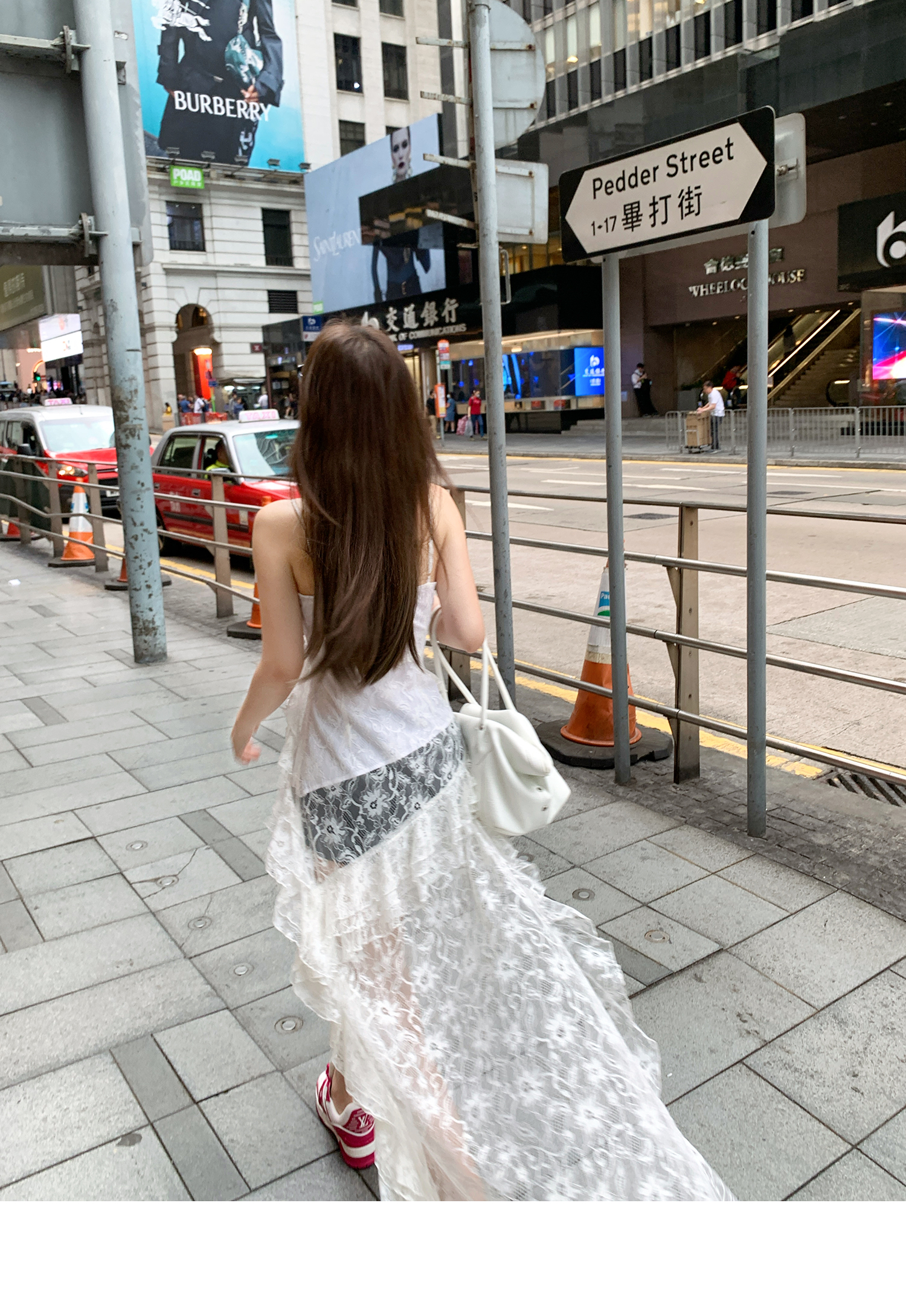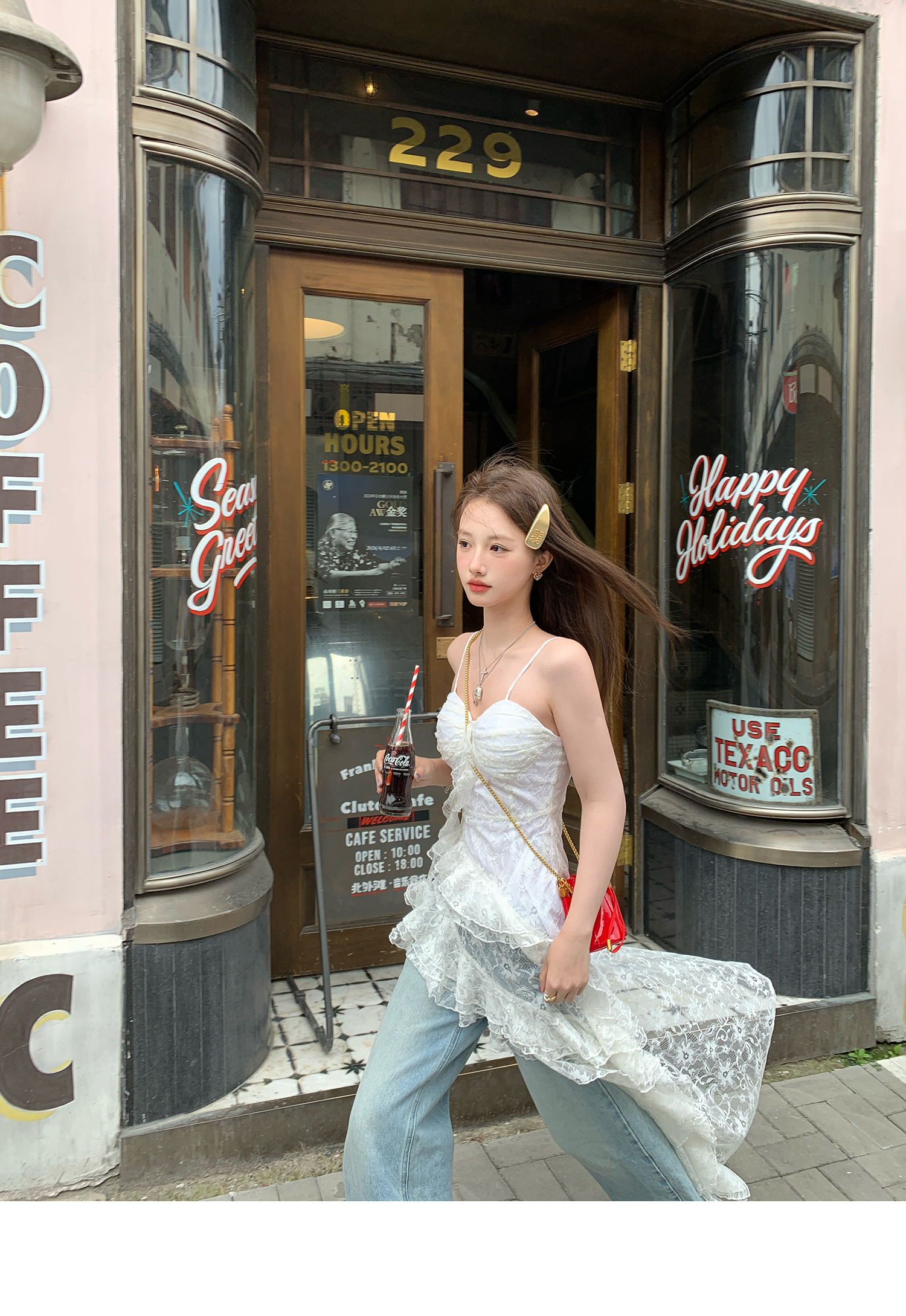 [Rebellious Couple] White Lace Irregular Layered Strap Dress - Summer Edition