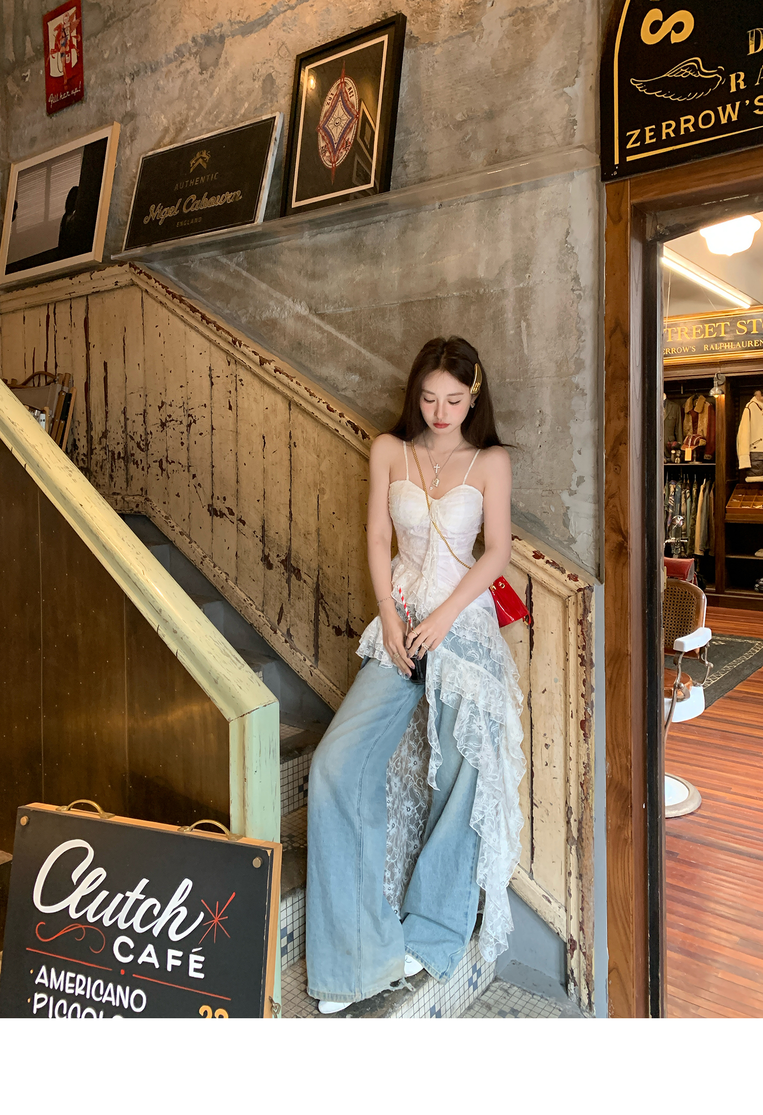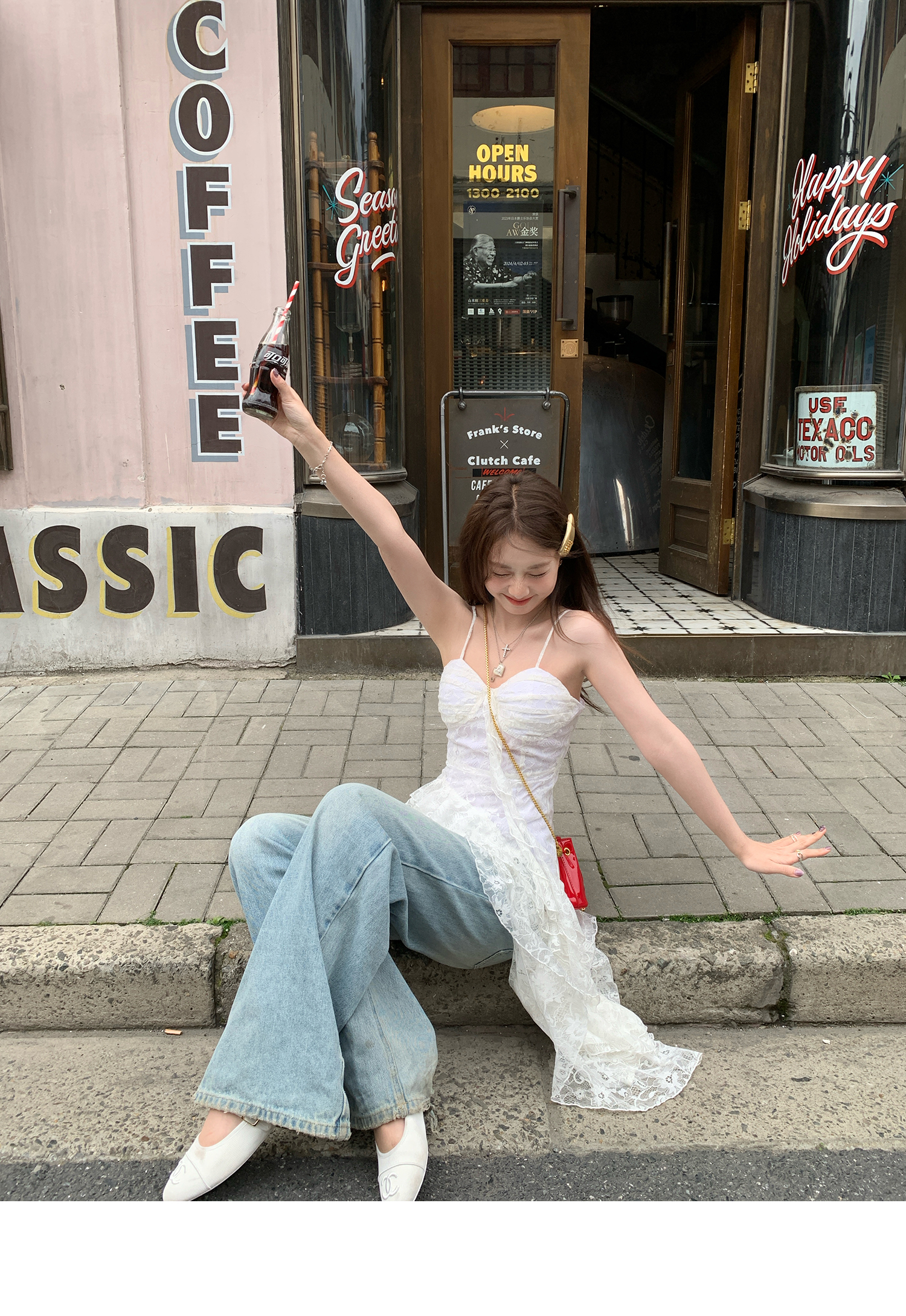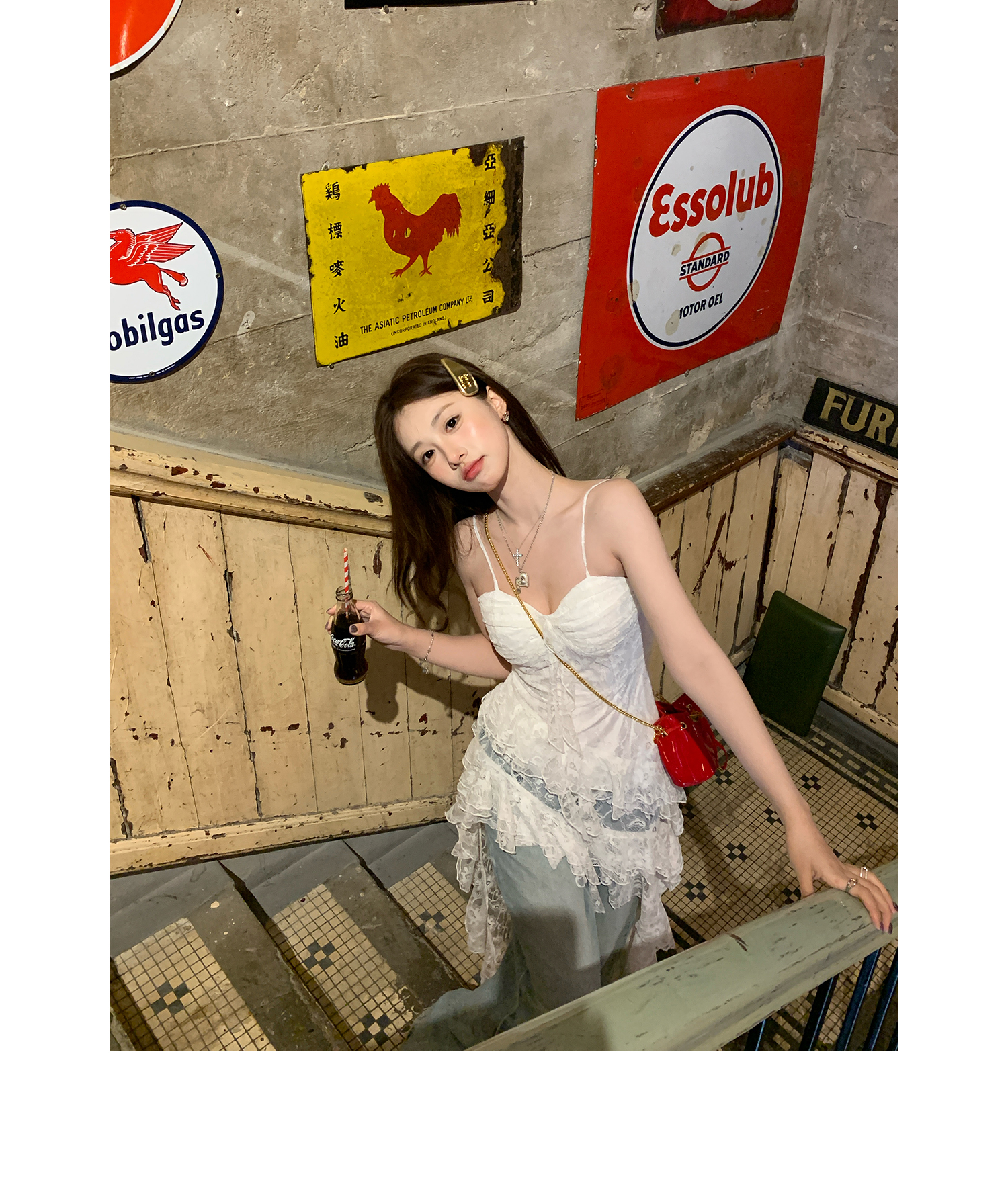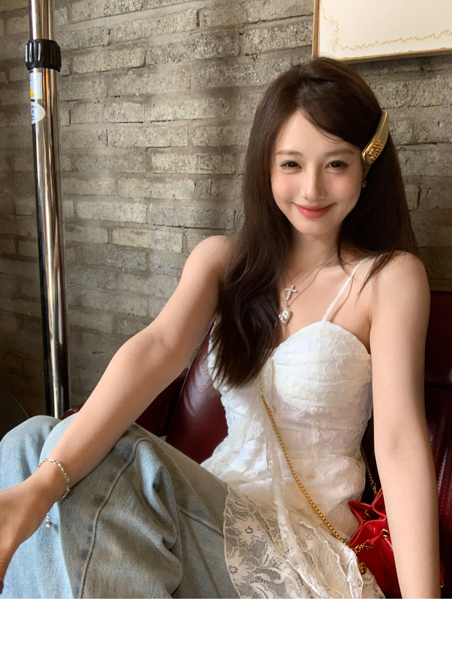 [Rebellious Couple] White Lace Irregular Layered Strap Dress - Summer Edition