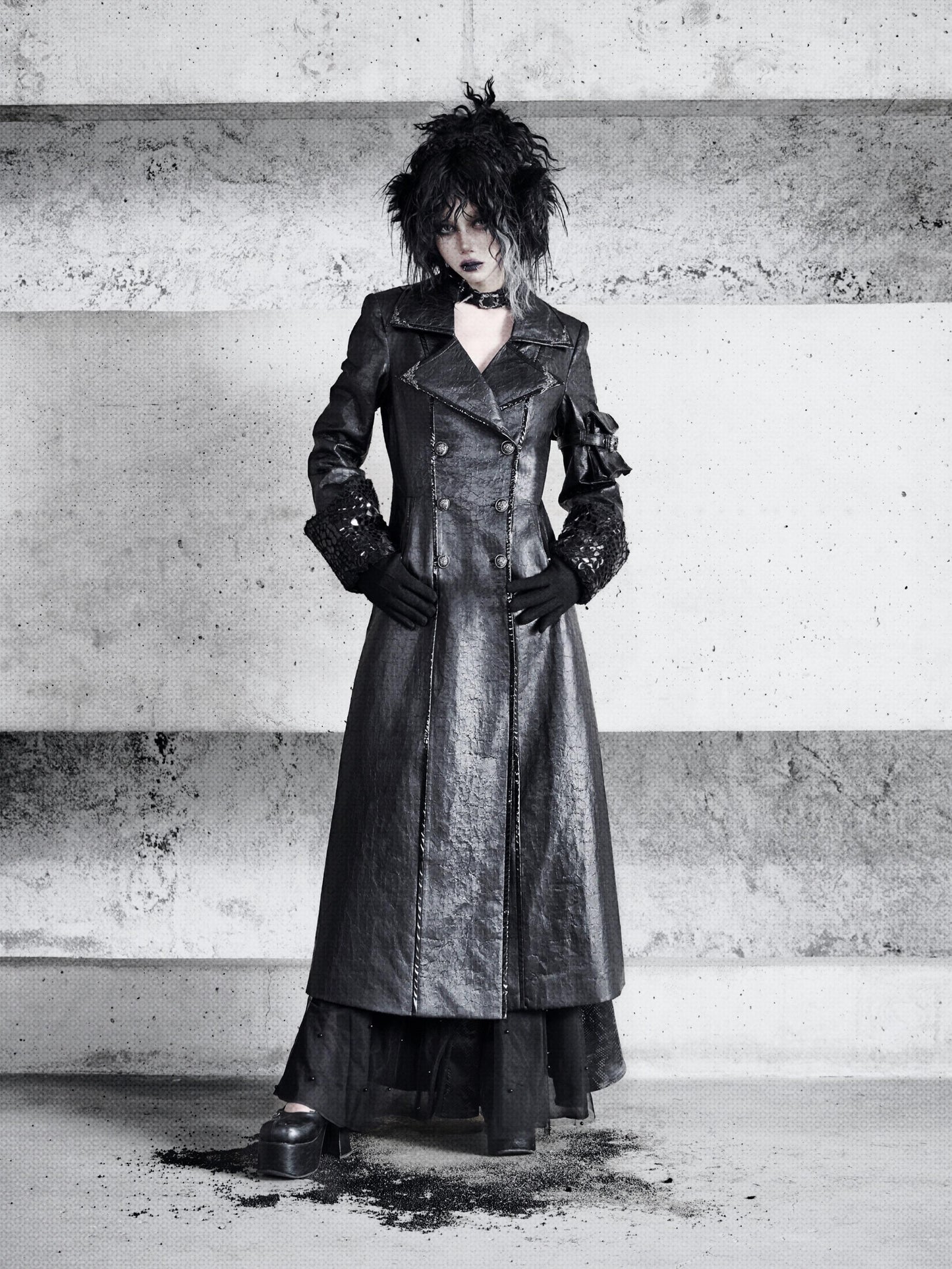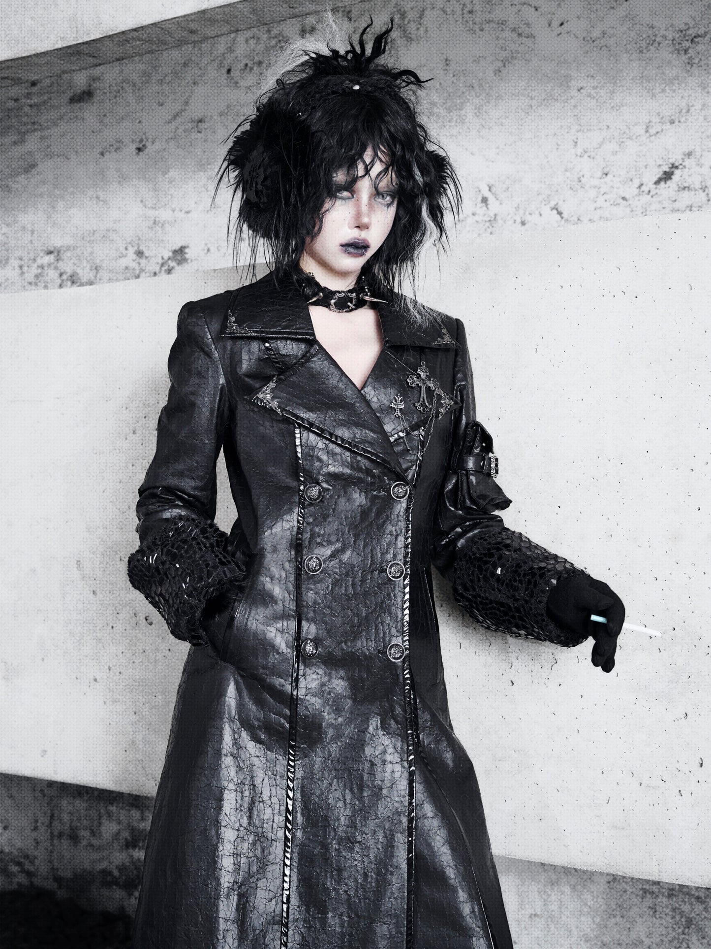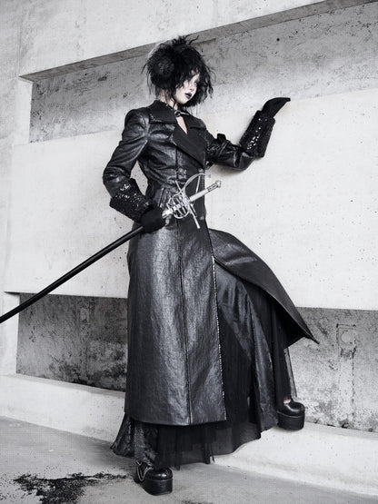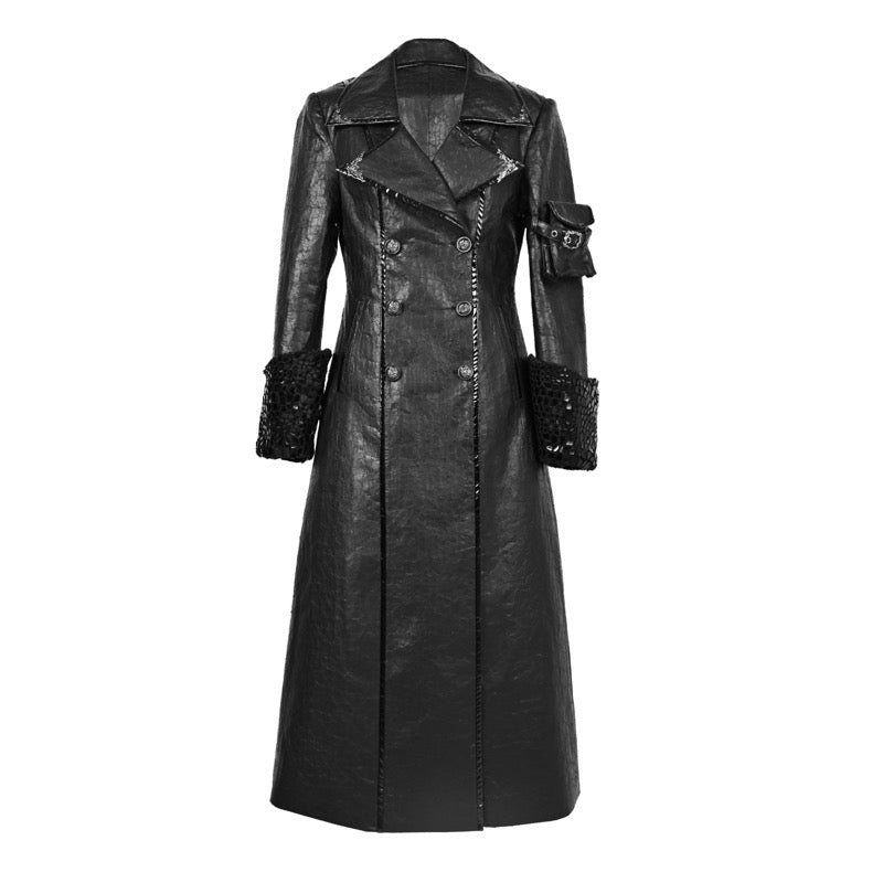 Gothic Crackle Leather Coat – Warm Lambswool Suit Jacket