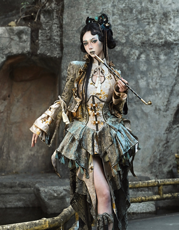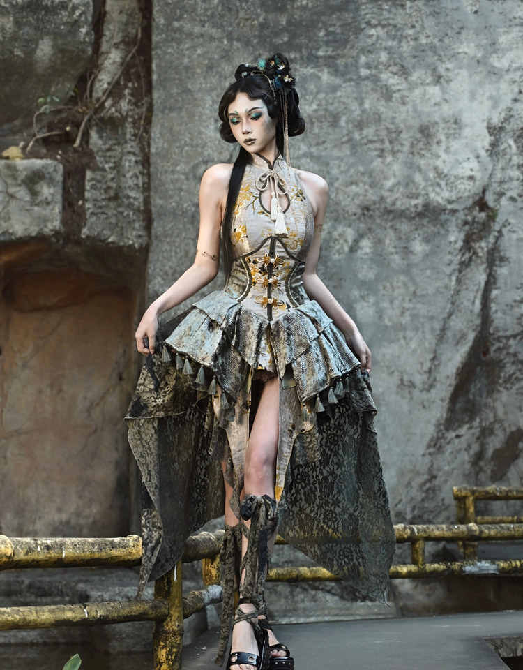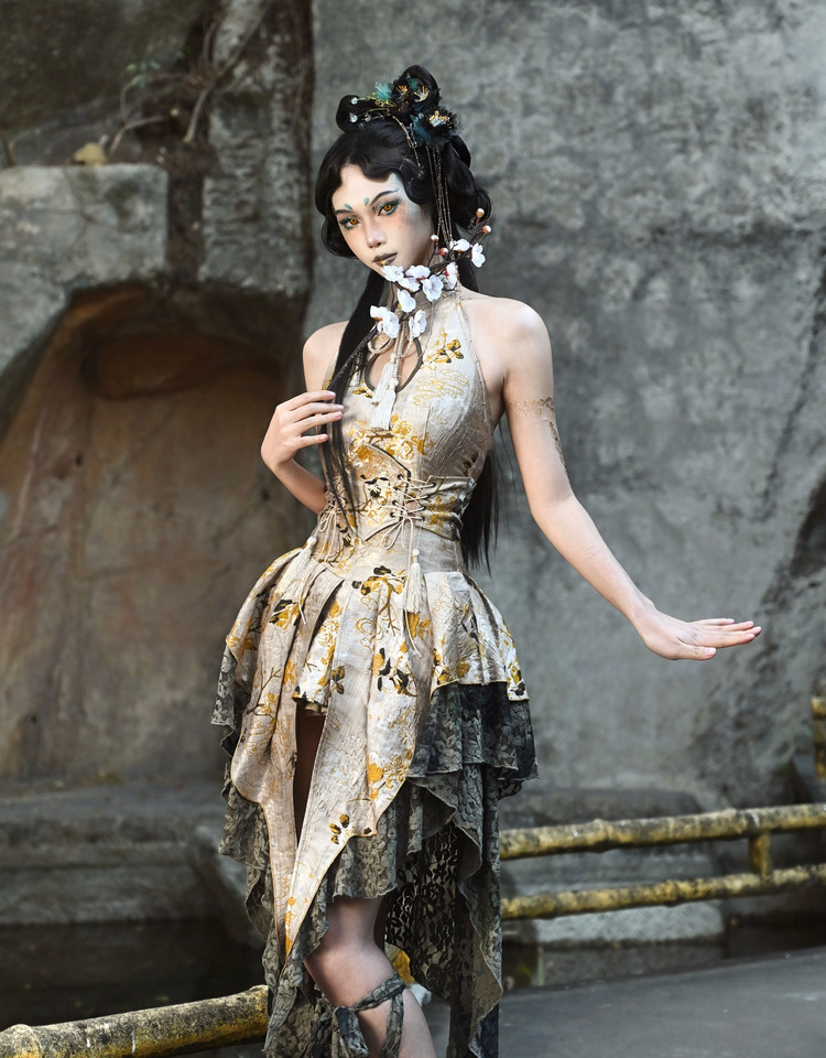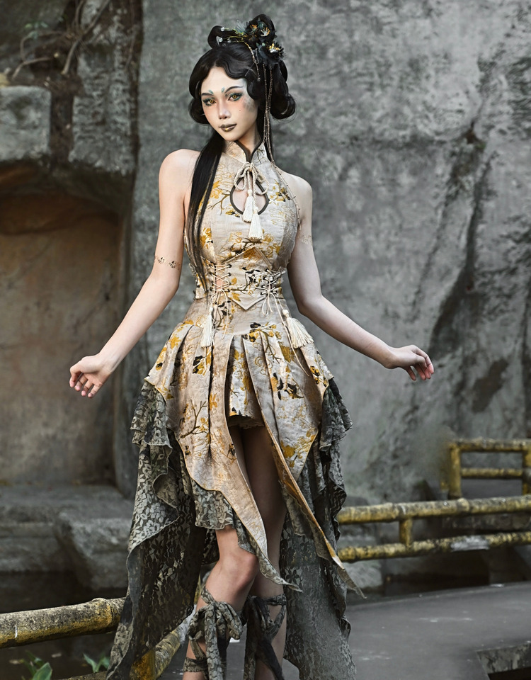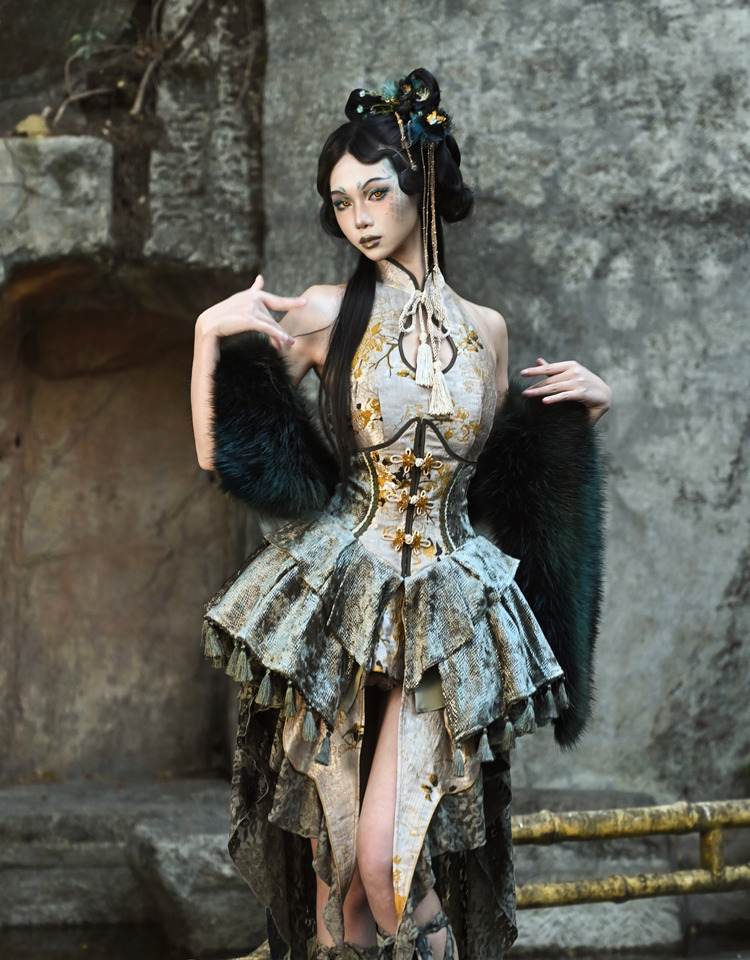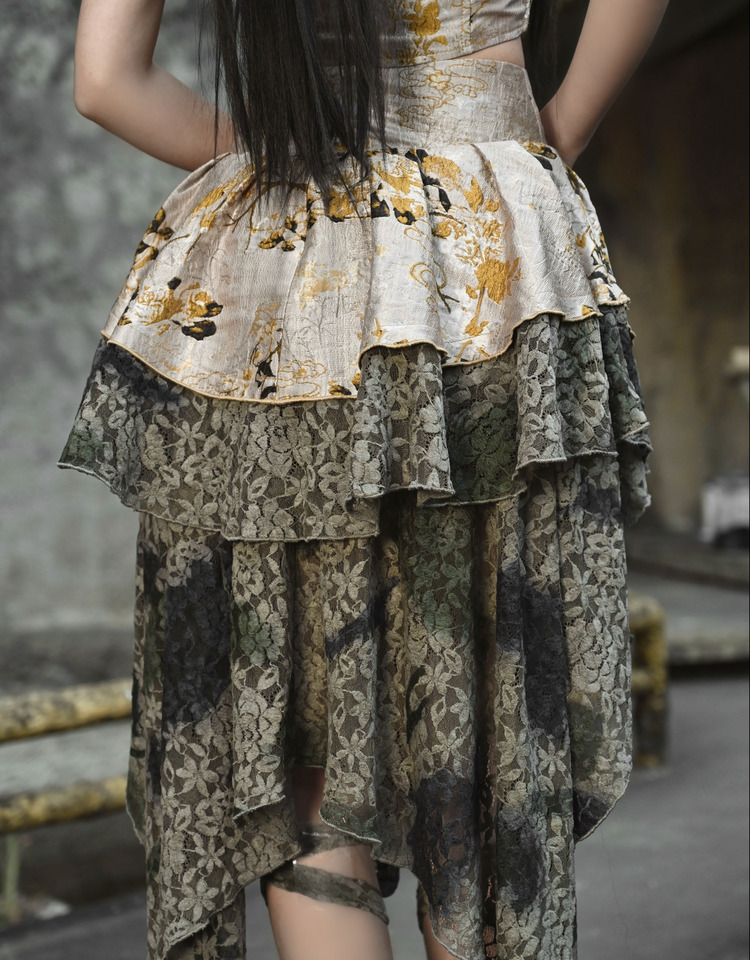 Spring Dragon Jacquard Chenille Lace Trailing Skirt