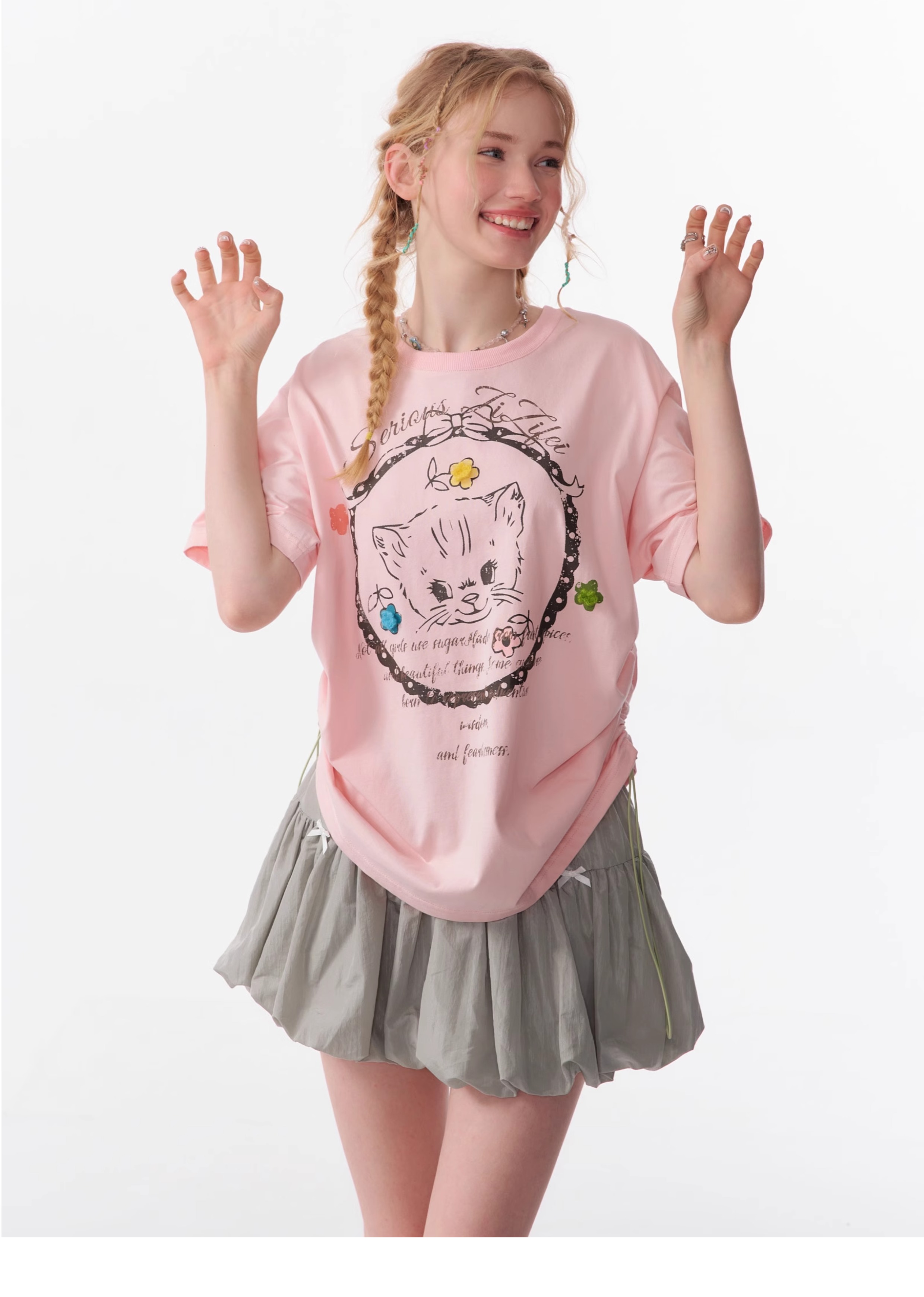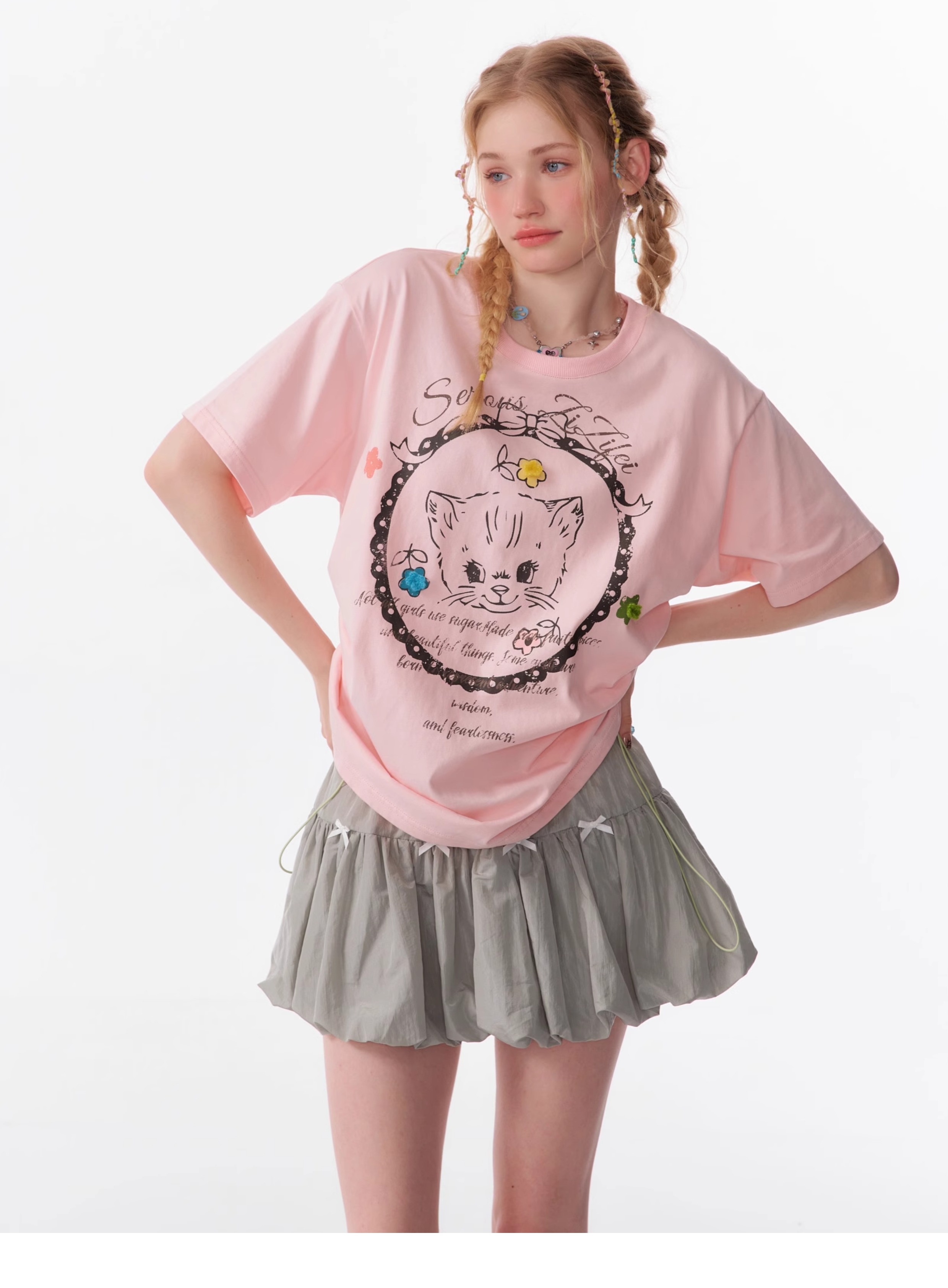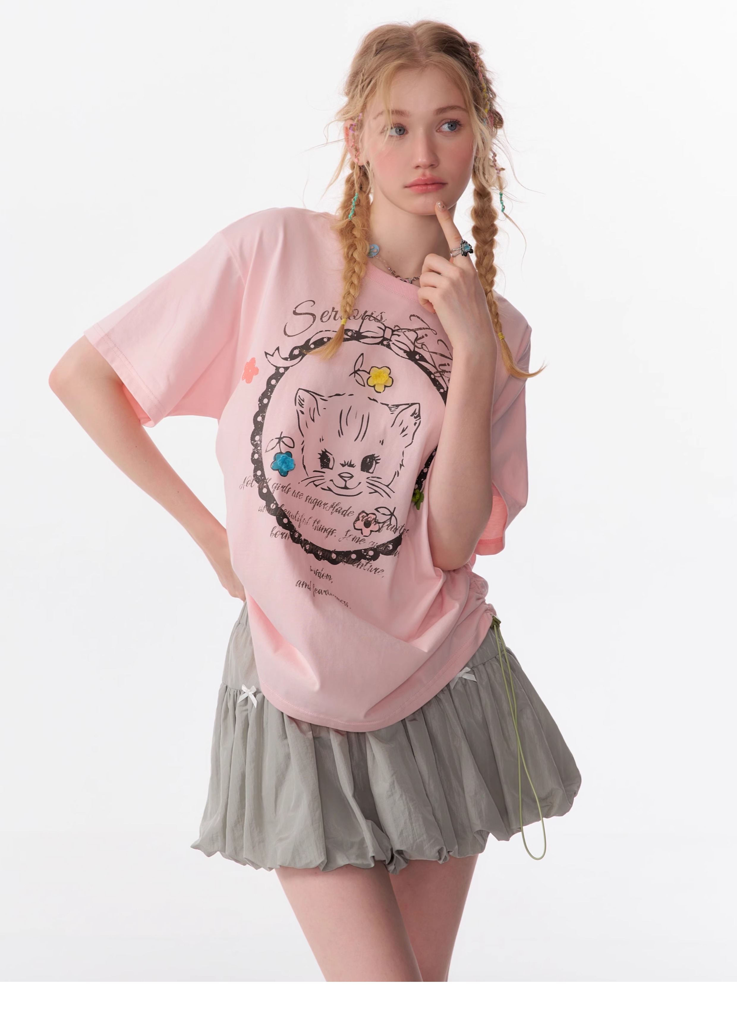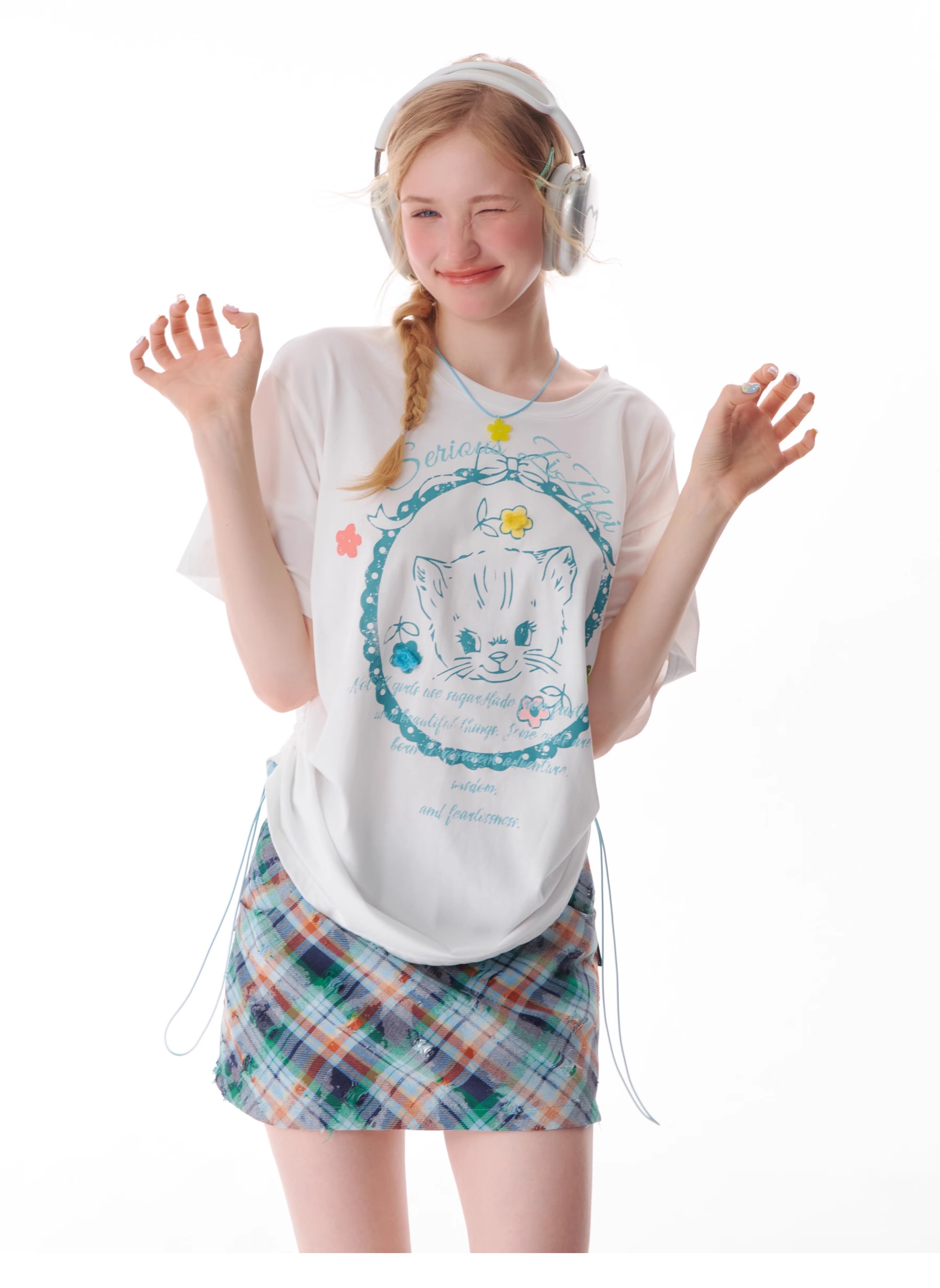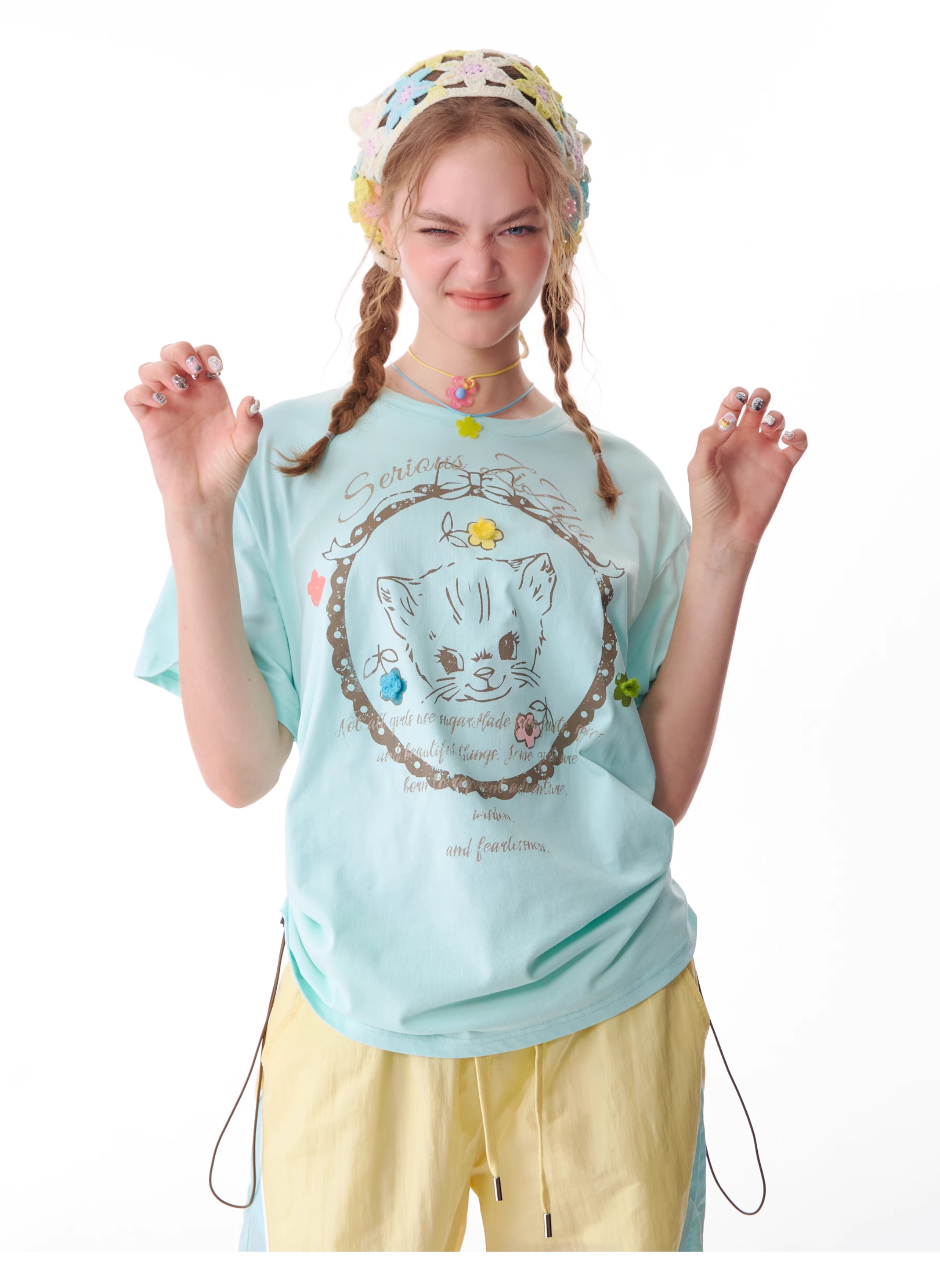 গ্রীষ্মের জন্য ক্যাট প্রিন্ট ঢিলেঢালা টি-শার্ট |