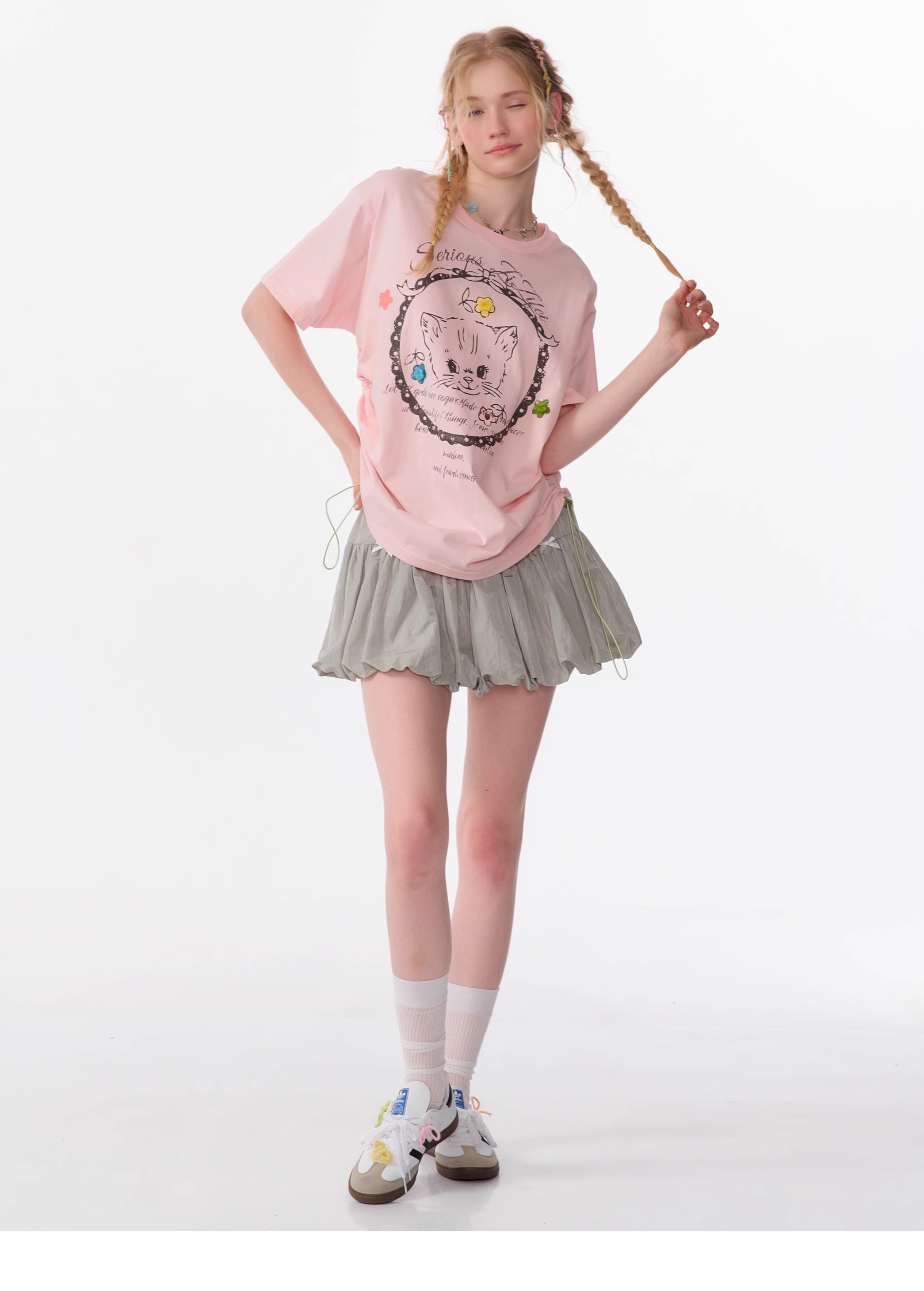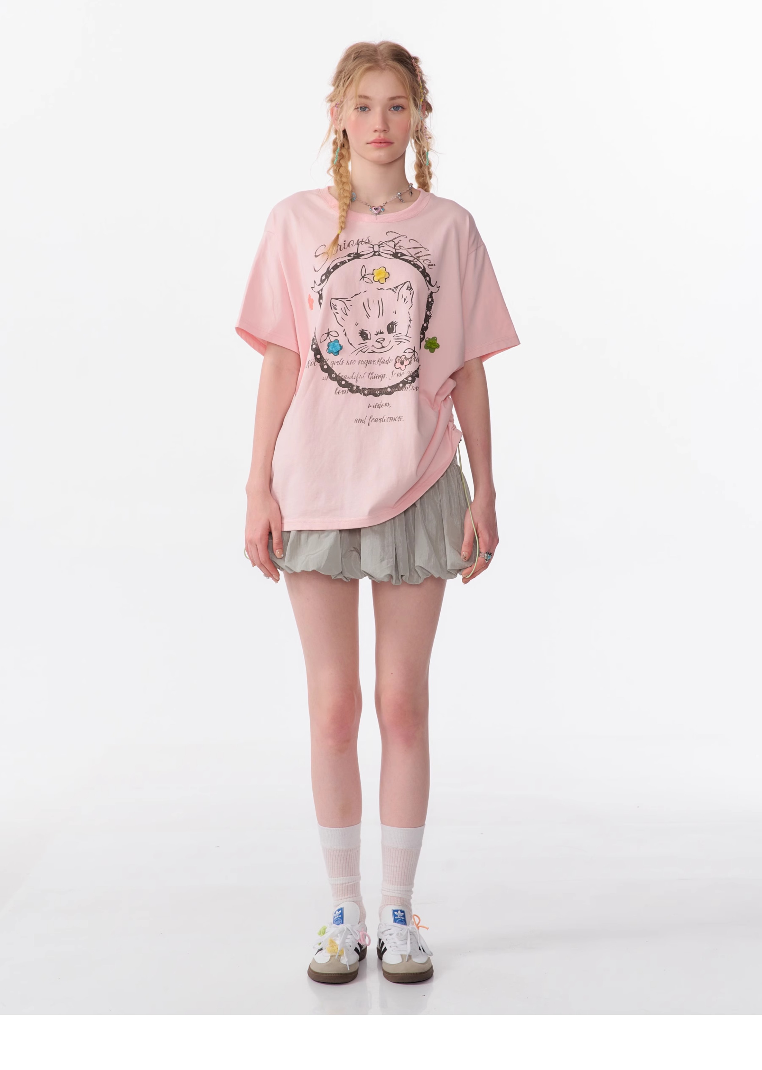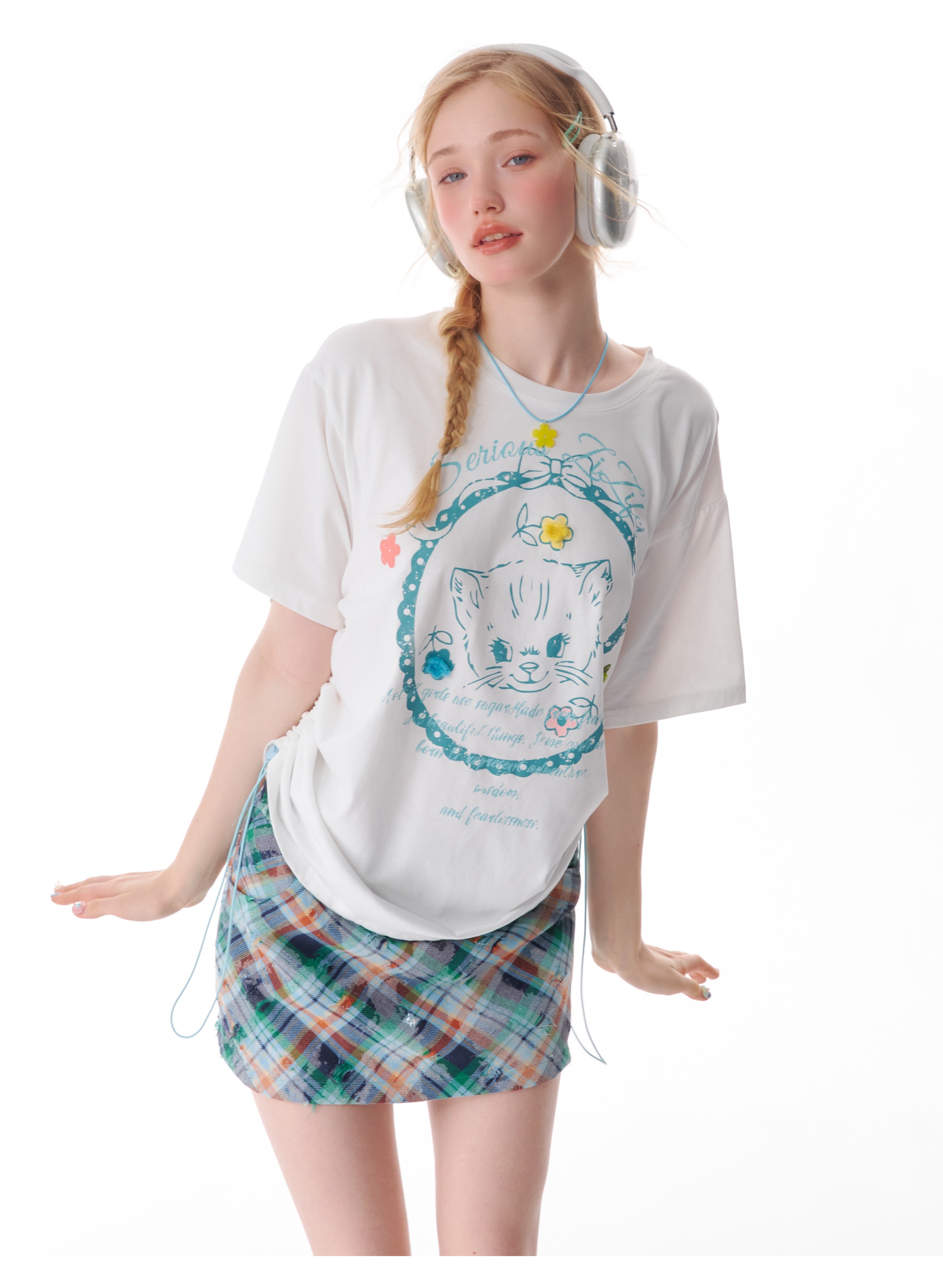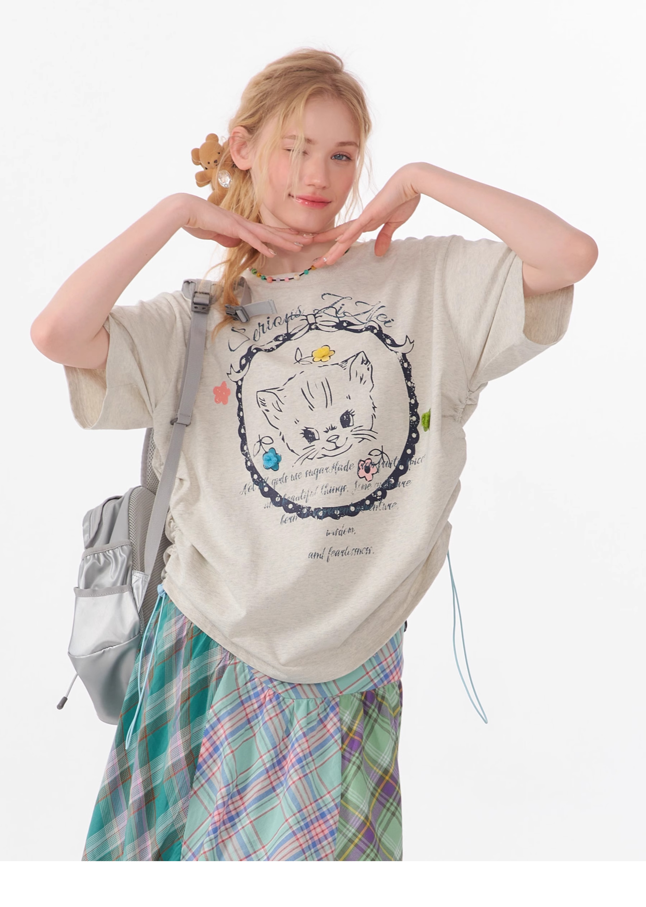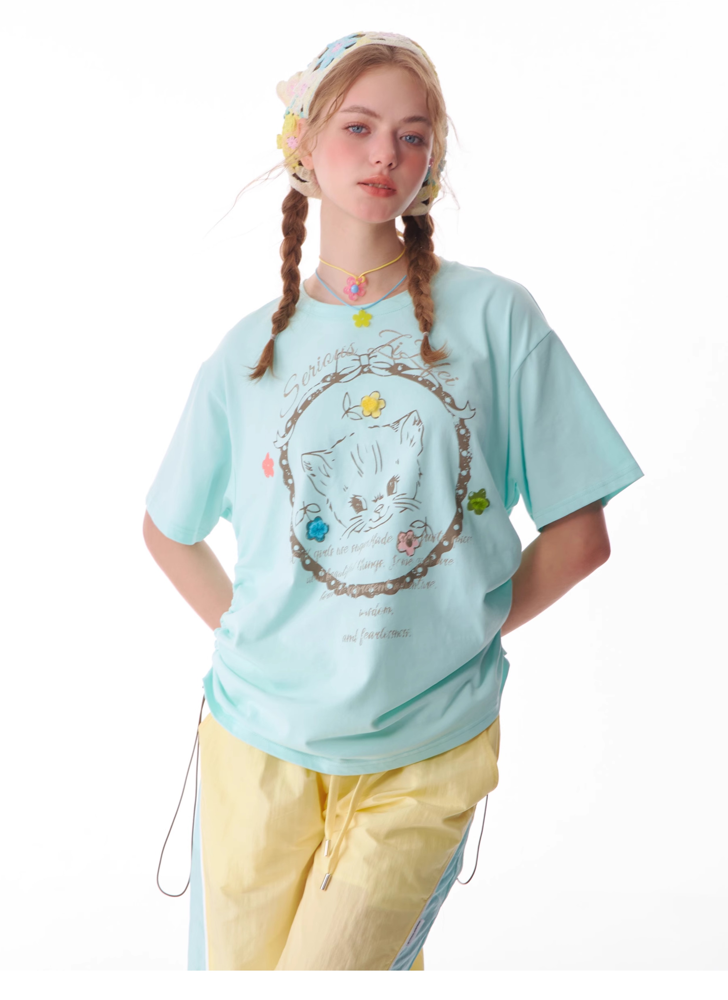 গ্রীষ্মের জন্য ক্যাট প্রিন্ট ঢিলেঢালা টি-শার্ট |