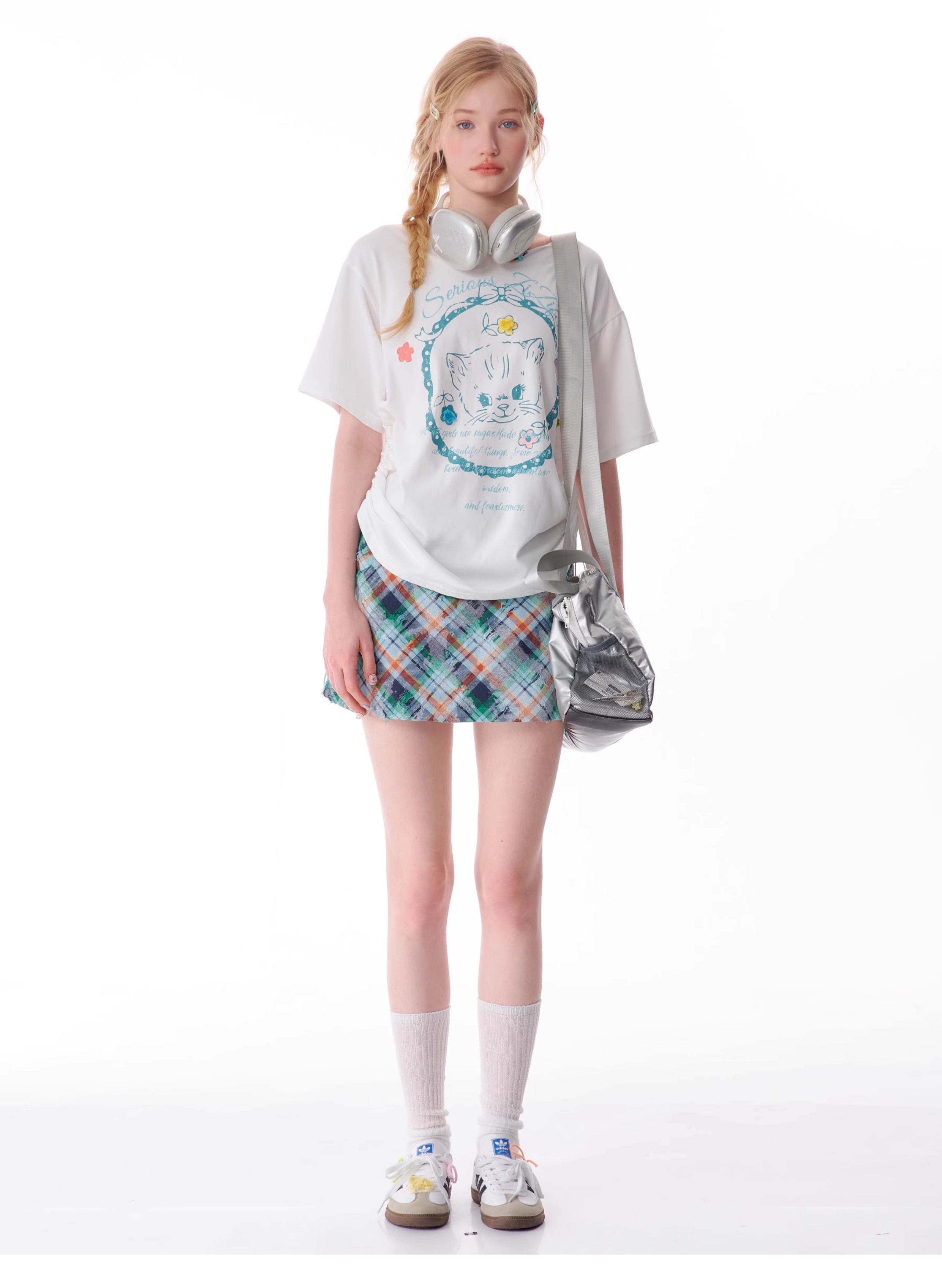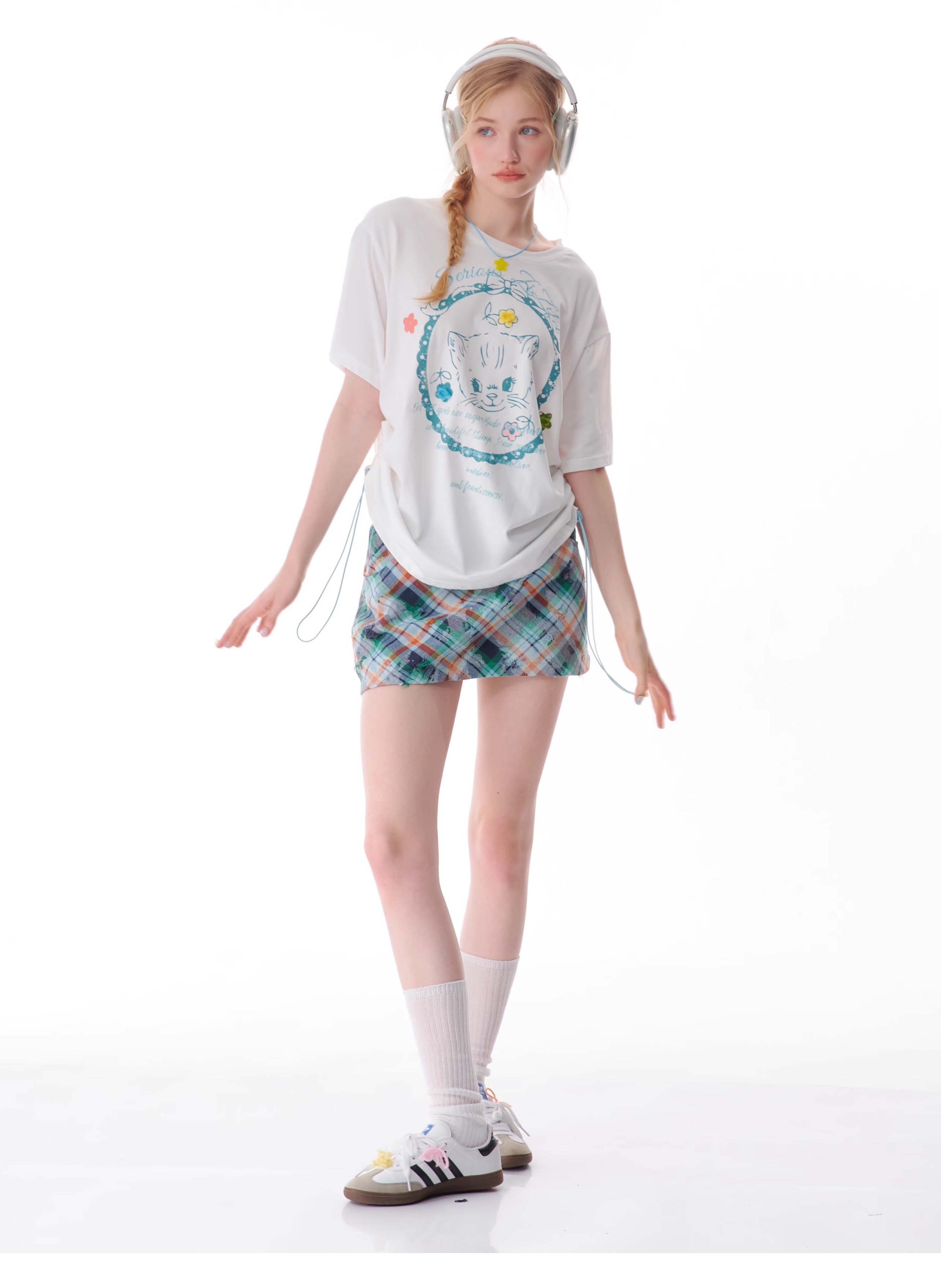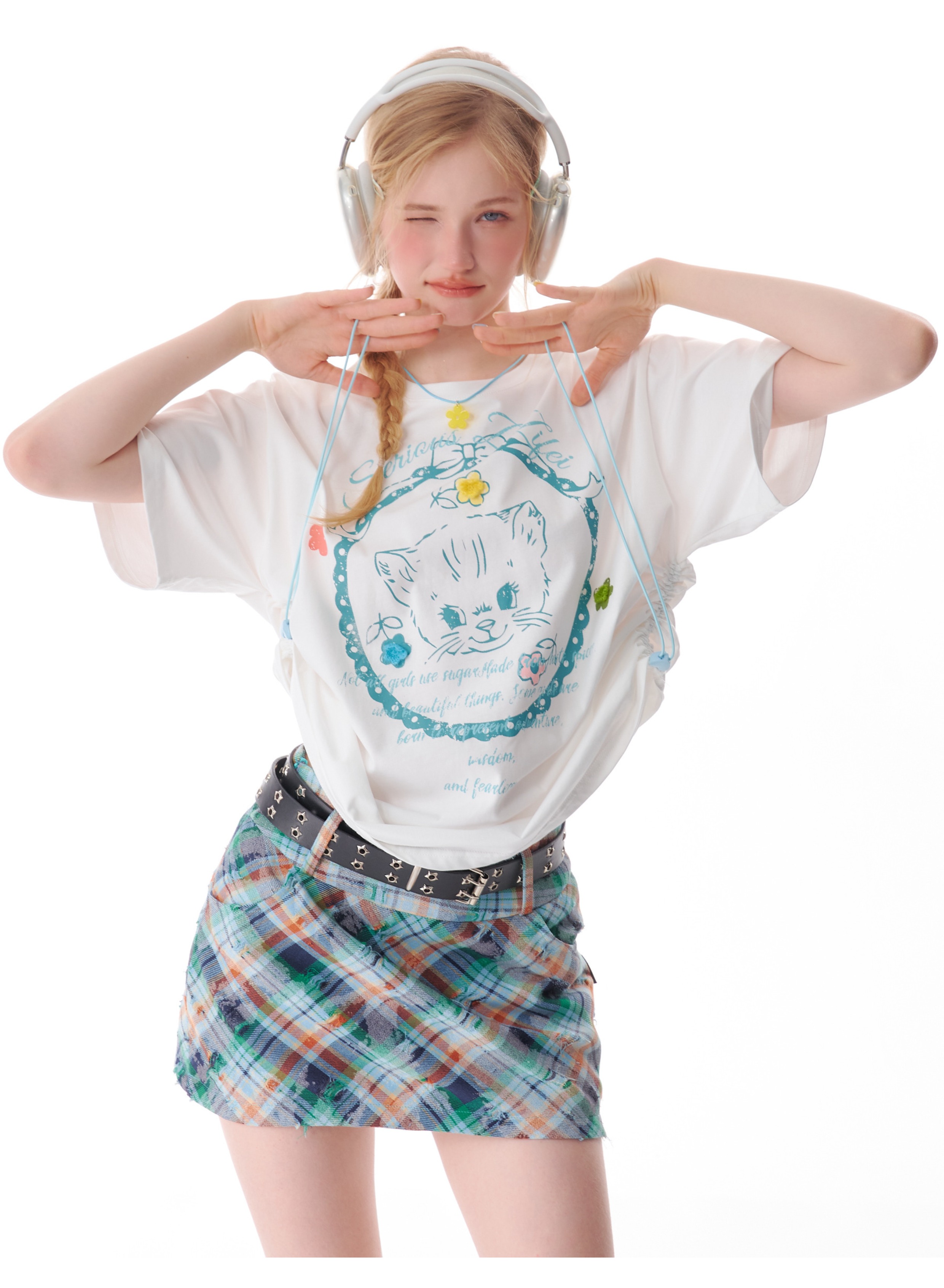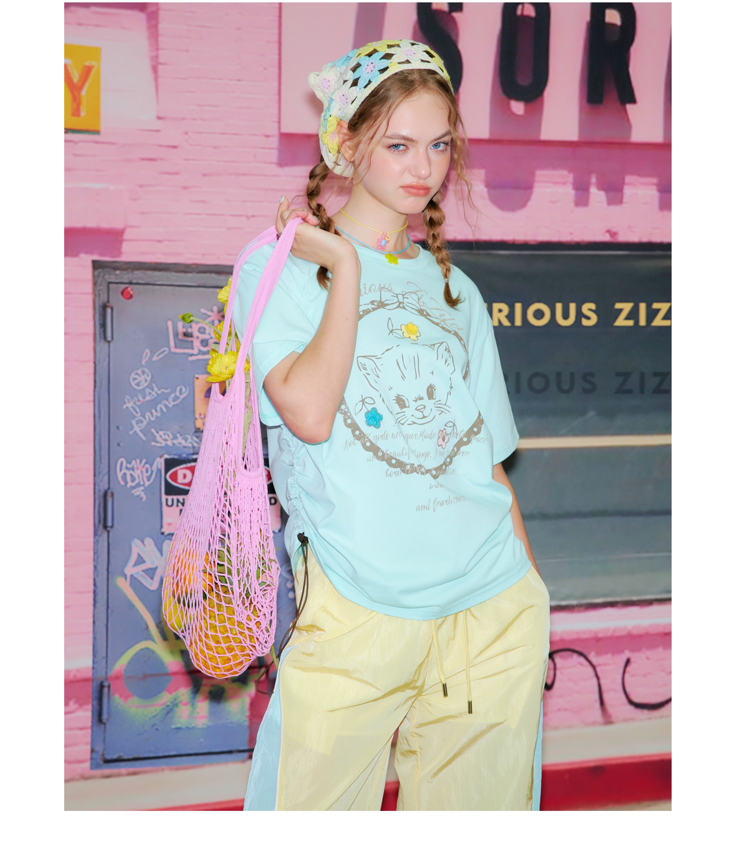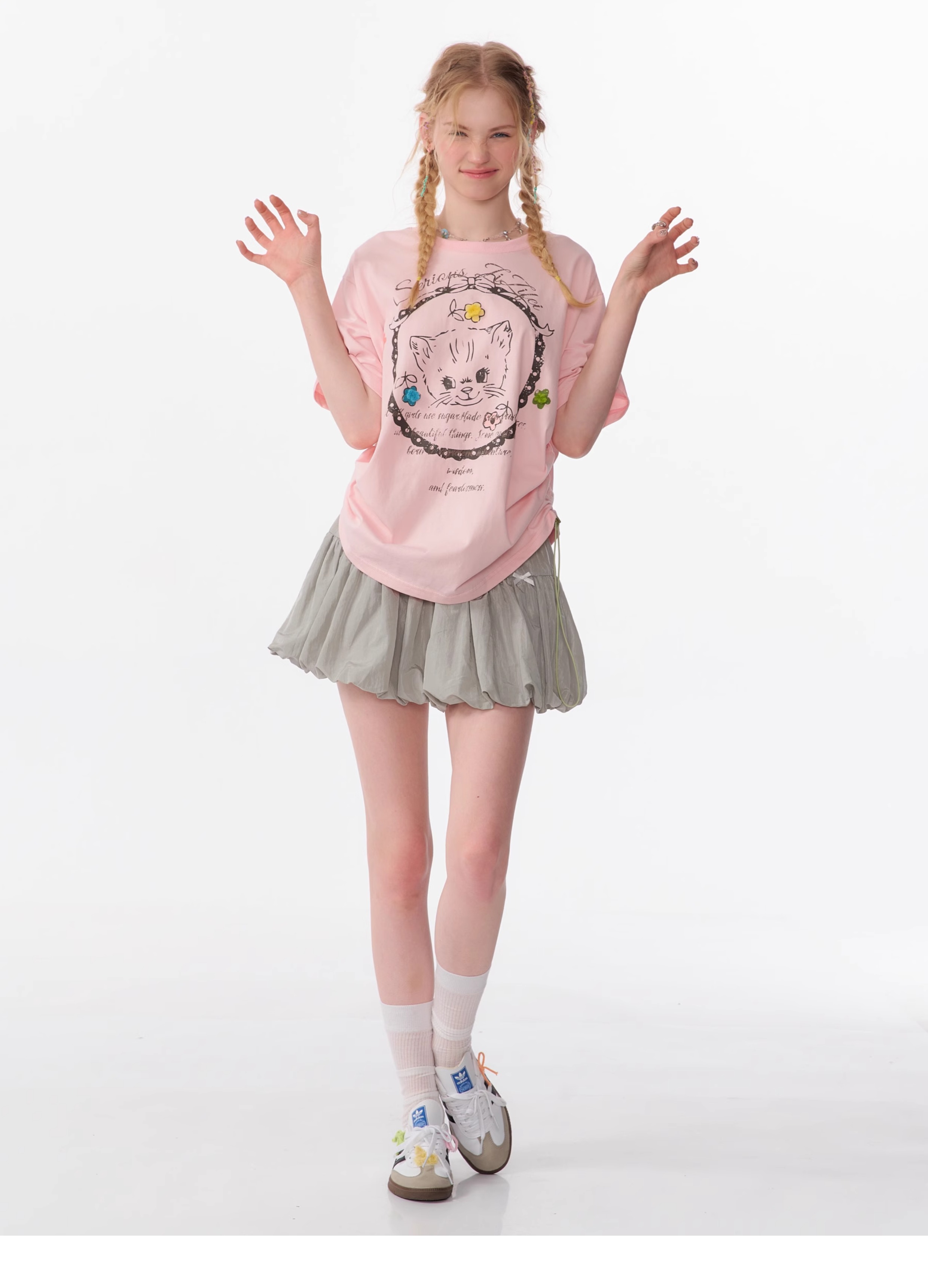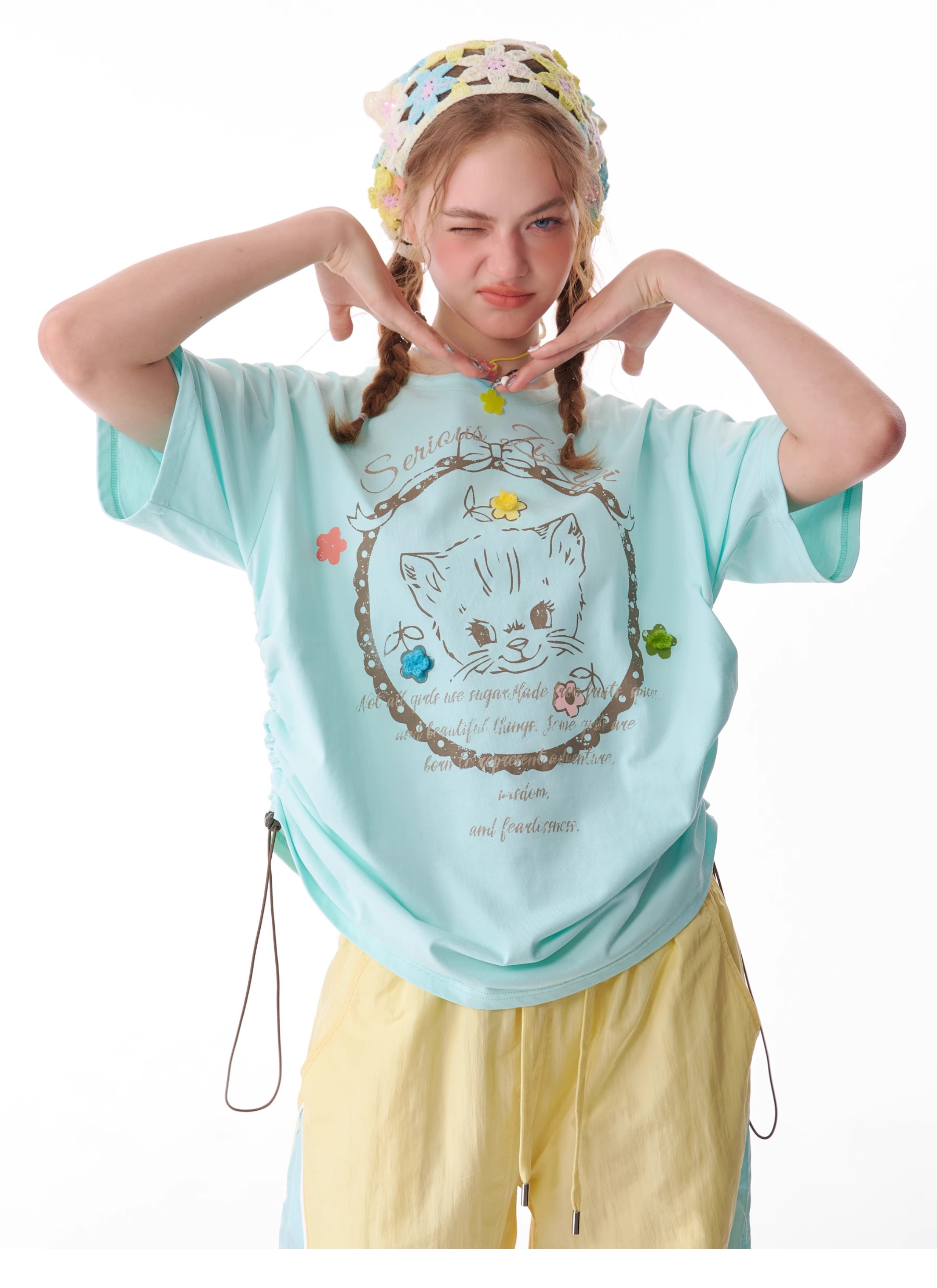 গ্রীষ্মের জন্য ক্যাট প্রিন্ট ঢিলেঢালা টি-শার্ট |