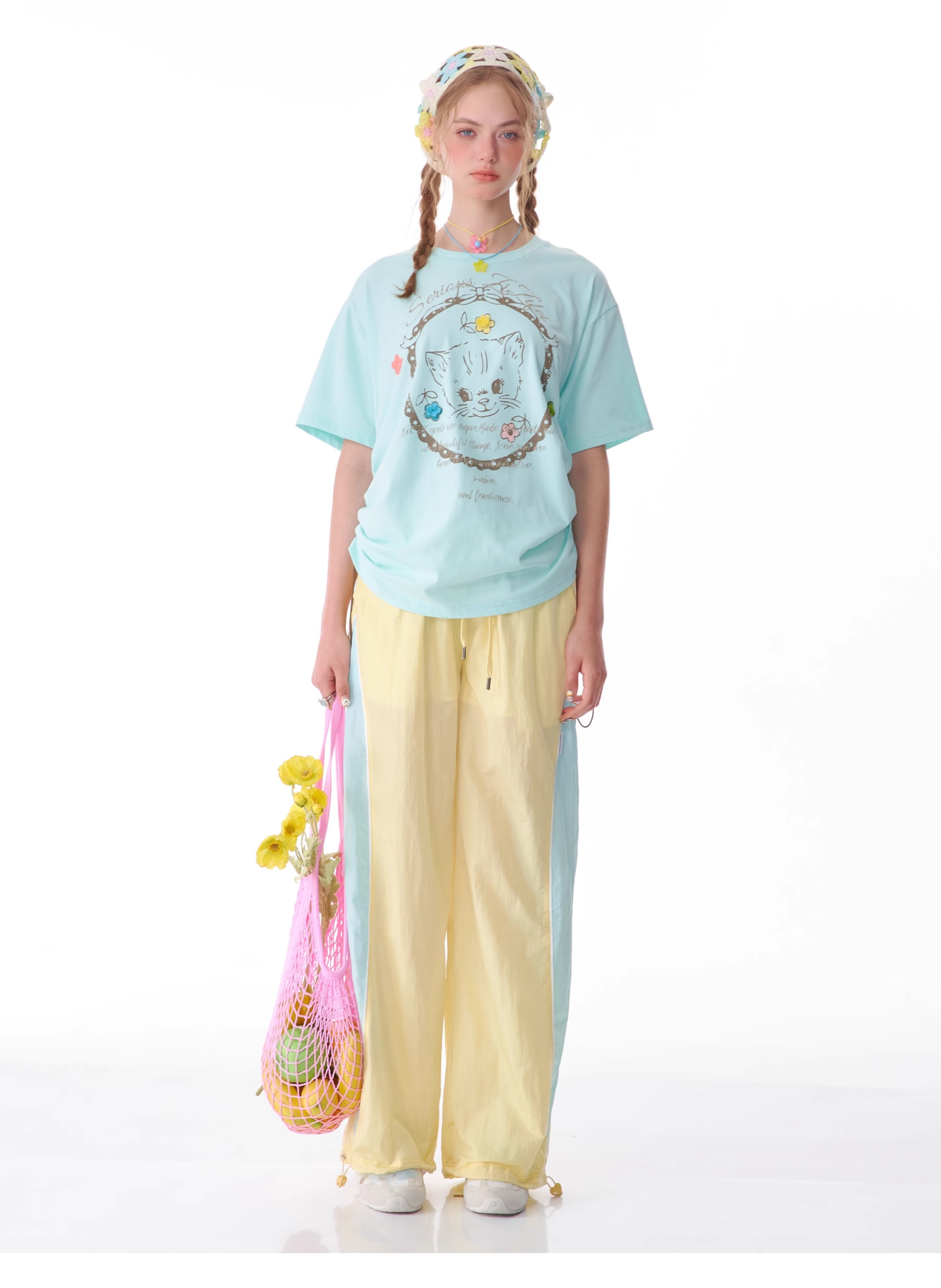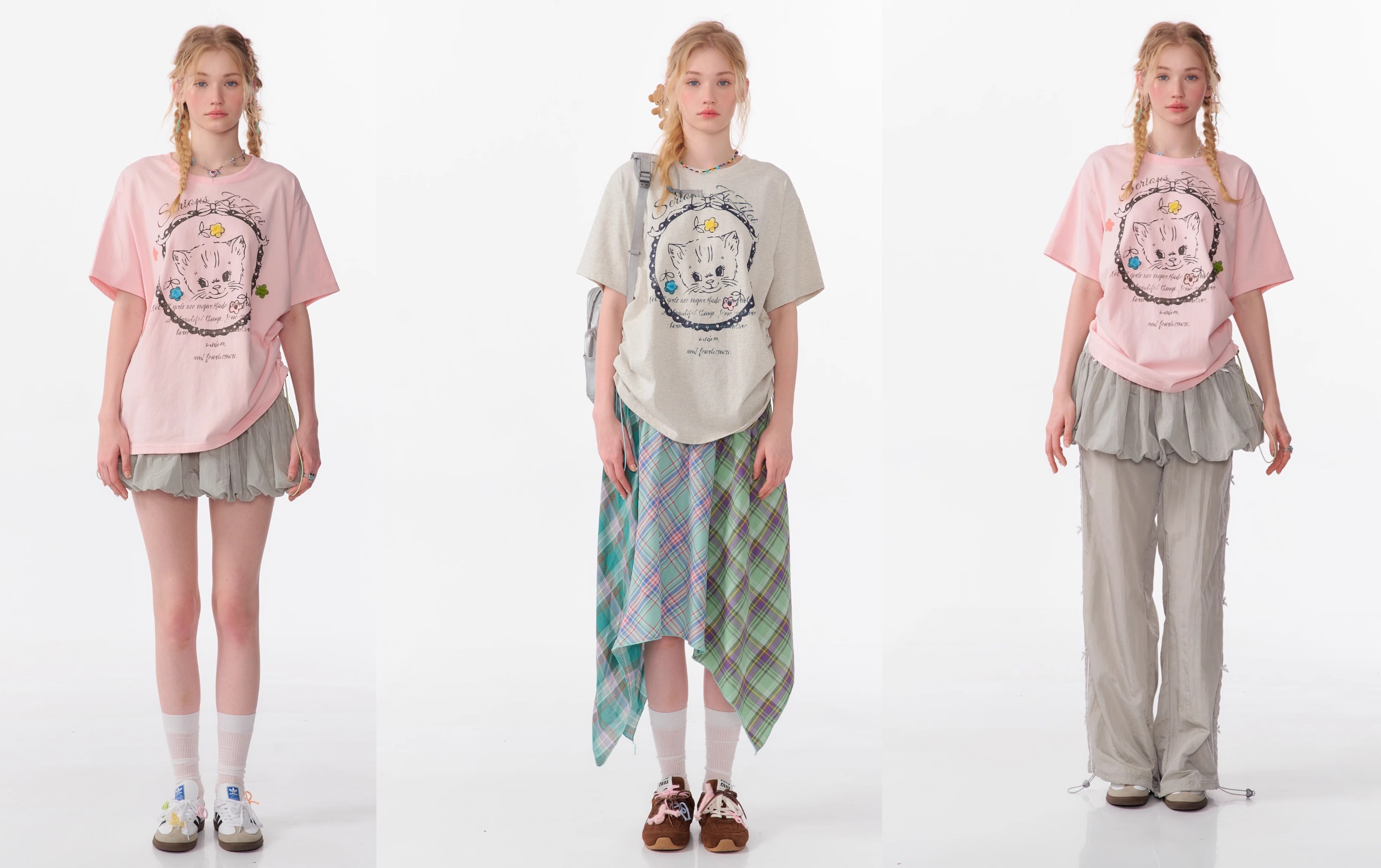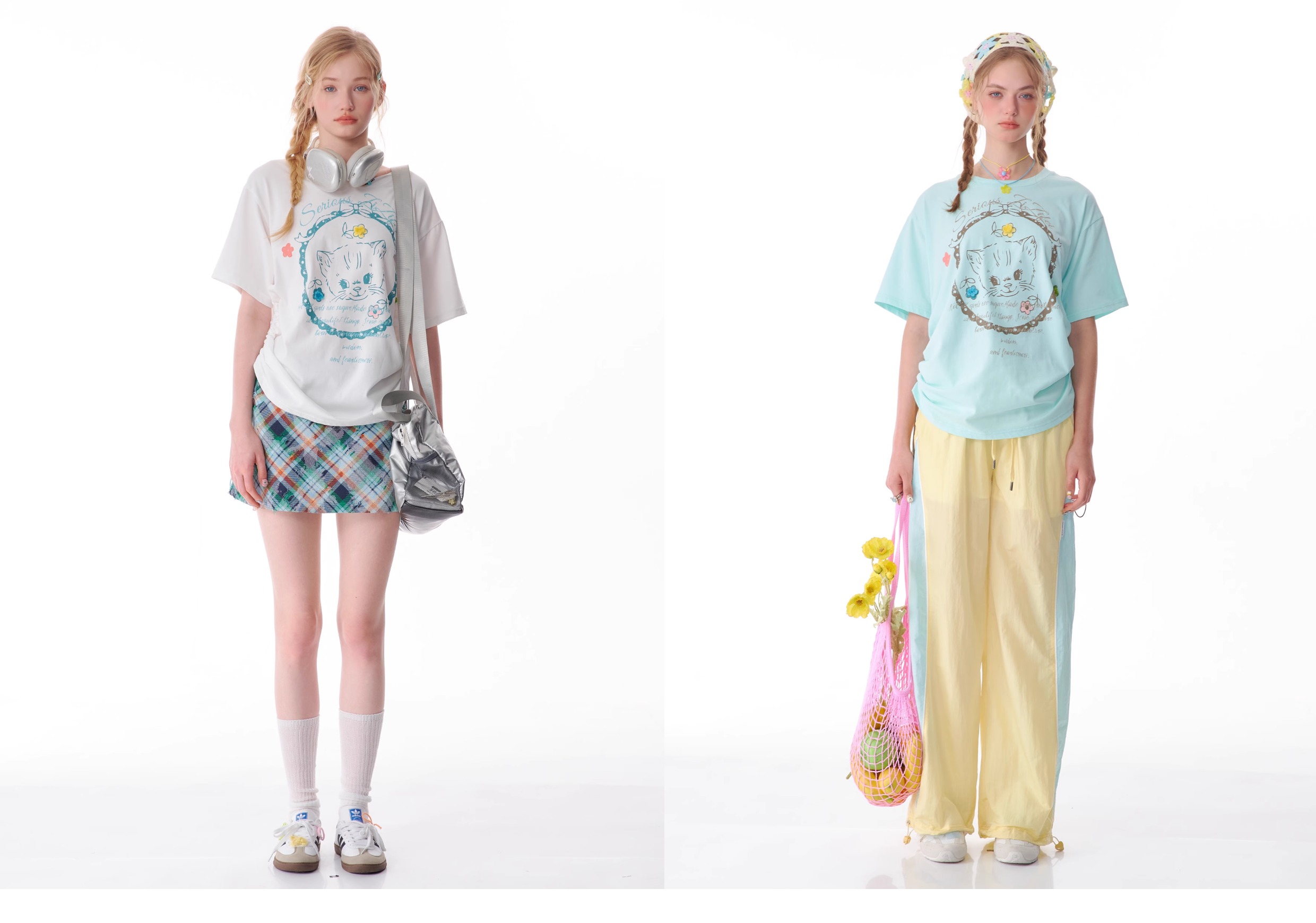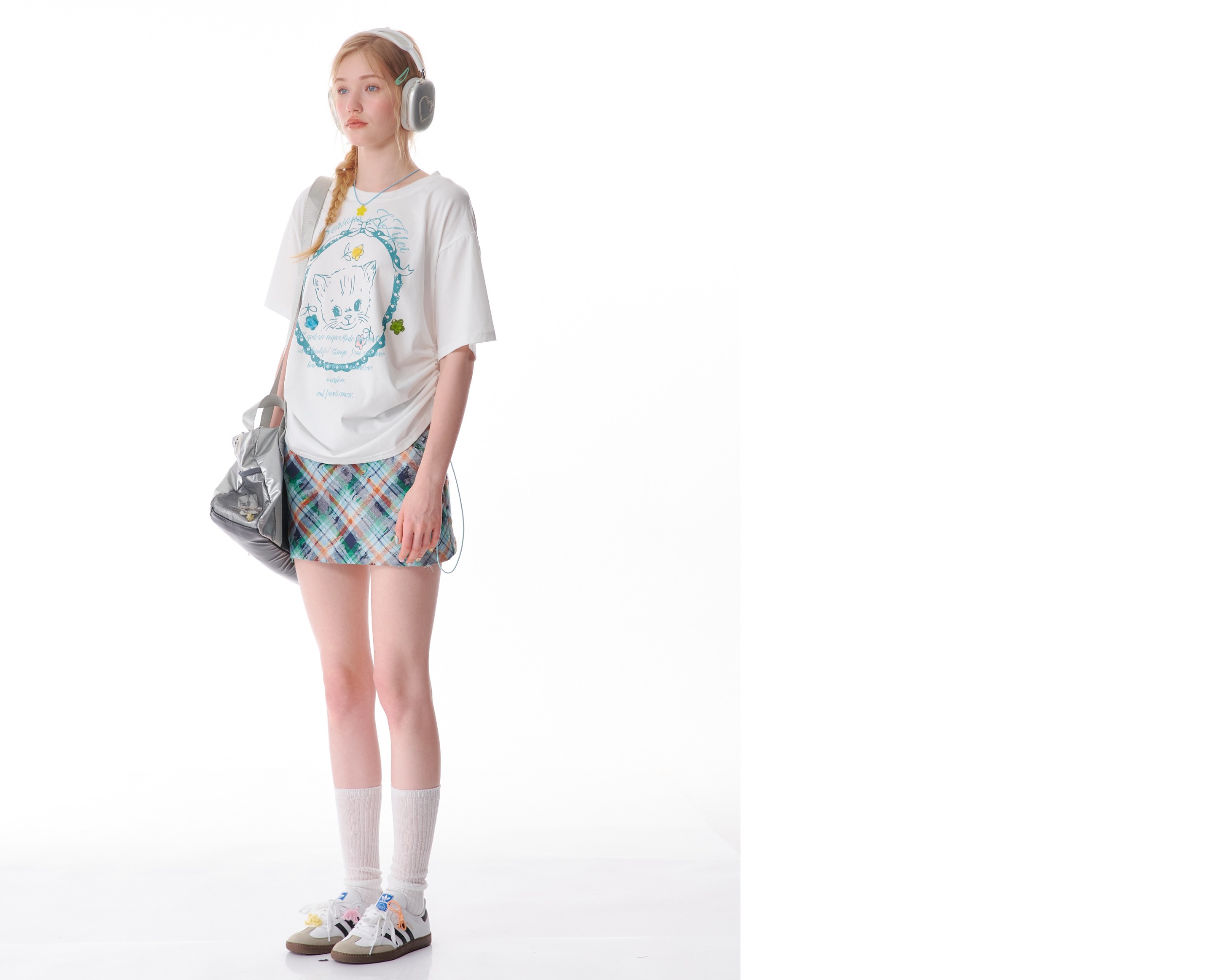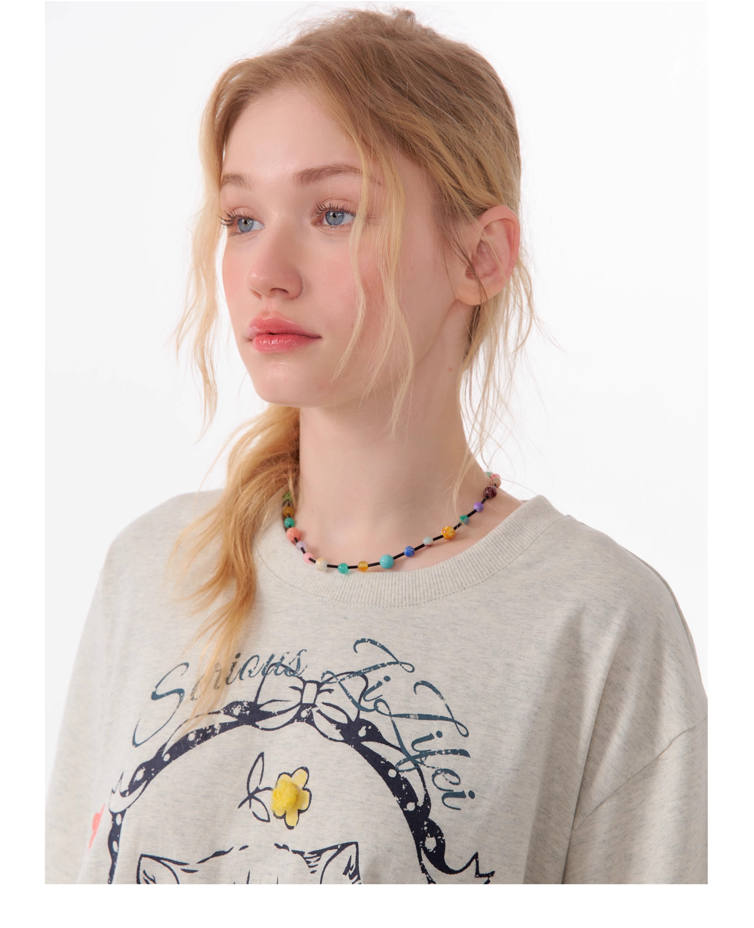 গ্রীষ্মের জন্য ক্যাট প্রিন্ট ঢিলেঢালা টি-শার্ট |