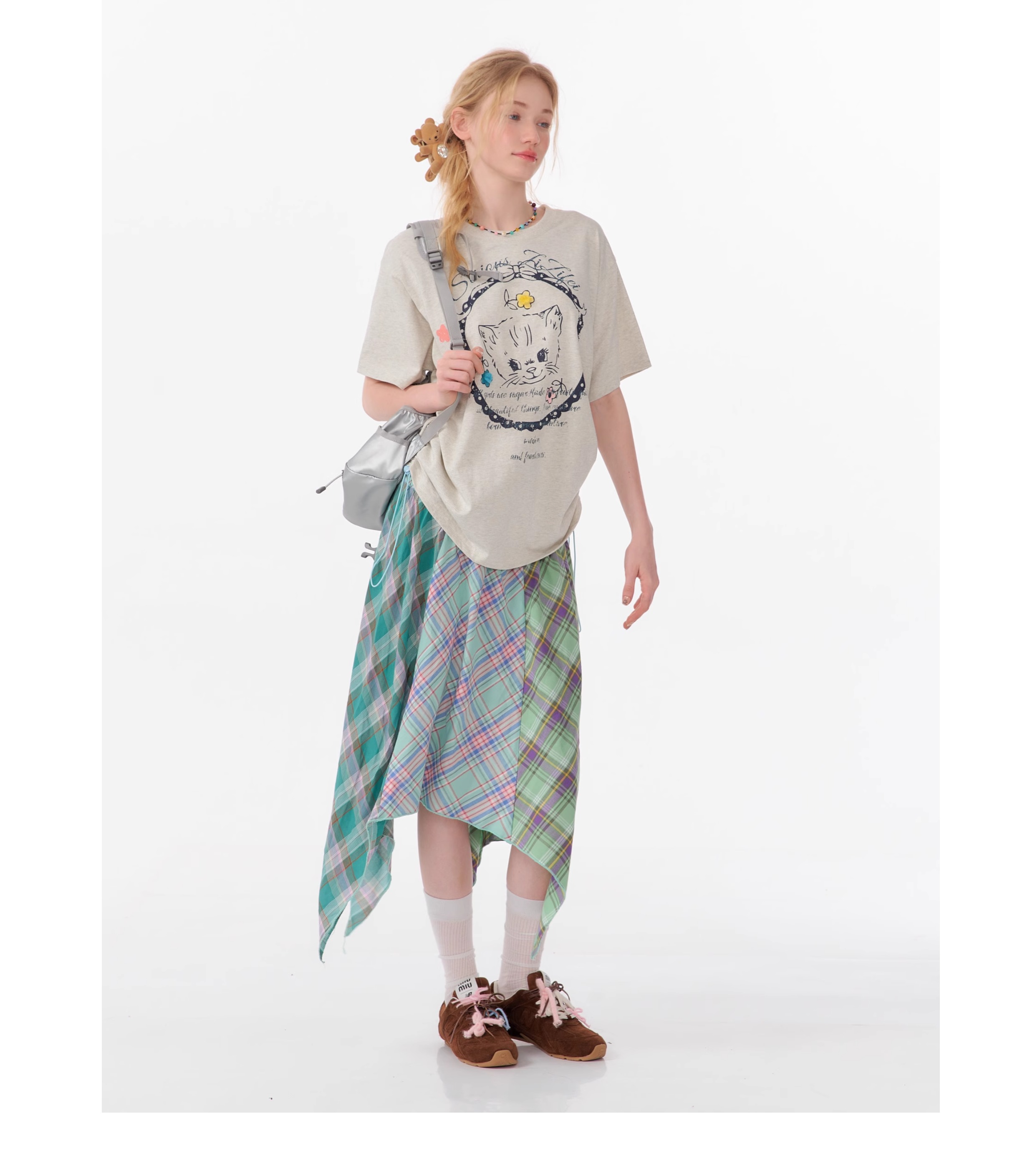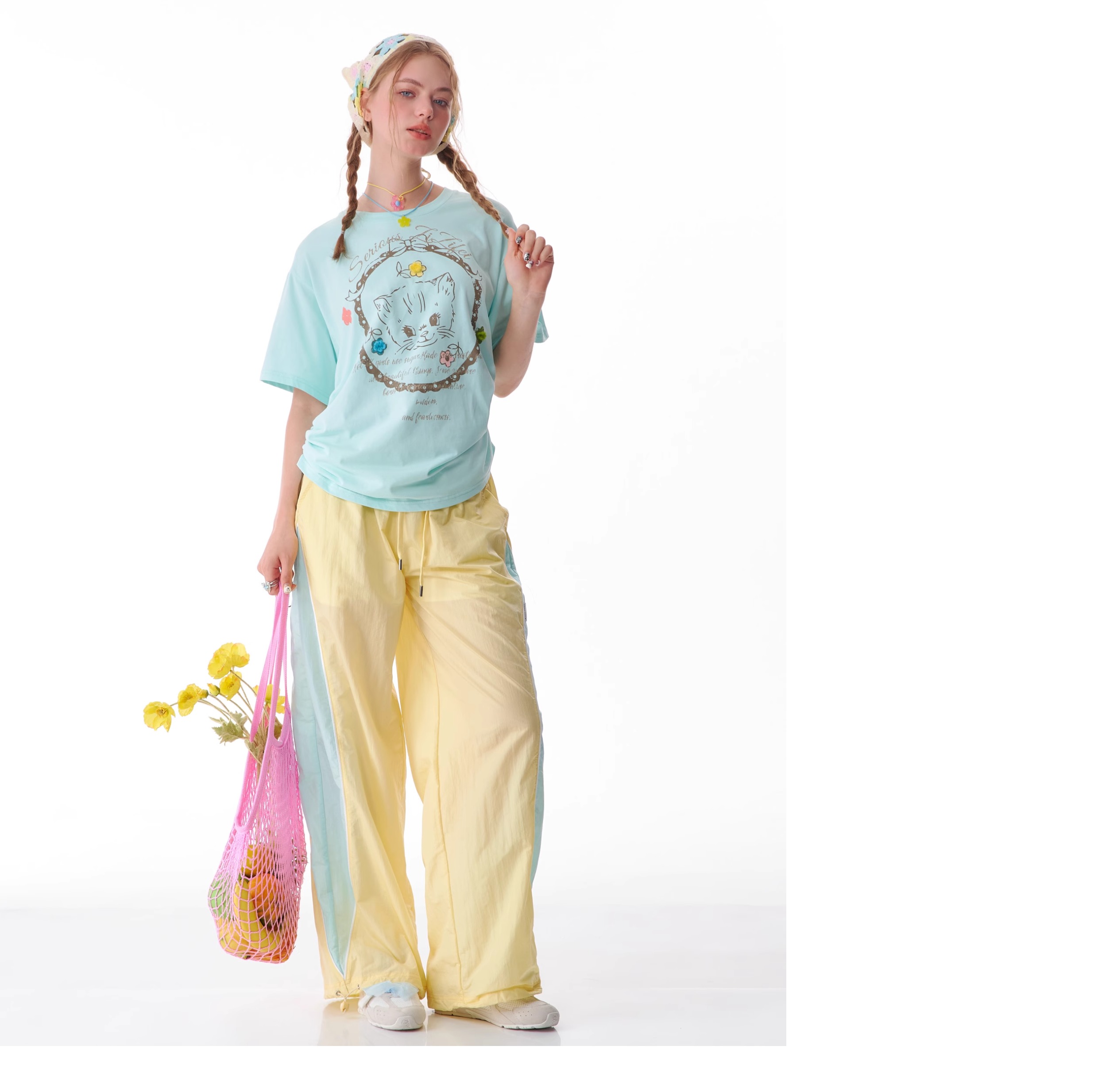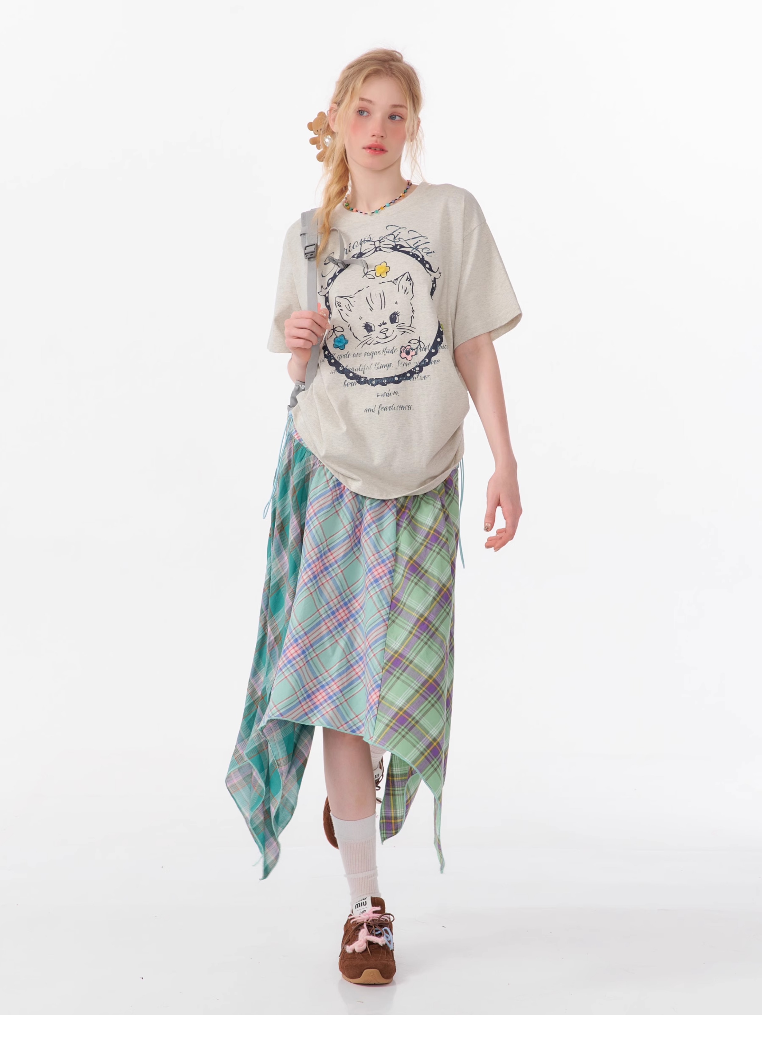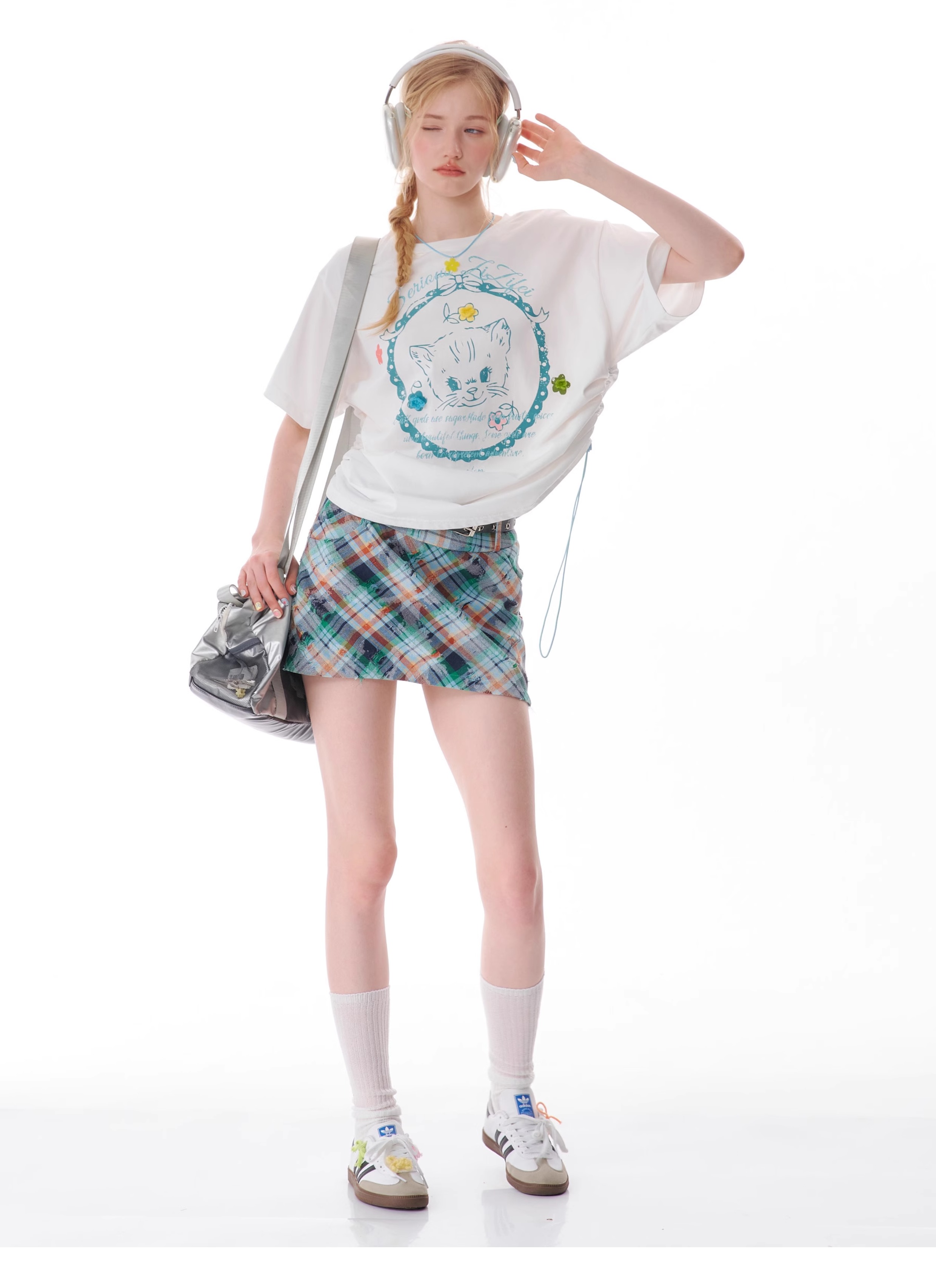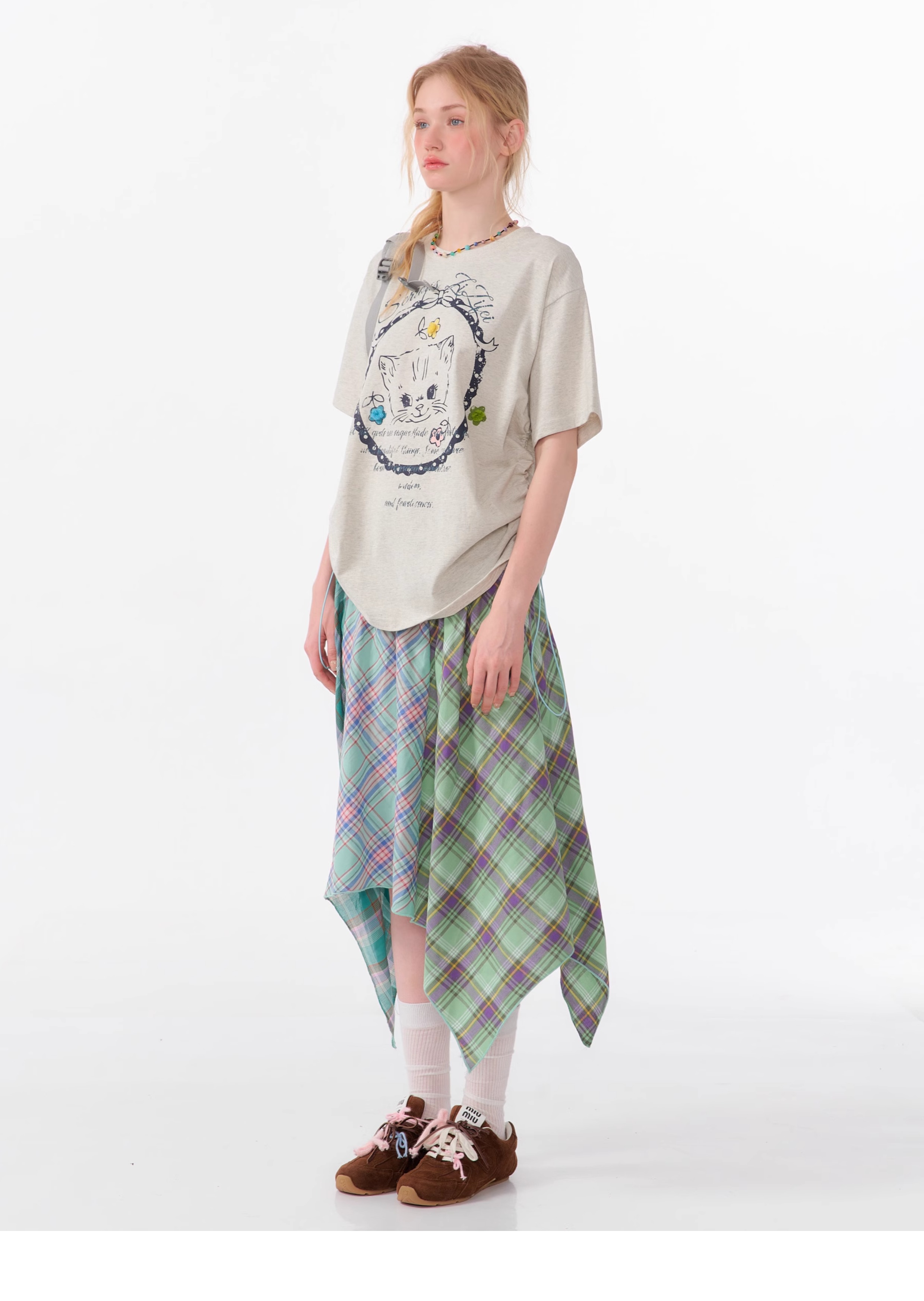 গ্রীষ্মের জন্য ক্যাট প্রিন্ট ঢিলেঢালা টি-শার্ট |