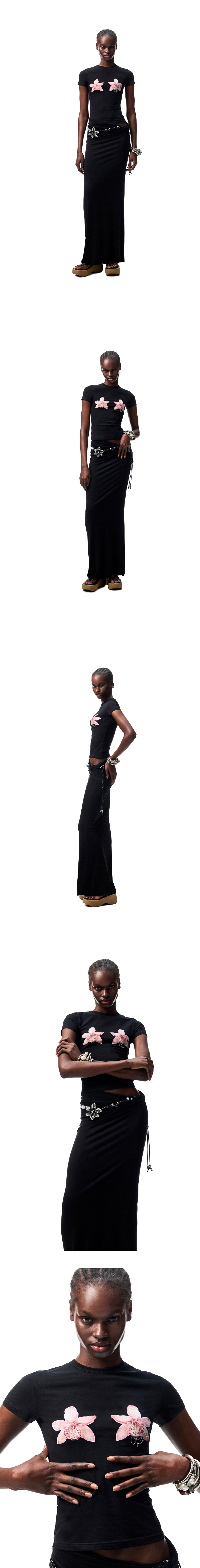 Floral Rhinestone Short Sleeve T-Shirt – Slim Stretch Shoulder Fit