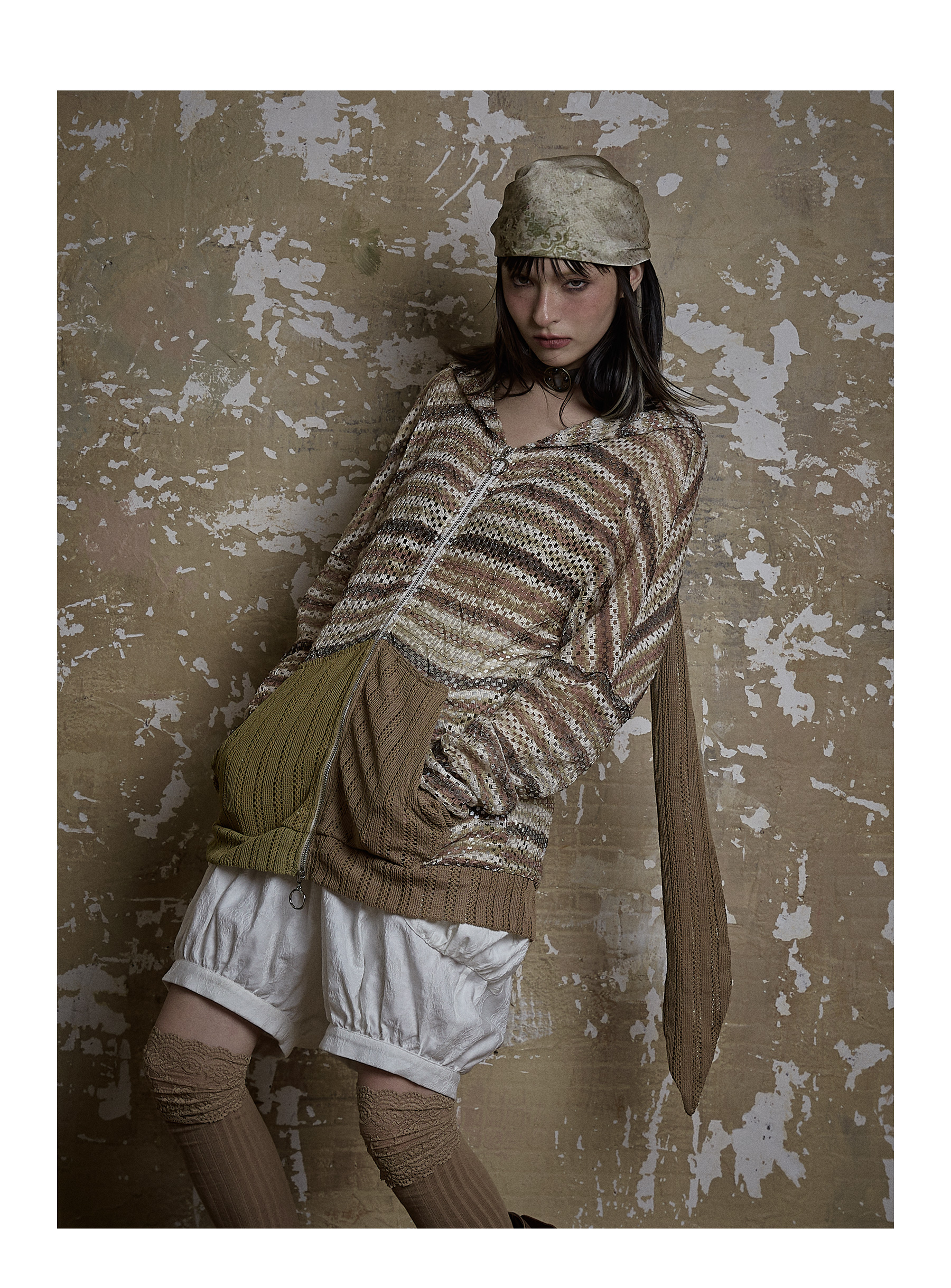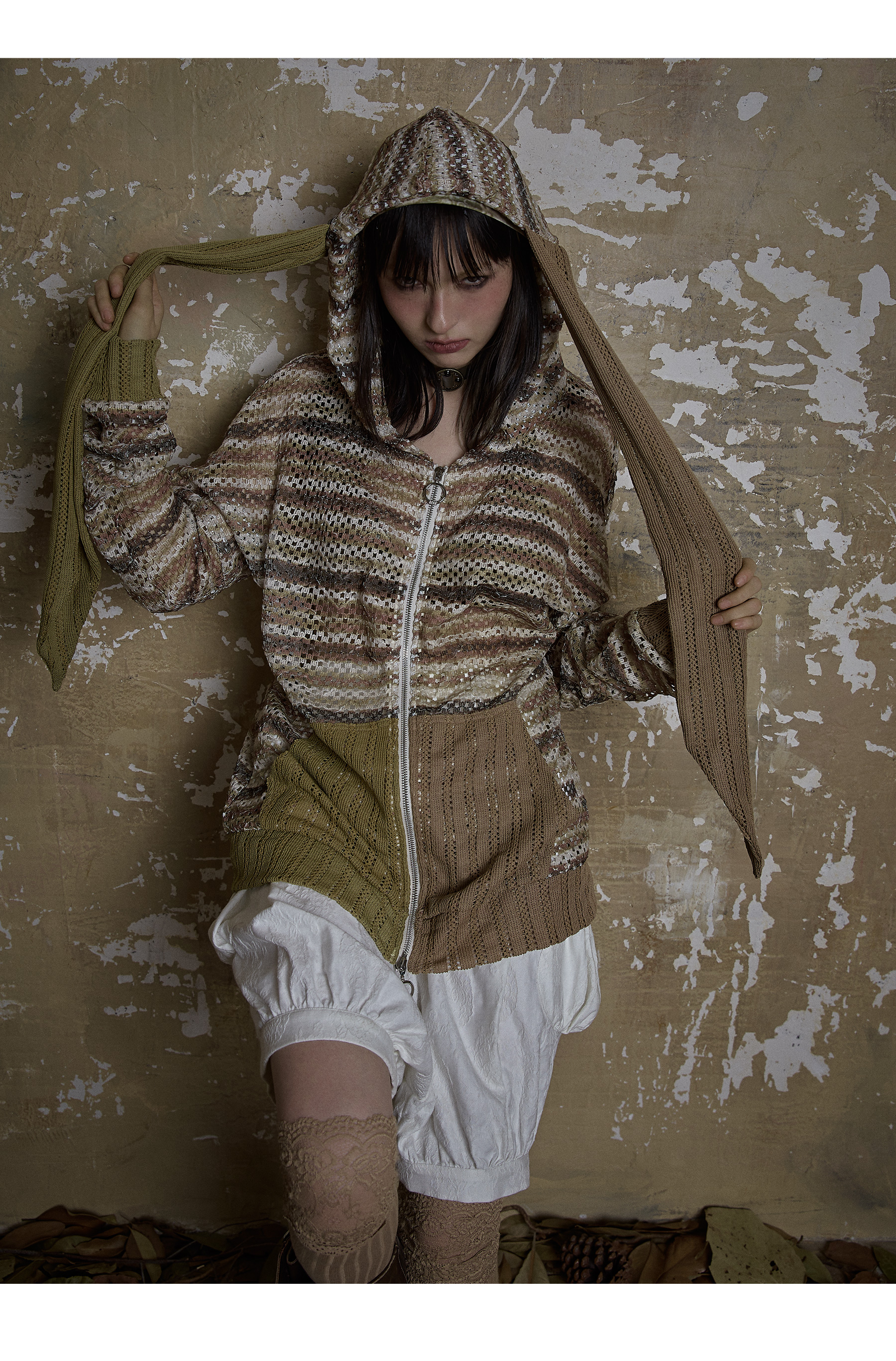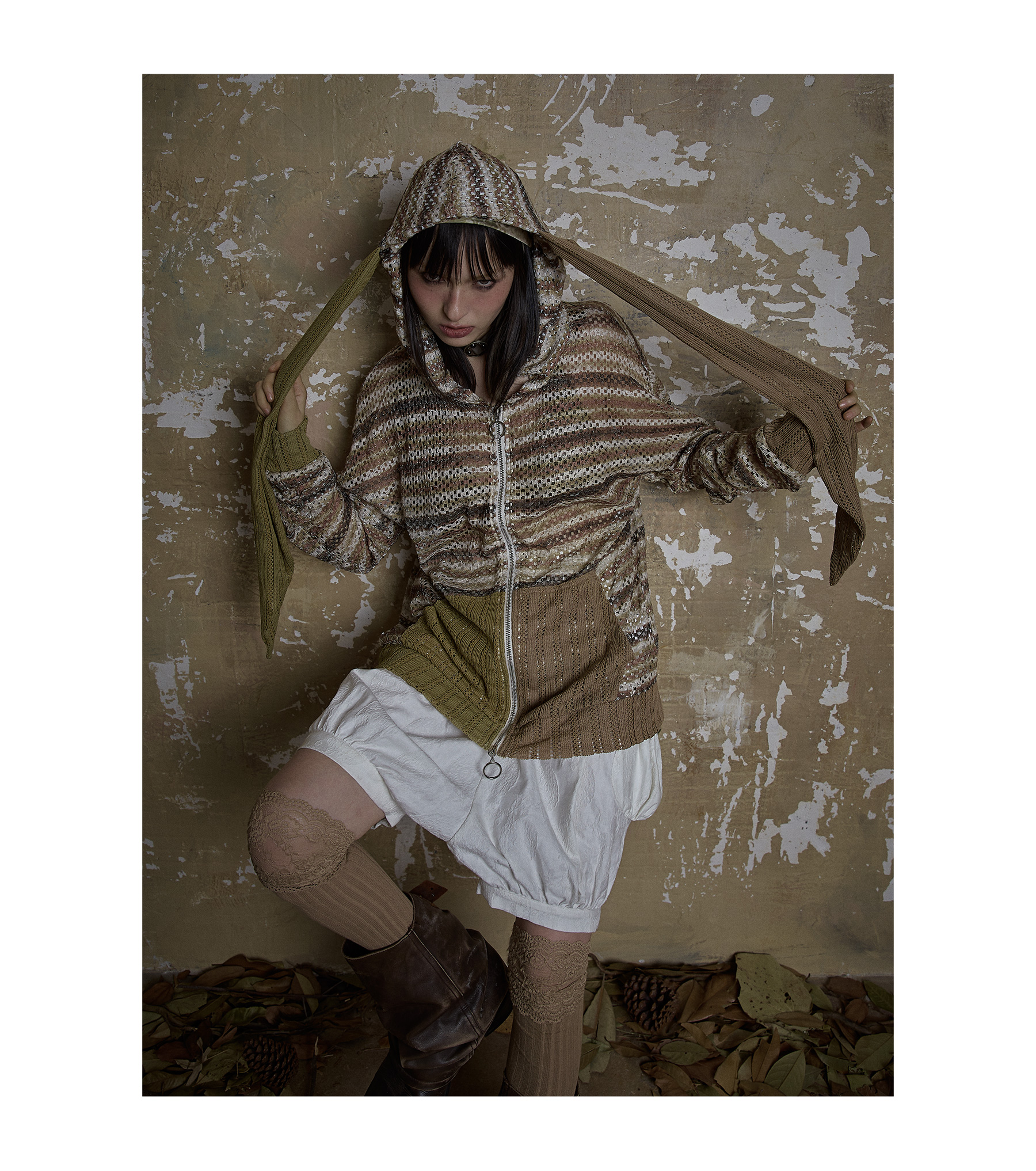 Y2K খরগোশের কানের ডোরাকাটা ক্যাজুয়াল সোয়েটশার্ট |