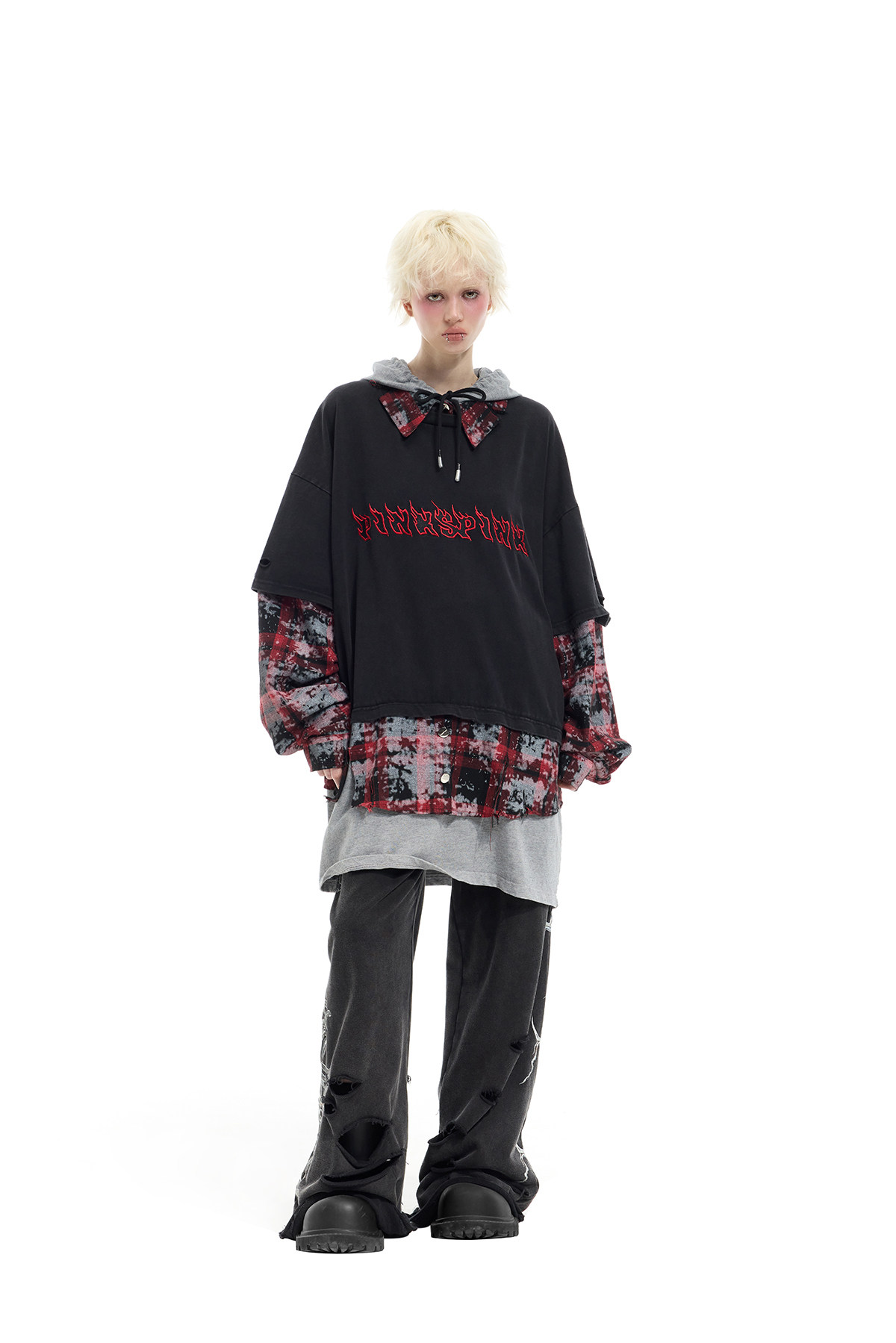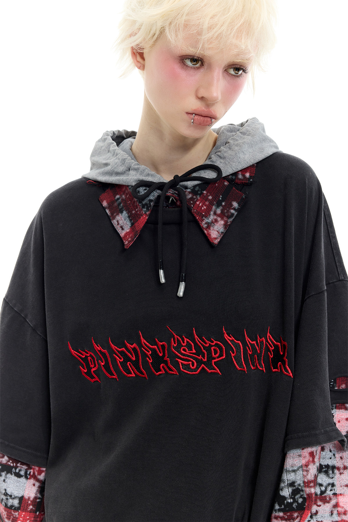 Three-Piece Layered Hooded Short-Sleeve Y2K Tee Set