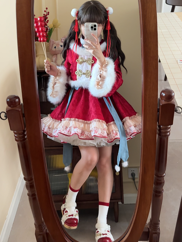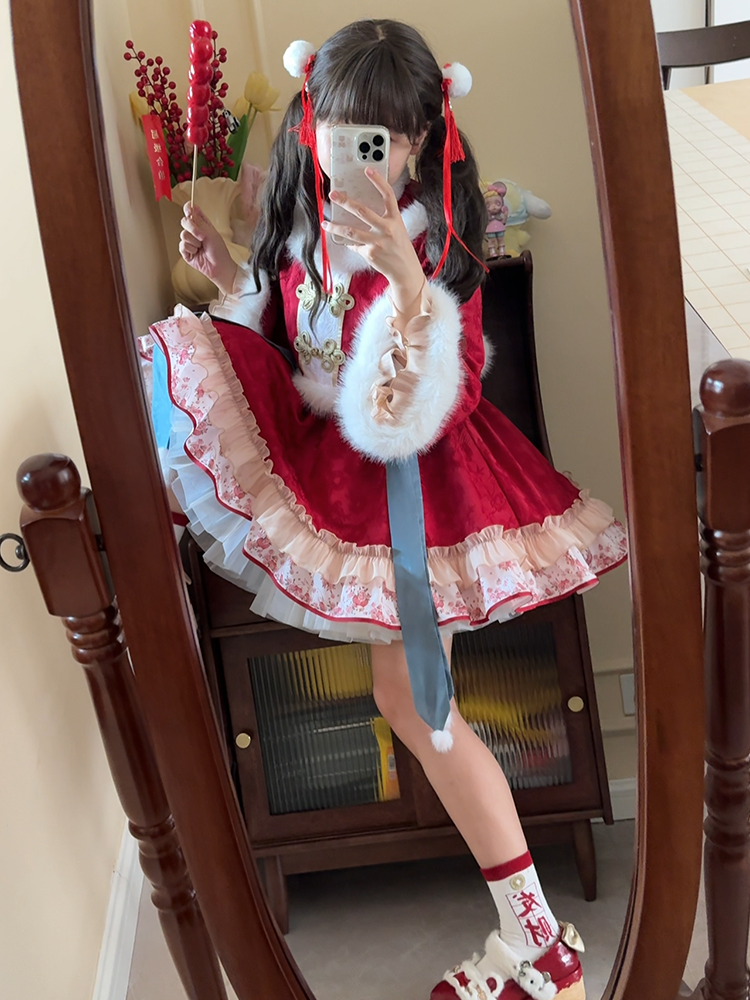 Lolita Lantern Chinese Faux Two-Piece Waist Dress