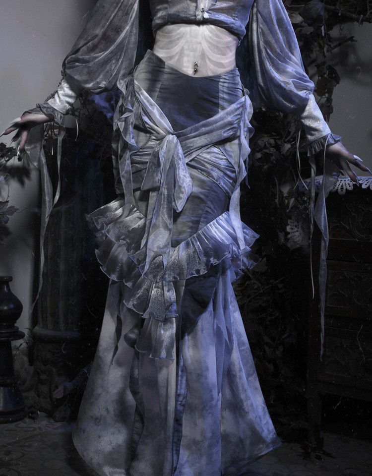 Gothic Tie-Dye Fishtail Skirt – Slim Elegant Chiffon Dress