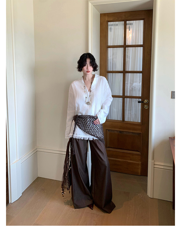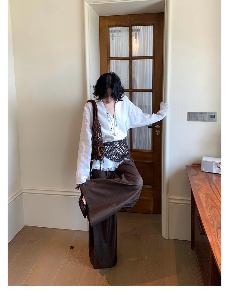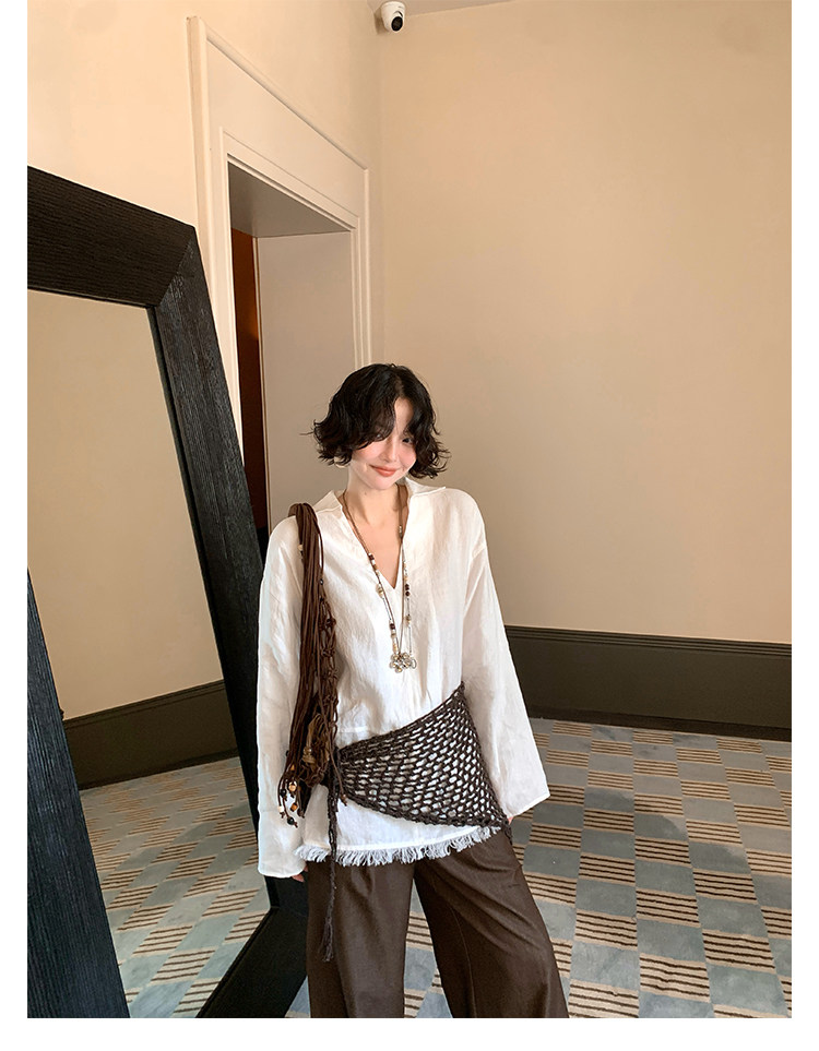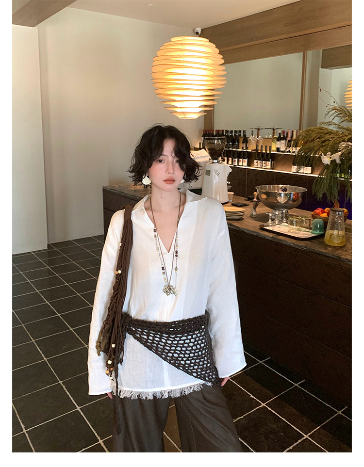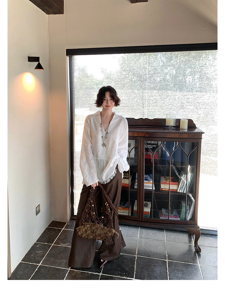Shattered Light Diary Linen V-Neck Loose Shirt – Hong Kong Retro Autumn Essential