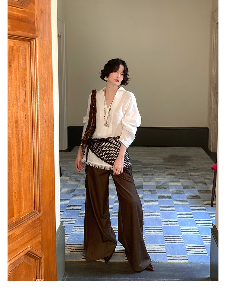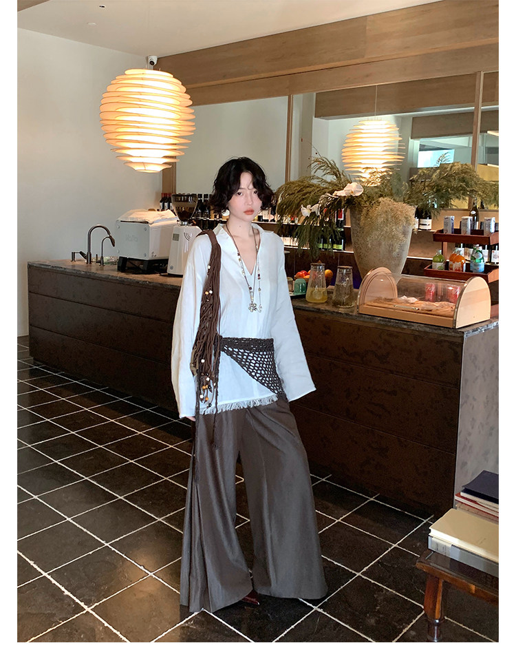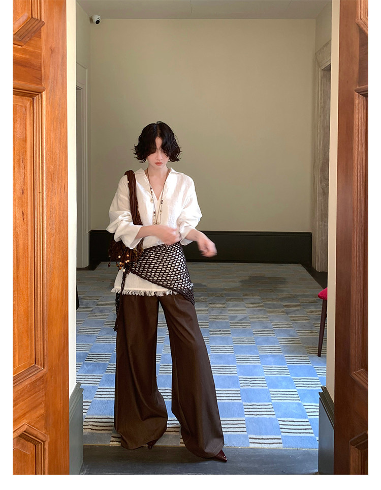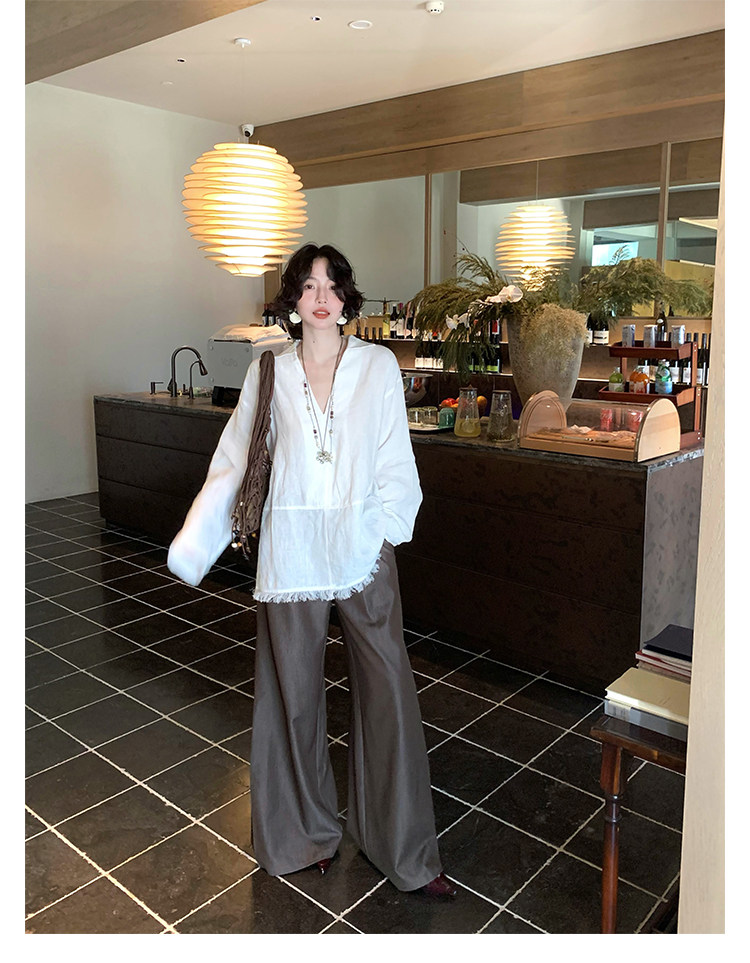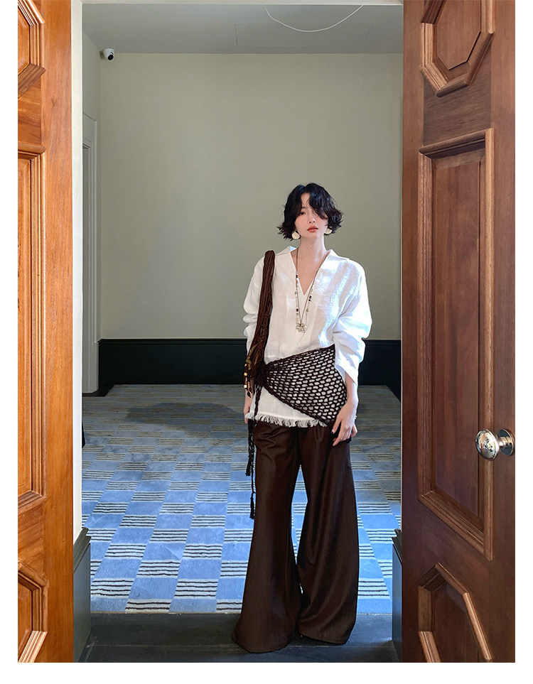 Shattered Light Diary Linen V-Neck Loose Shirt – Hong Kong Retro Autumn Essential