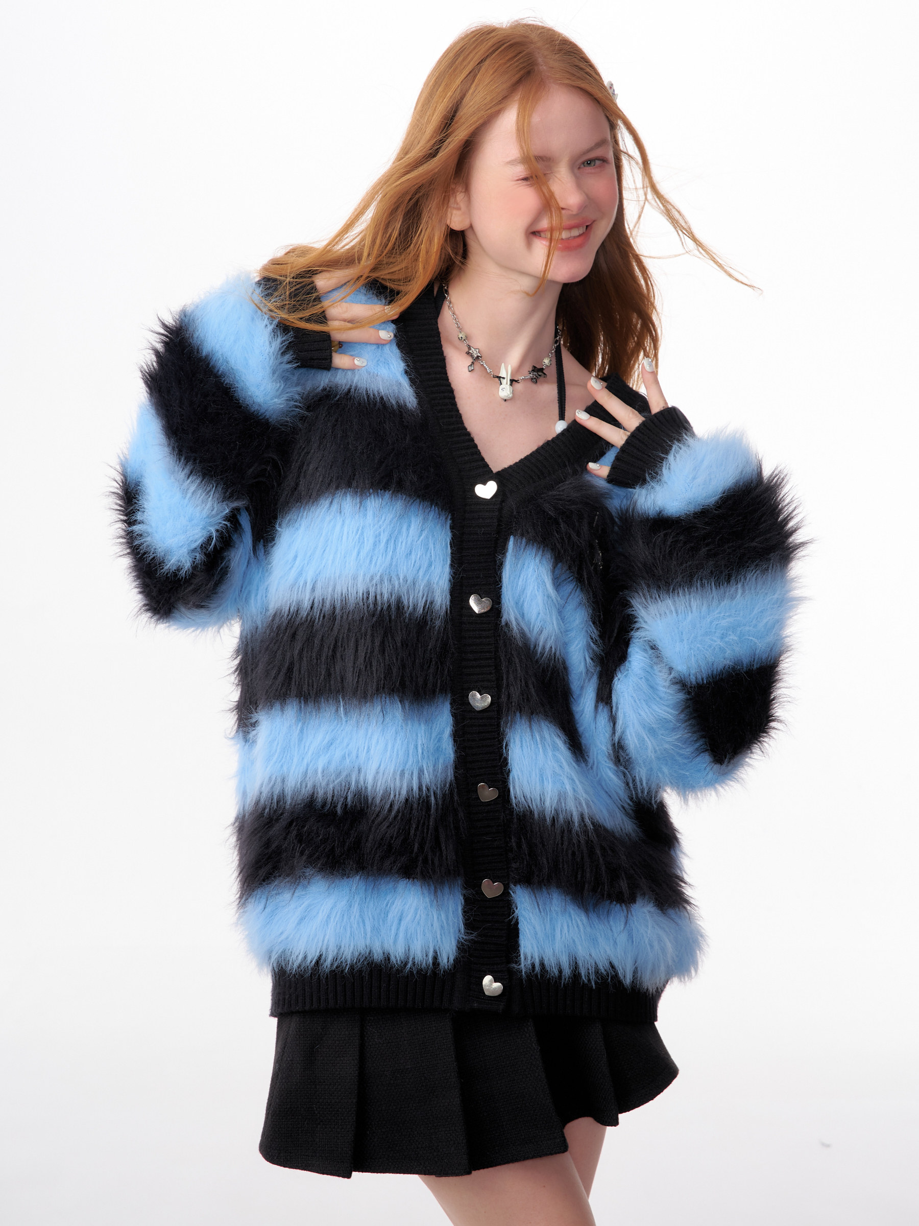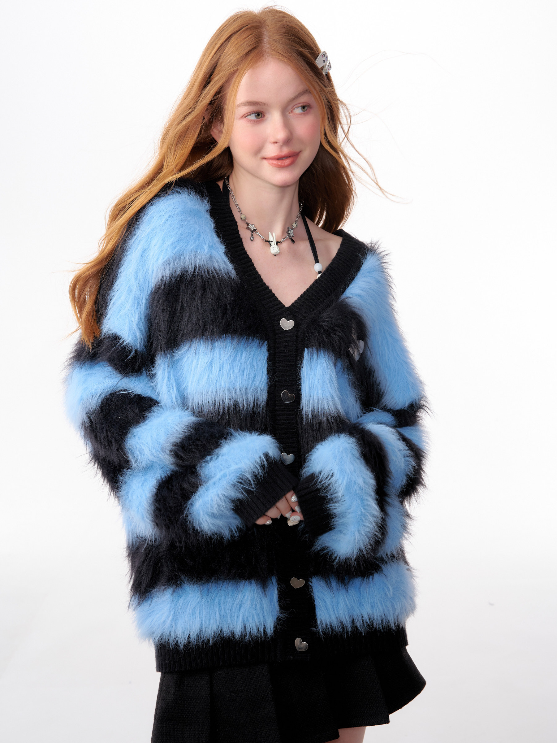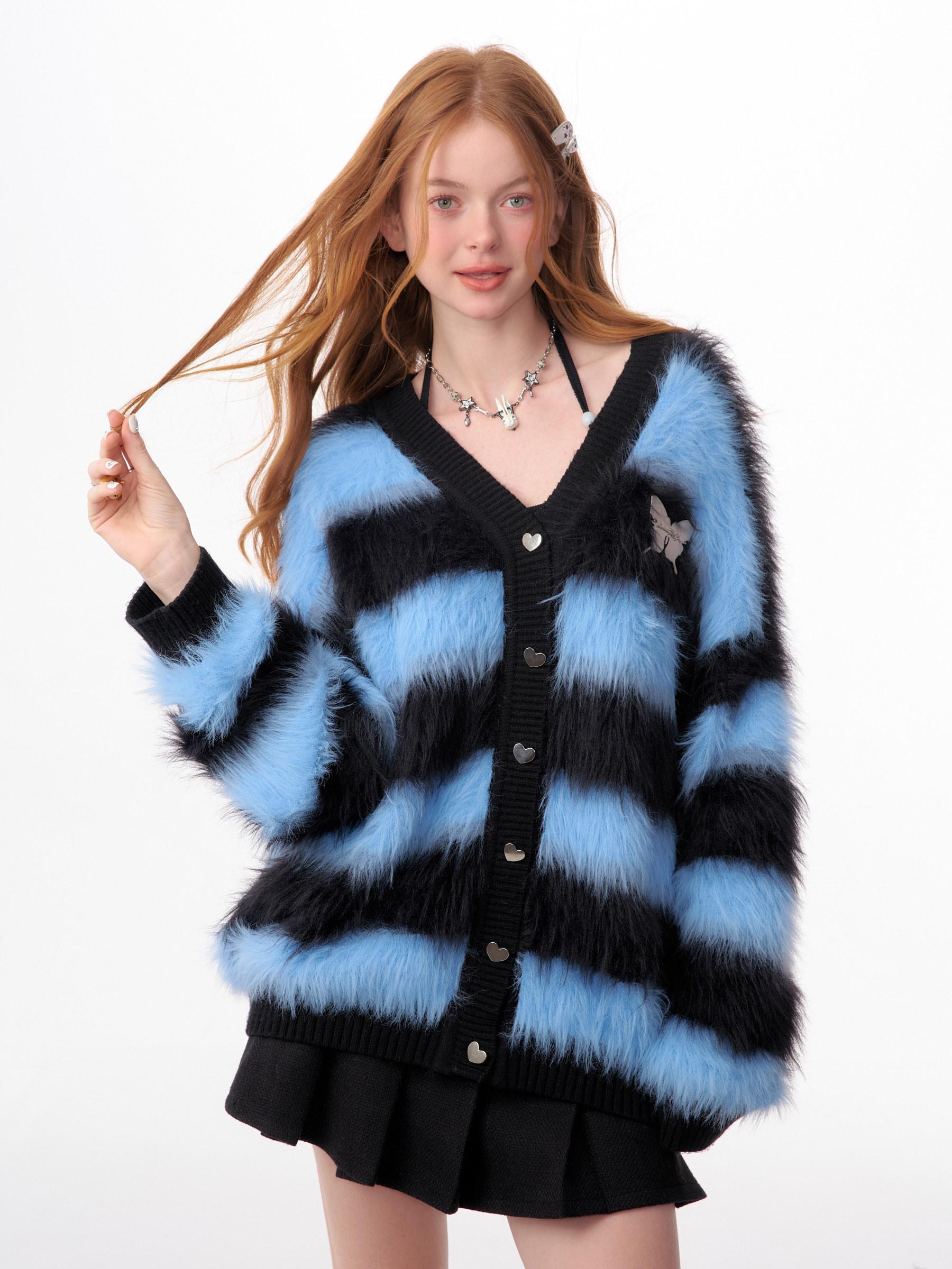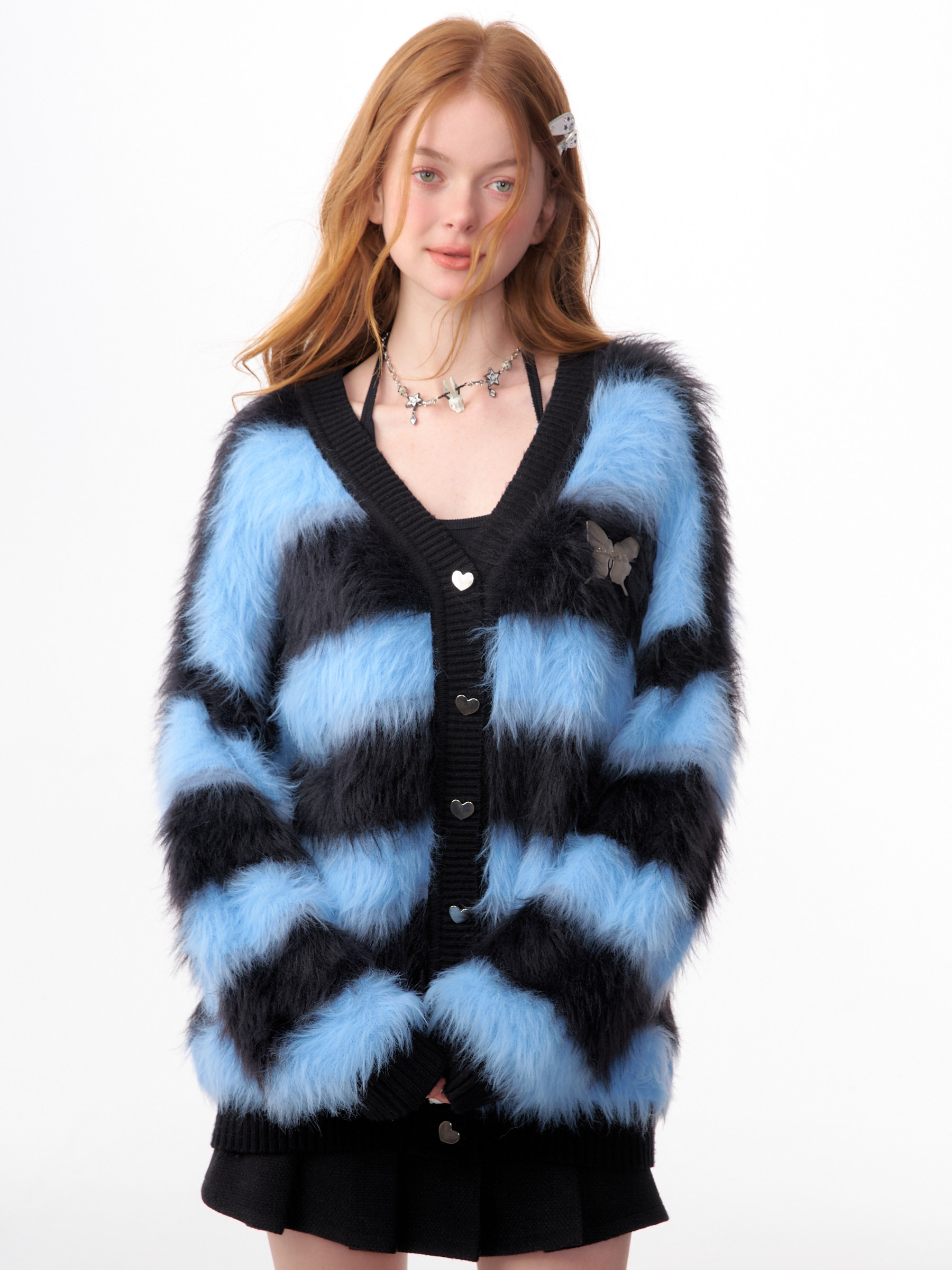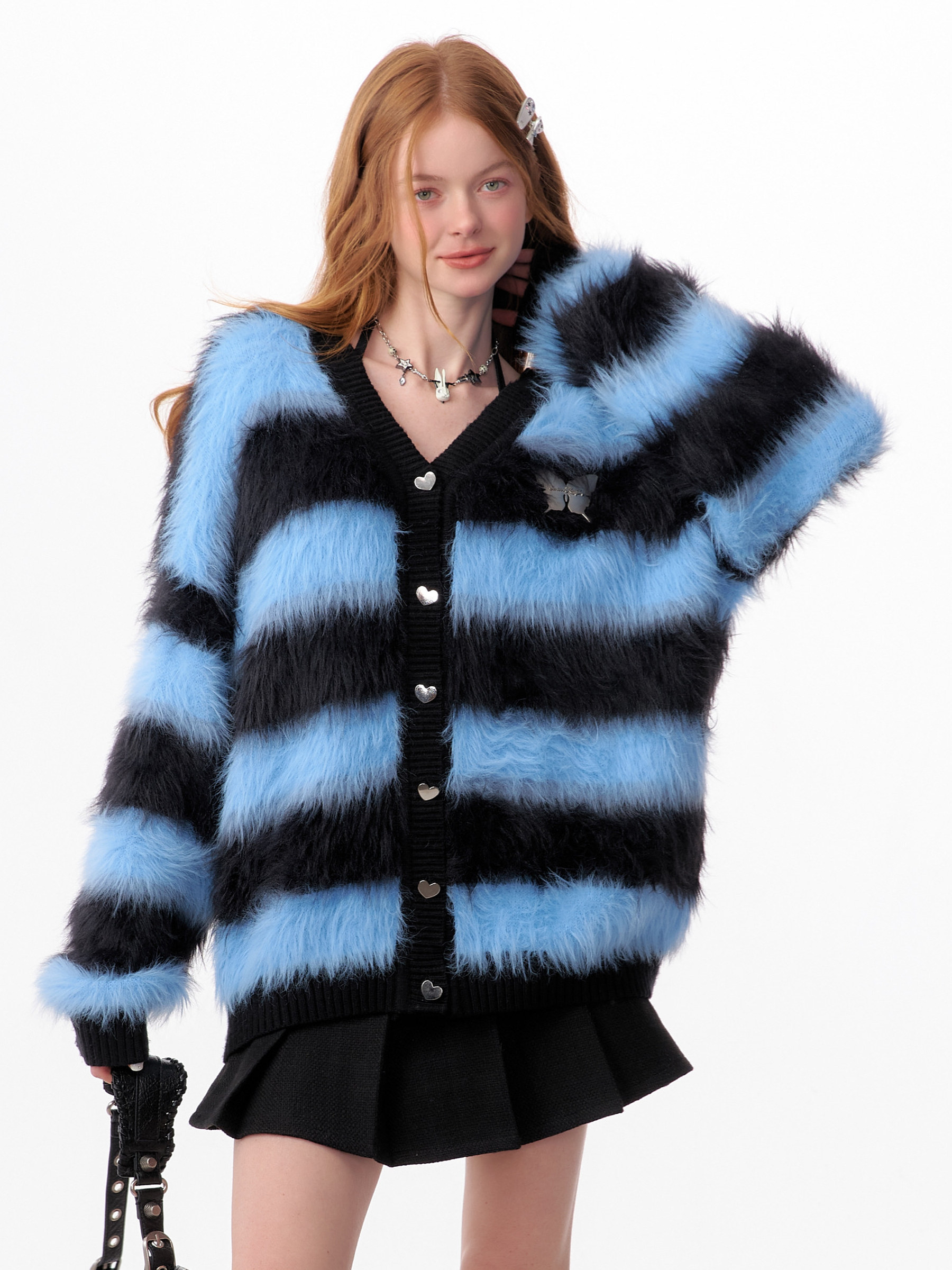 Blue-Black Striped Sweater Cardigan | Soft and Thick Retro Lazy Style for Autumn/Winter