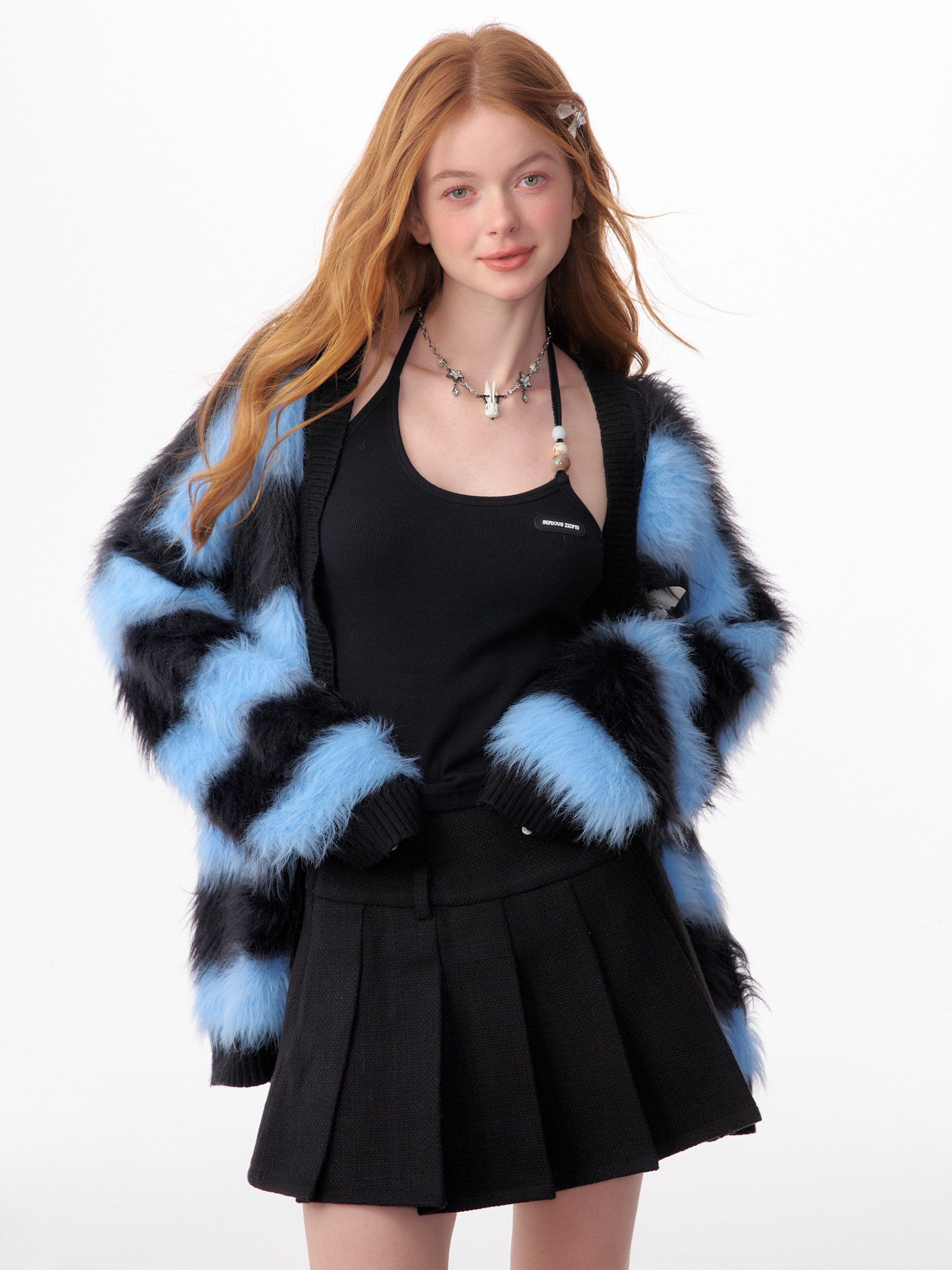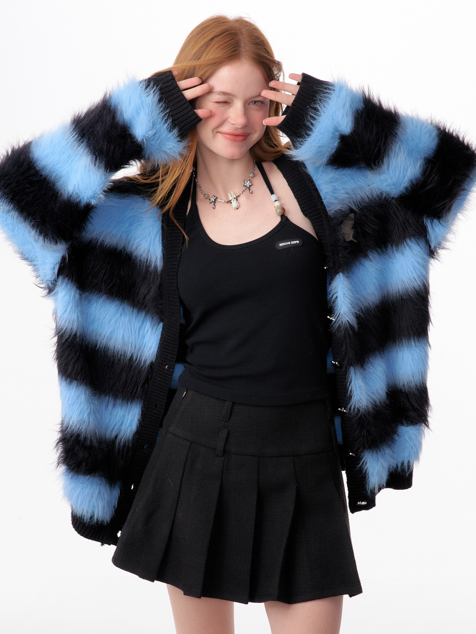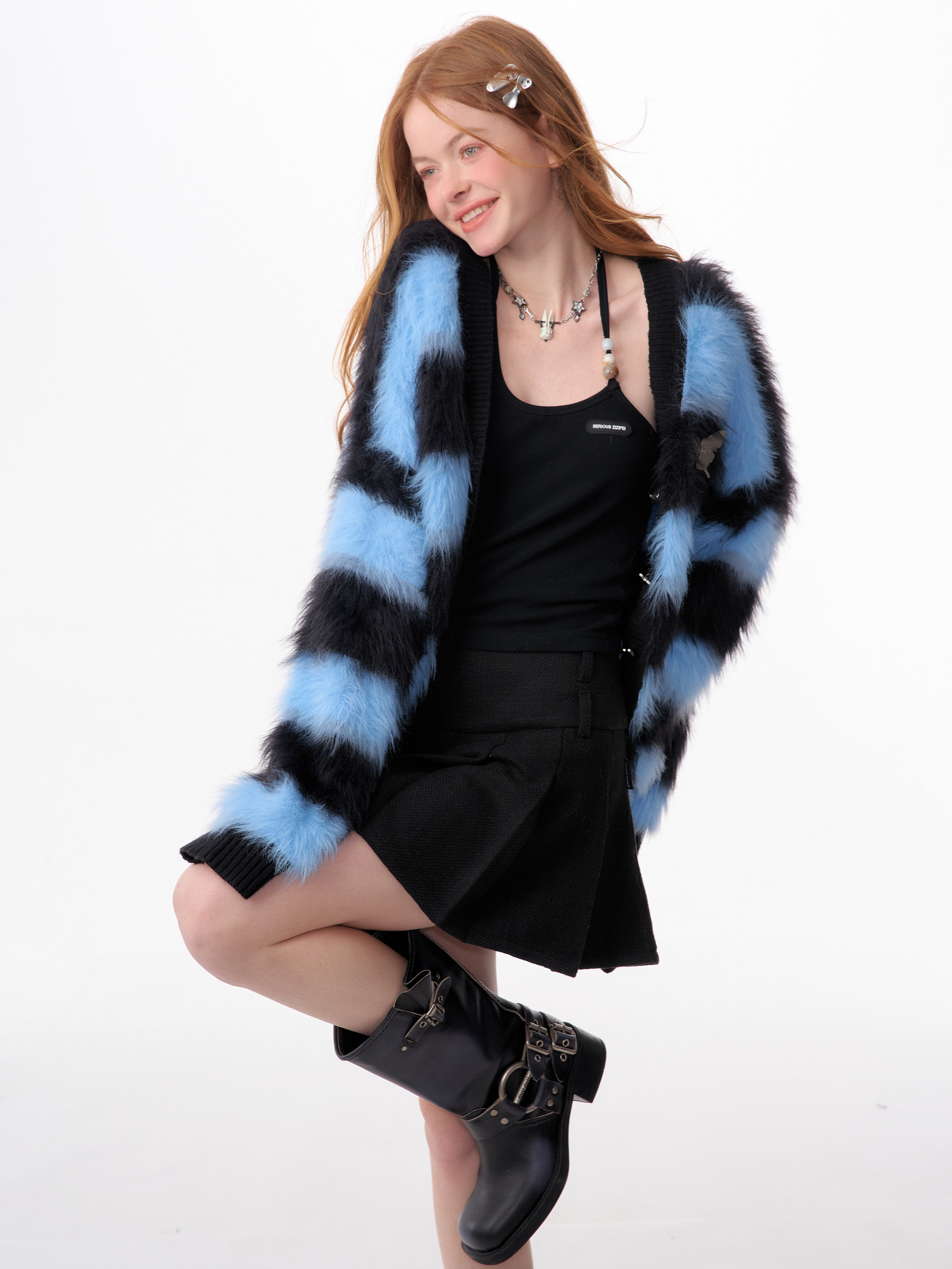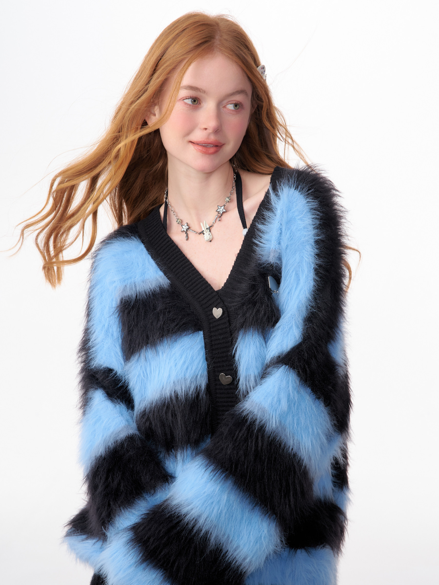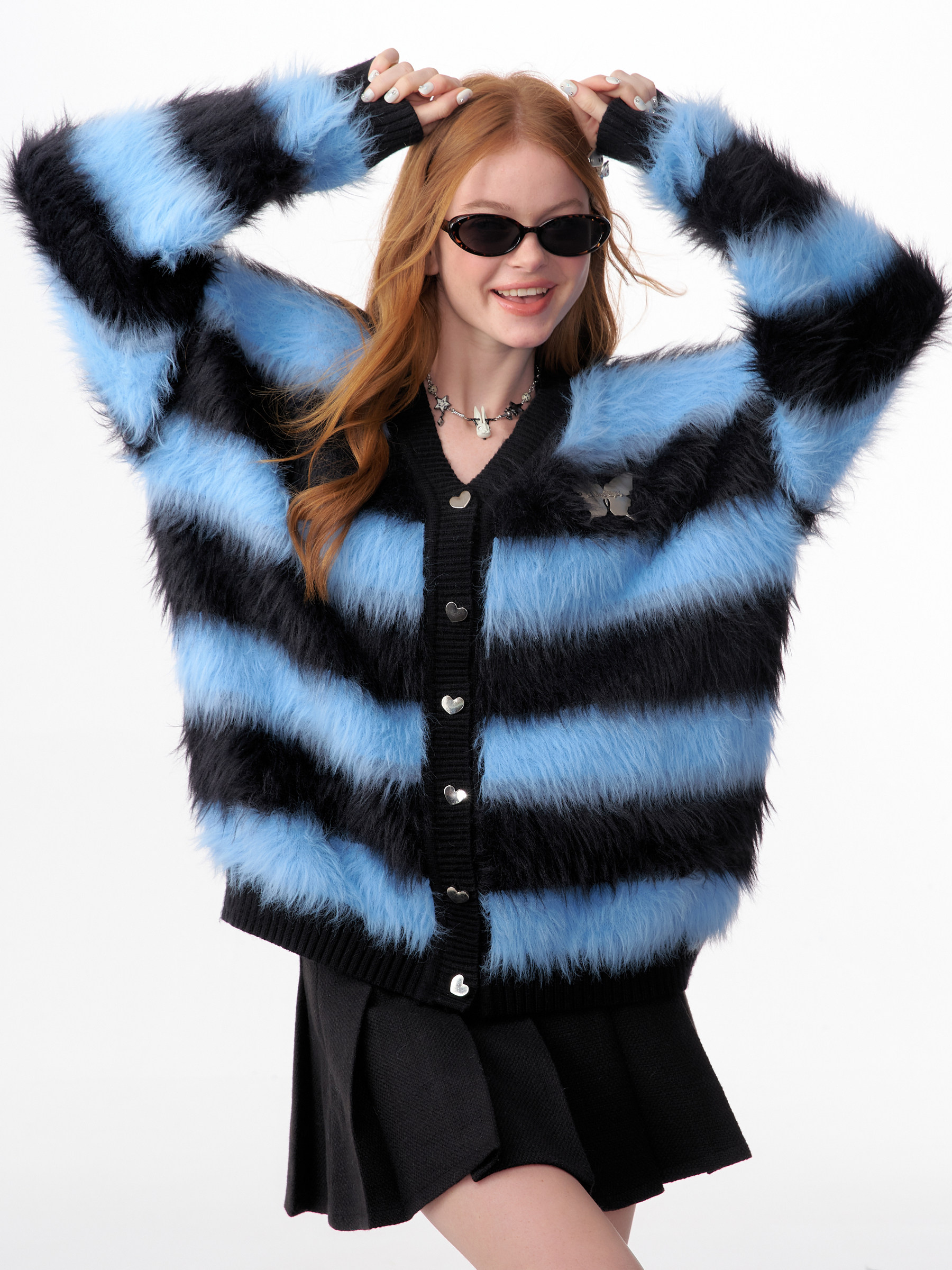 Blue-Black Striped Sweater Cardigan | Soft and Thick Retro Lazy Style for Autumn/Winter