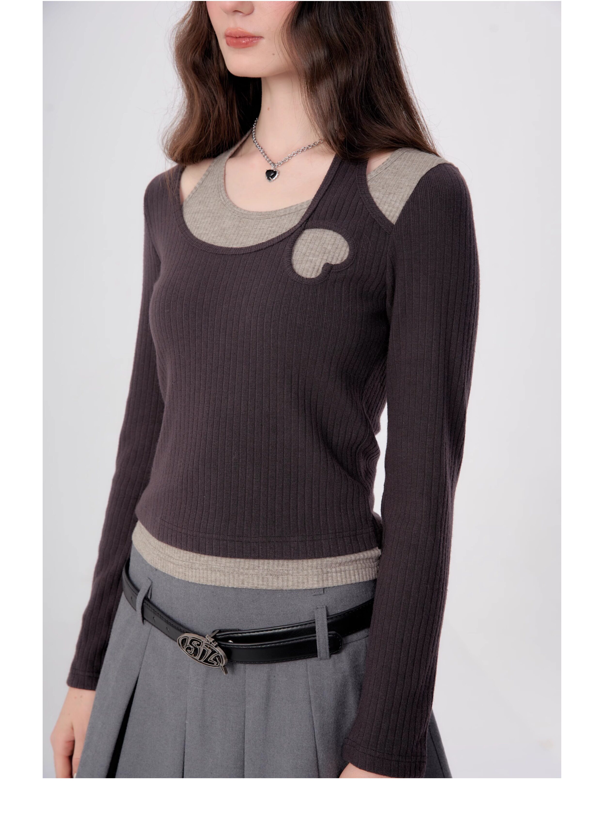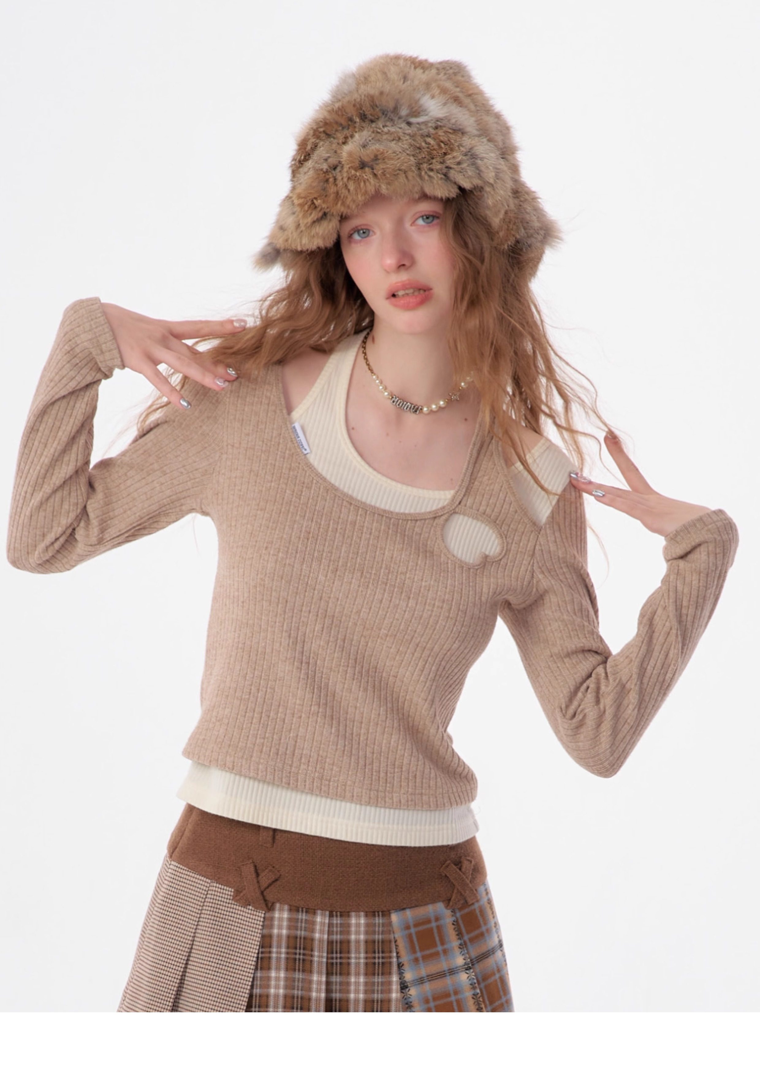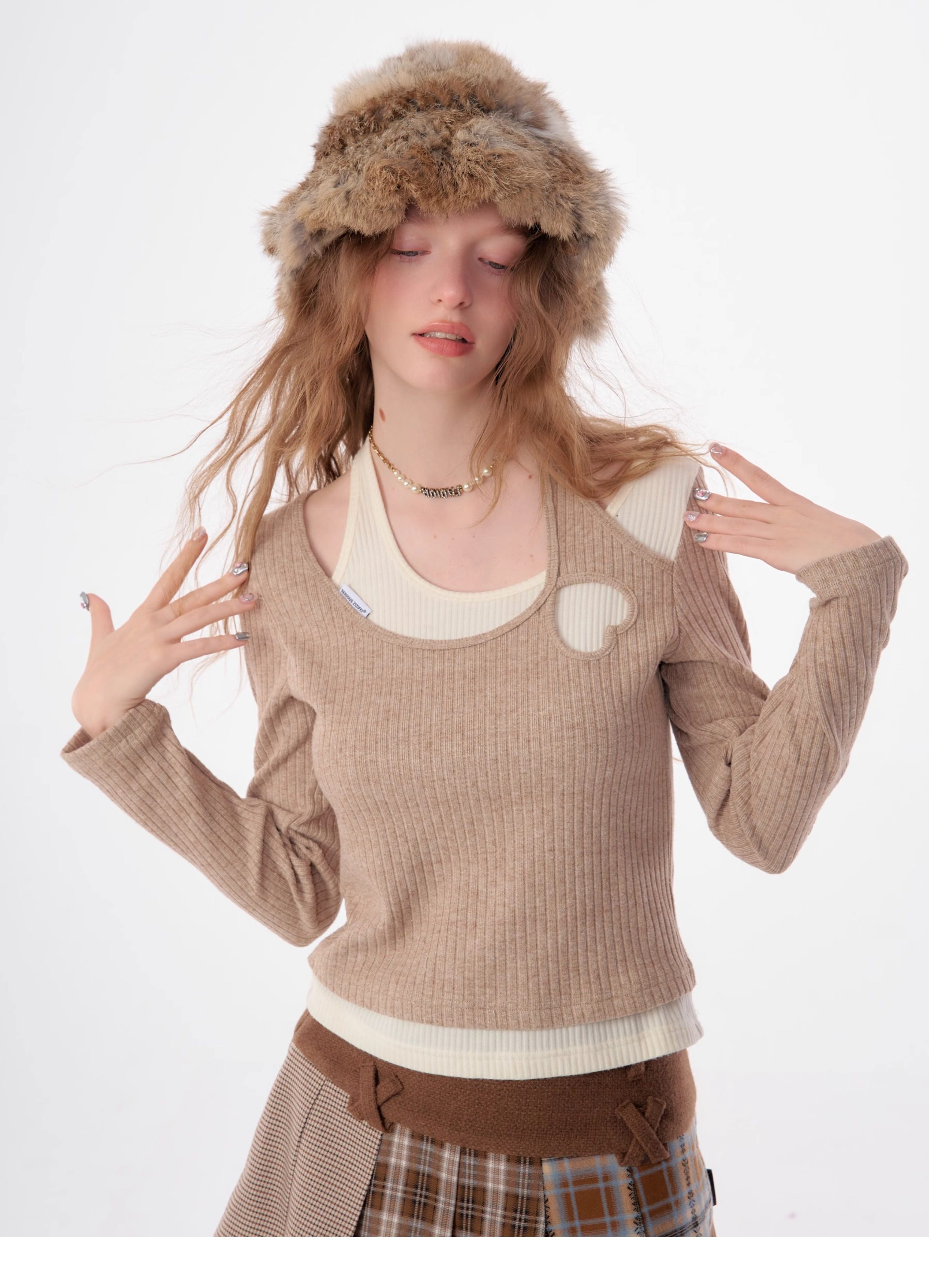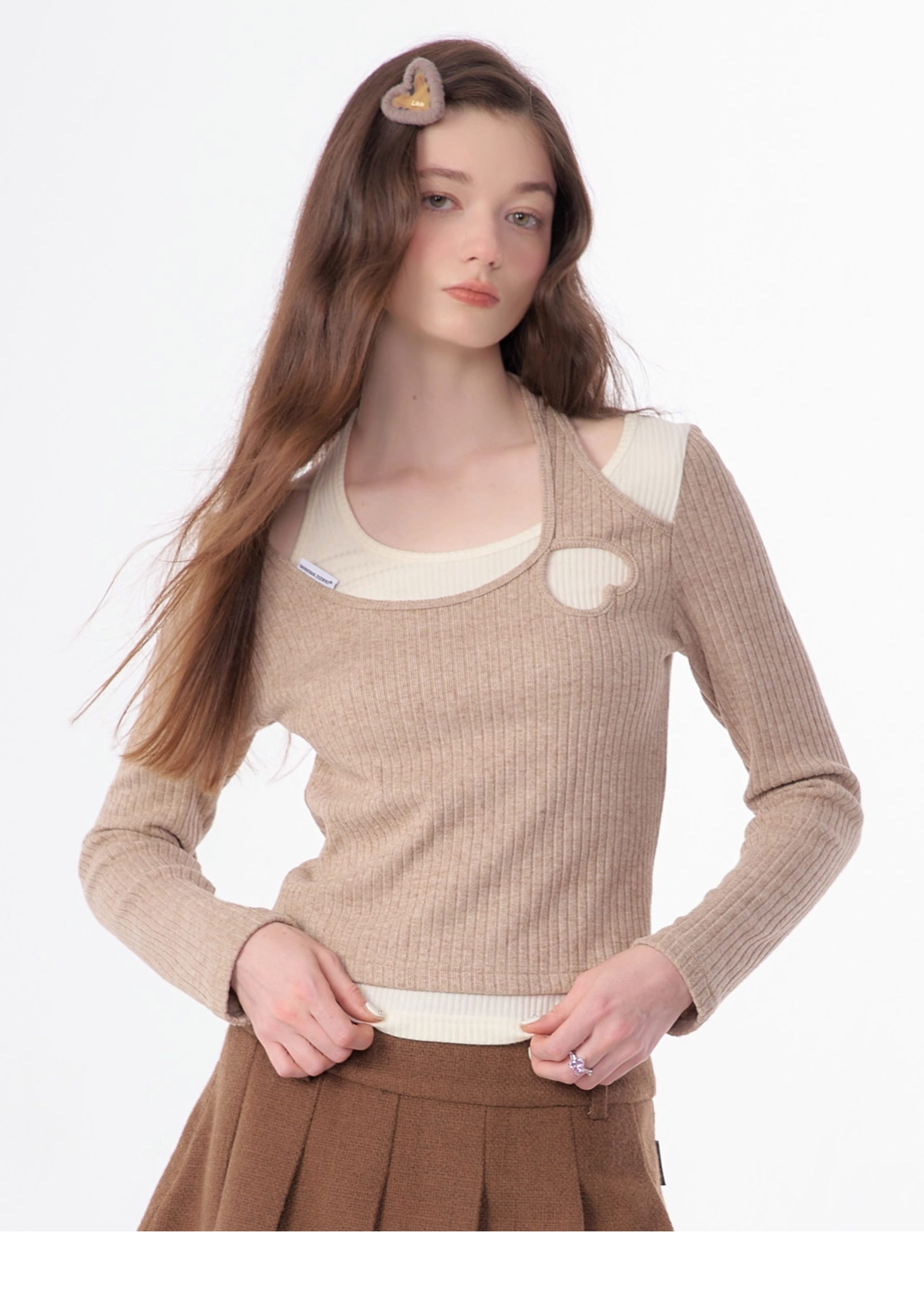 Love Off-Shoulder Knit Top | Hollow Long Sleeve Retro Design for Autumn/Winter
