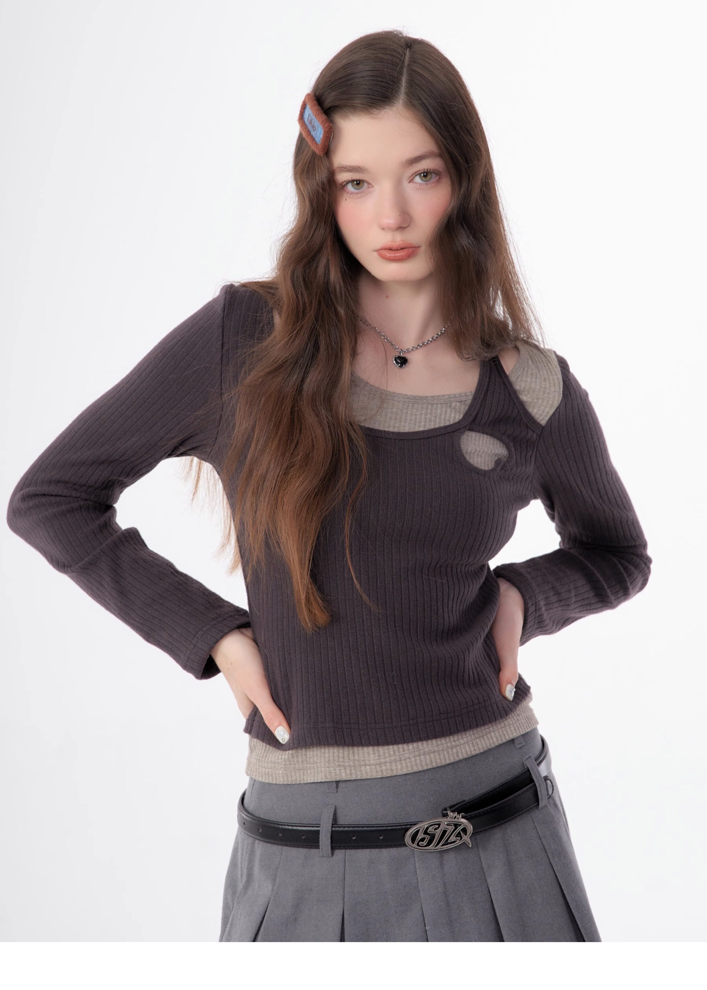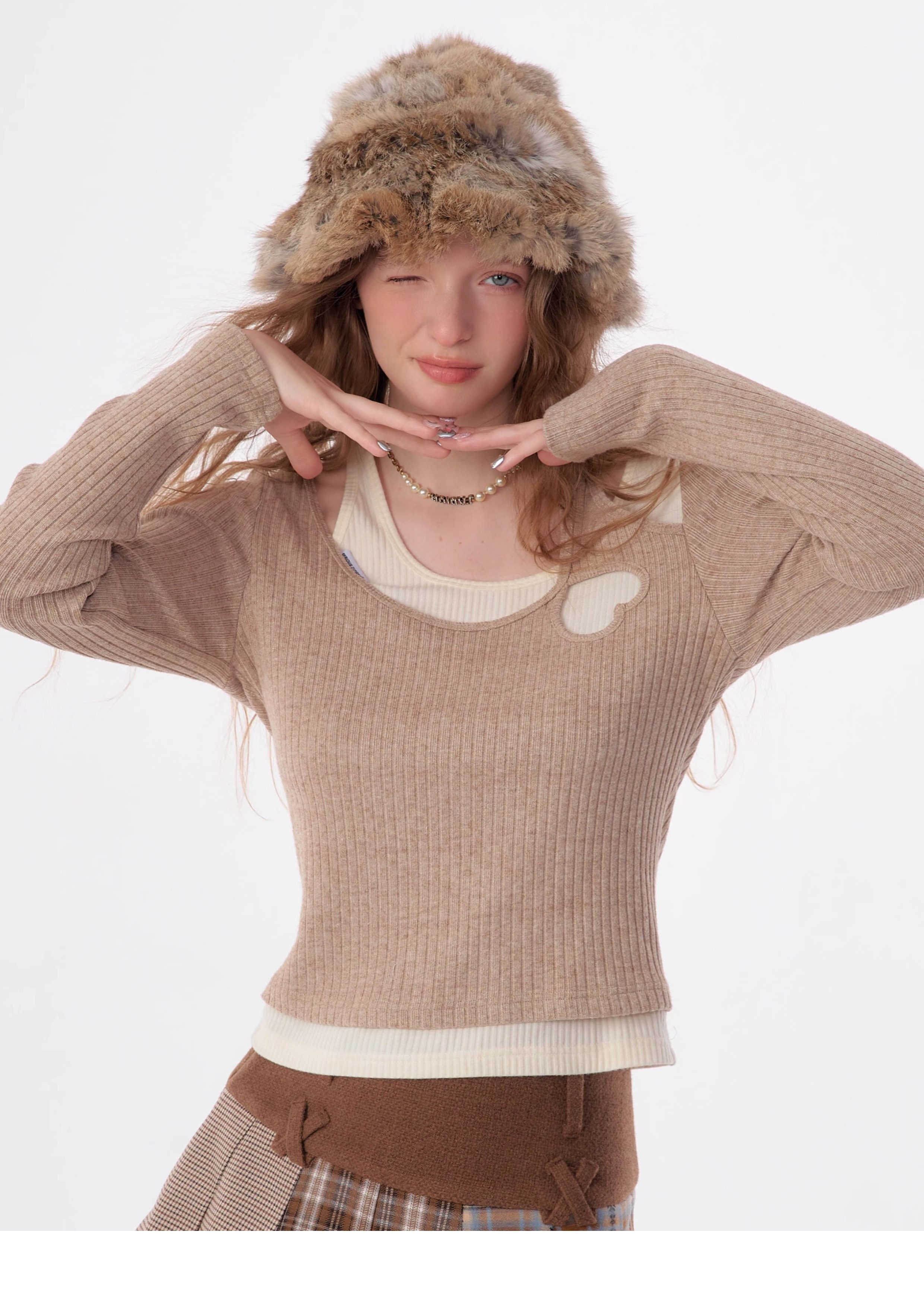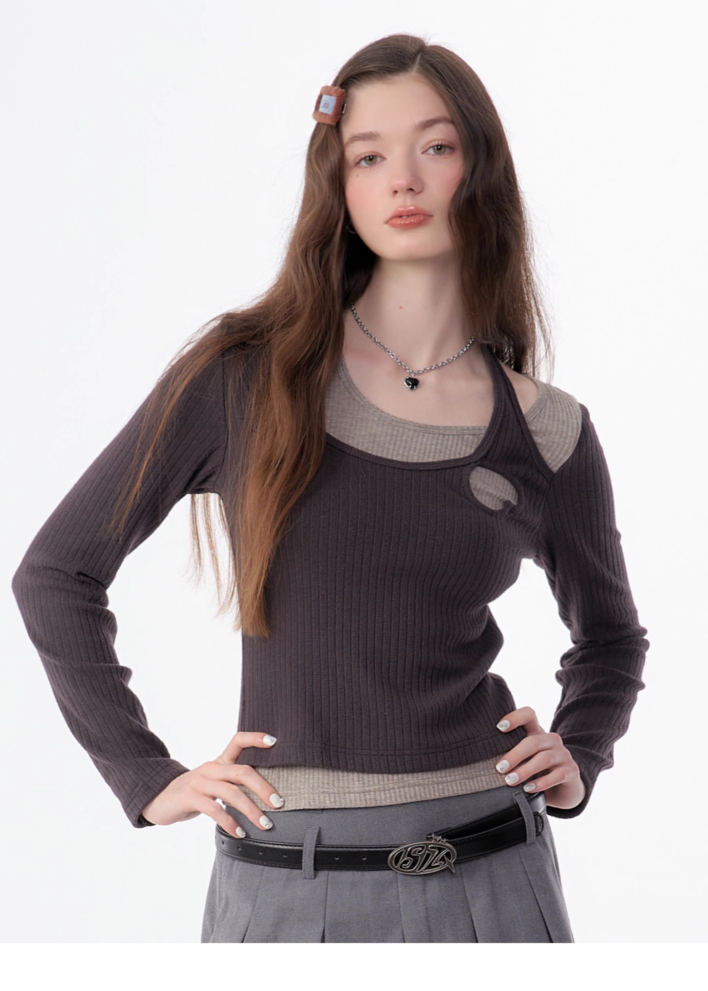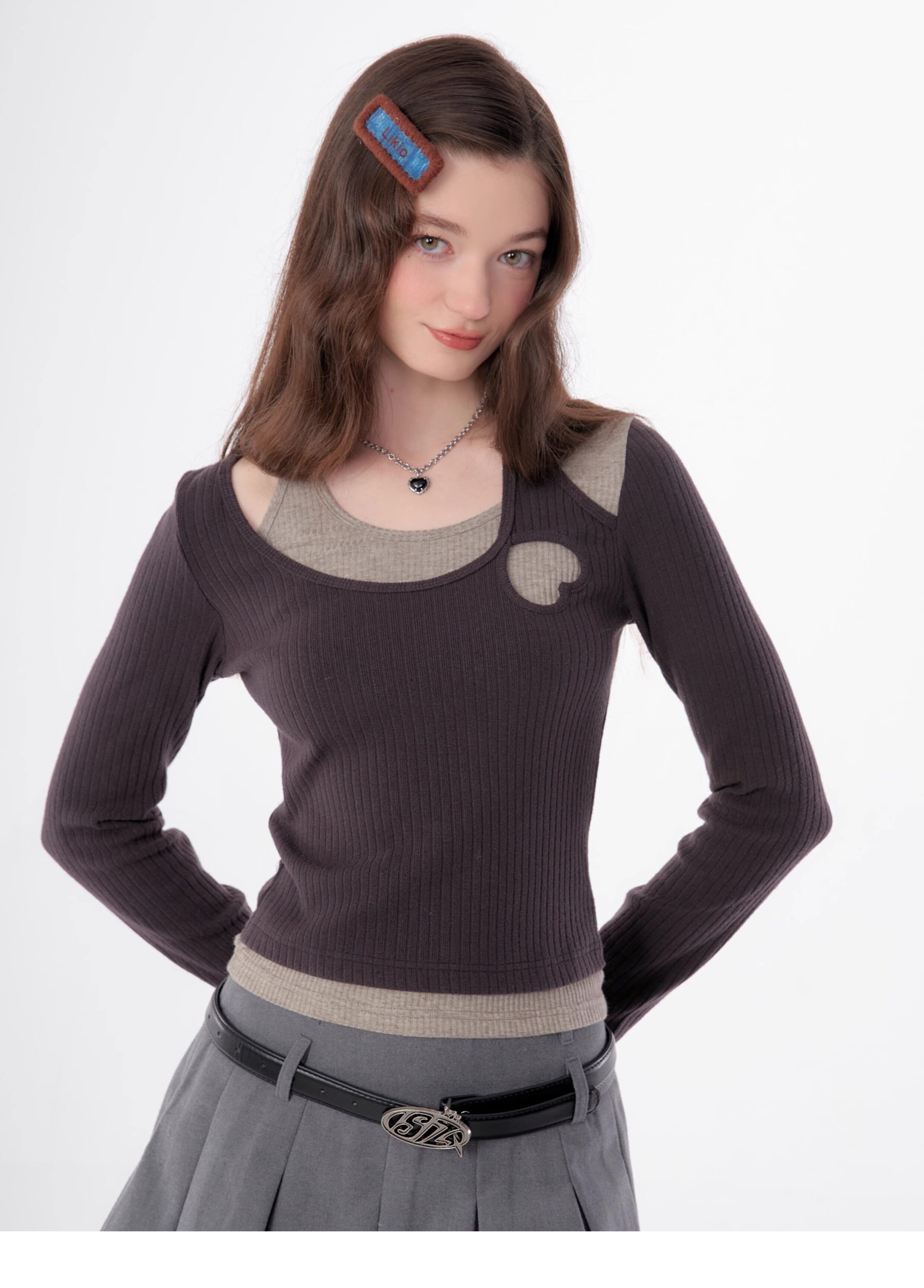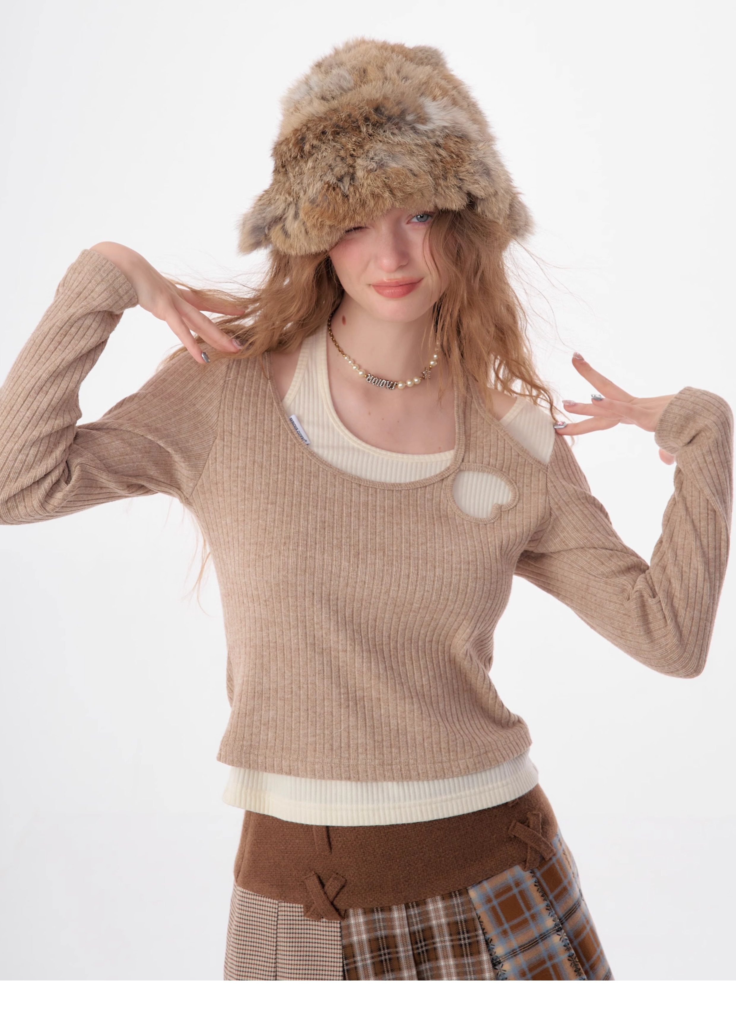 Love Off-Shoulder Knit Top | Hollow Long Sleeve Retro Design for Autumn/Winter