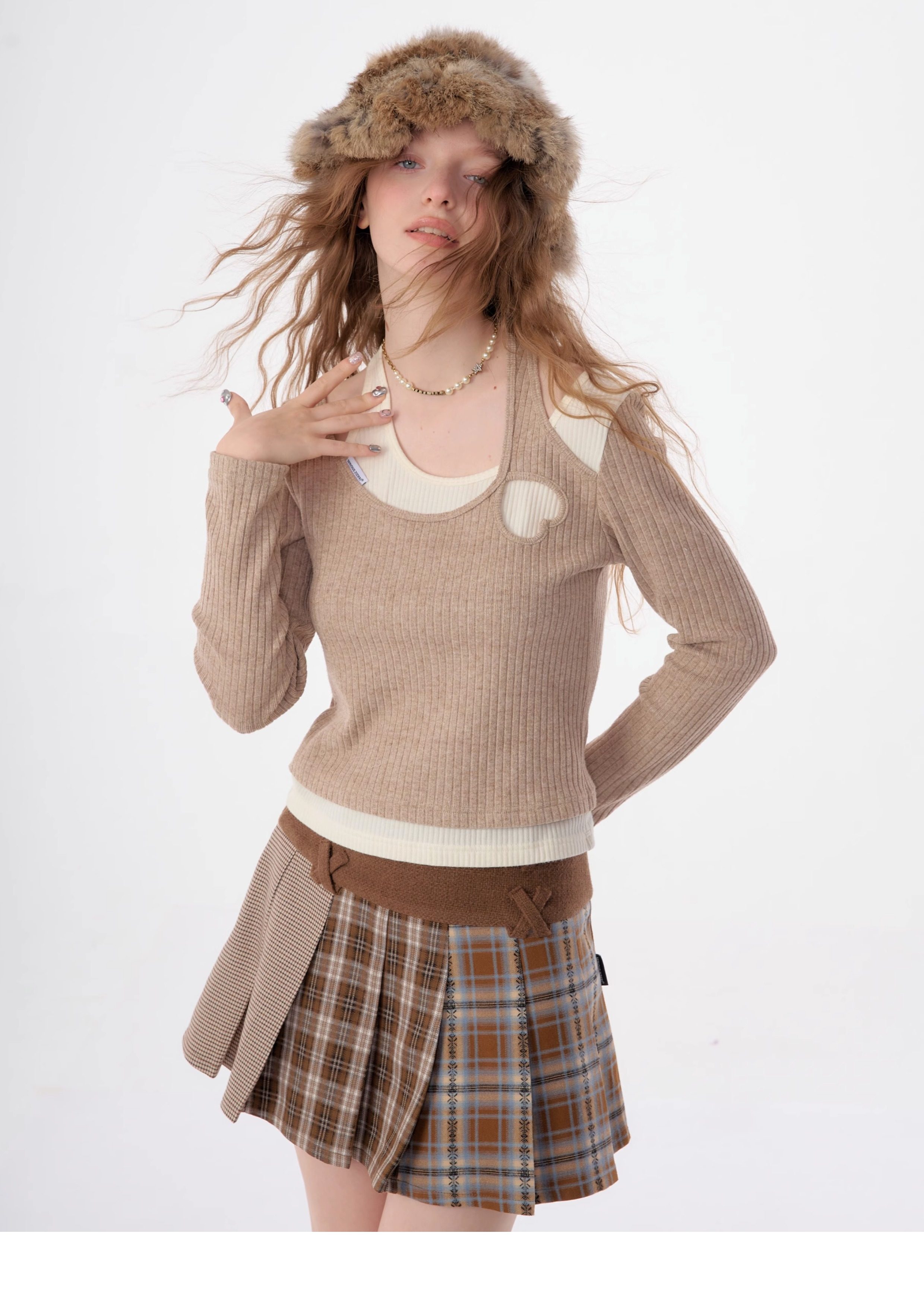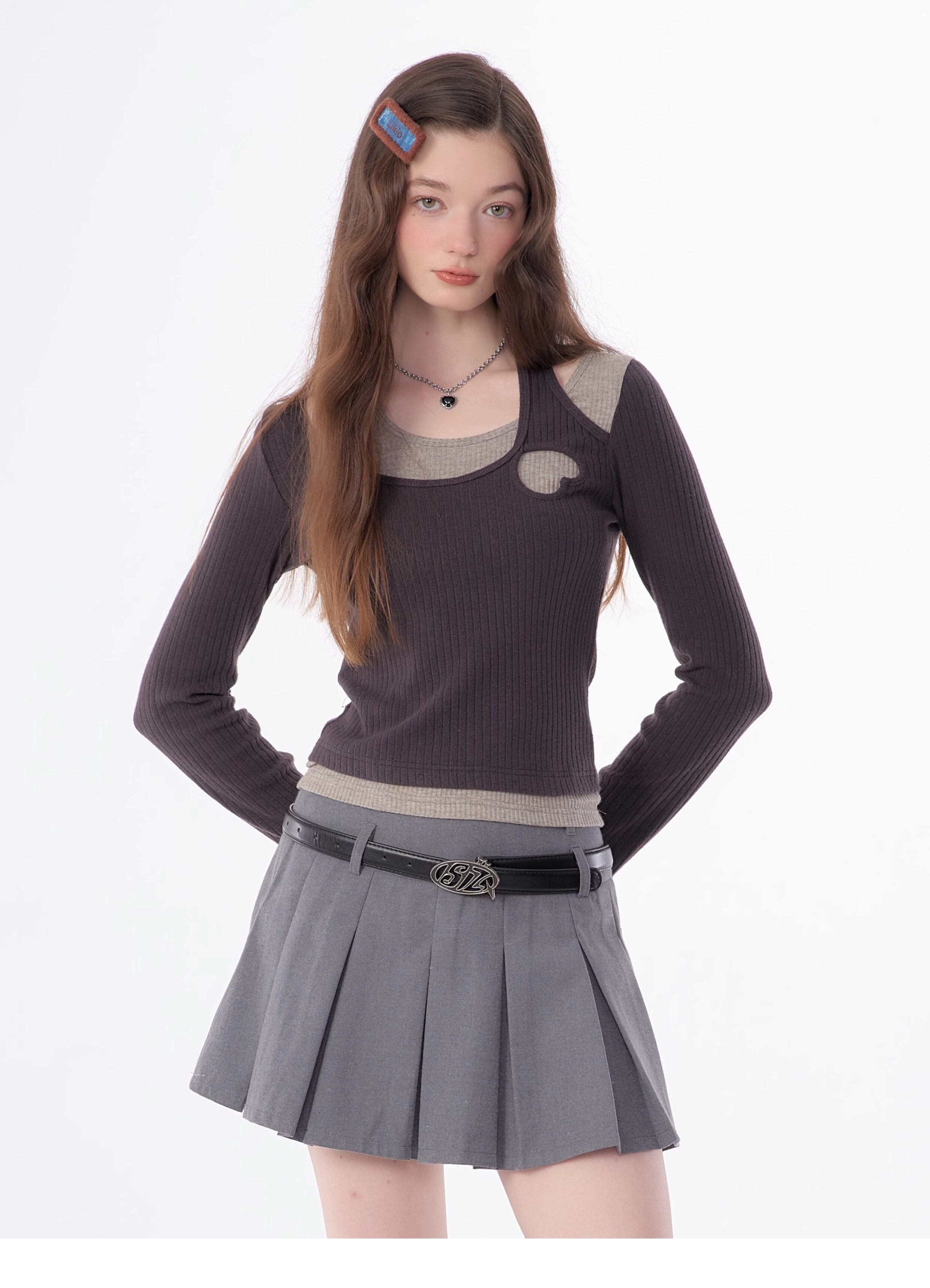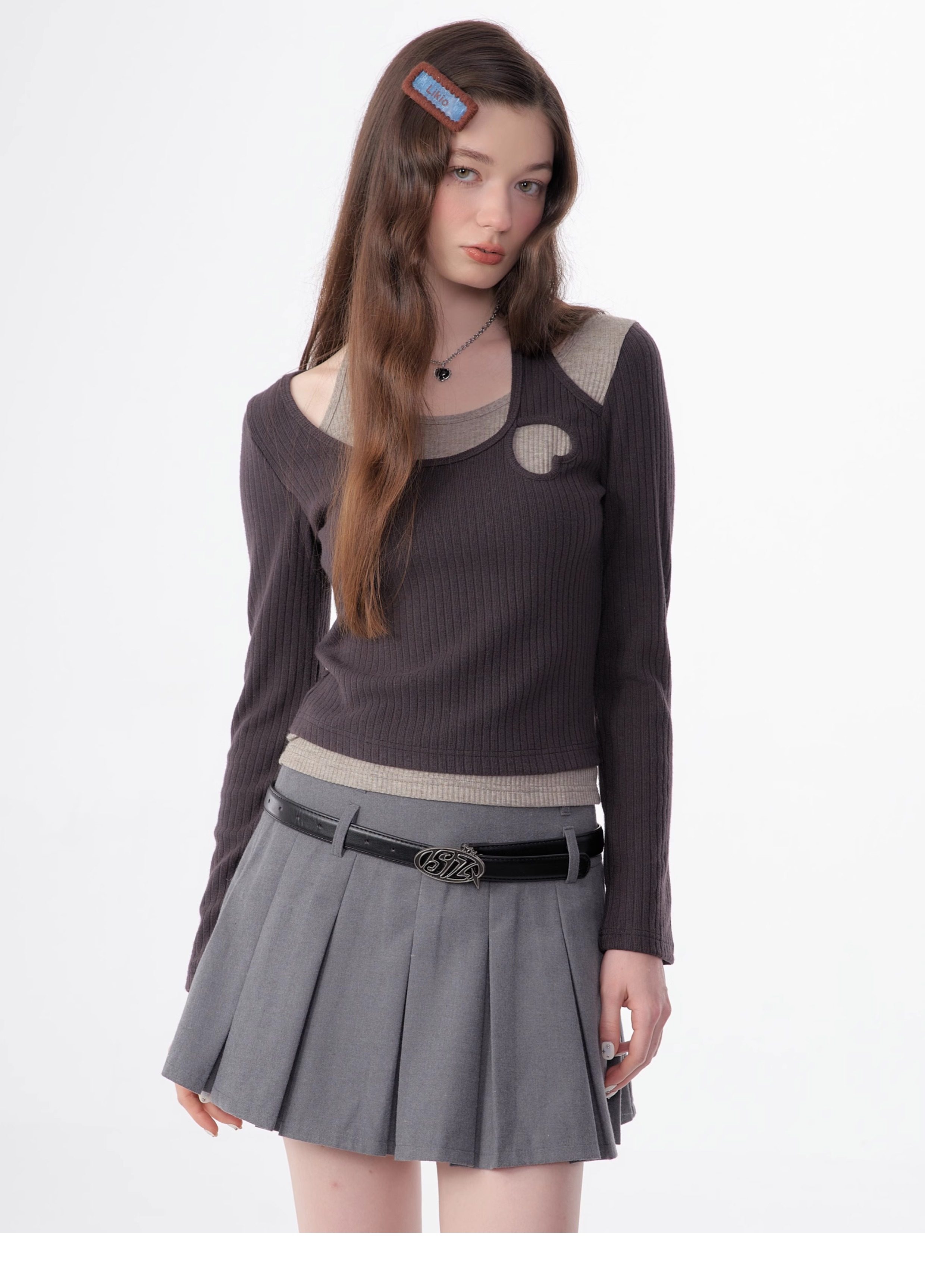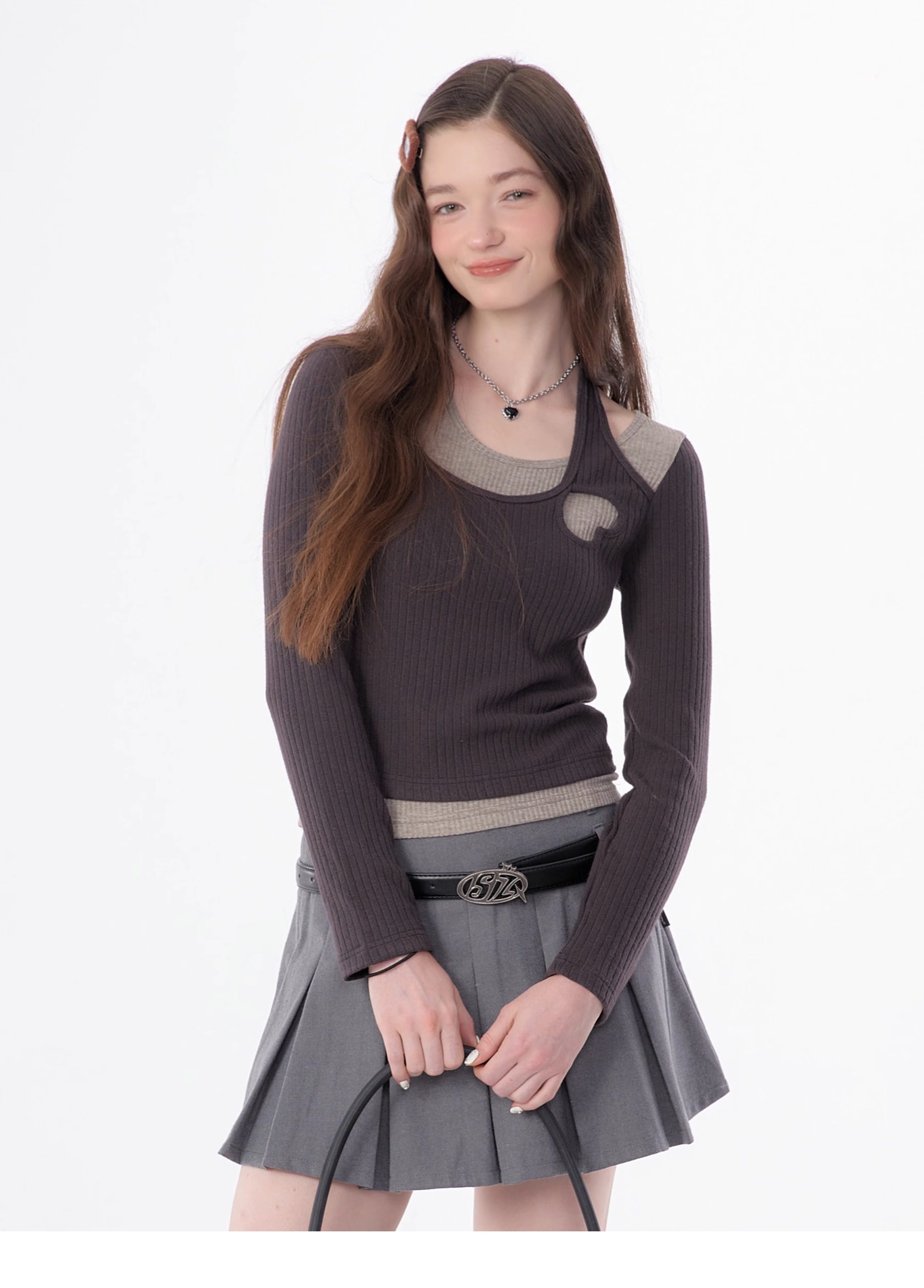 Love Off-Shoulder Knit Top | Hollow Long Sleeve Retro Design for Autumn/Winter