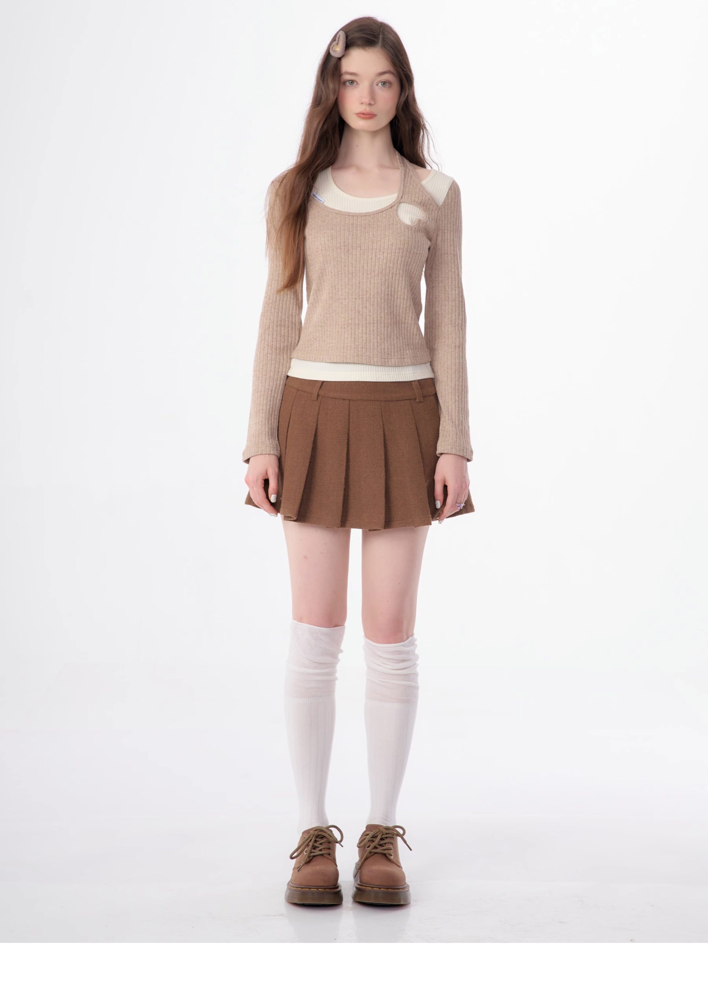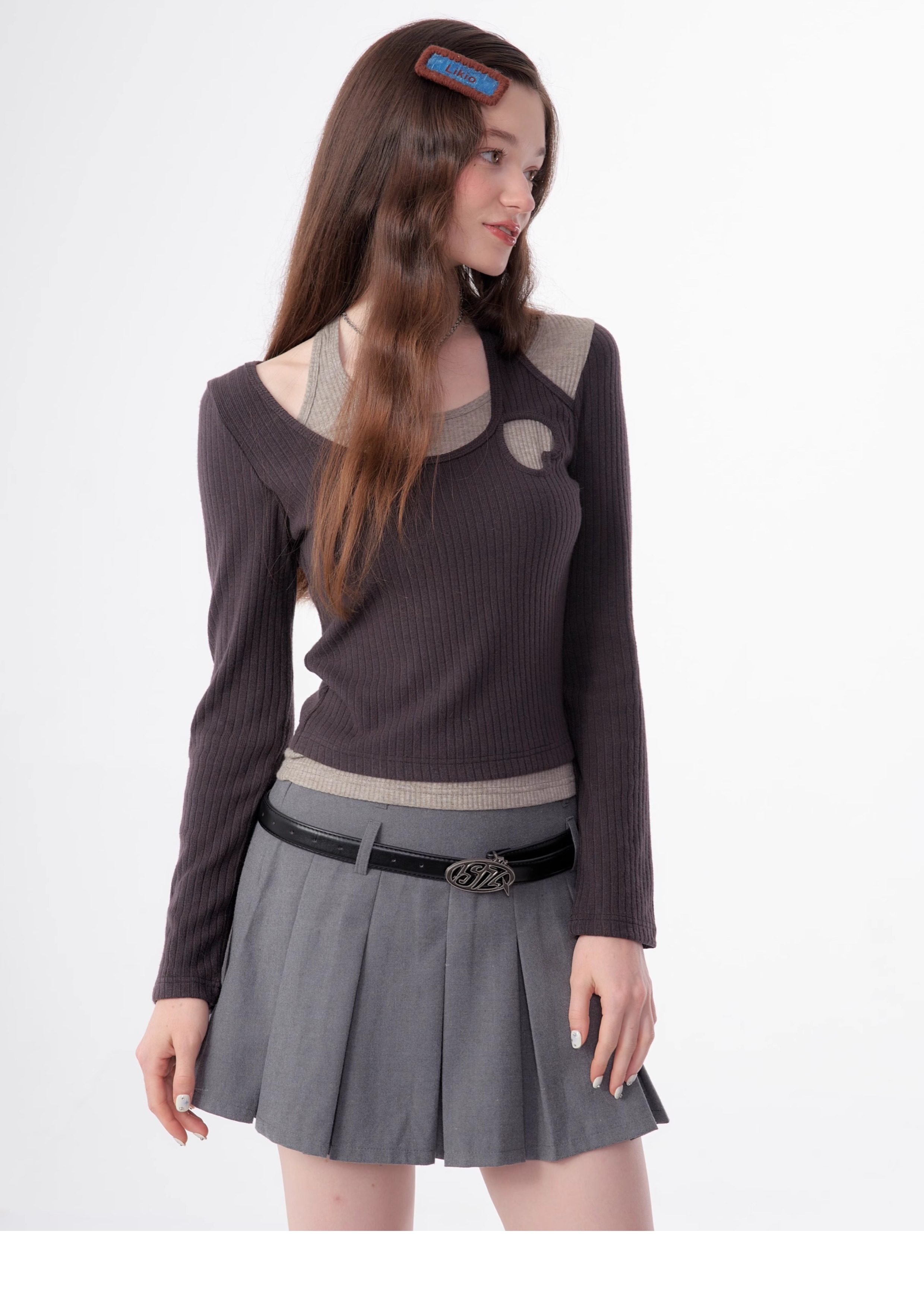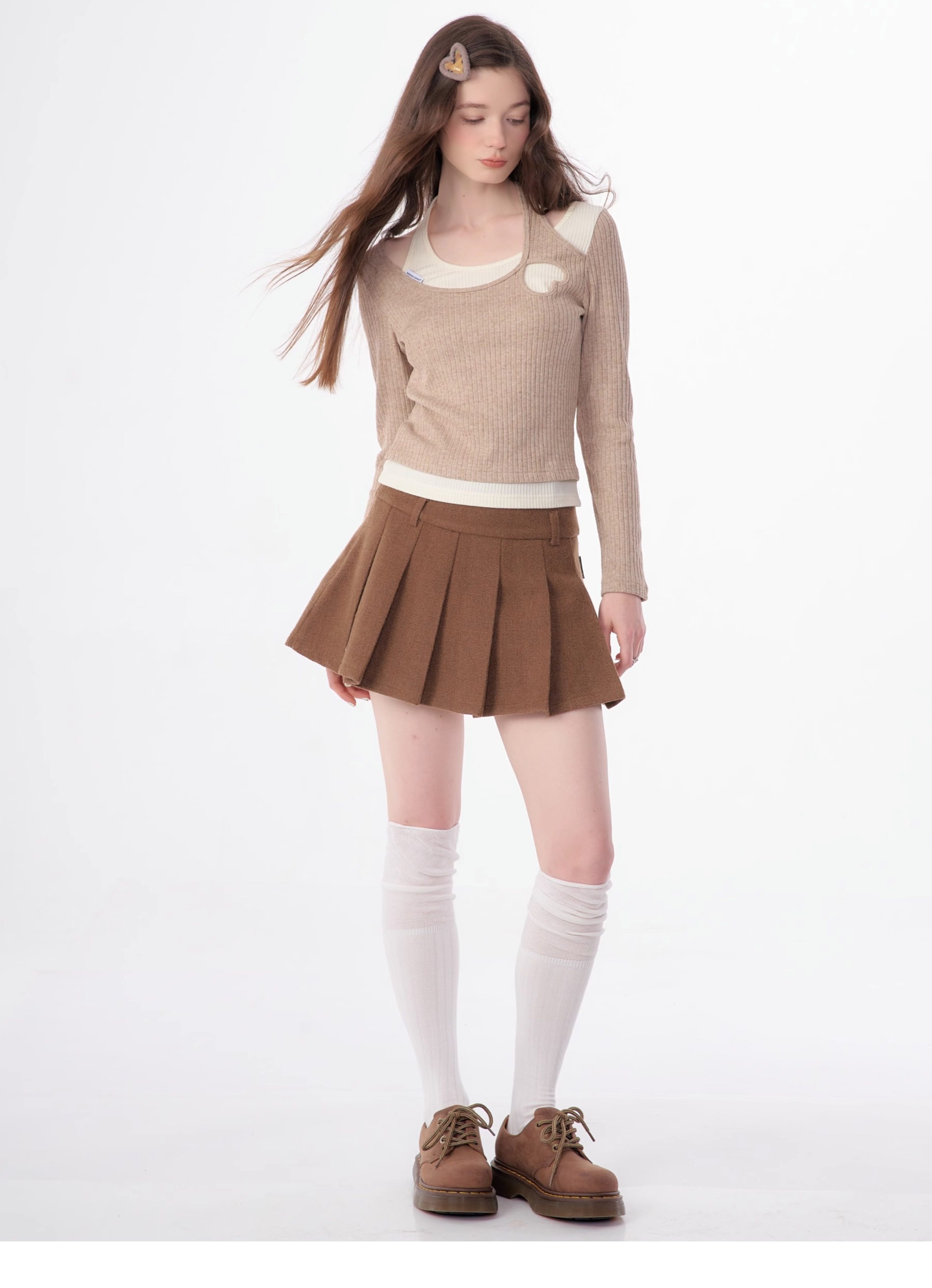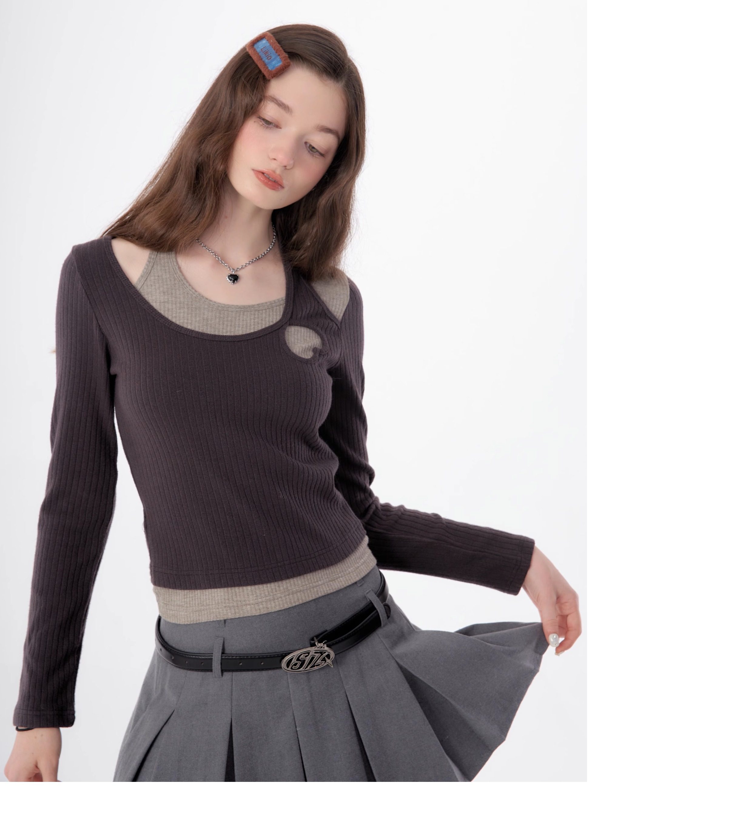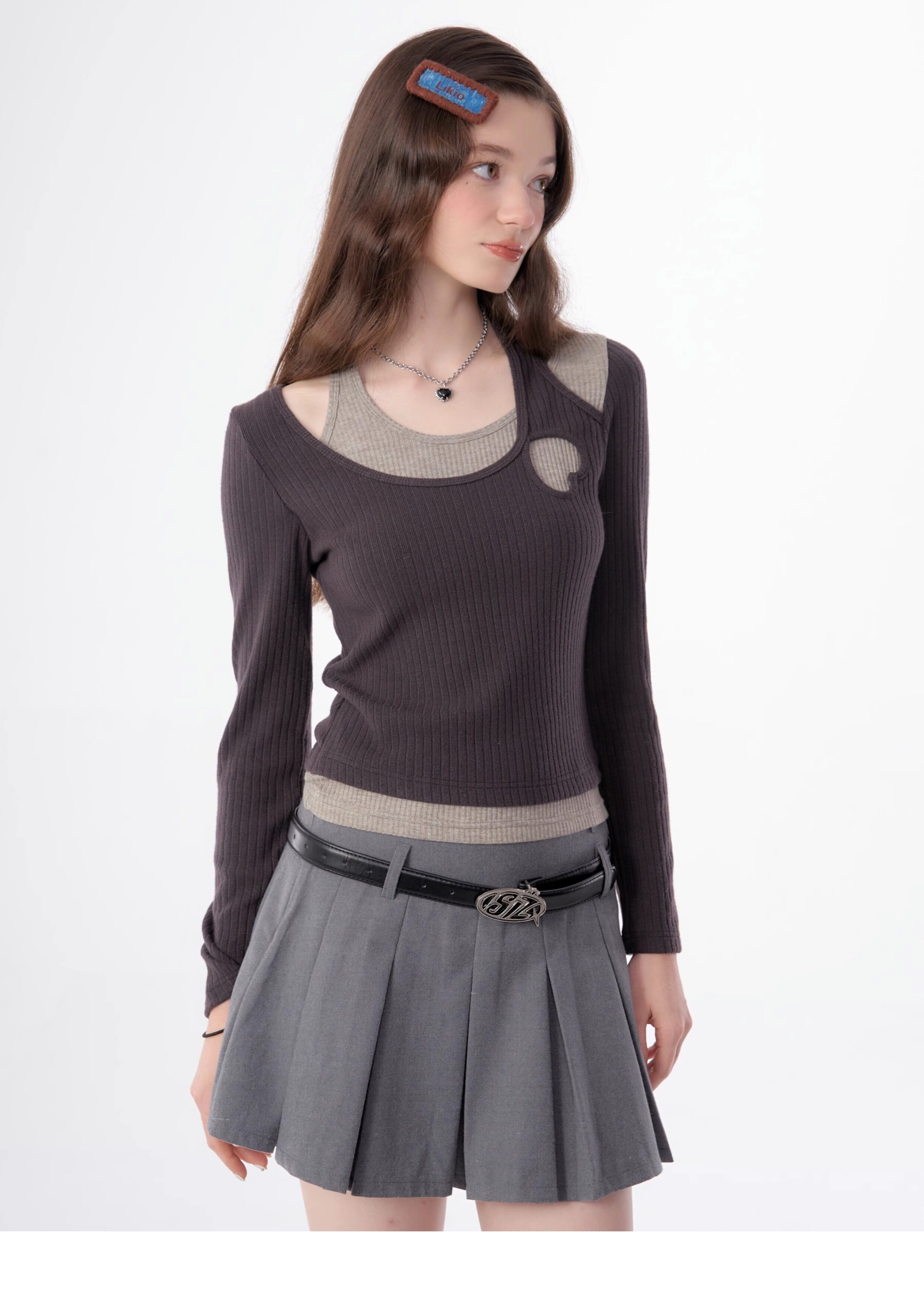 Love Off-Shoulder Knit Top | Hollow Long Sleeve Retro Design for Autumn/Winter