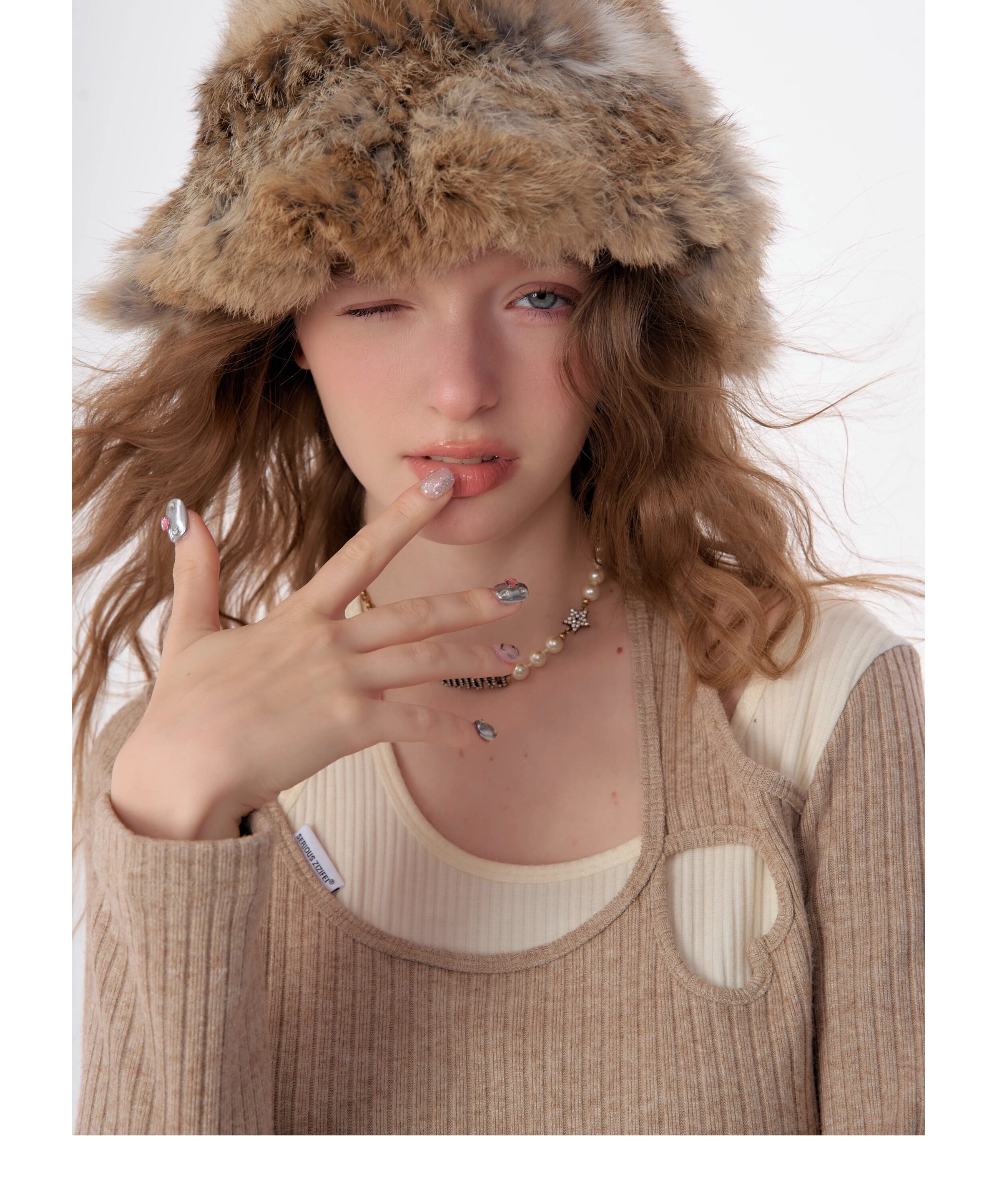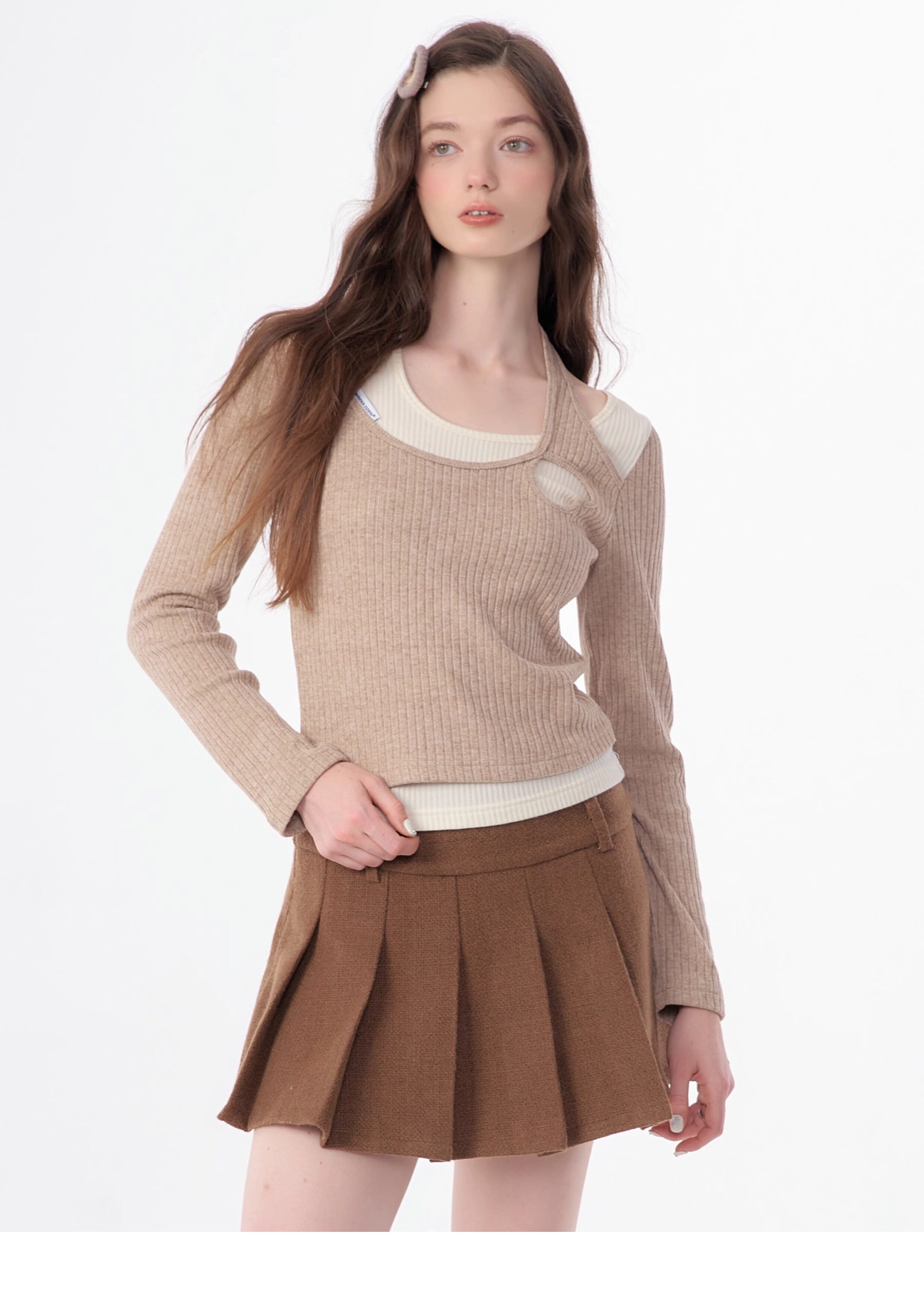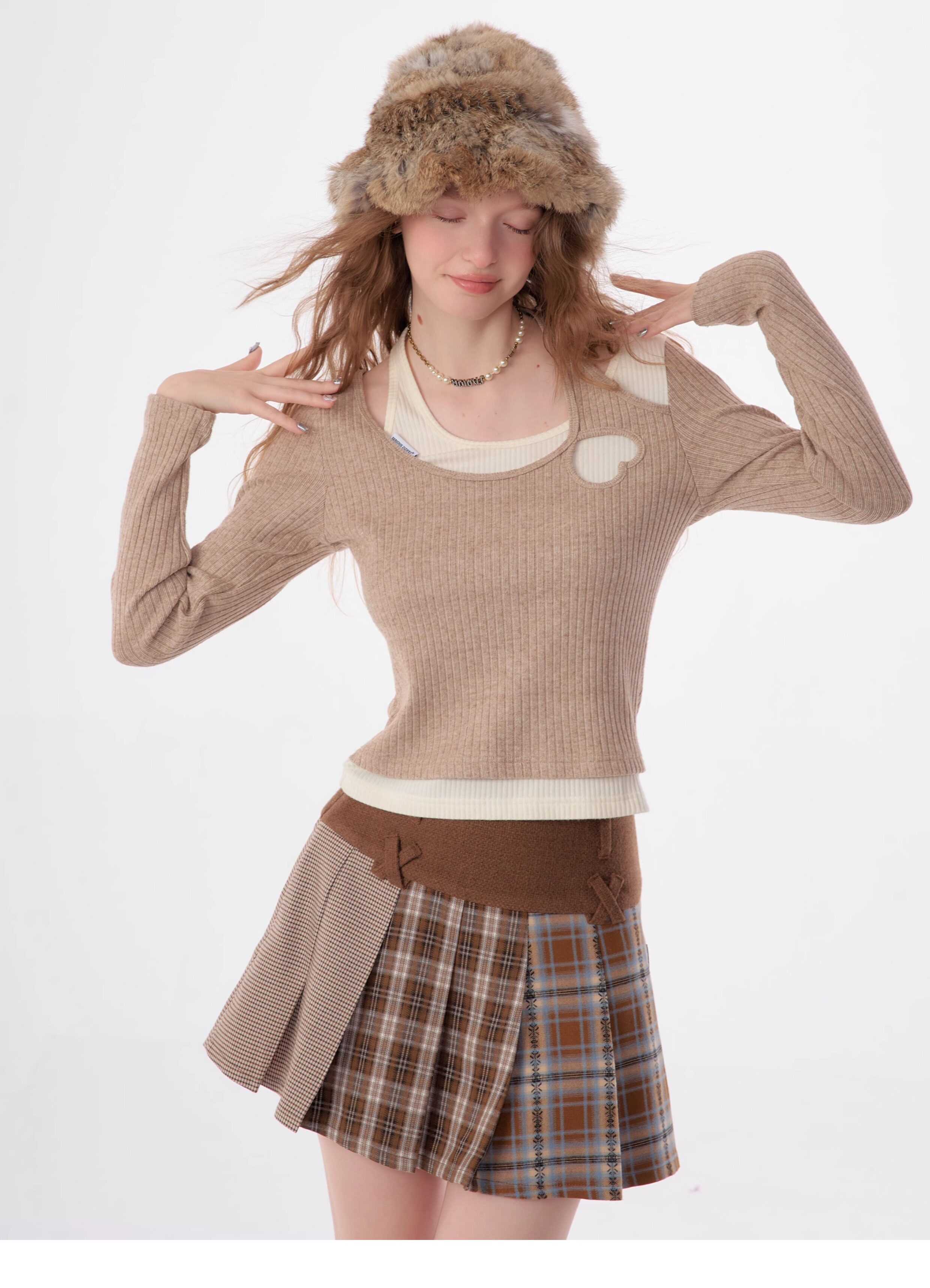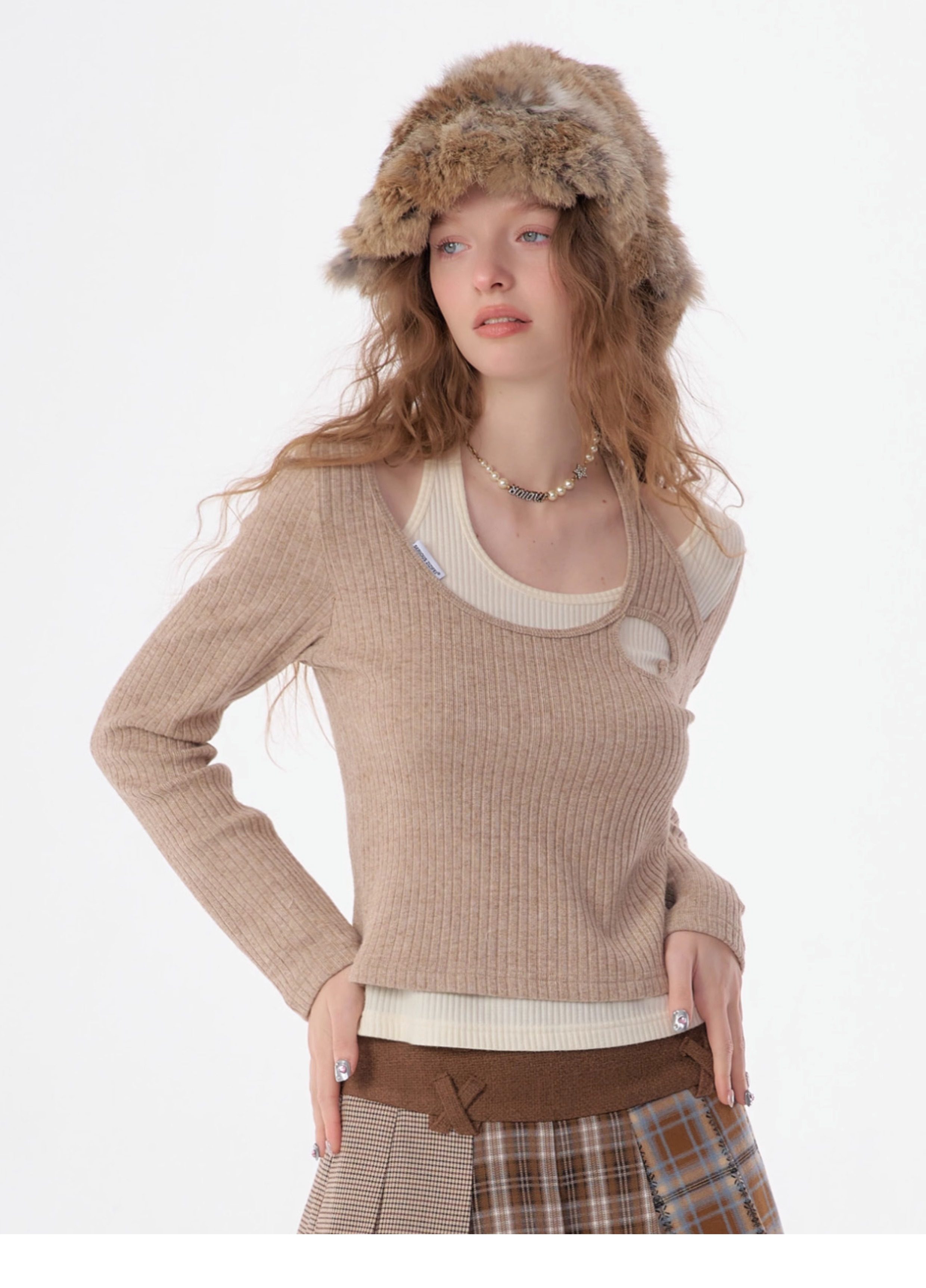Love Off-Shoulder Knit Top | Hollow Long Sleeve Retro Design for Autumn/Winter