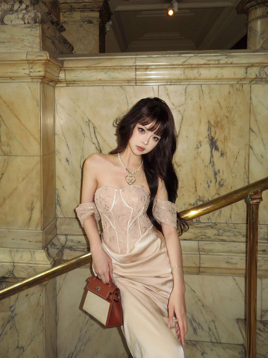Herringbone Bandeau Dresses – High-End Light Luxury Engagement & Birthday Wear