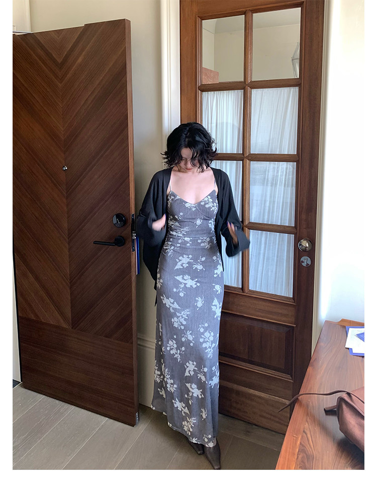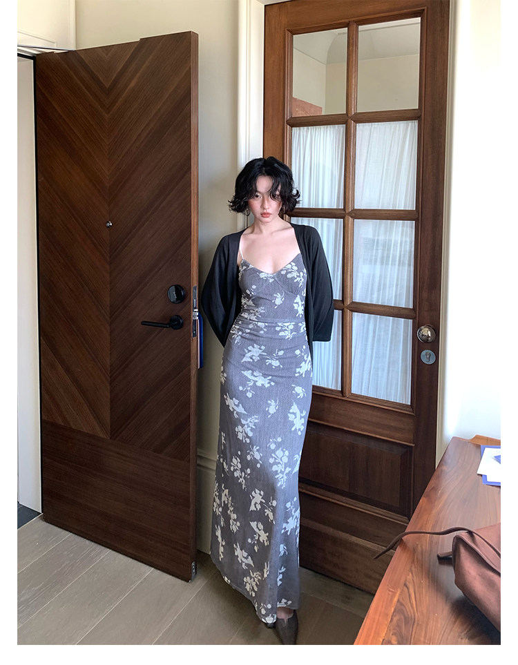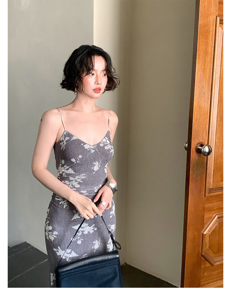 Blooming Flowers Printed V-Neck Suspender Dress – Hong Kong Retro Autumn