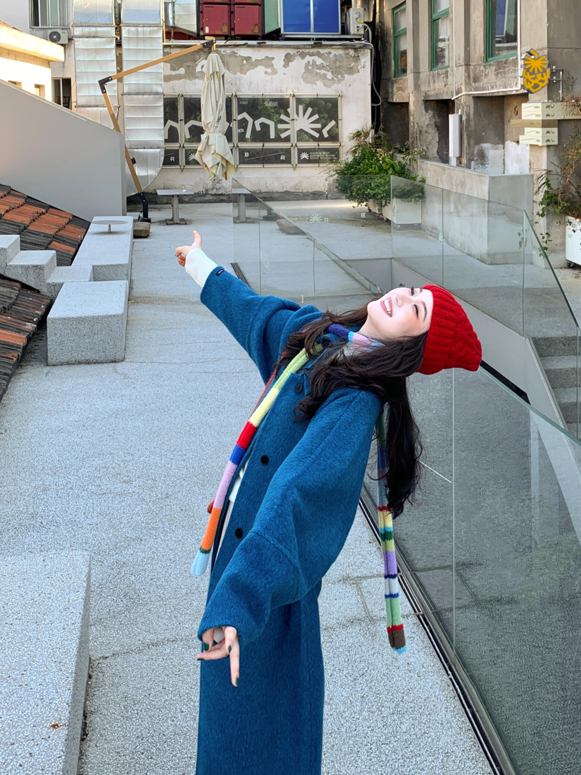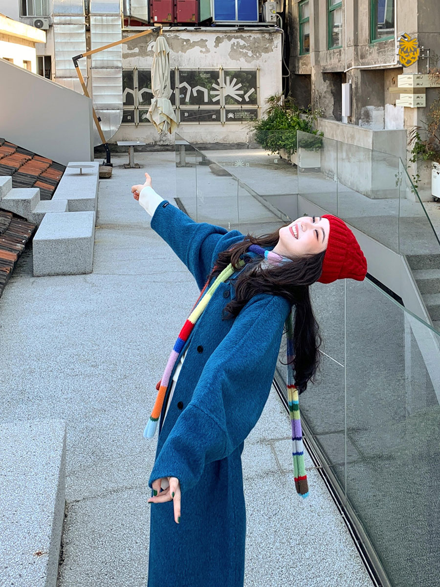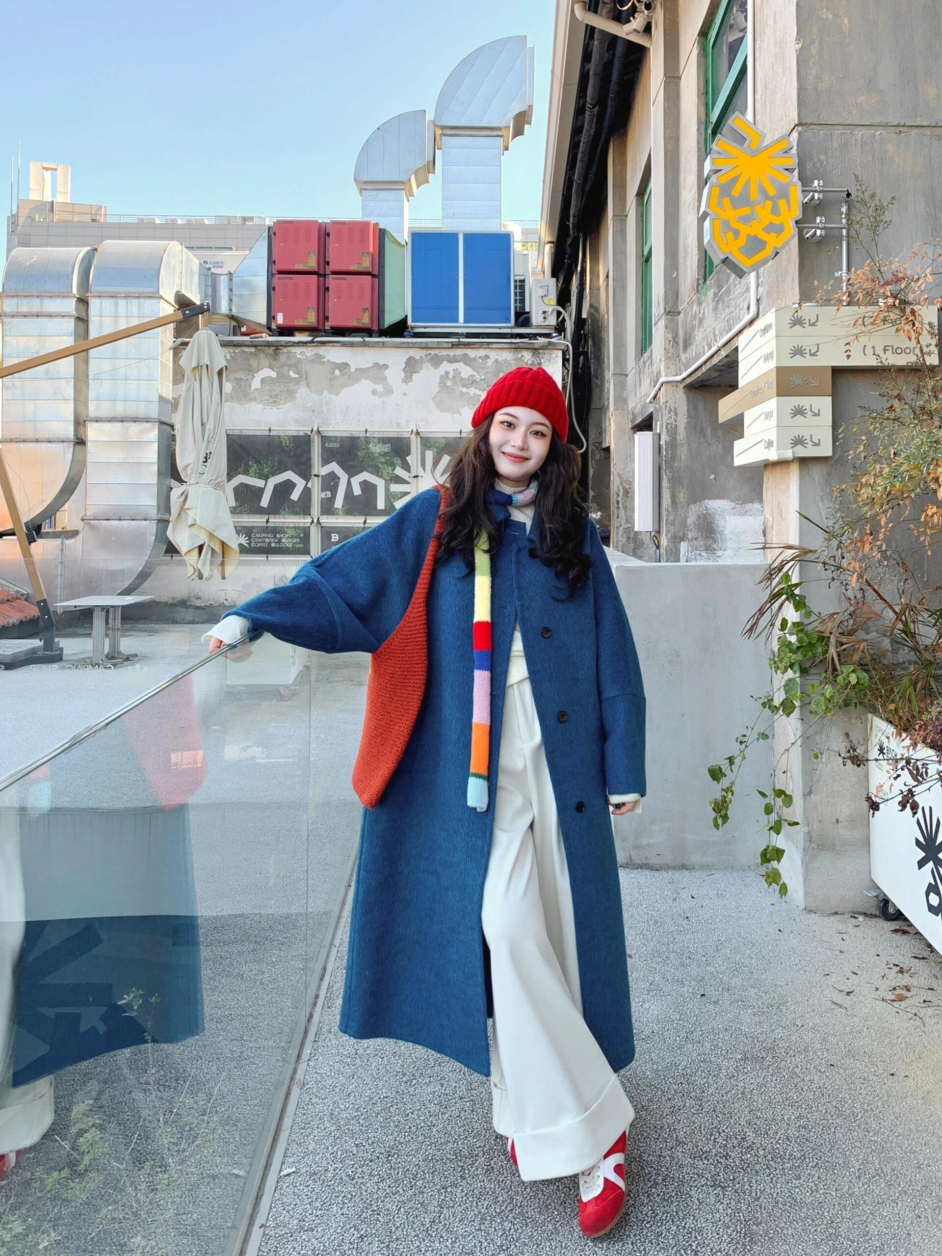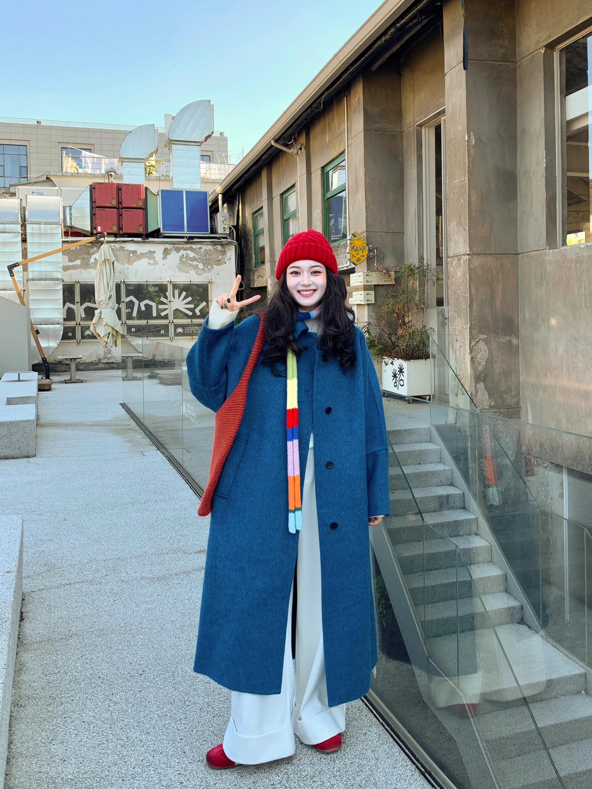 Blue Reversible Cashmere Coat – Chic Korean Petite Woolen Jacket