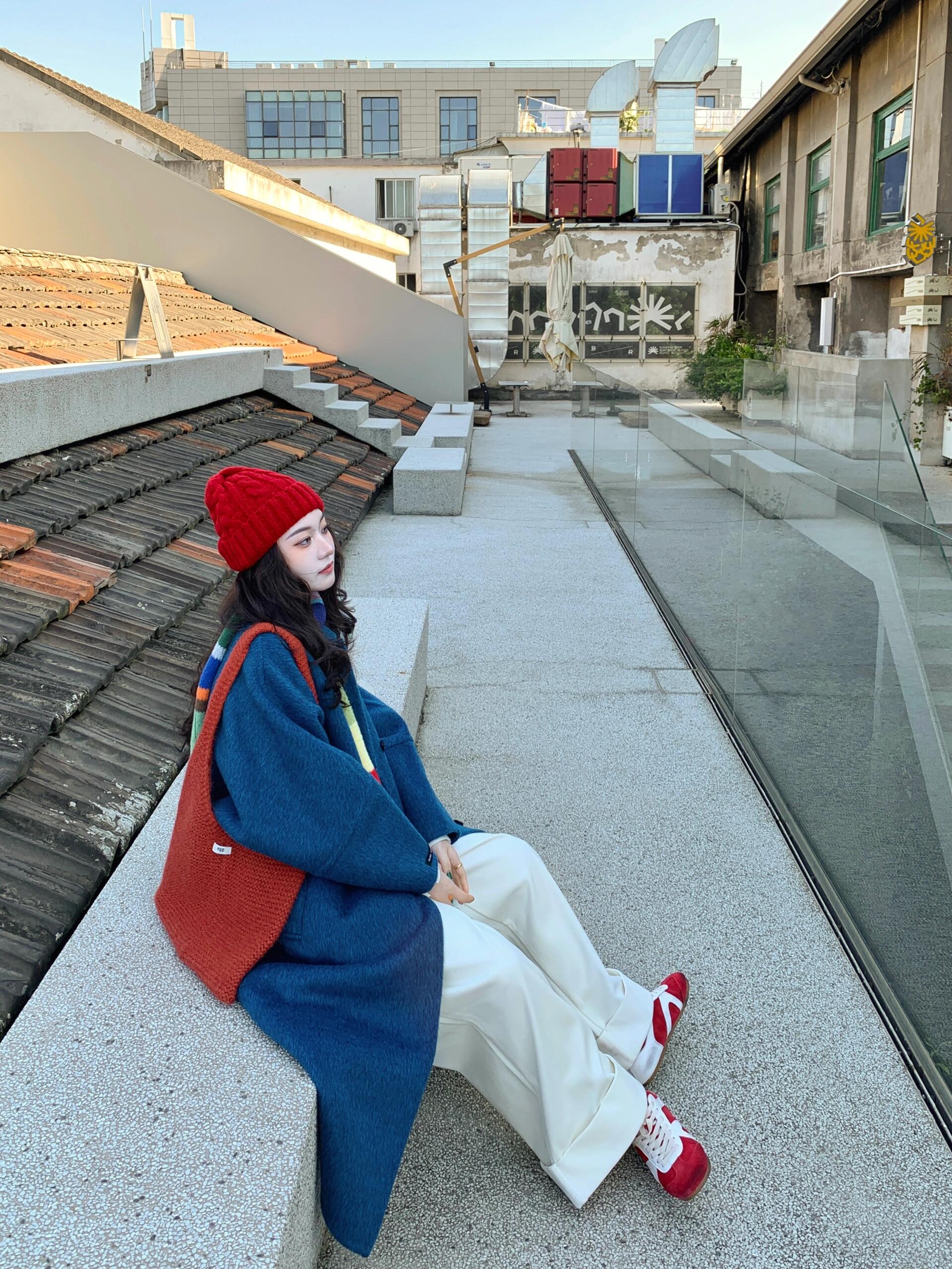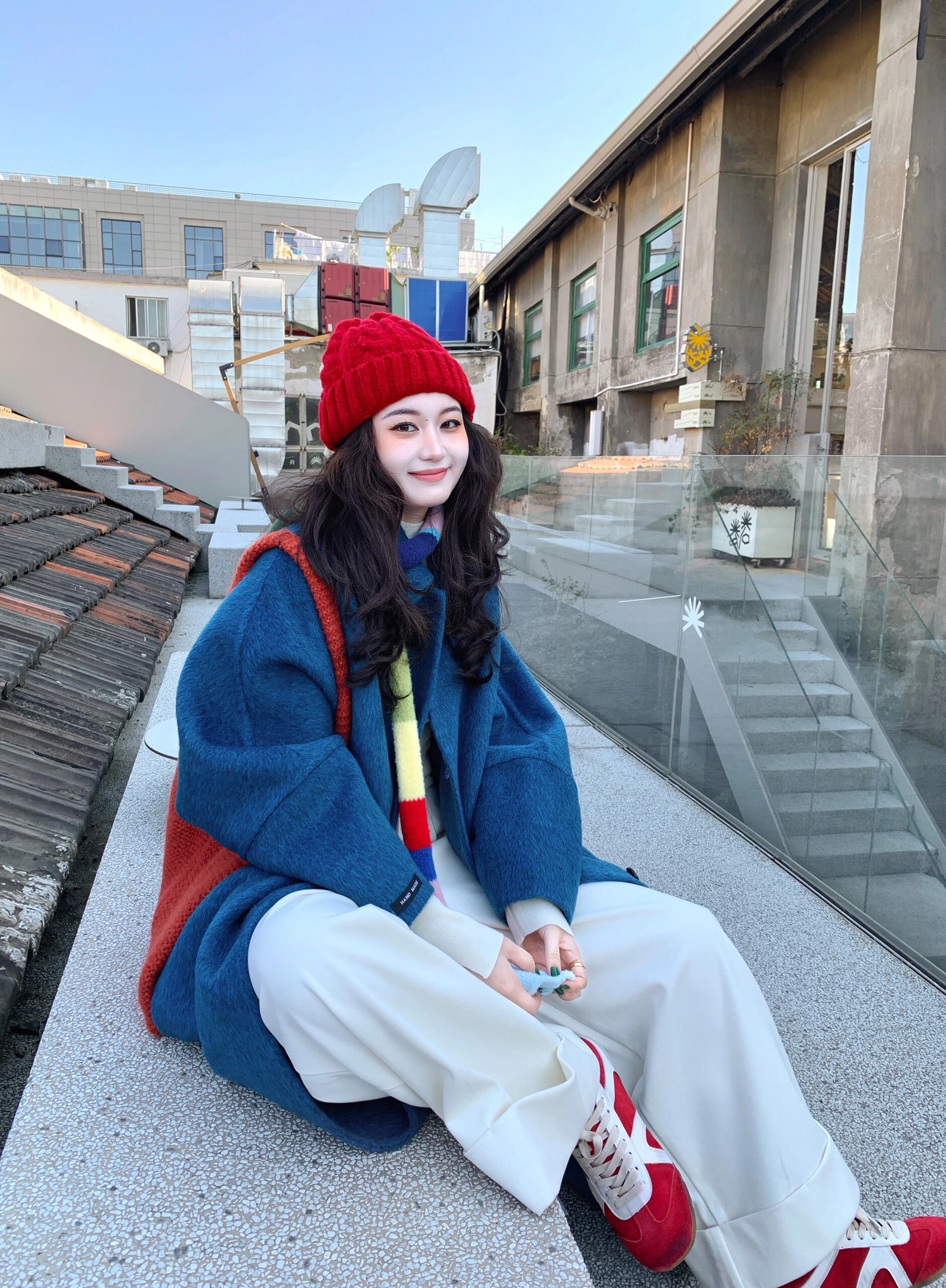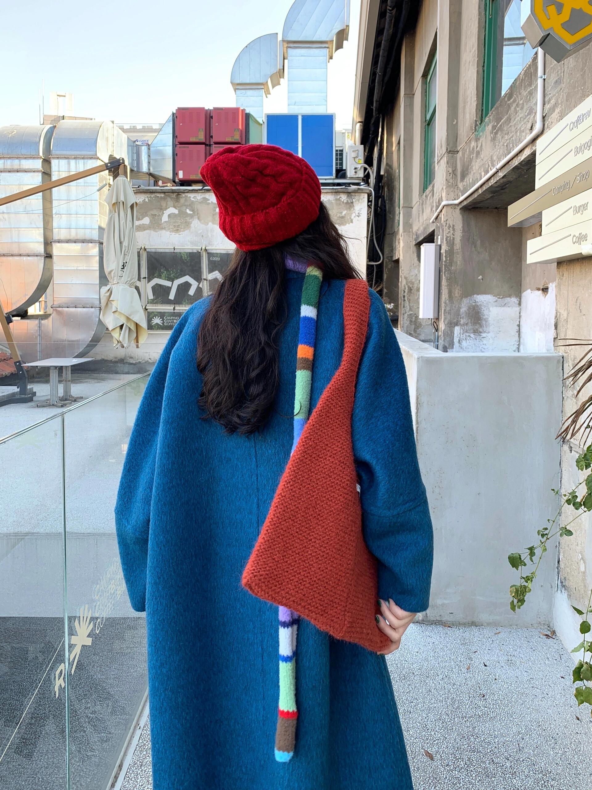 Blue Reversible Cashmere Coat – Chic Korean Petite Woolen Jacket