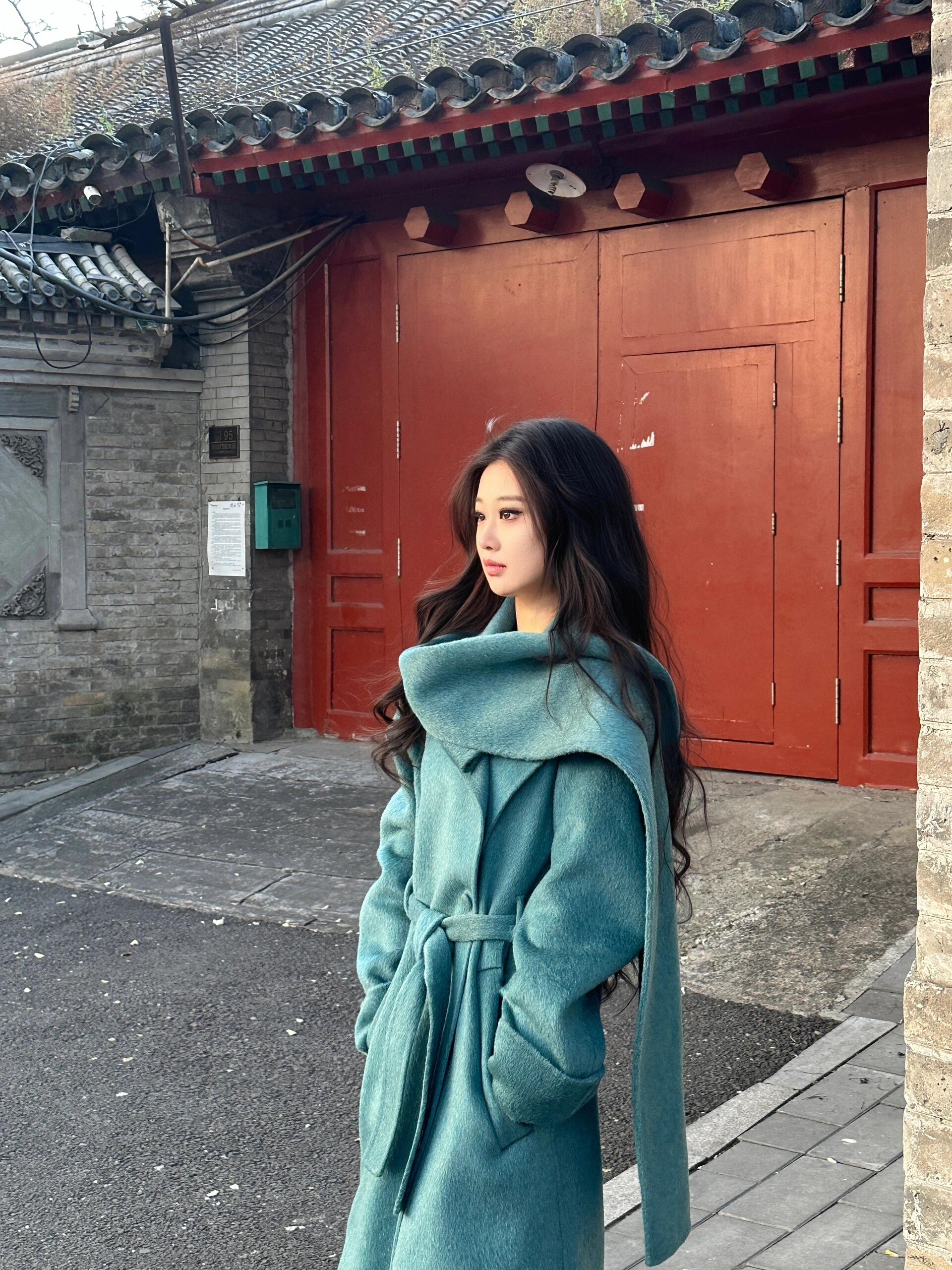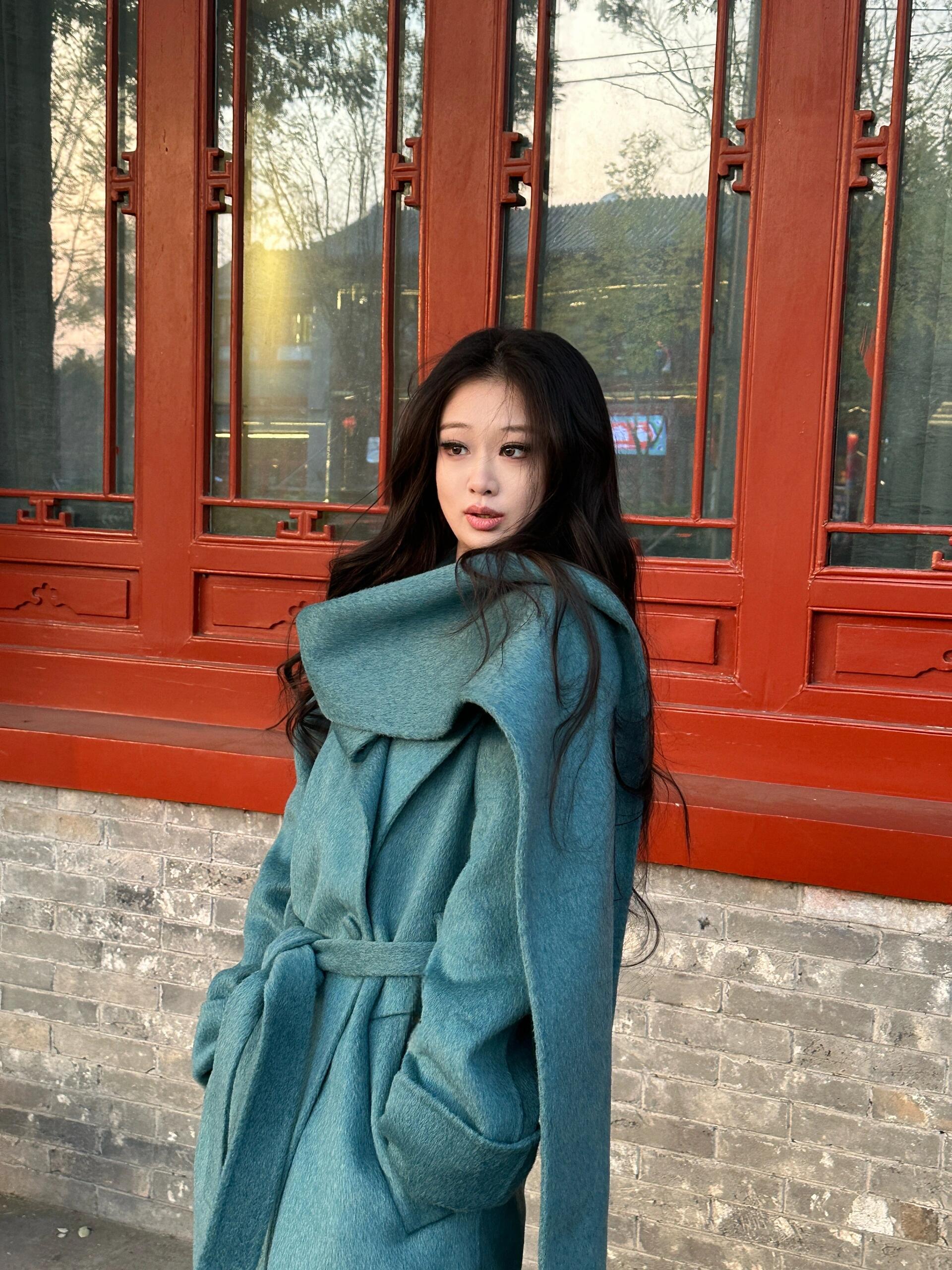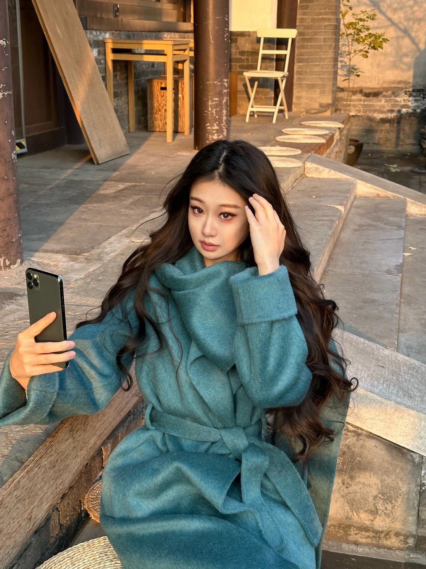 Blue Reversible Cashmere Coat – Luxurious Winter Scarf Woolen Jacket