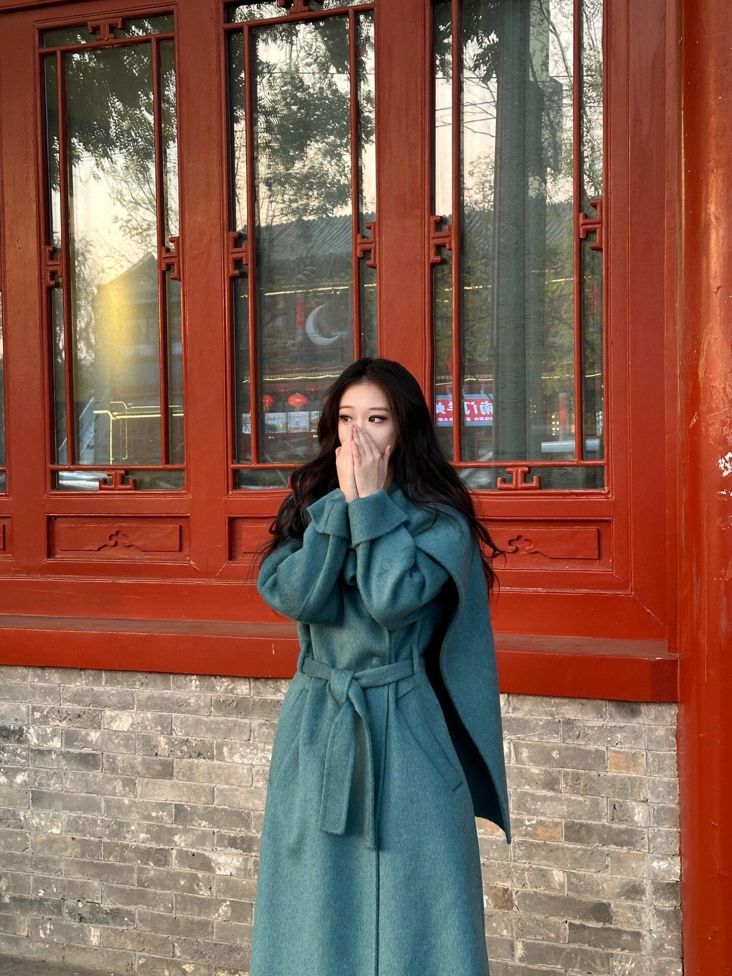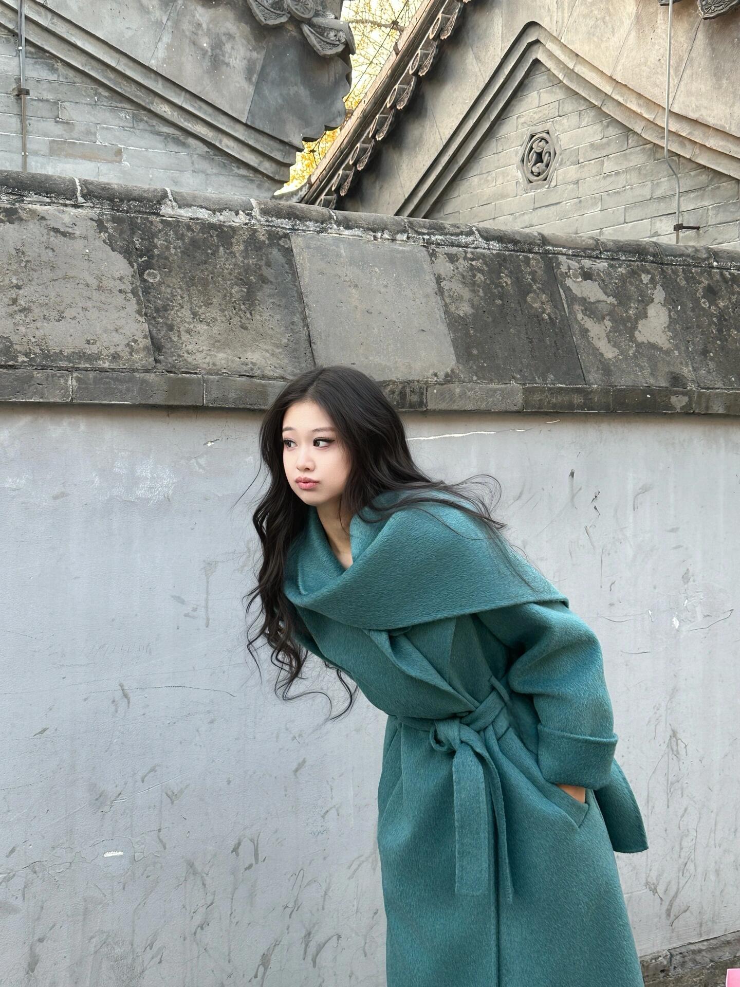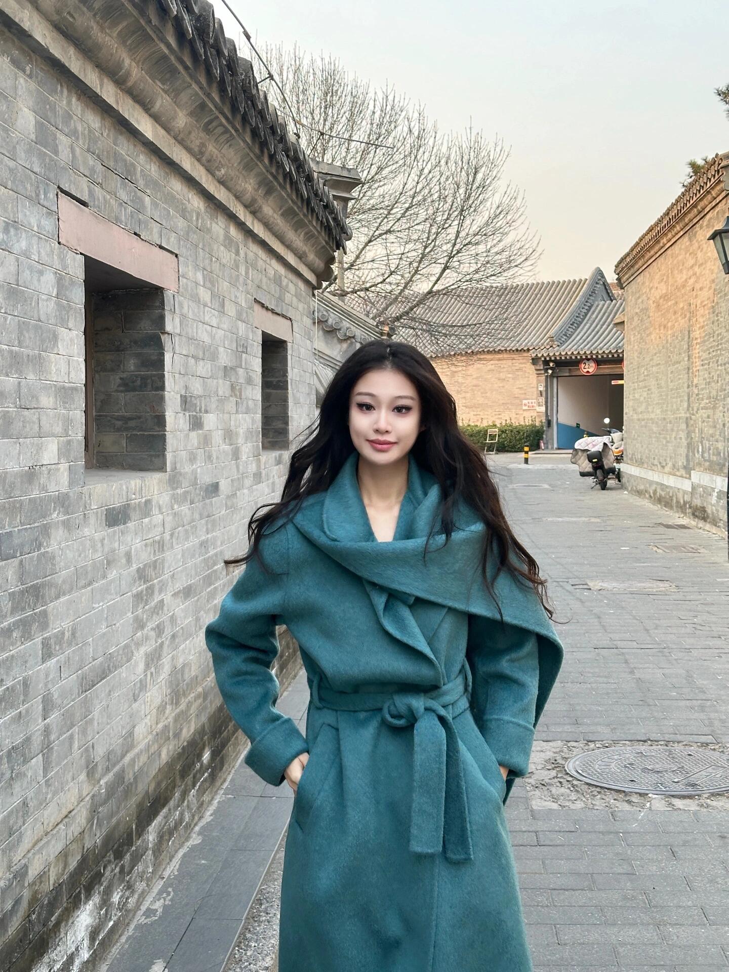 Blue Reversible Cashmere Coat – Luxurious Winter Scarf Woolen Jacket