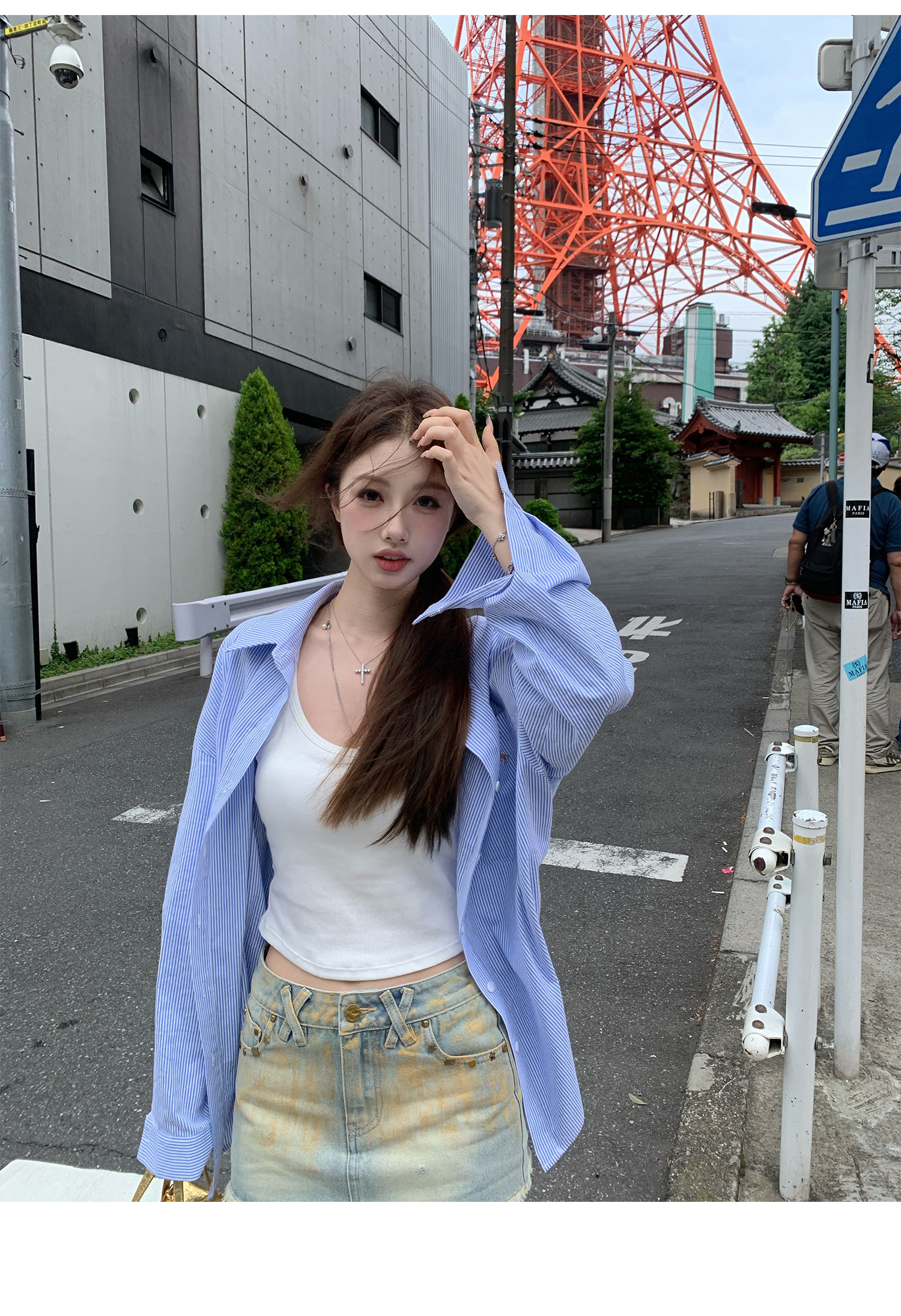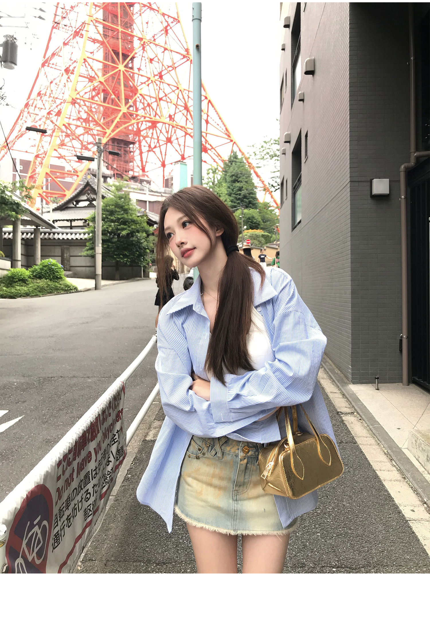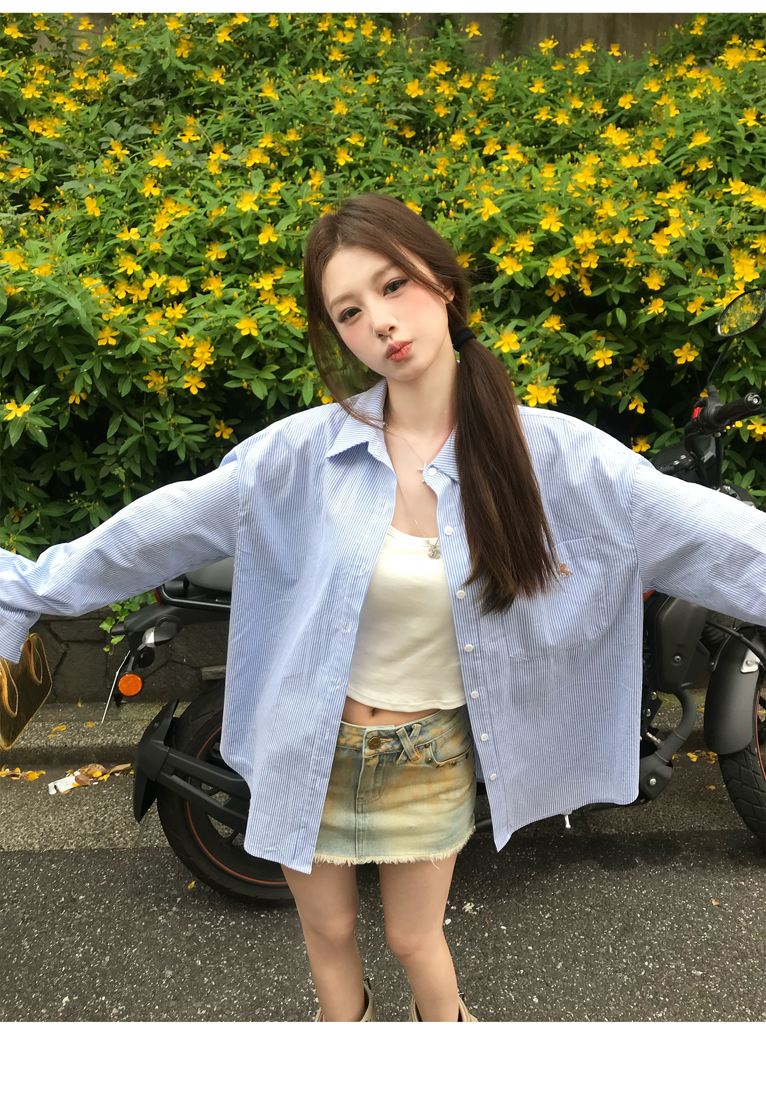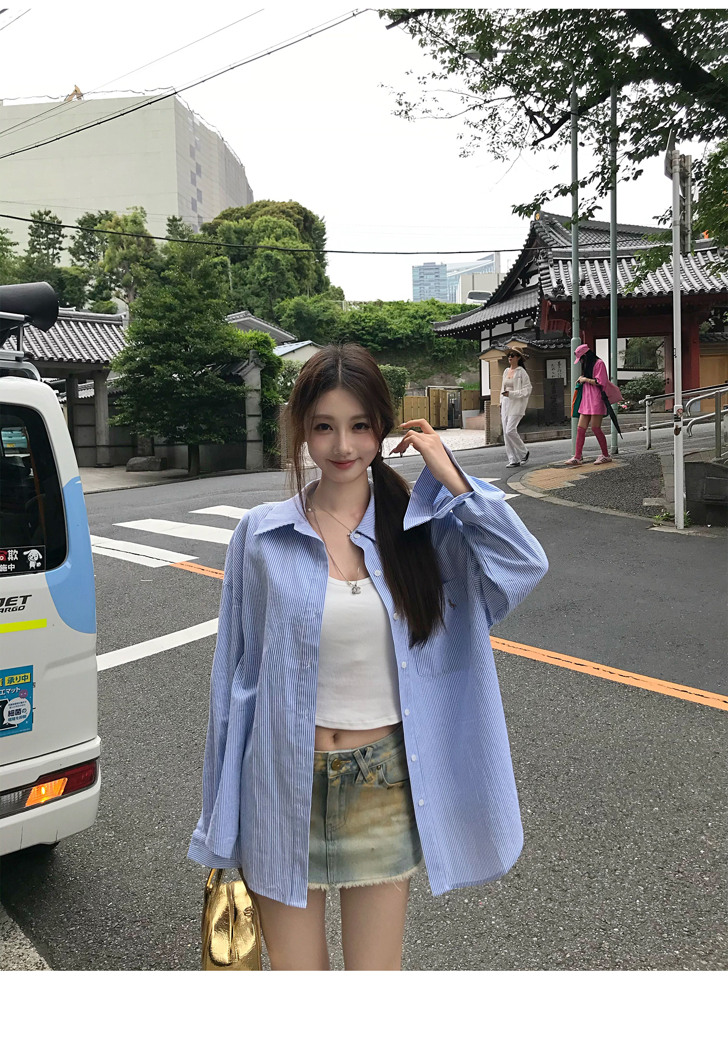 Blue Striped Shirt - Women's Summer Loose Long-Sleeve Sunscreen Cardigan