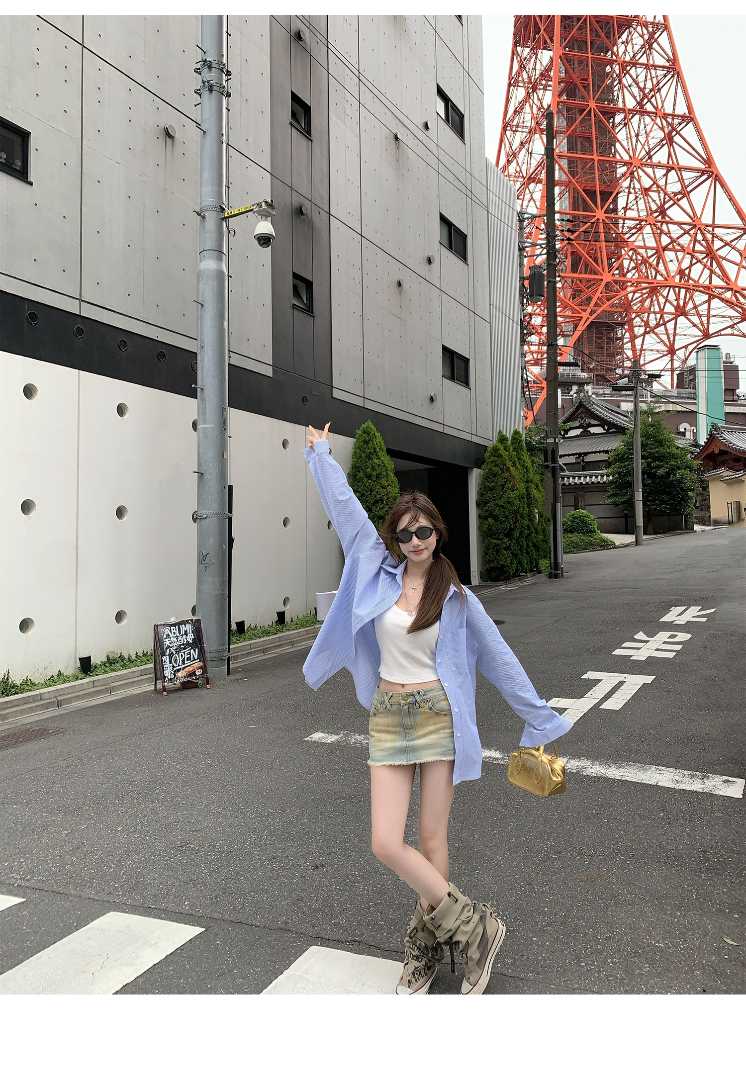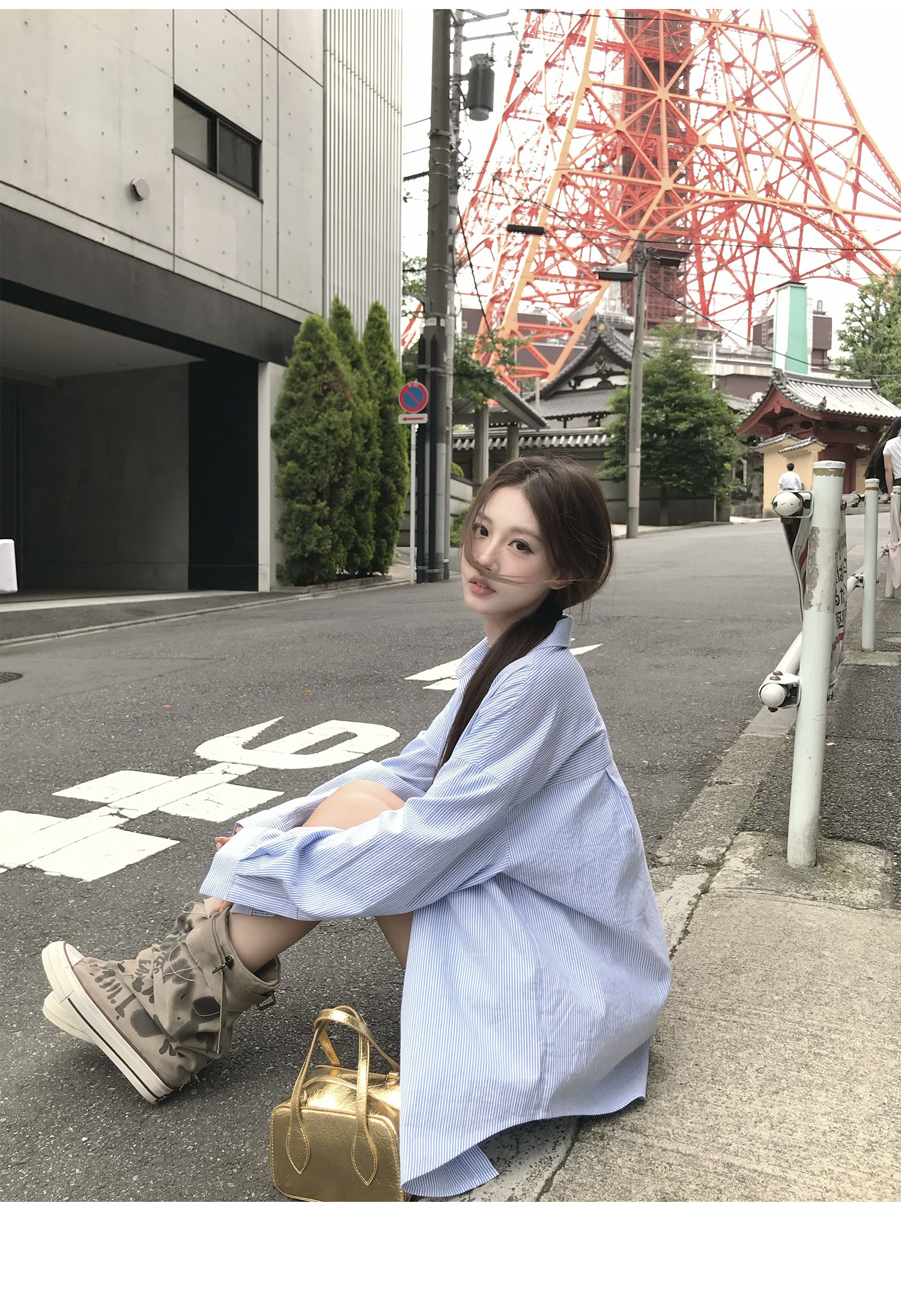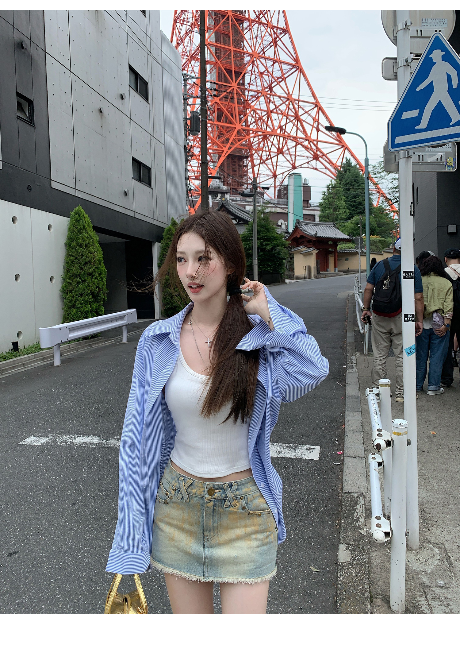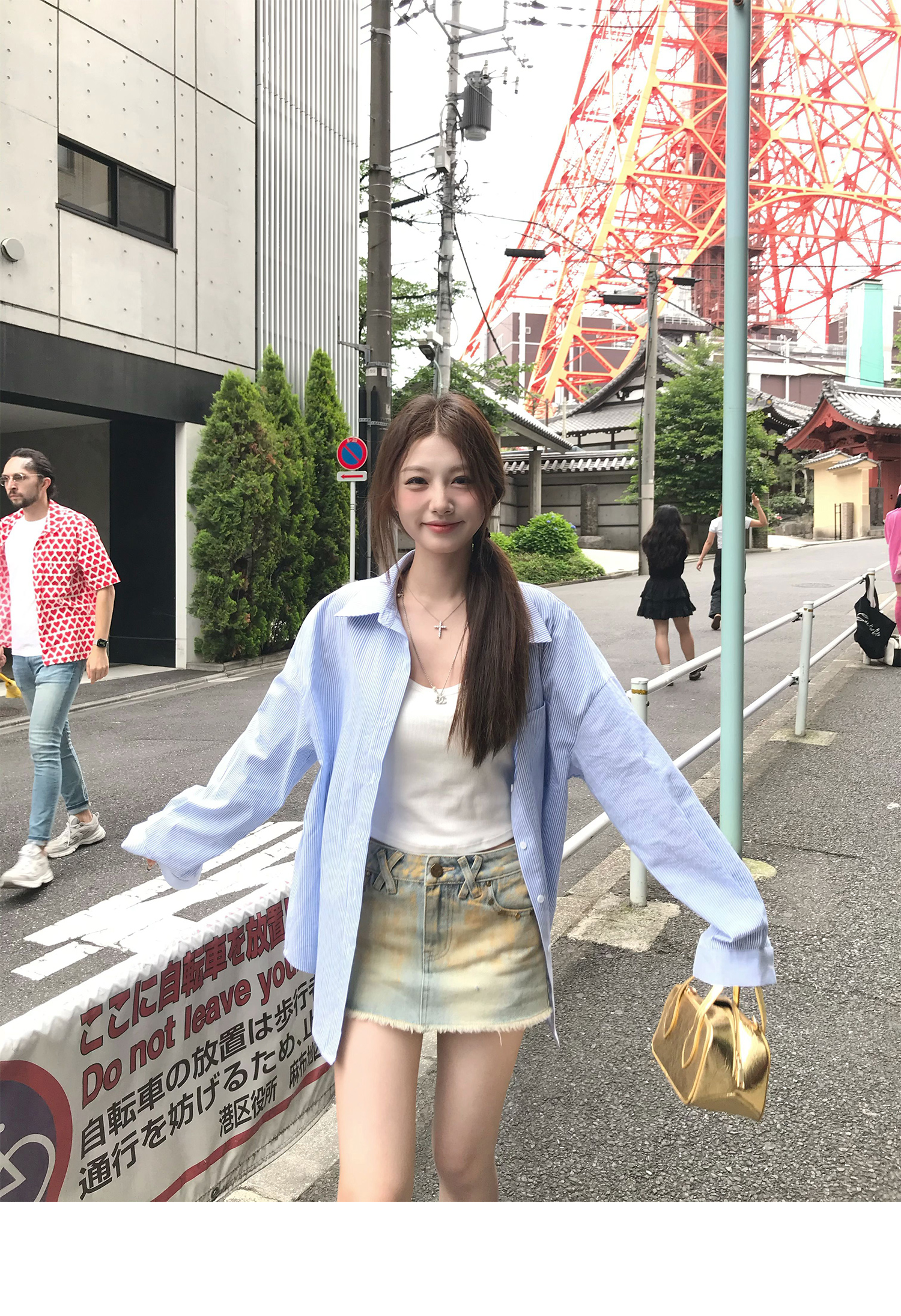Blue Striped Shirt - Women's Summer Loose Long-Sleeve Sunscreen Cardigan