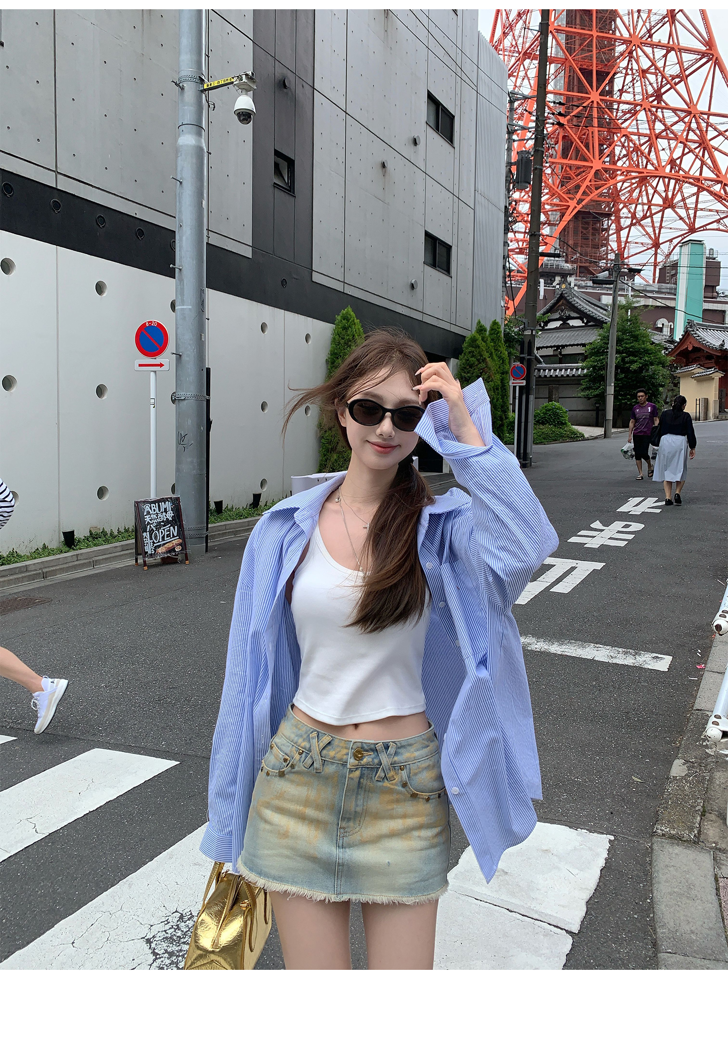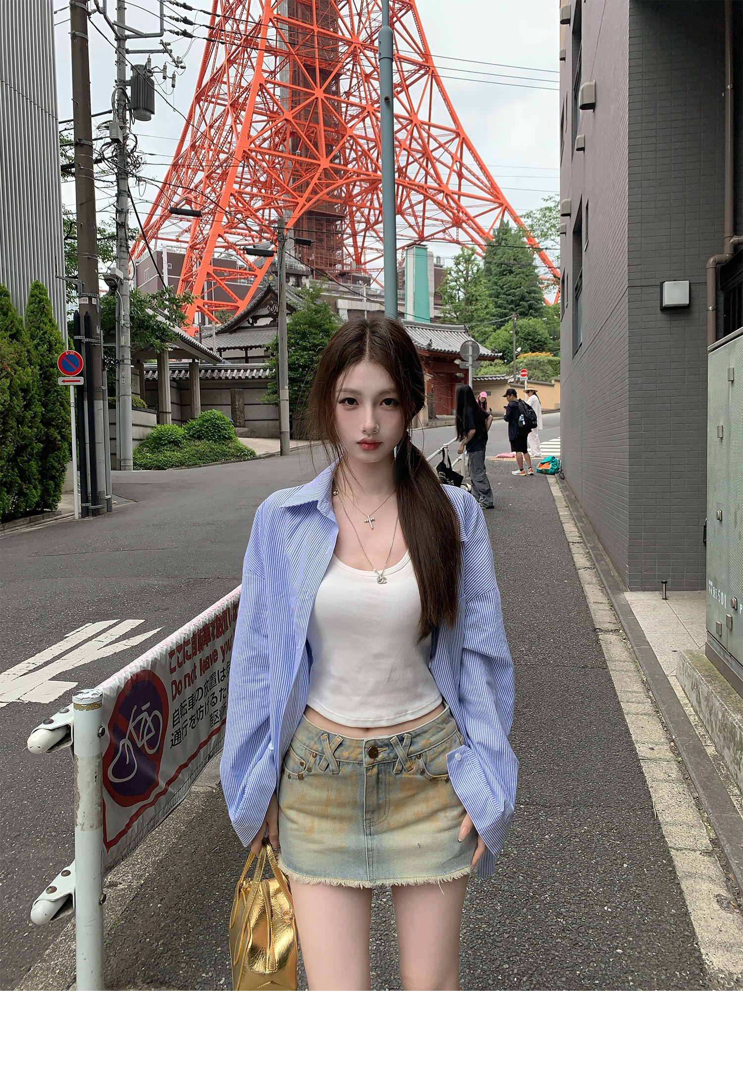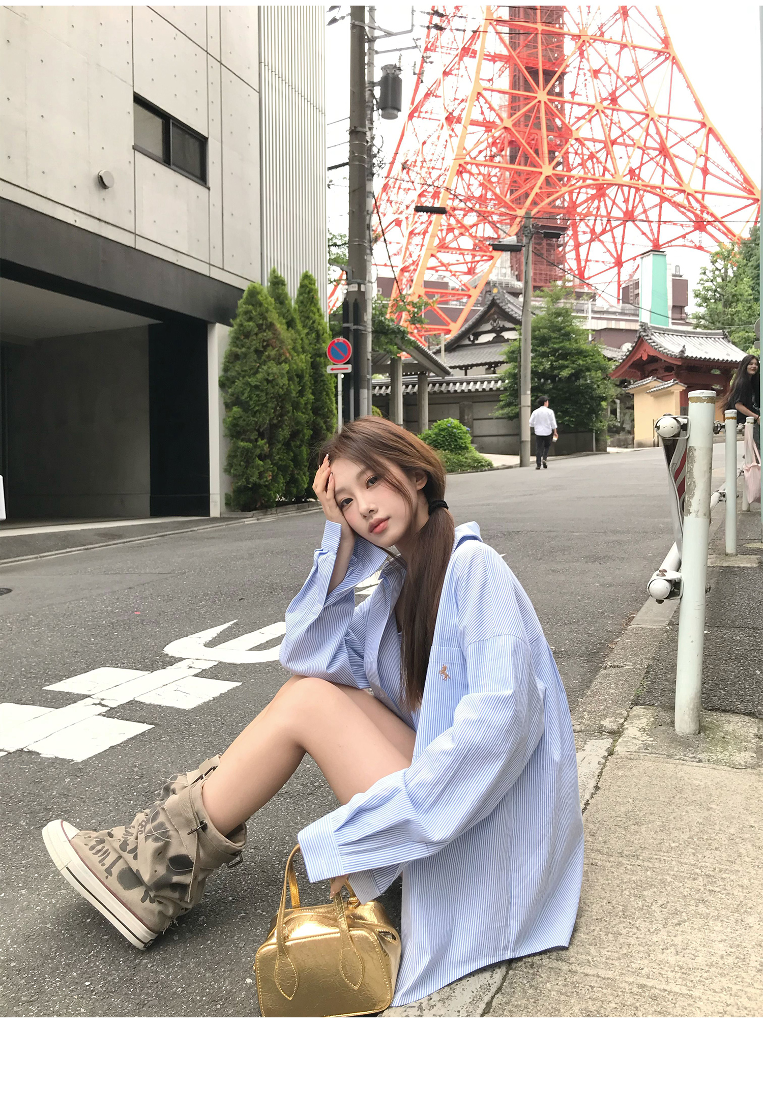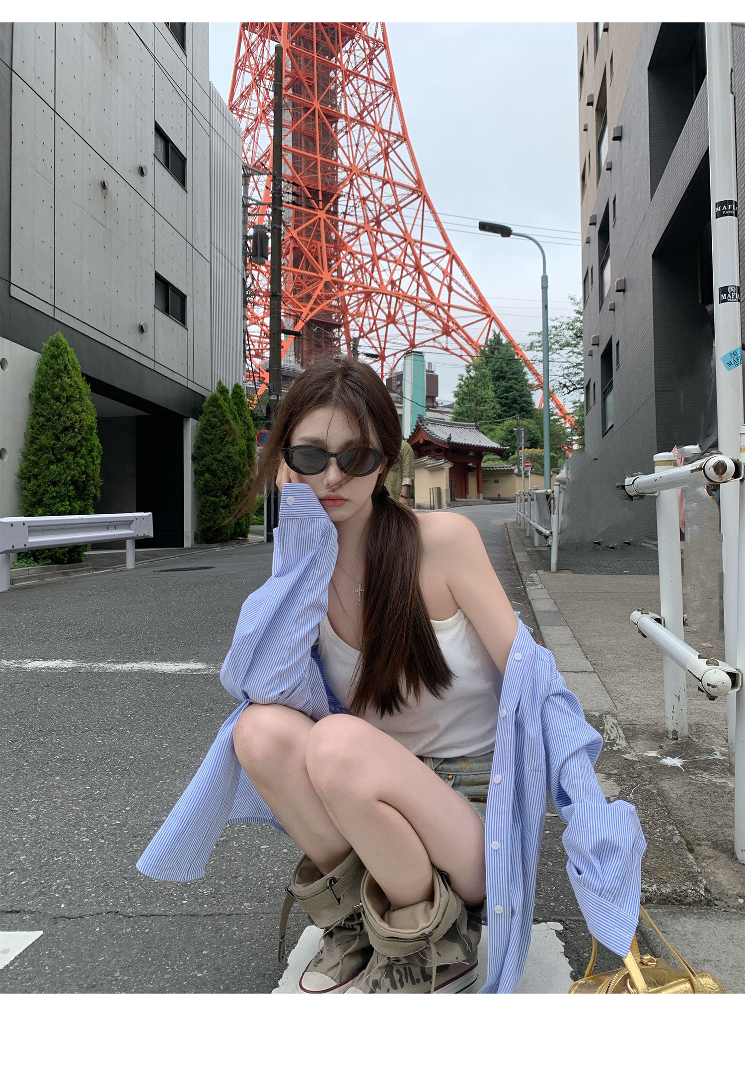 Blue Striped Shirt - Women's Summer Loose Long-Sleeve Sunscreen Cardigan