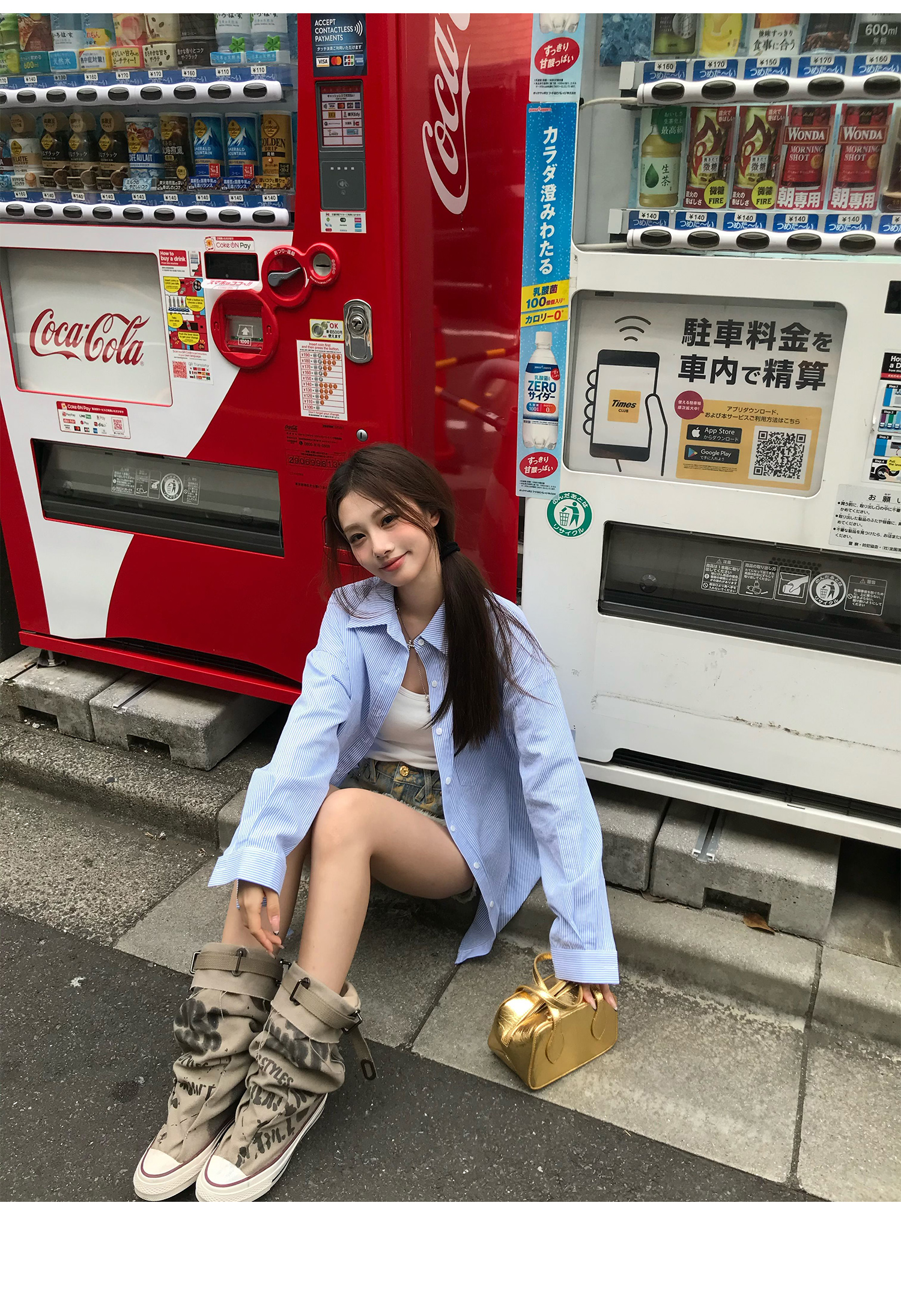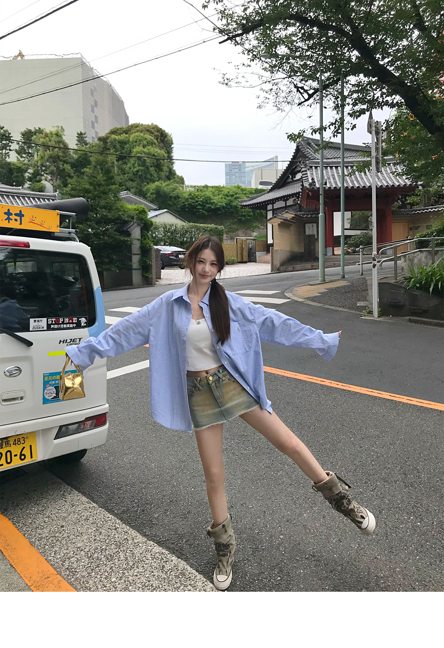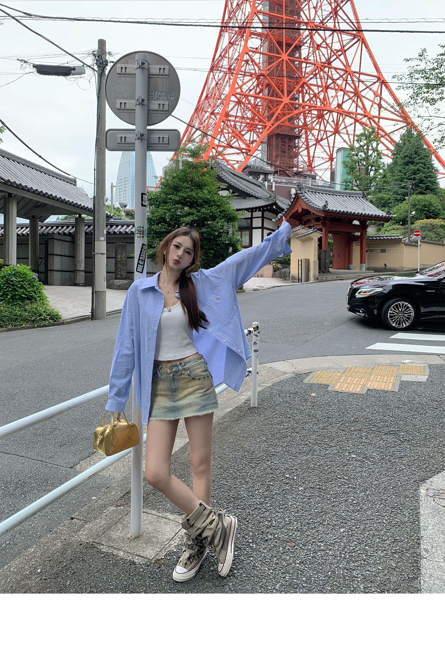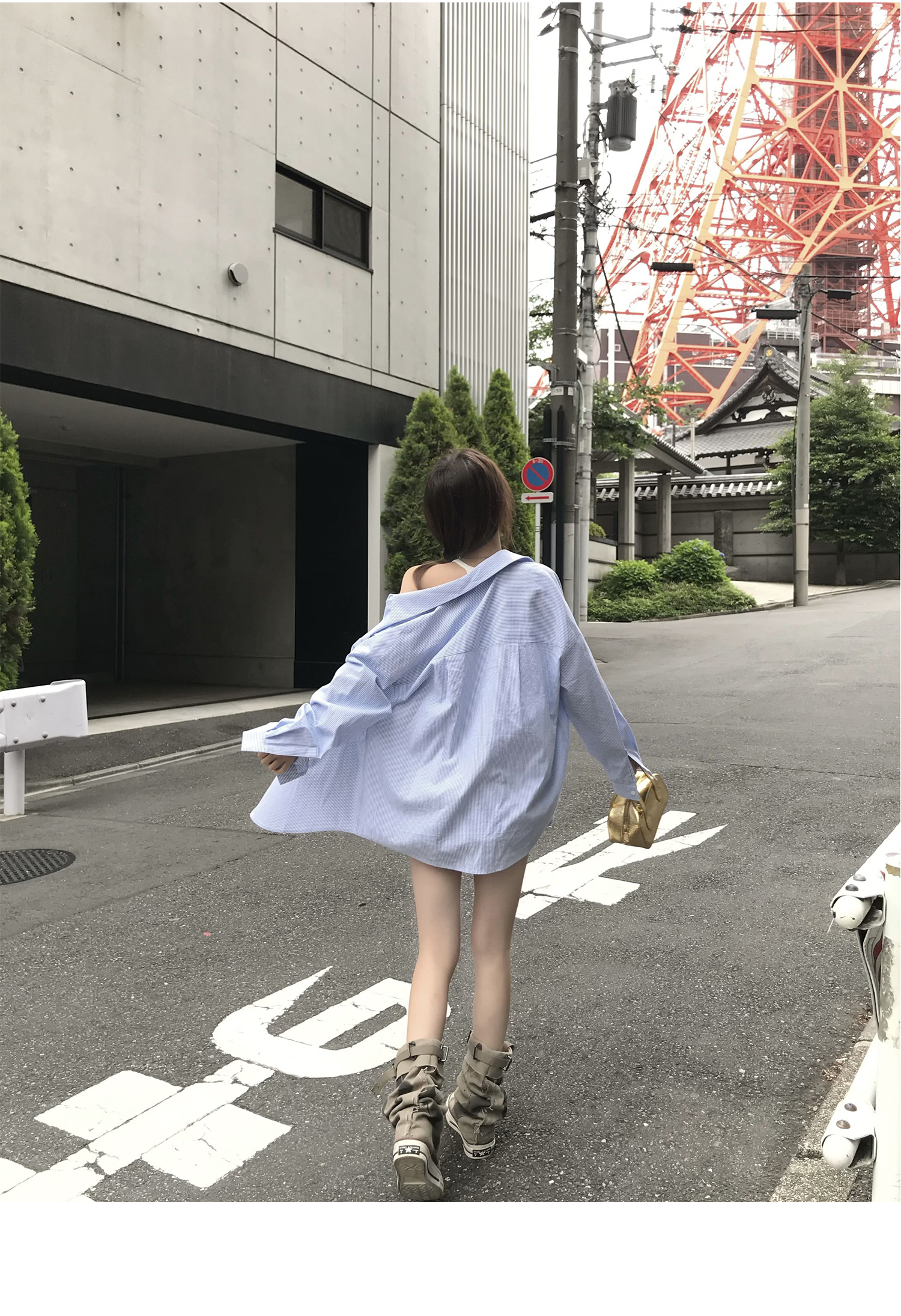 Blue Striped Shirt - Women's Summer Loose Long-Sleeve Sunscreen Cardigan