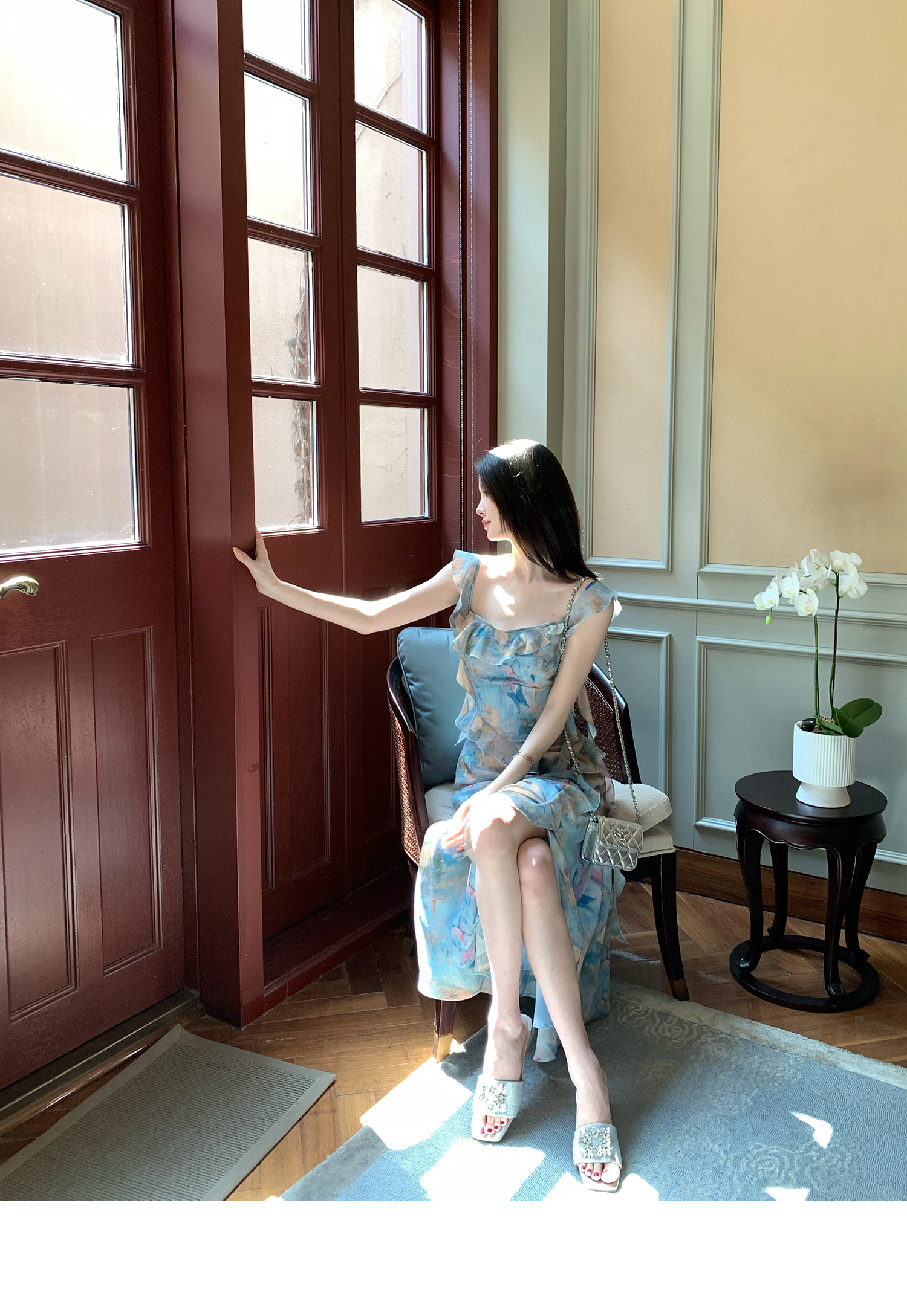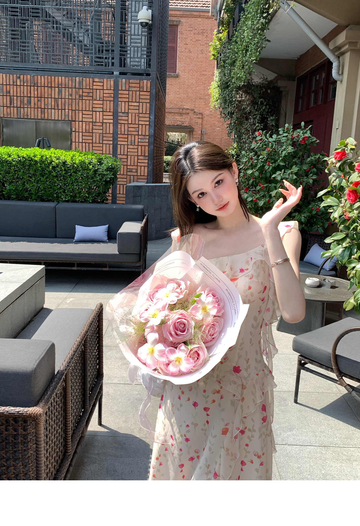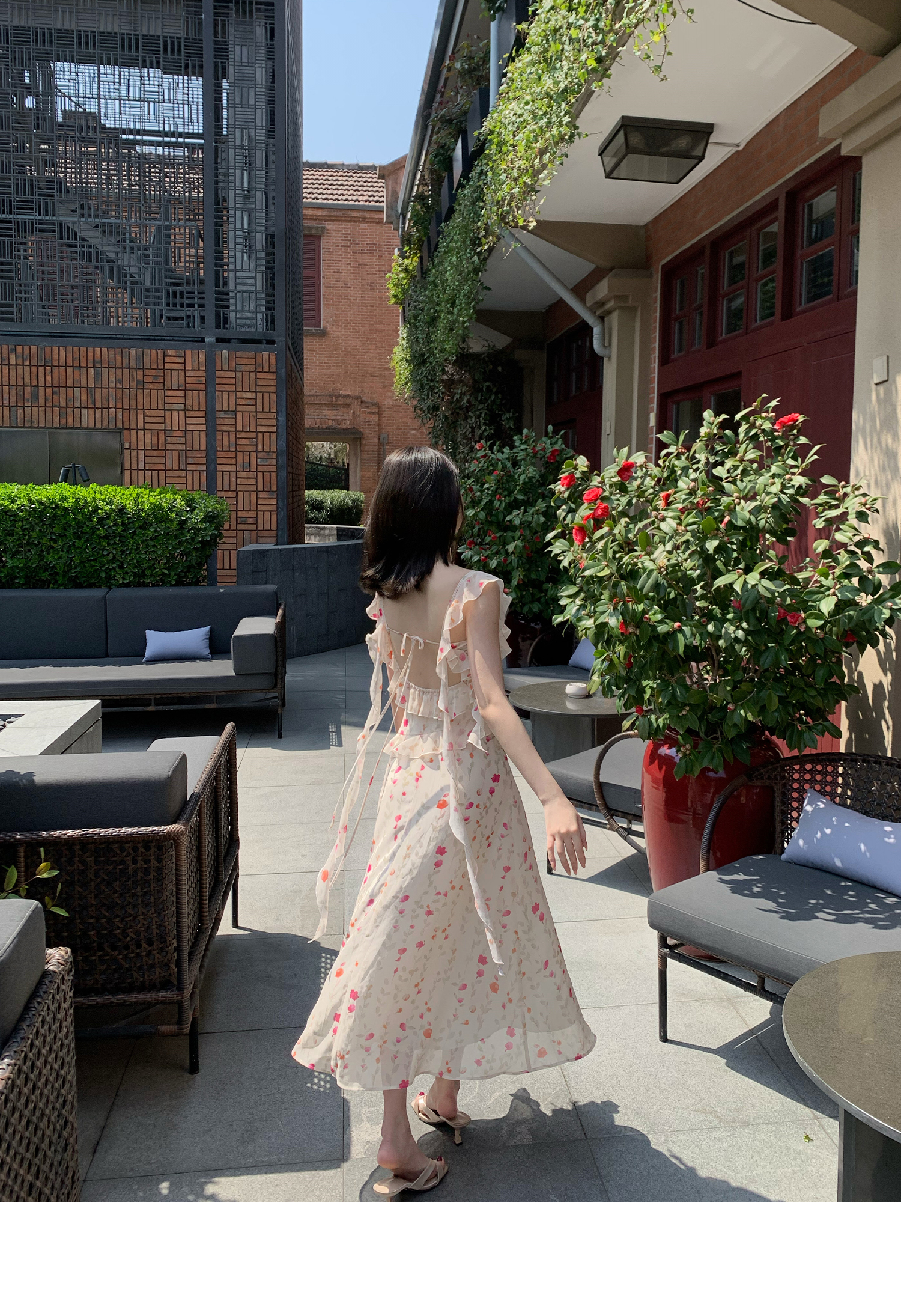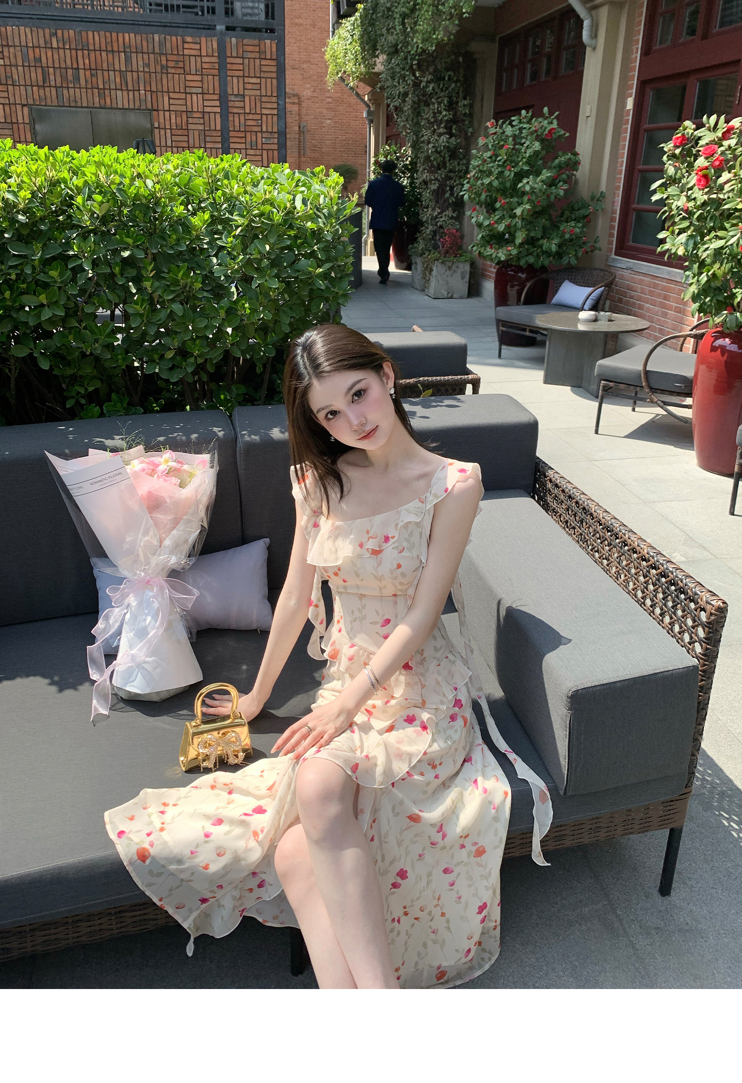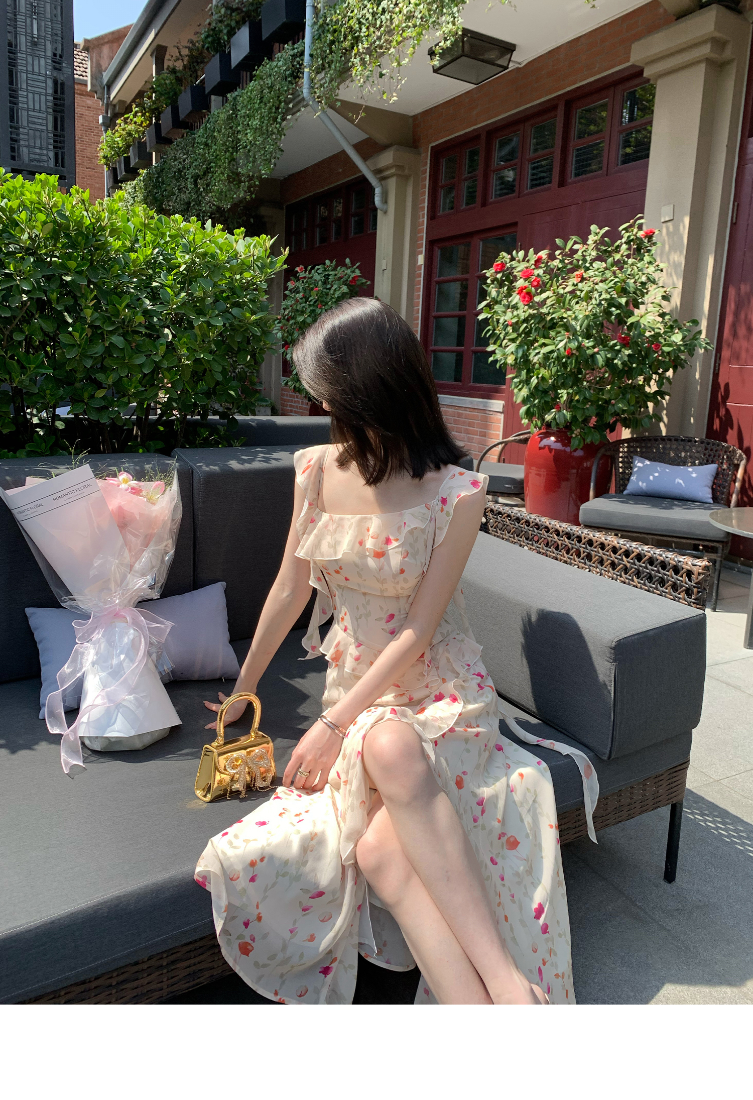 [Butterfly Secret] Floral Strap Dress - French Retro Long Skirt