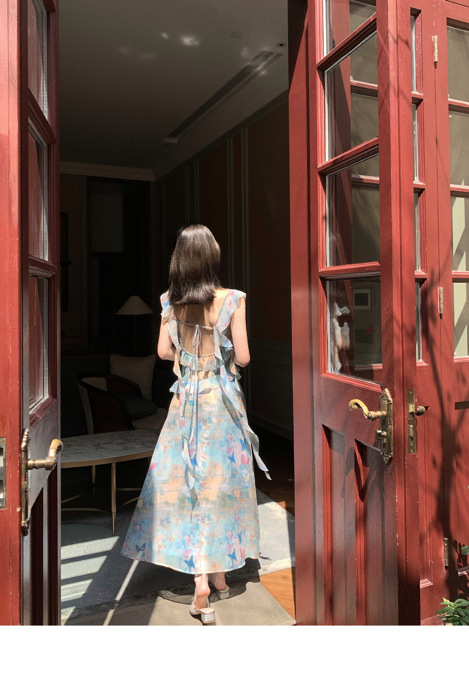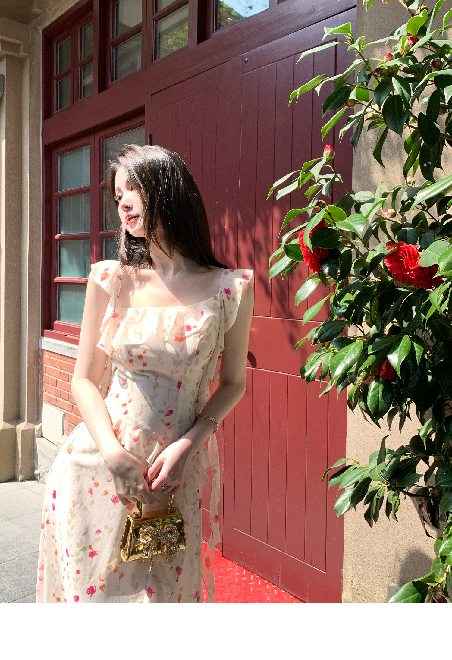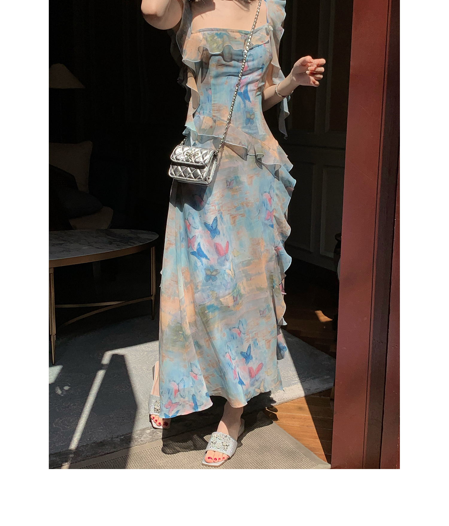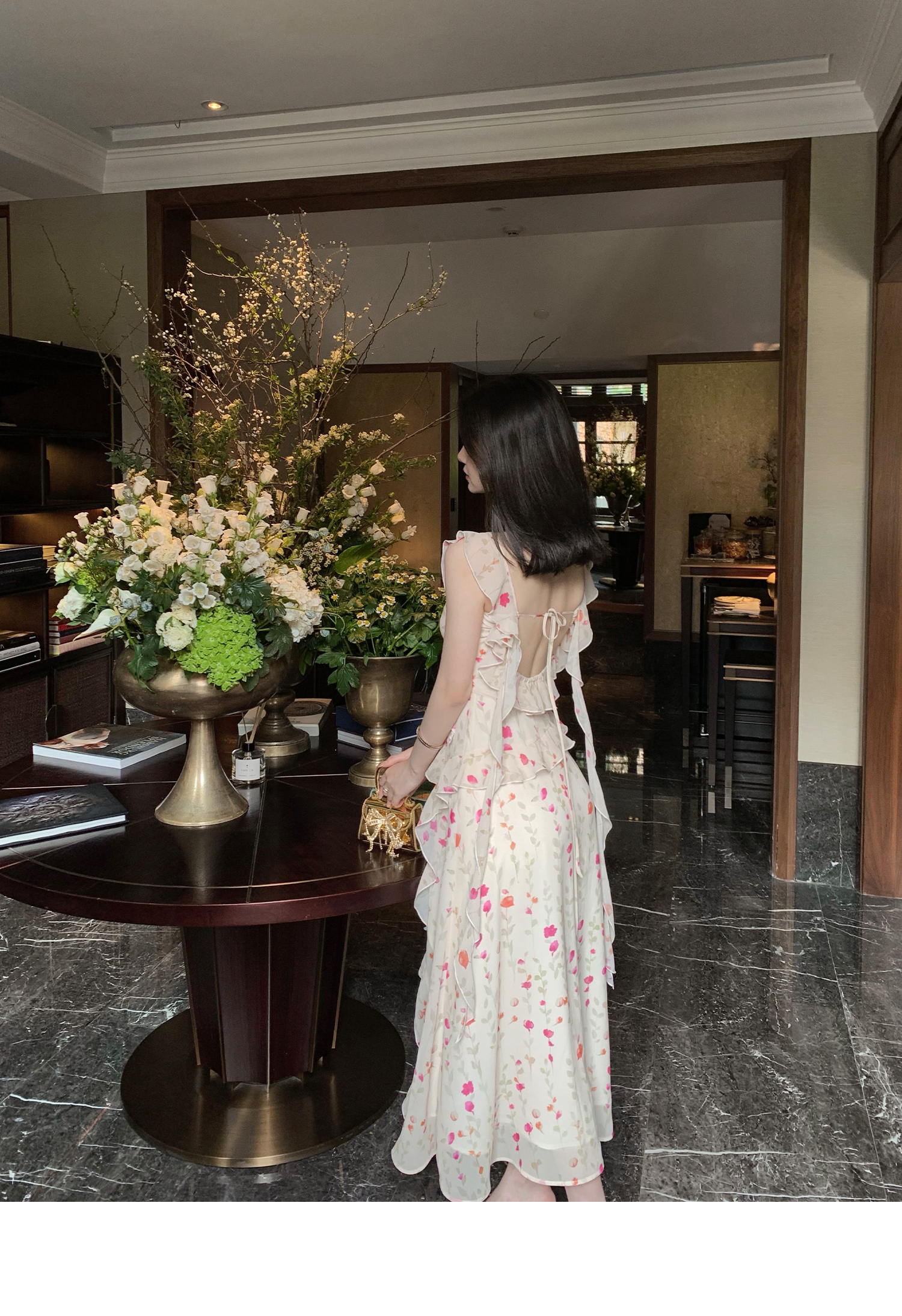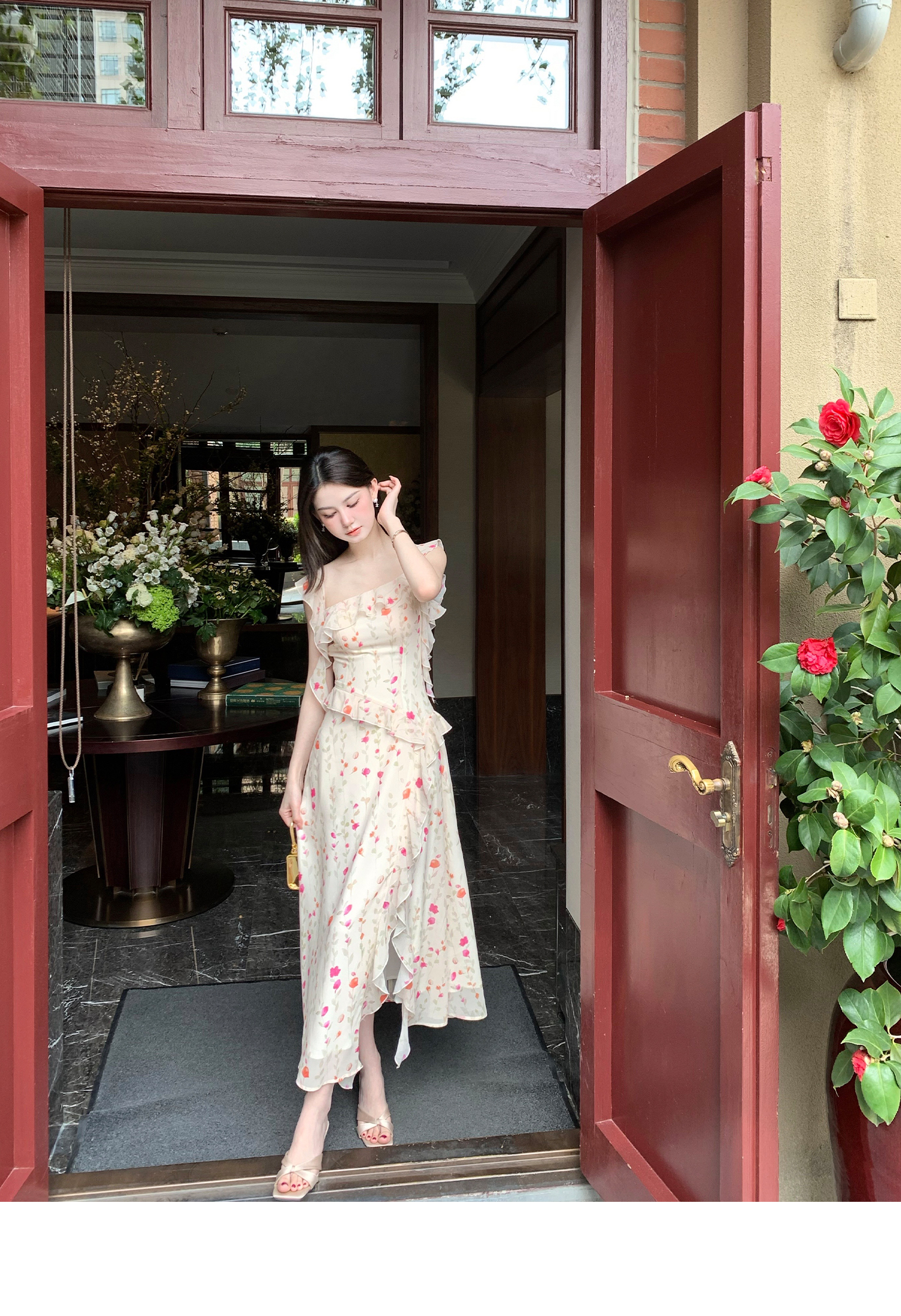 [Butterfly Secret] Floral Strap Dress - French Retro Long Skirt
