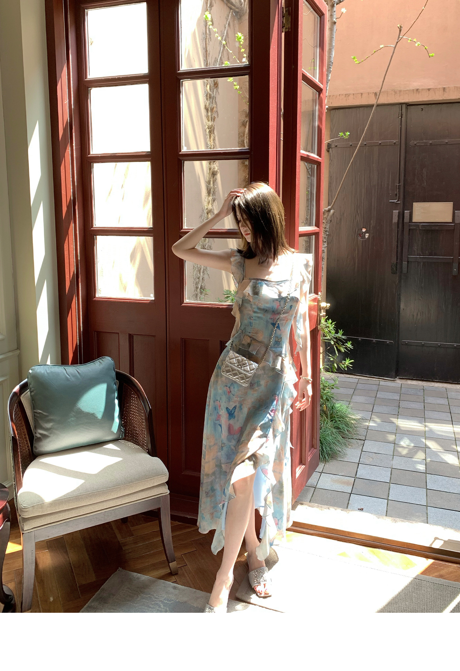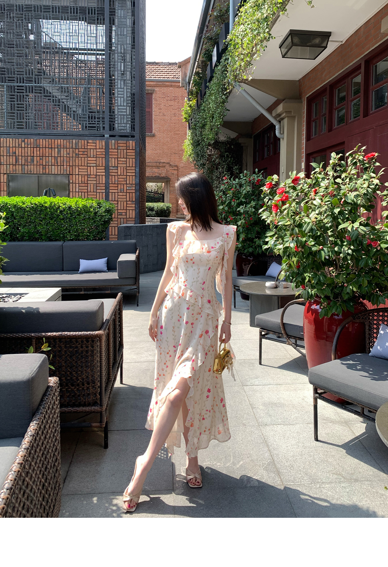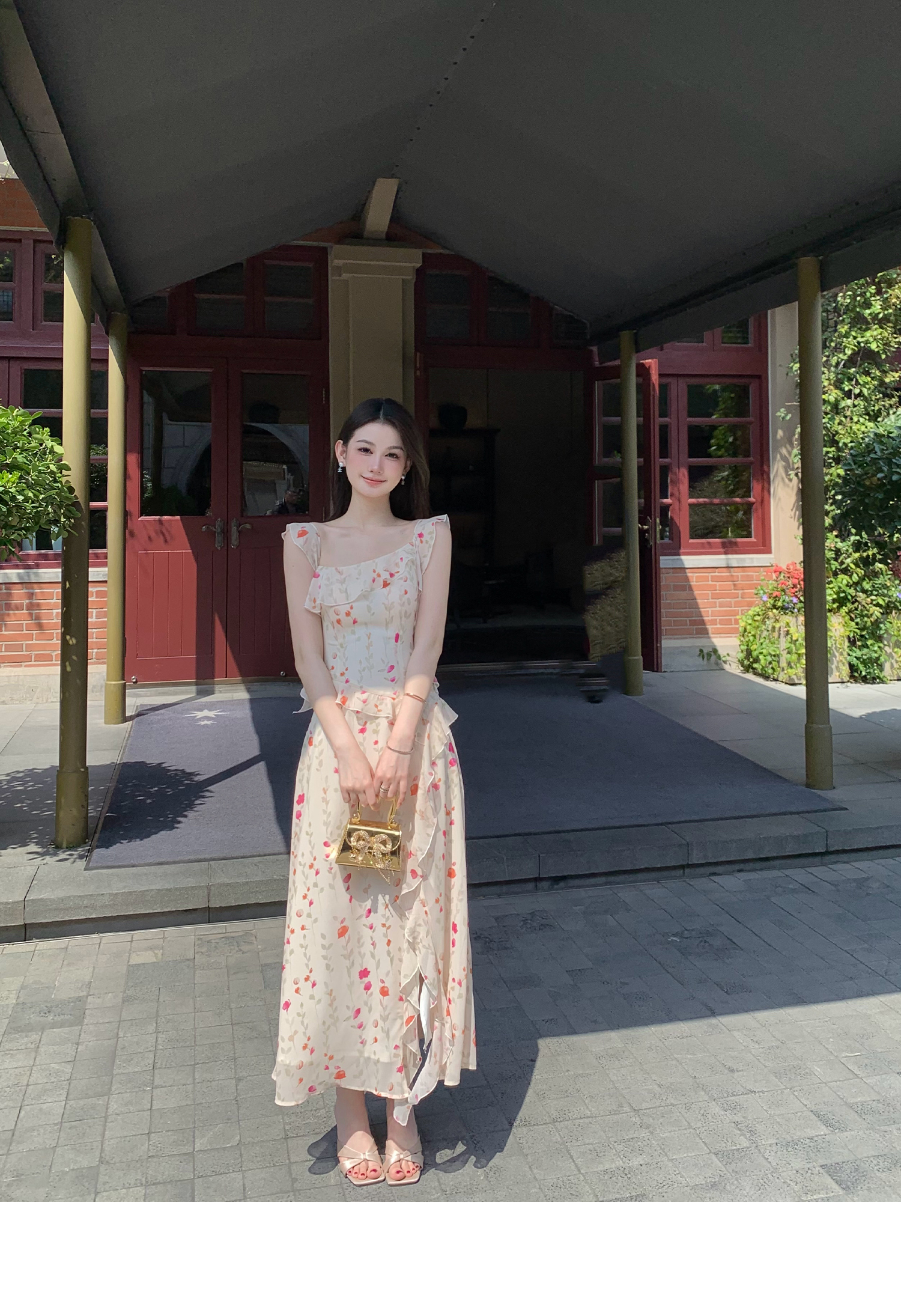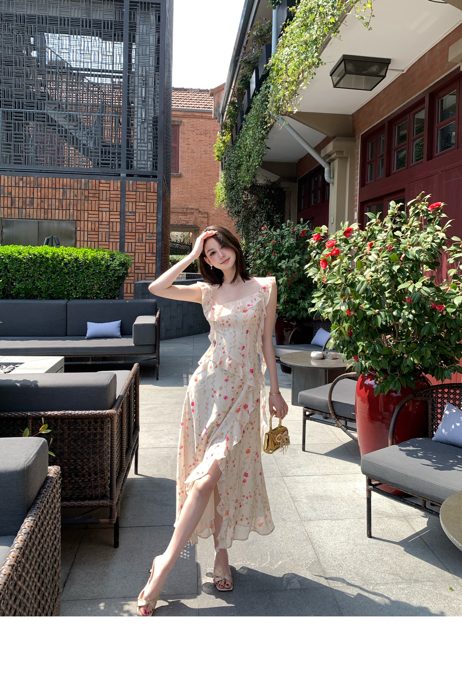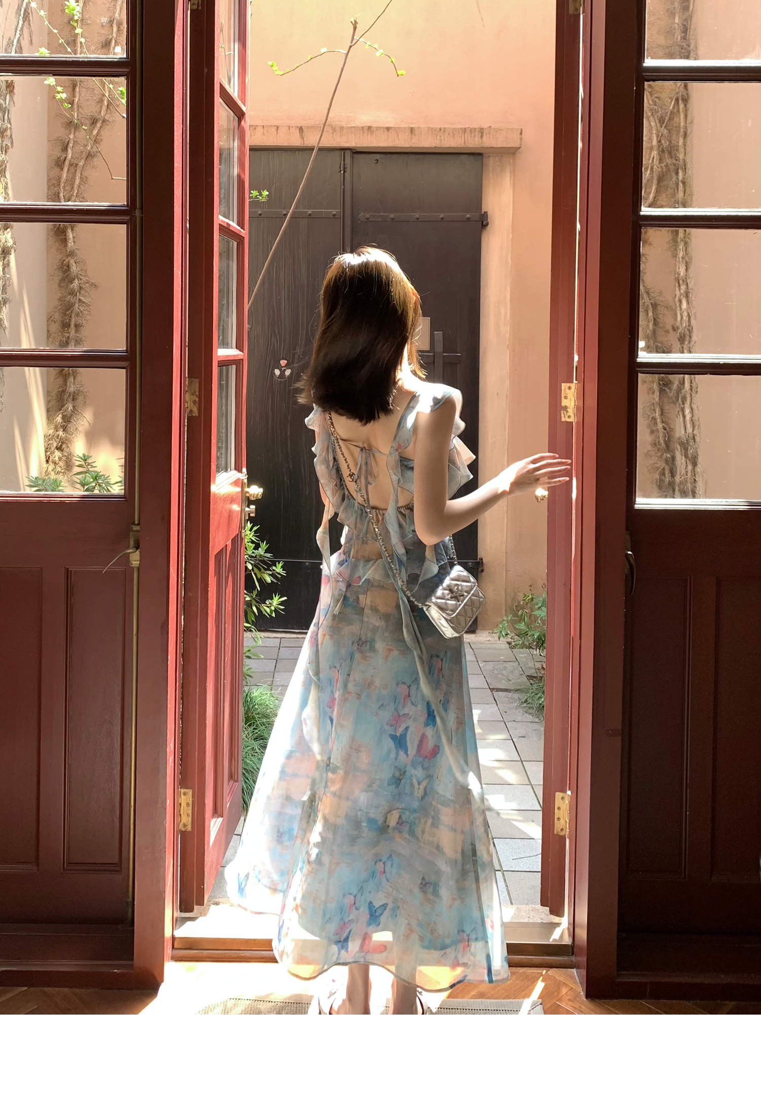[Butterfly Secret] Floral Strap Dress - French Retro Long Skirt