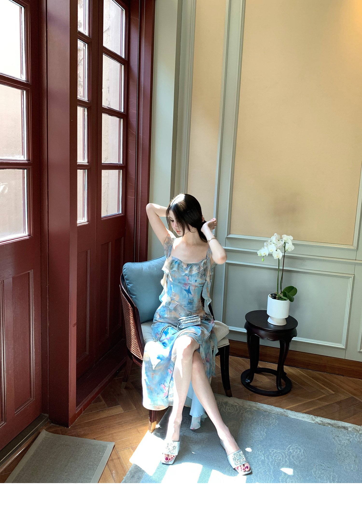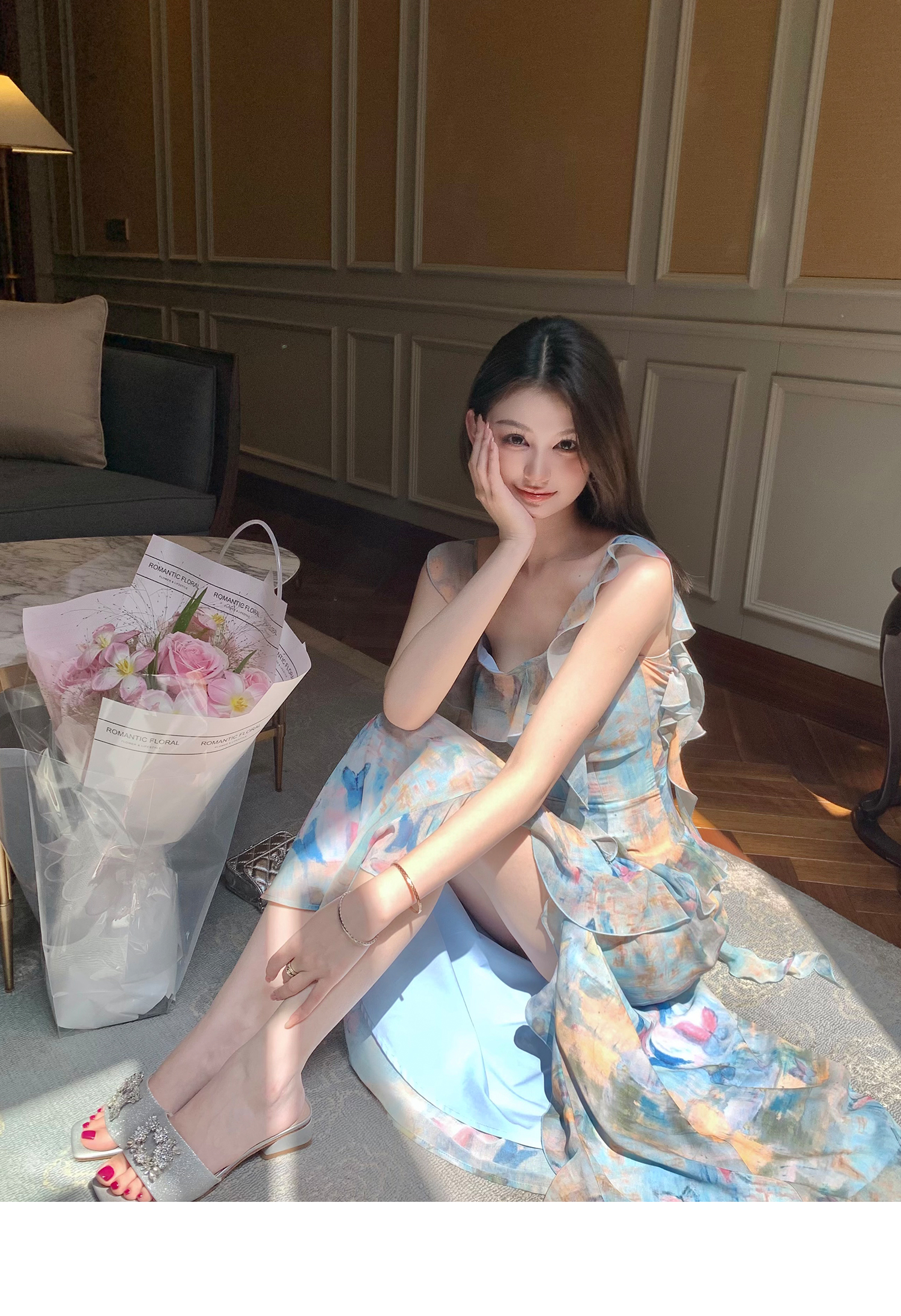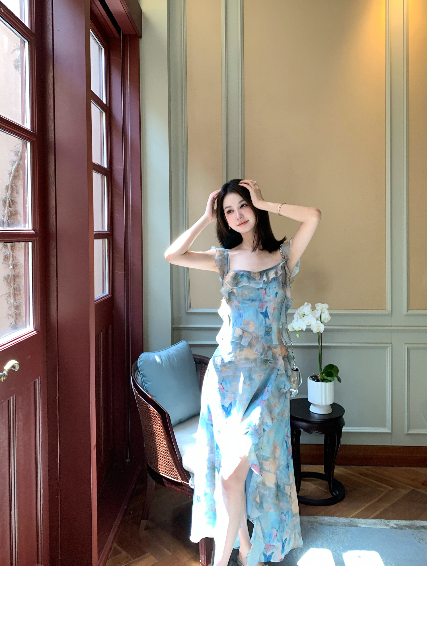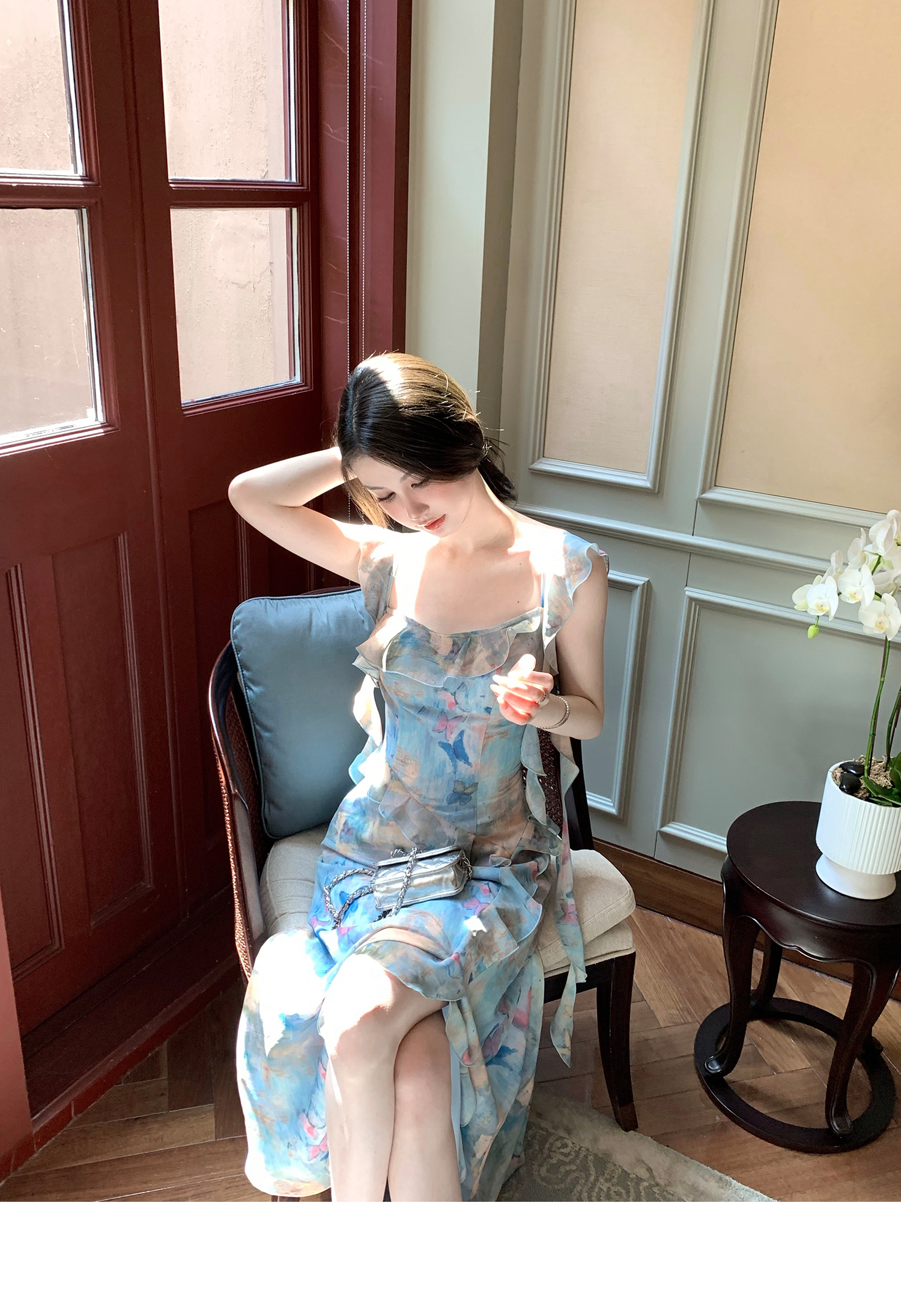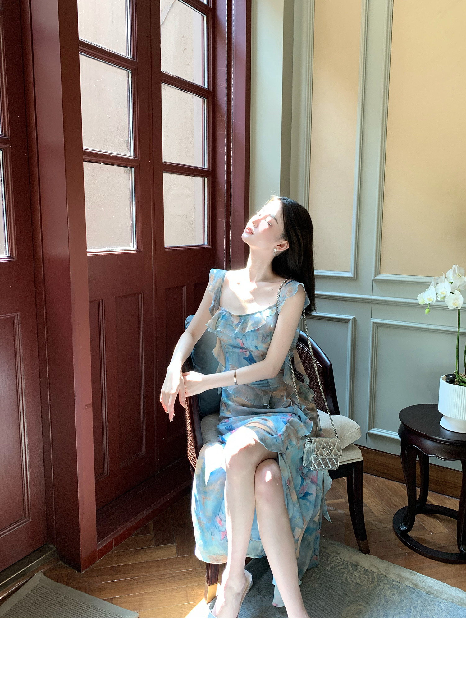 [Butterfly Secret] Floral Strap Dress - French Retro Long Skirt