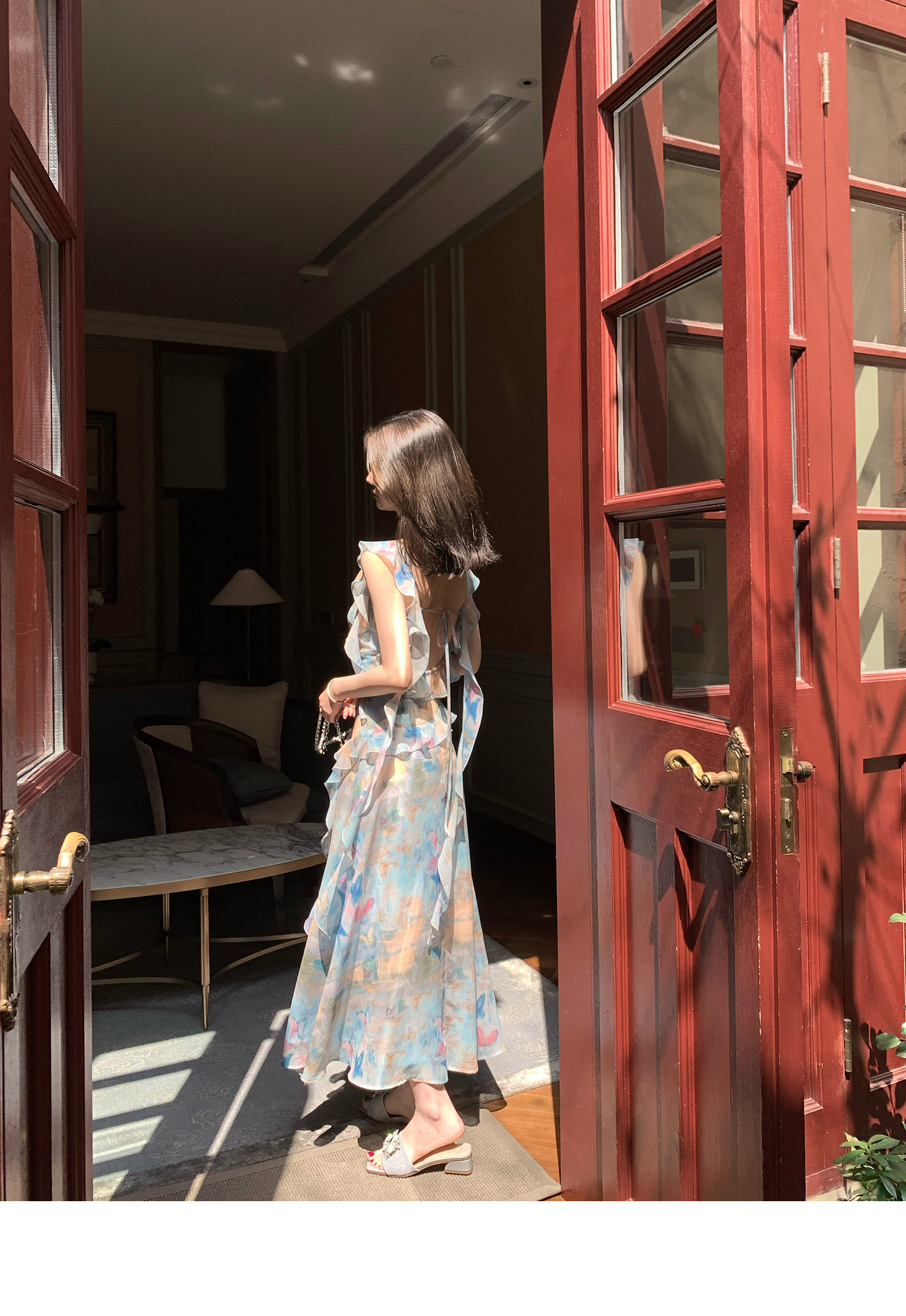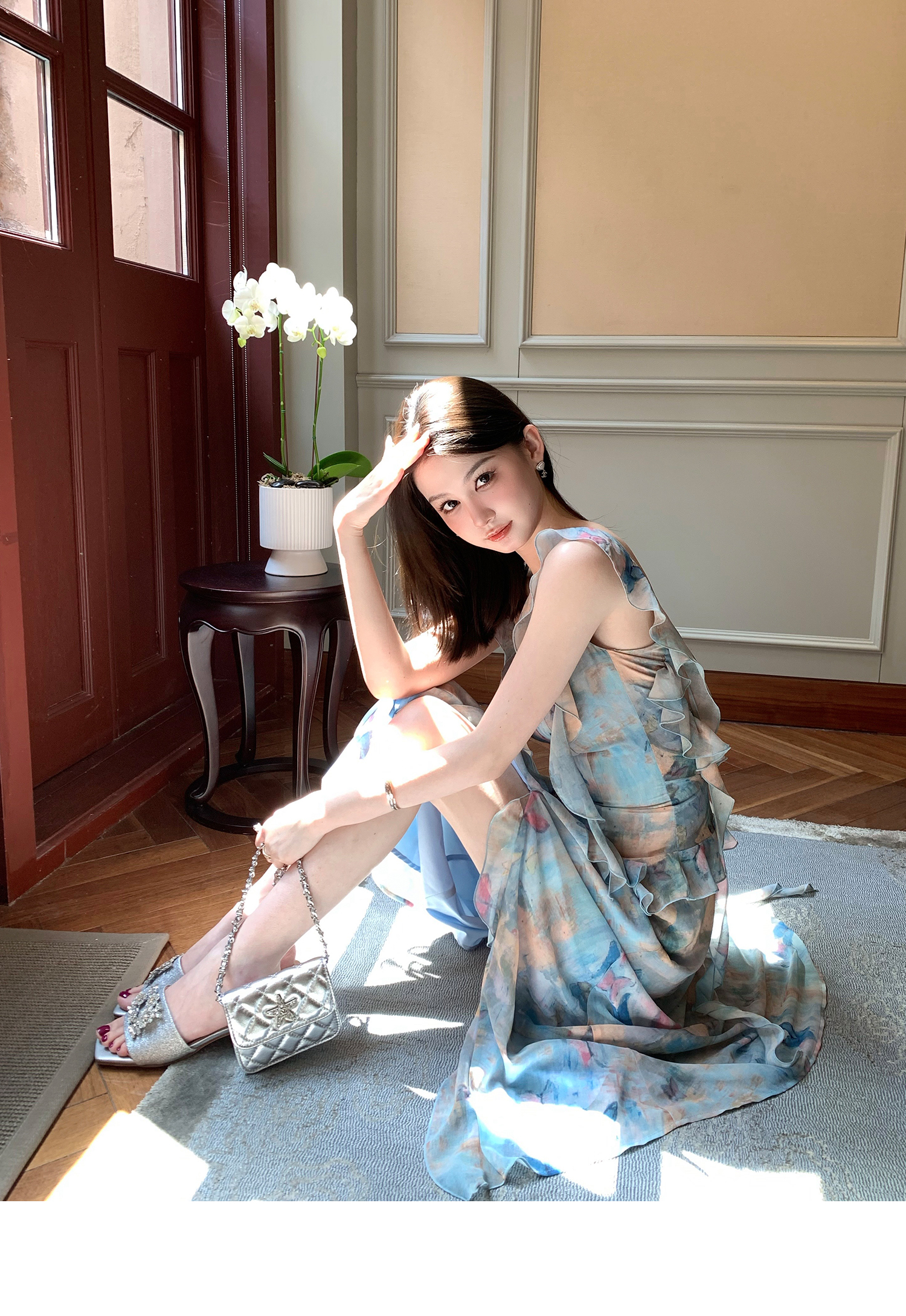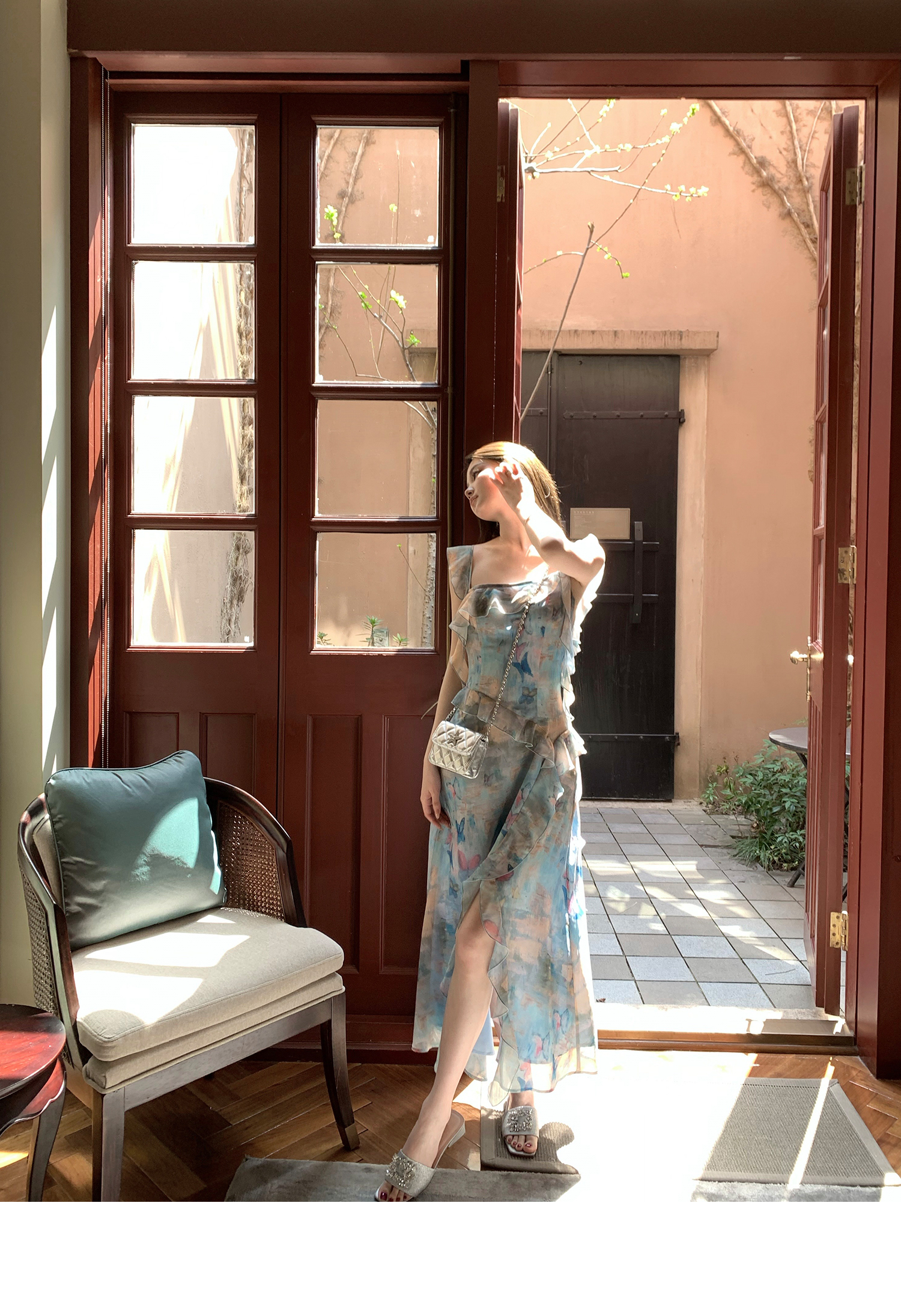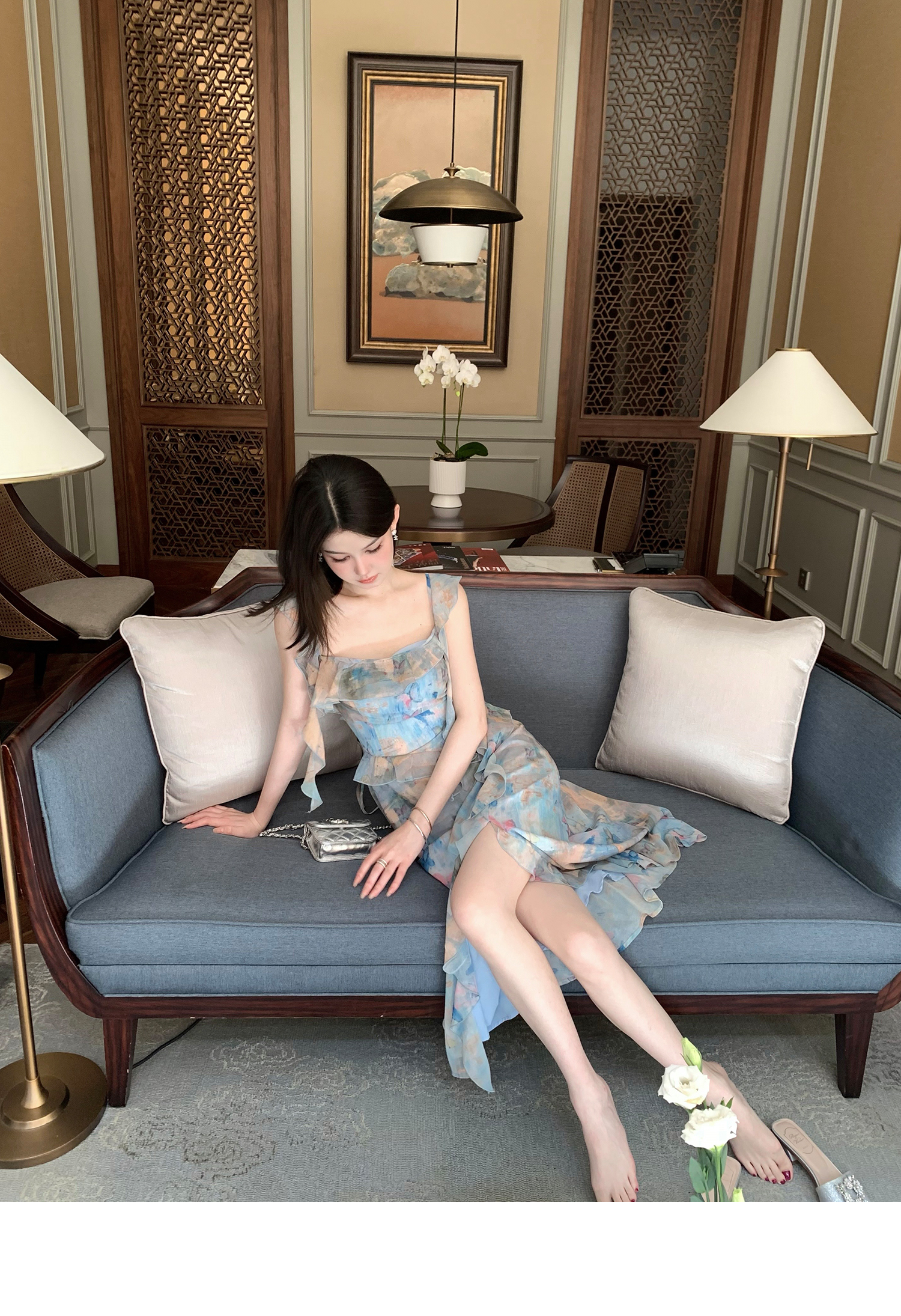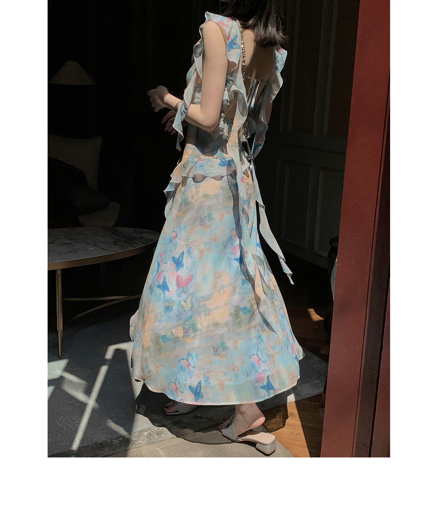[Butterfly Secret] Floral Strap Dress - French Retro Long Skirt