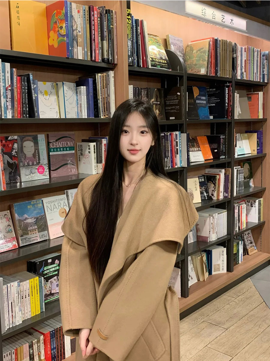 Camel Double-Sided Cashmere Coat – Hepburn-Style Mid-Length Wool Cape
