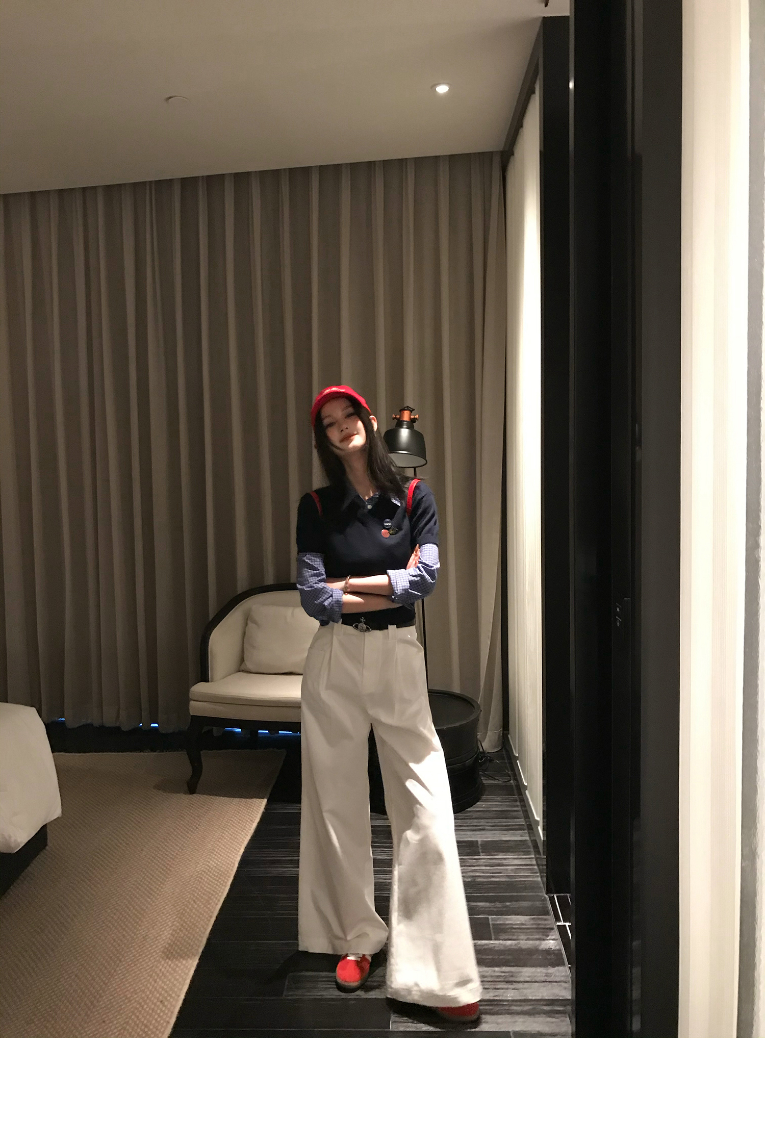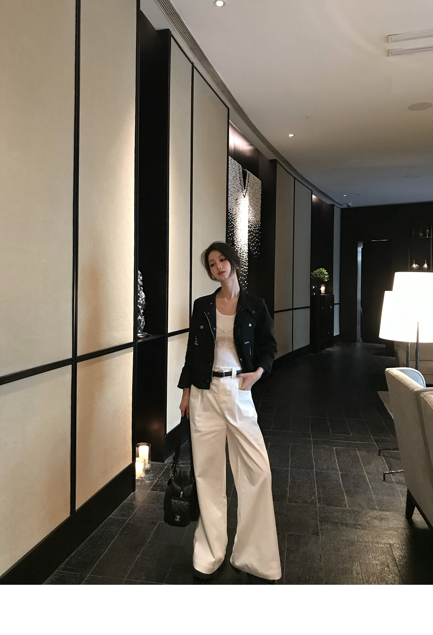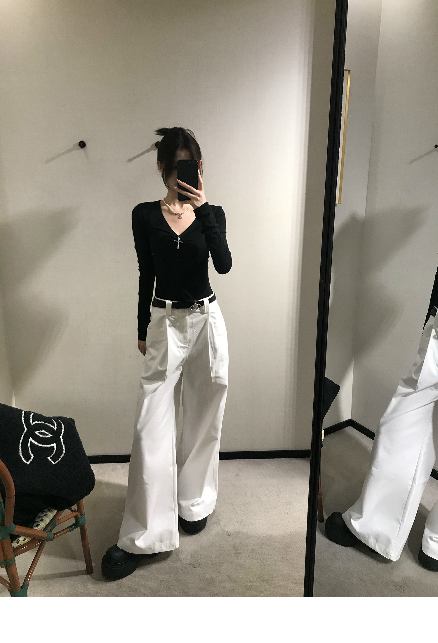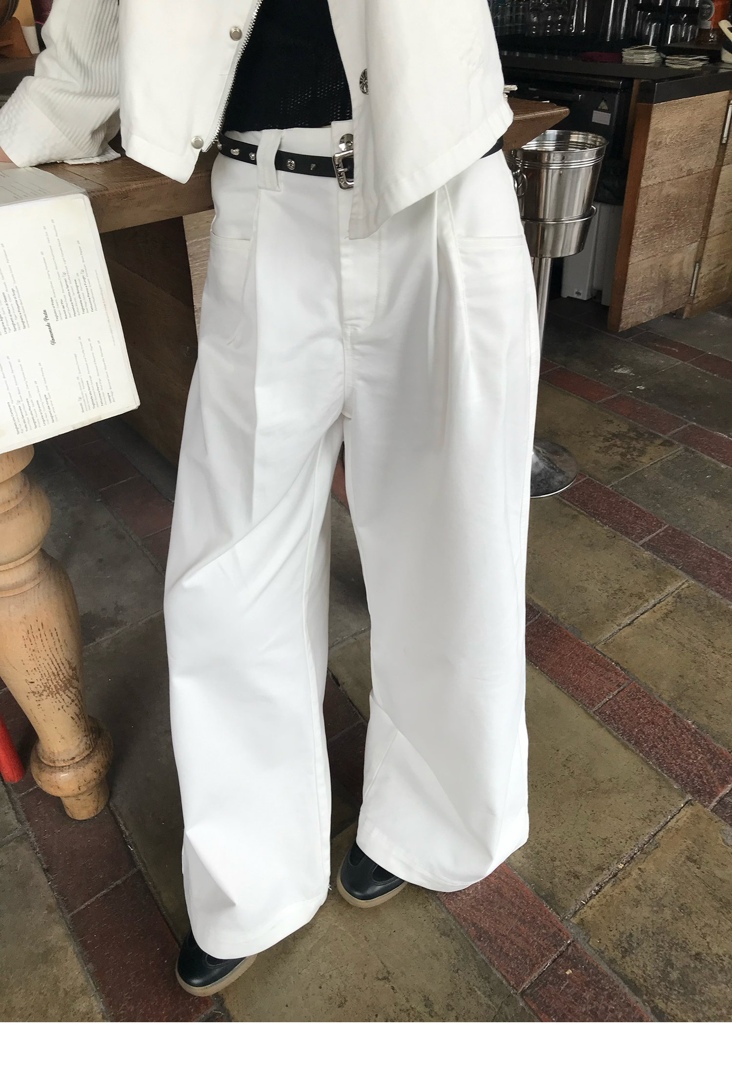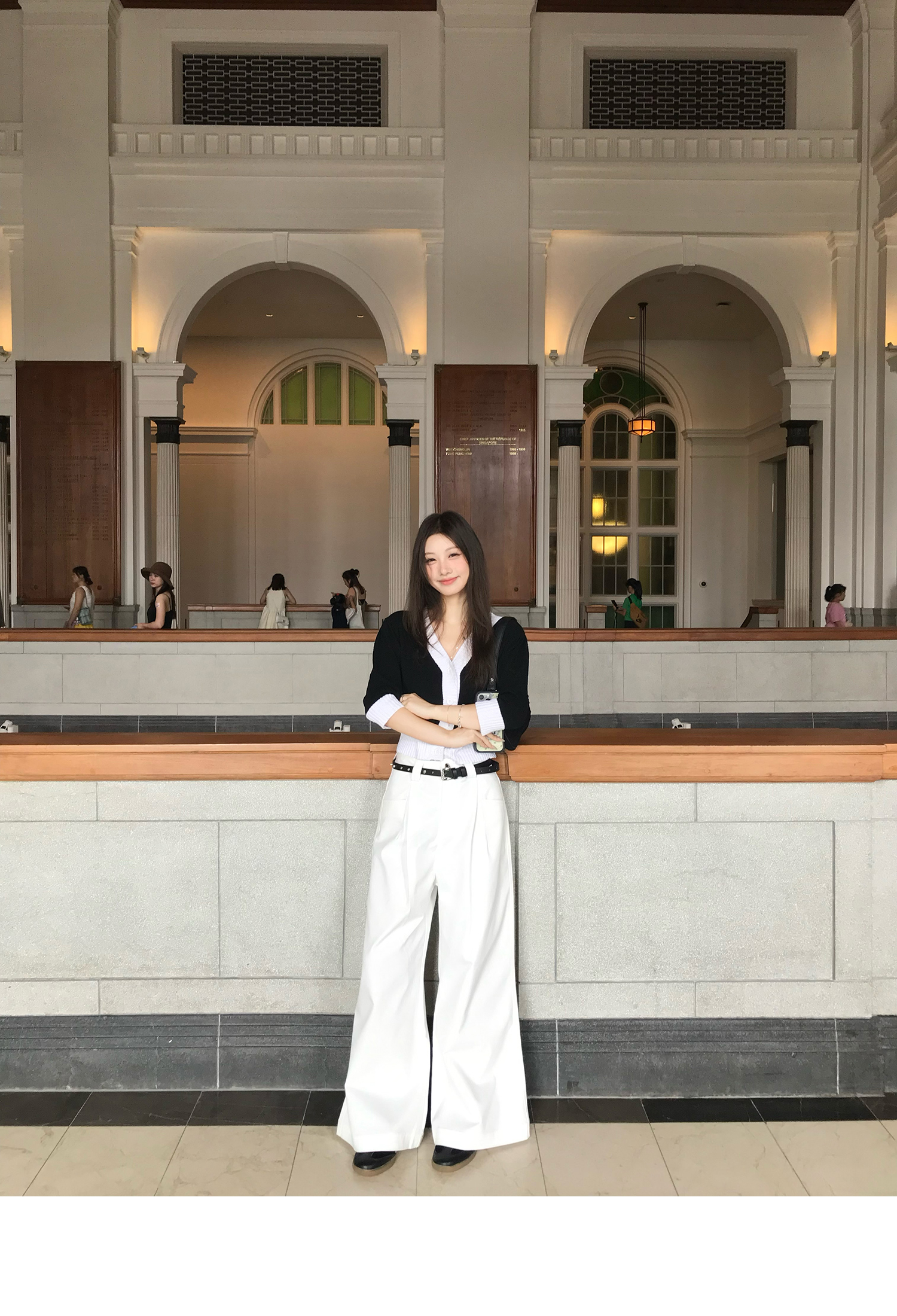 [Classic Wear] White Casual Pants - Drapey Retro Wide-Leg Style