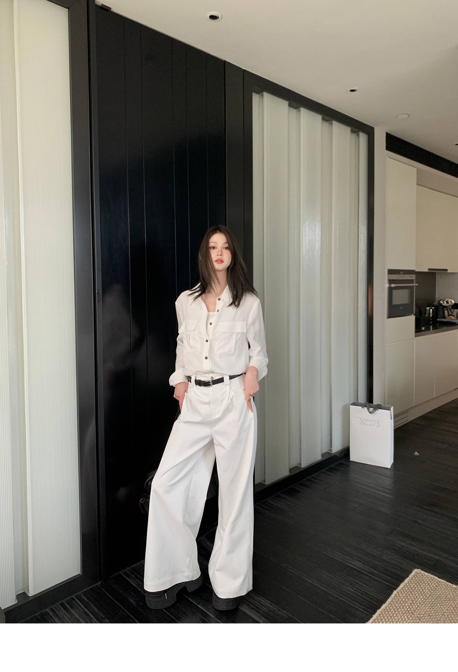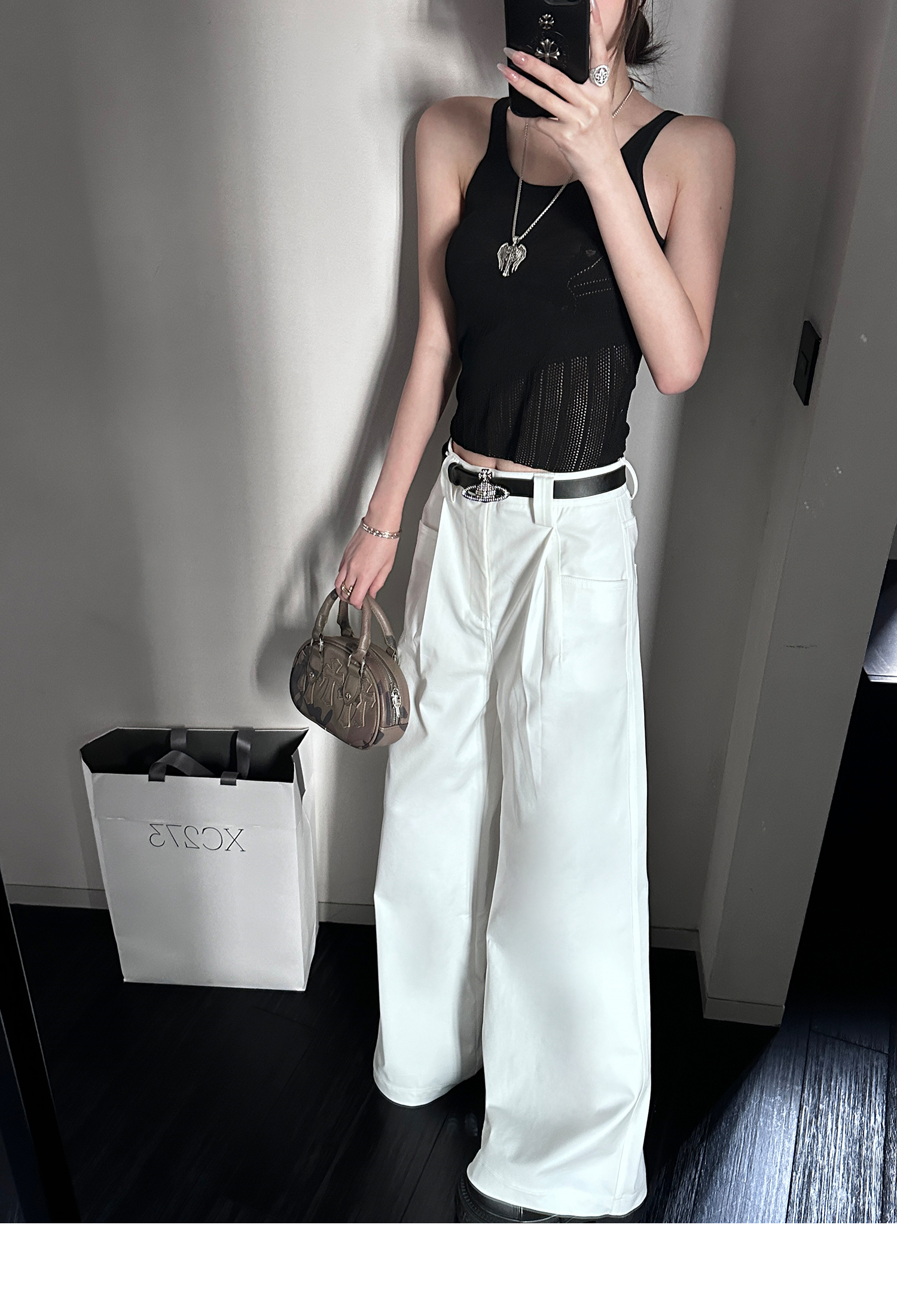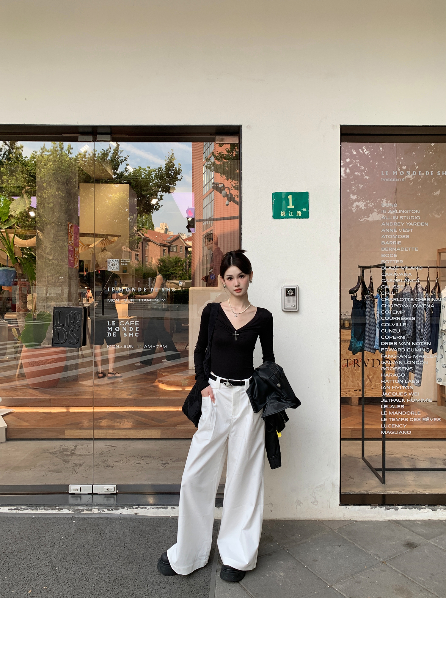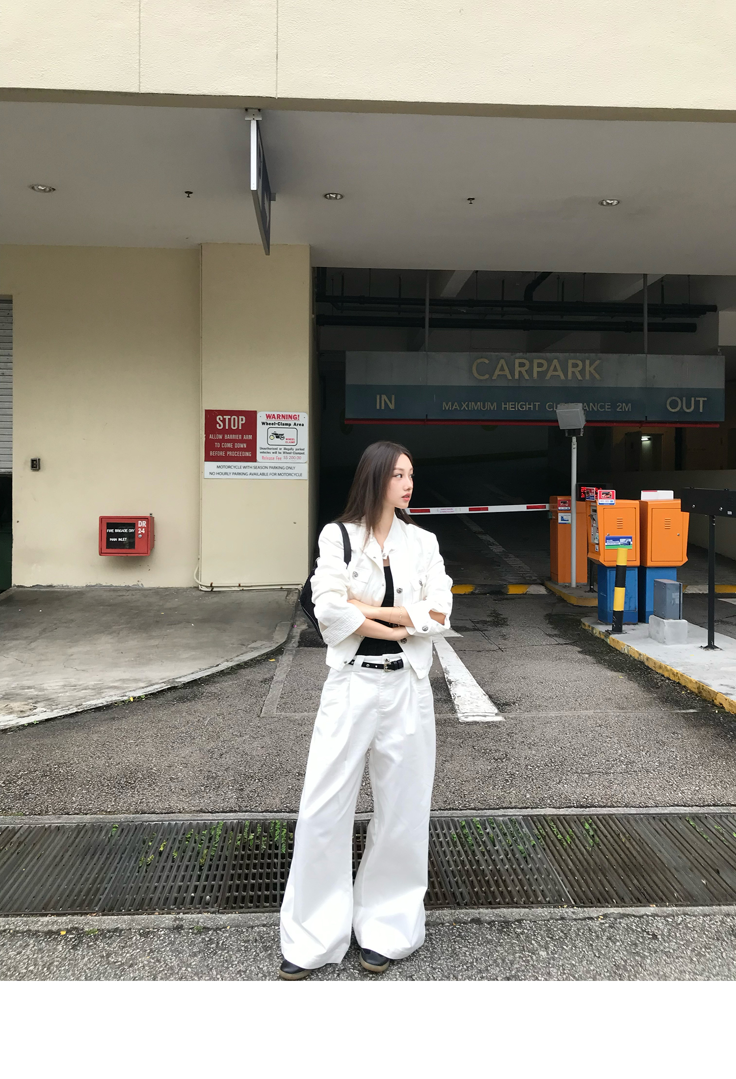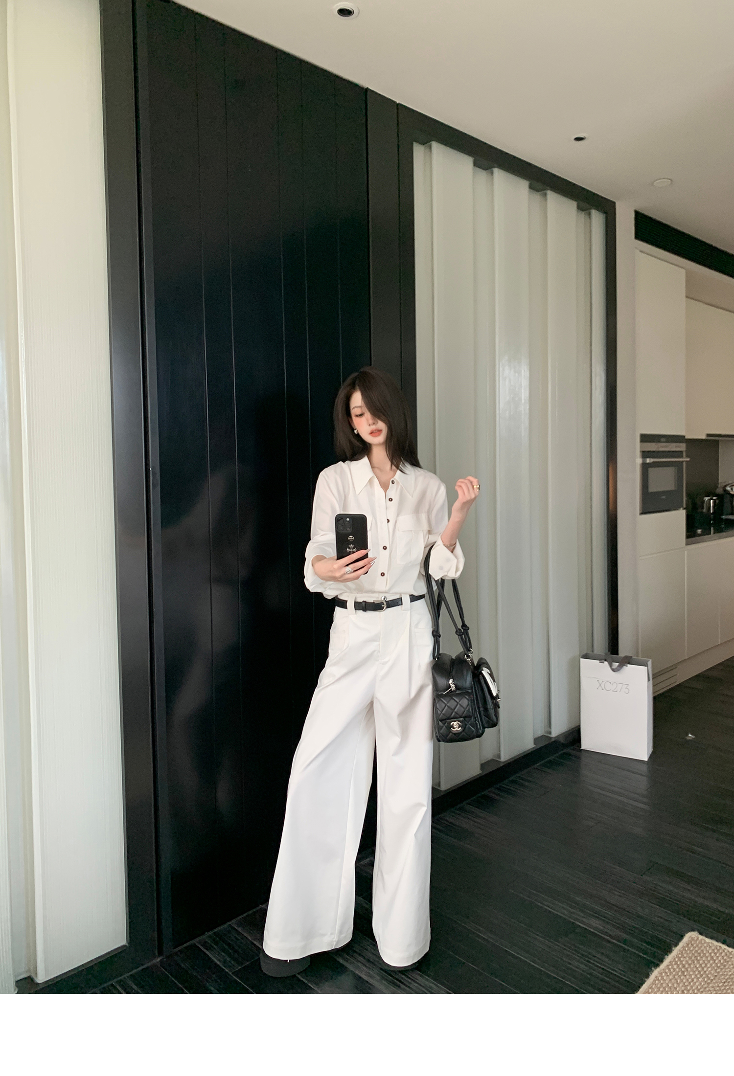 [Classic Wear] White Casual Pants - Drapey Retro Wide-Leg Style